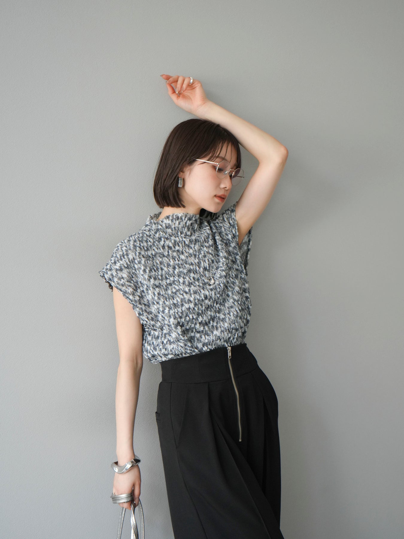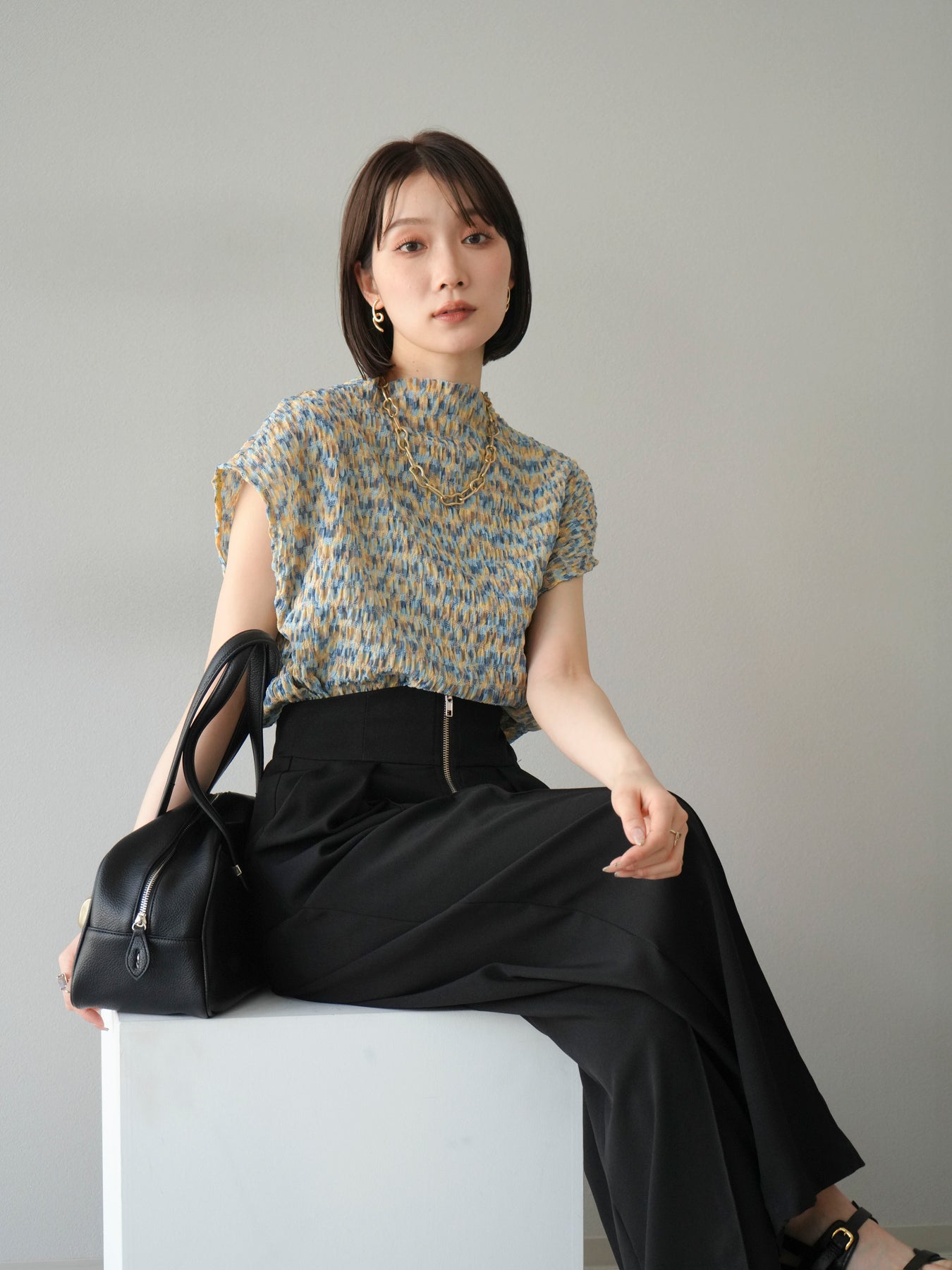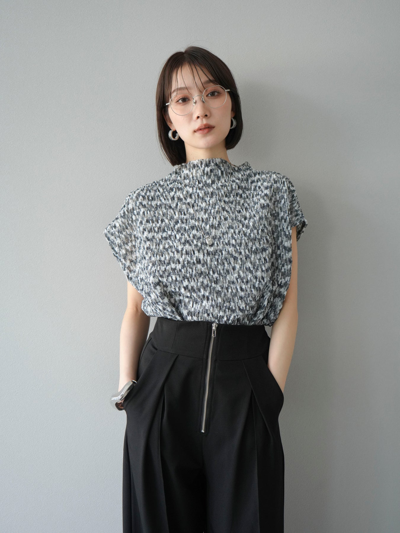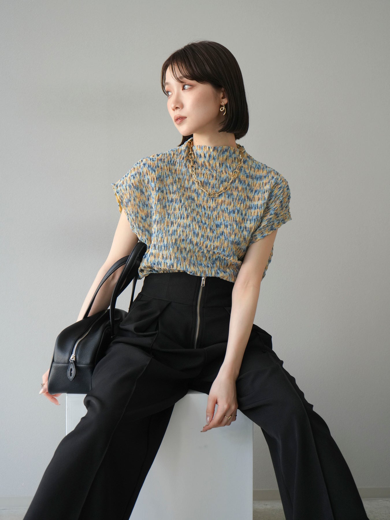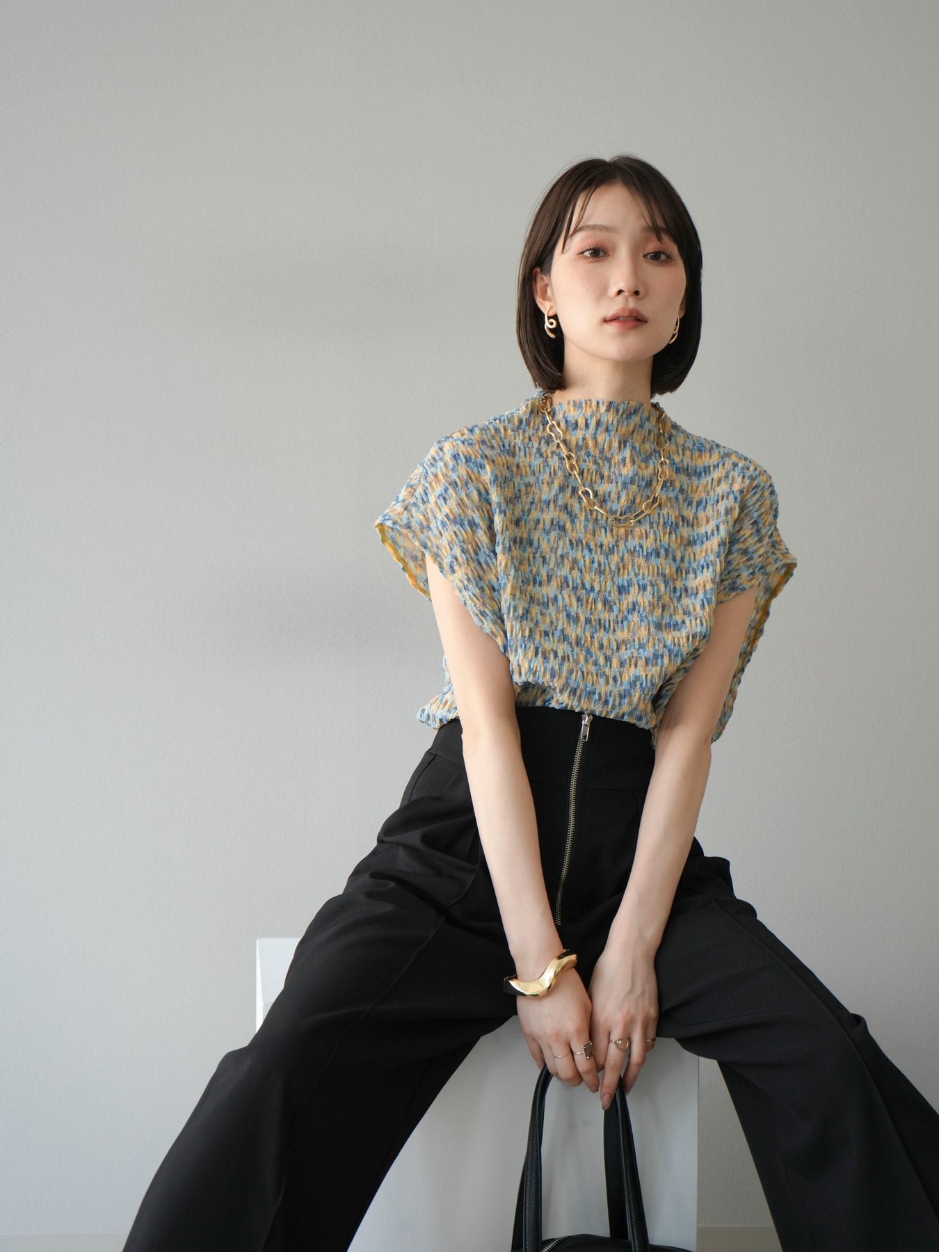 多色隨意褶法式上衣,擁有細膩的隨意褶皺和華麗的多色圖案。富有表現力的凹凸感和輕盈的質感,是單穿也十分好看的簡約單品。法式袖設計略帶休閒感,恰到好處地遮蓋了令人煩惱的手臂區域。彈性布料穿著舒適,可搭配牛仔褲、裙子等各種下裝。這件單品能為您的夏季造型增添亮點。 *除下裝及吊帶背心(內搭)外,其他商品皆不包含內搭。