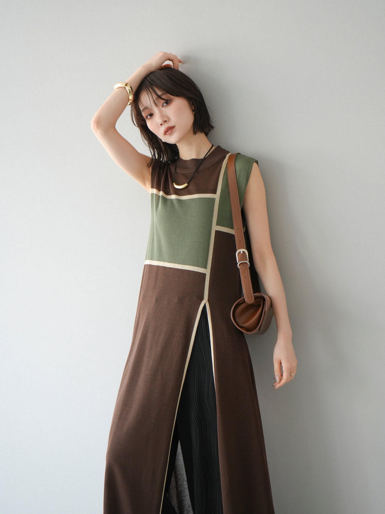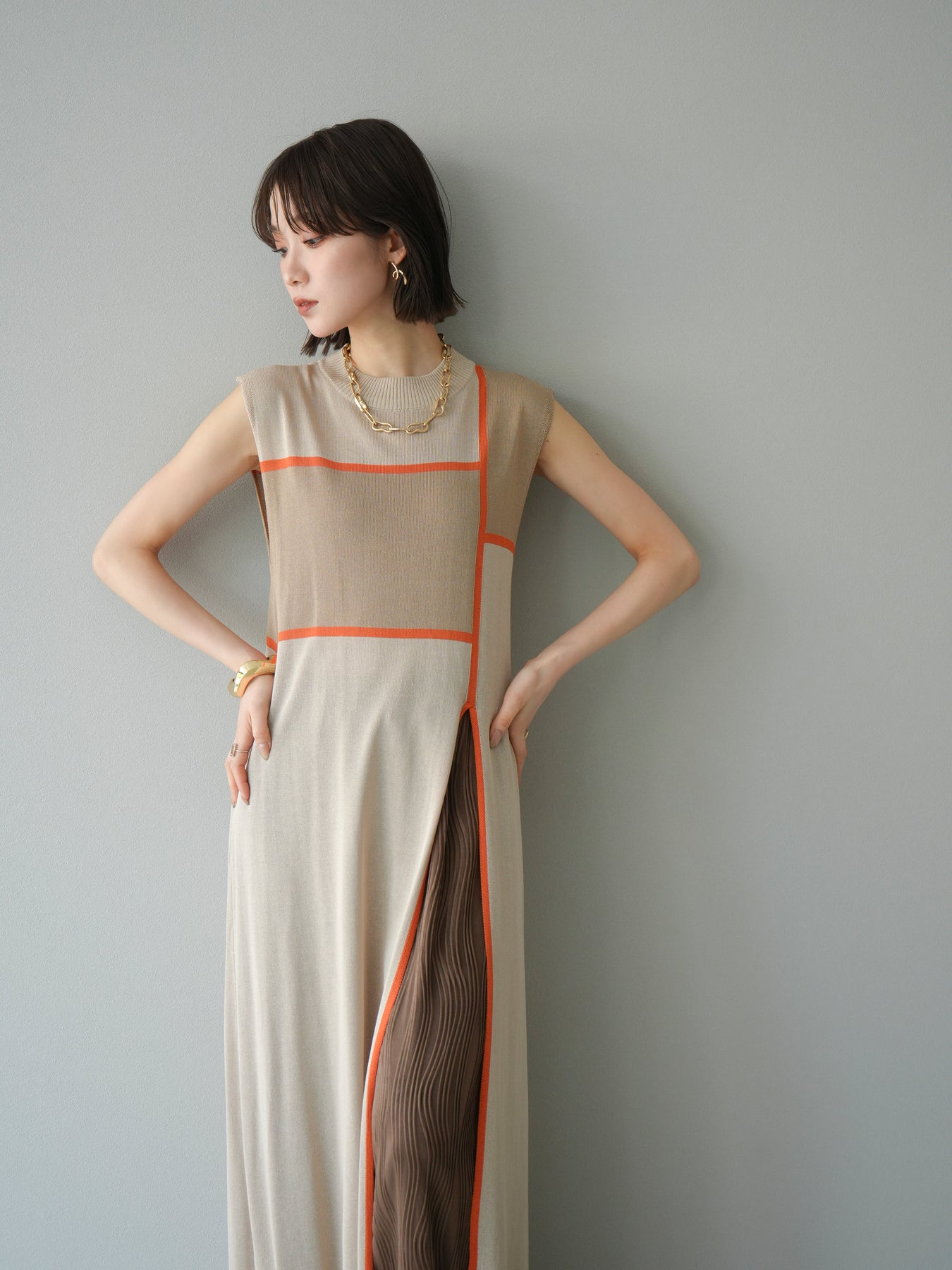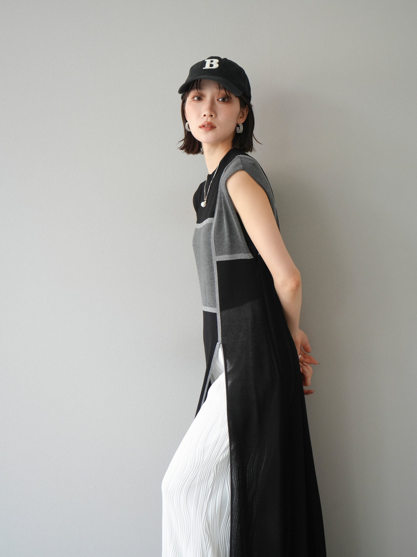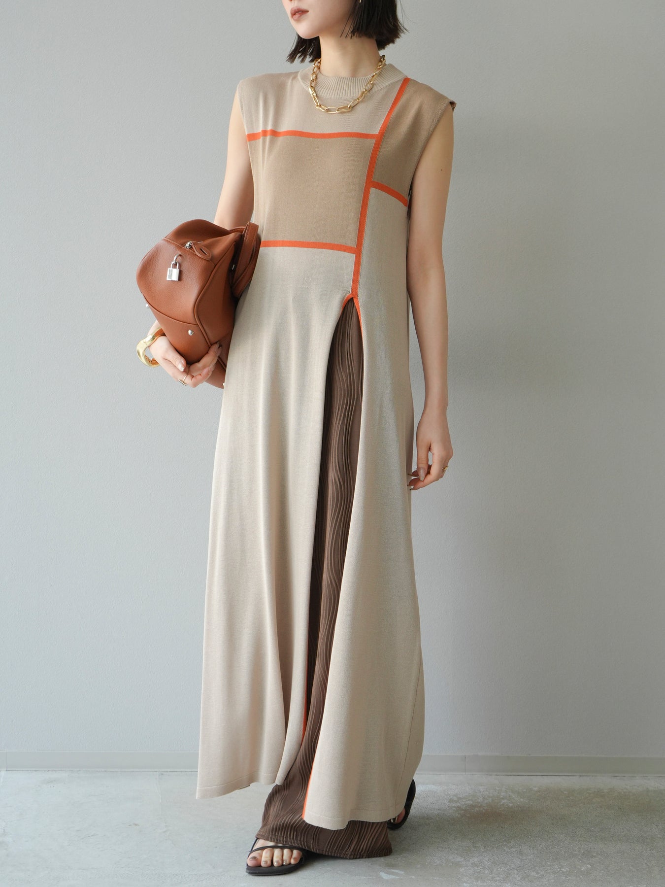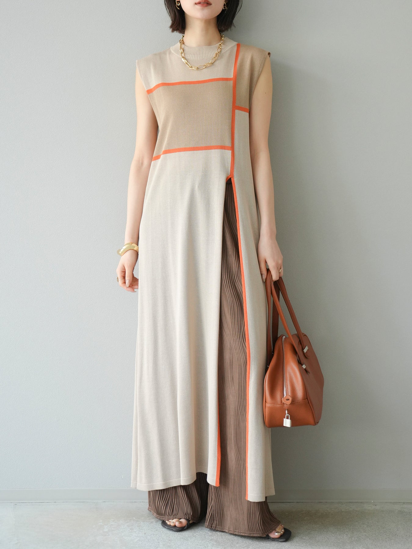 大膽搶眼的撞色針織洋裝。採用輕盈的透明針織布料,適度的透明度營造出春夏的氛圍。藝術感十足的配色方案引人注目,本身就極具視覺衝擊力。兩側的深開衩設計,方便活動,並帶來層疊穿搭的樂趣。時尚與休閒兼具,非常適合搭配褲子或吊帶裙。 *除下裝和吊帶裙(內衣)外,其他商品均不含內衣。