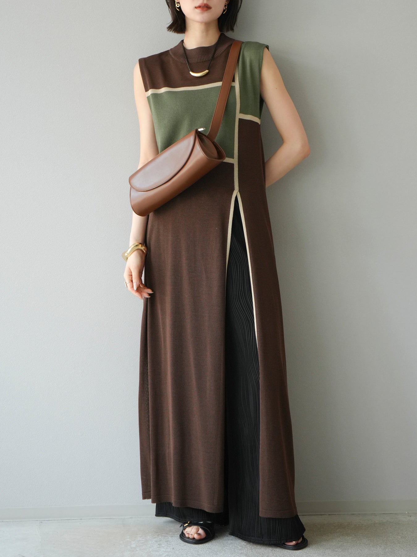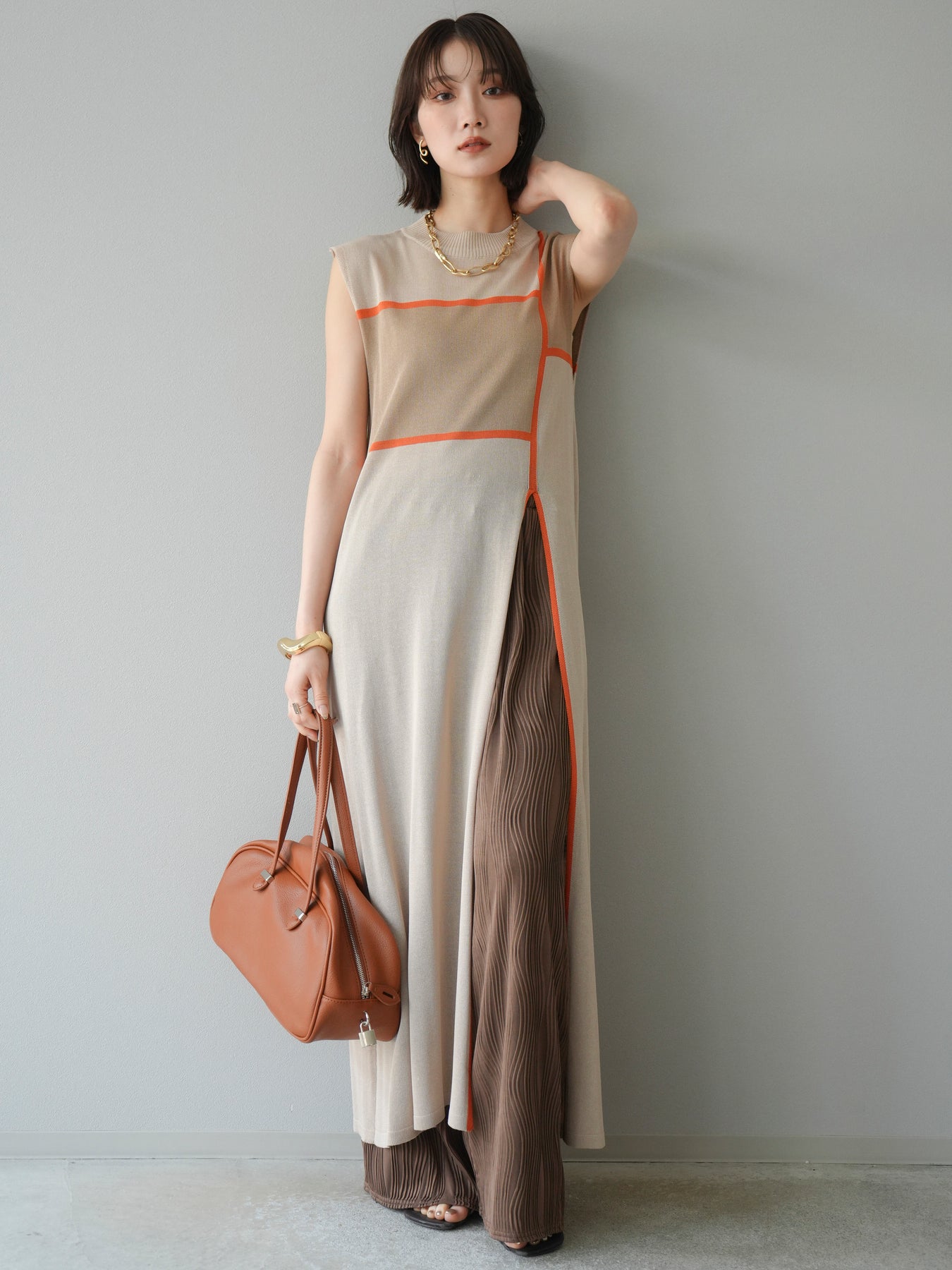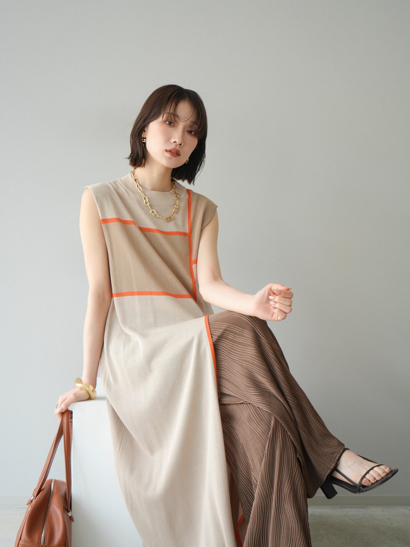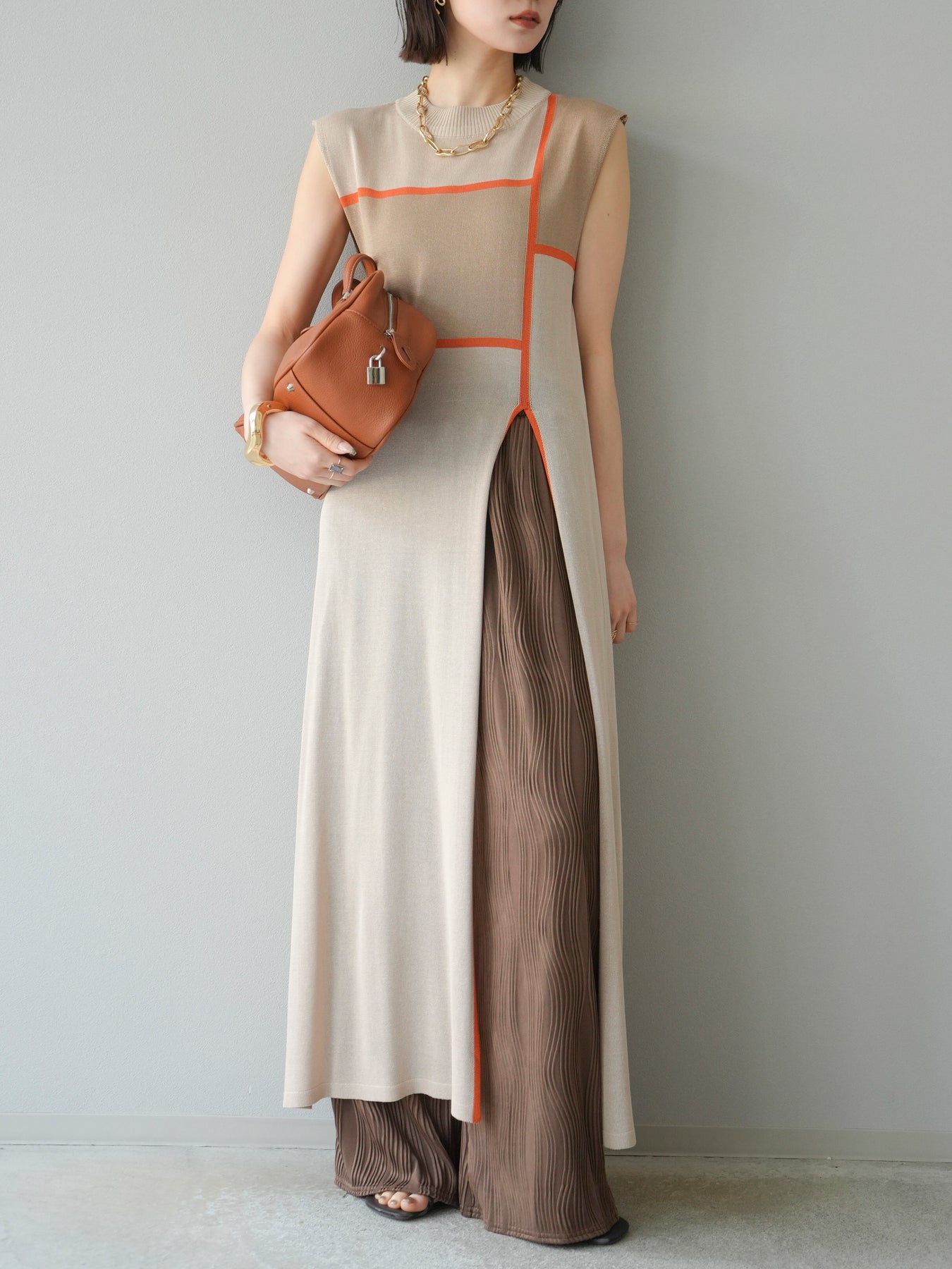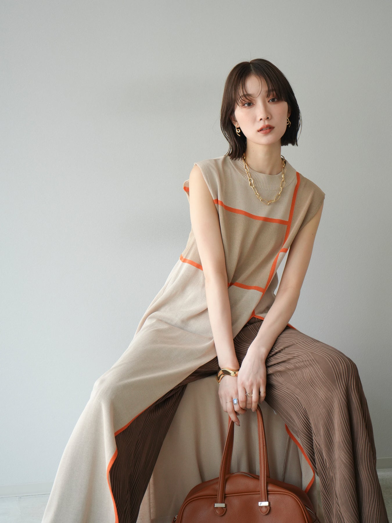 大膽搶眼的撞色針織洋裝。採用輕盈的透明針織布料,適度的透明度營造出春夏的氛圍。藝術感十足的配色方案引人注目,本身就極具視覺衝擊力。兩側的深開衩設計,方便活動,並帶來層疊穿搭的樂趣。時尚與休閒兼具,非常適合搭配褲子或吊帶裙。 *除下裝和吊帶裙(內衣)外,其他商品均不含內衣。