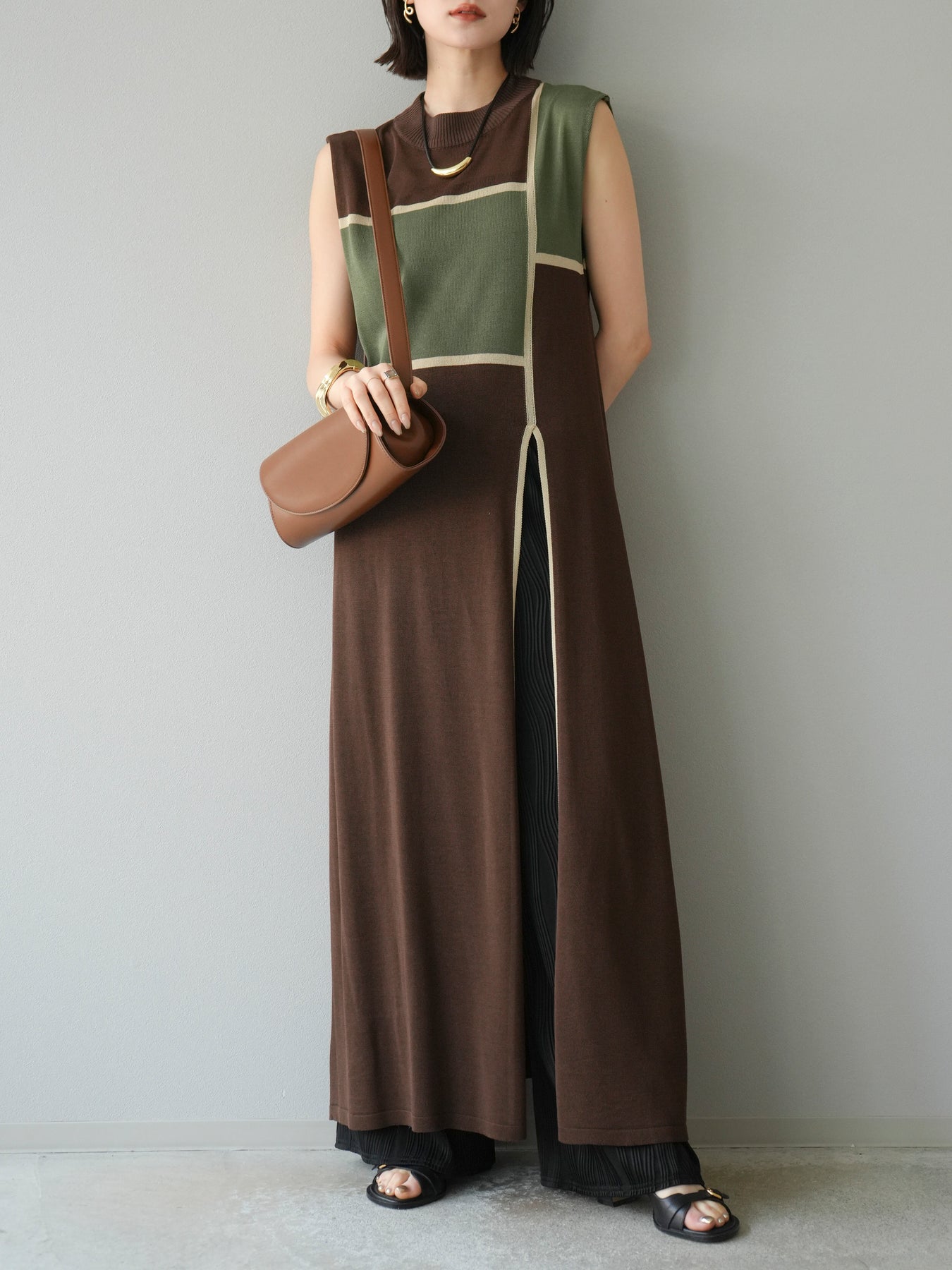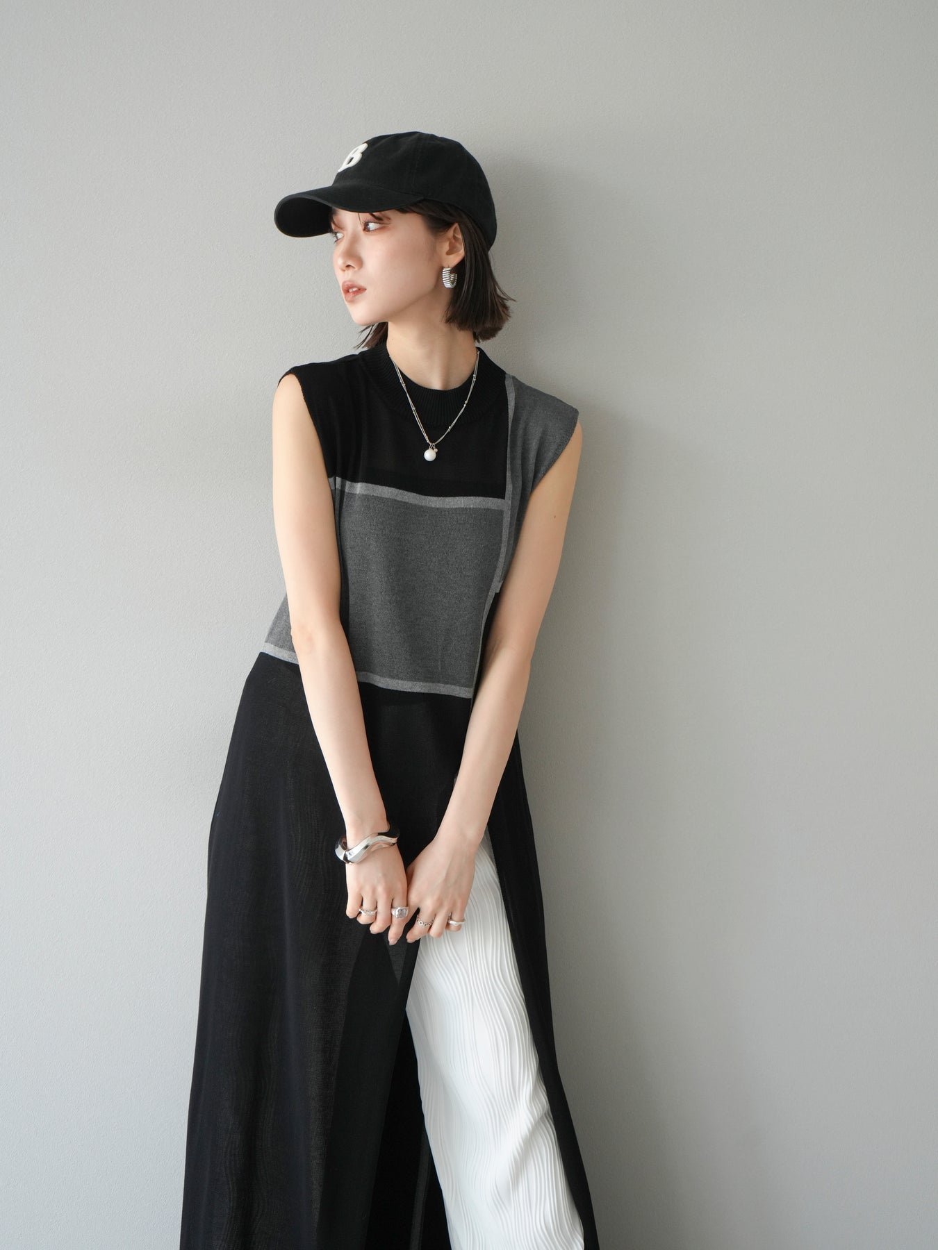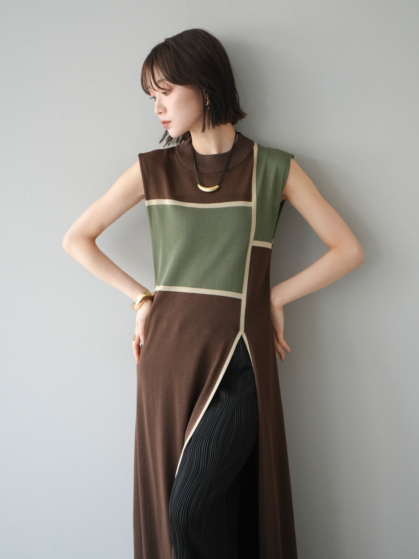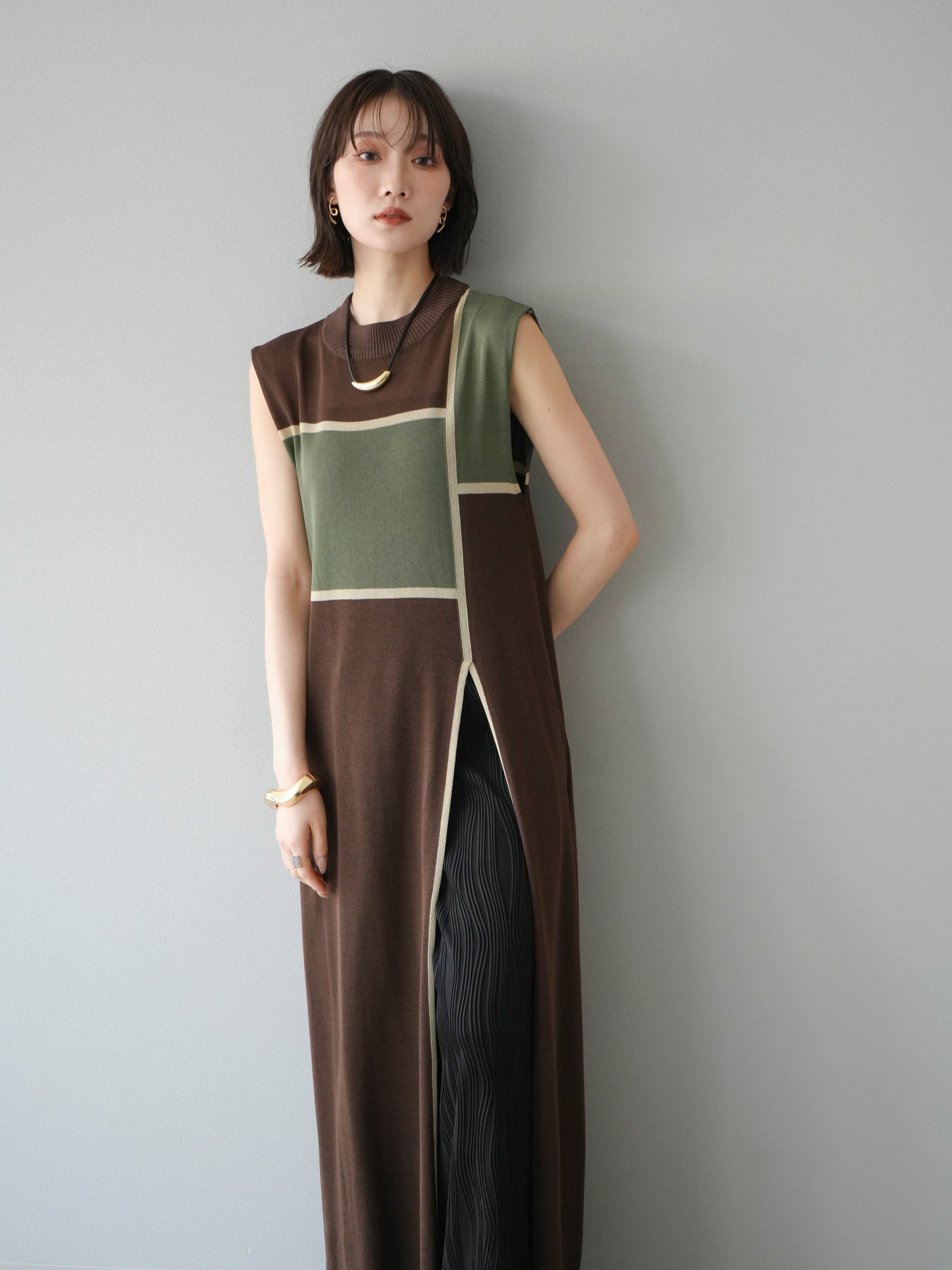 大膽搶眼的撞色針織洋裝。採用輕盈的透明針織布料,適度的透明度營造出春夏的氛圍。藝術感十足的配色方案引人注目,本身就極具視覺衝擊力。兩側的深開衩設計,方便活動,並帶來層疊穿搭的樂趣。時尚與休閒兼具,非常適合搭配褲子或吊帶裙。 *除下裝和吊帶裙(內衣)外,其他商品均不含內衣。