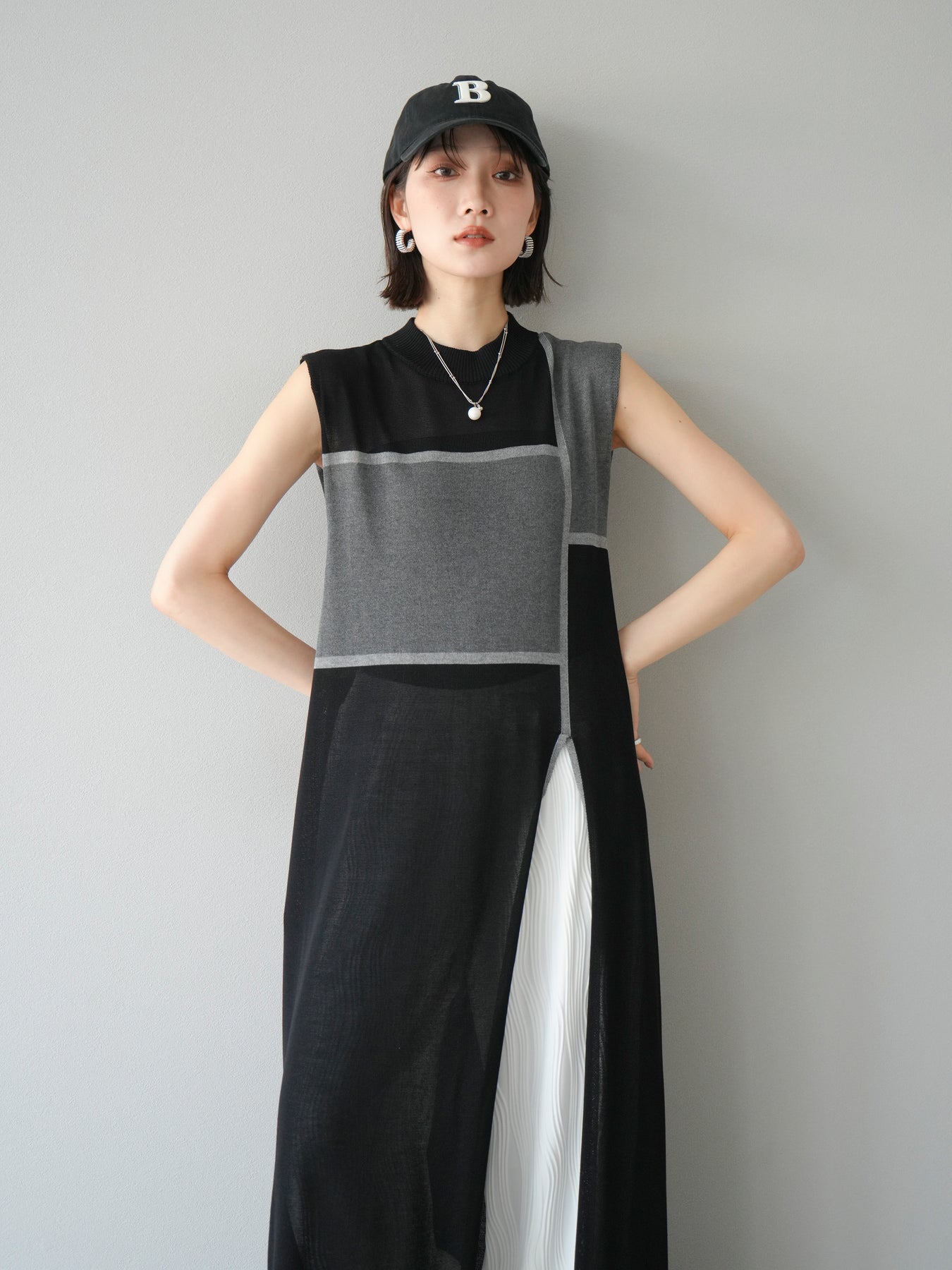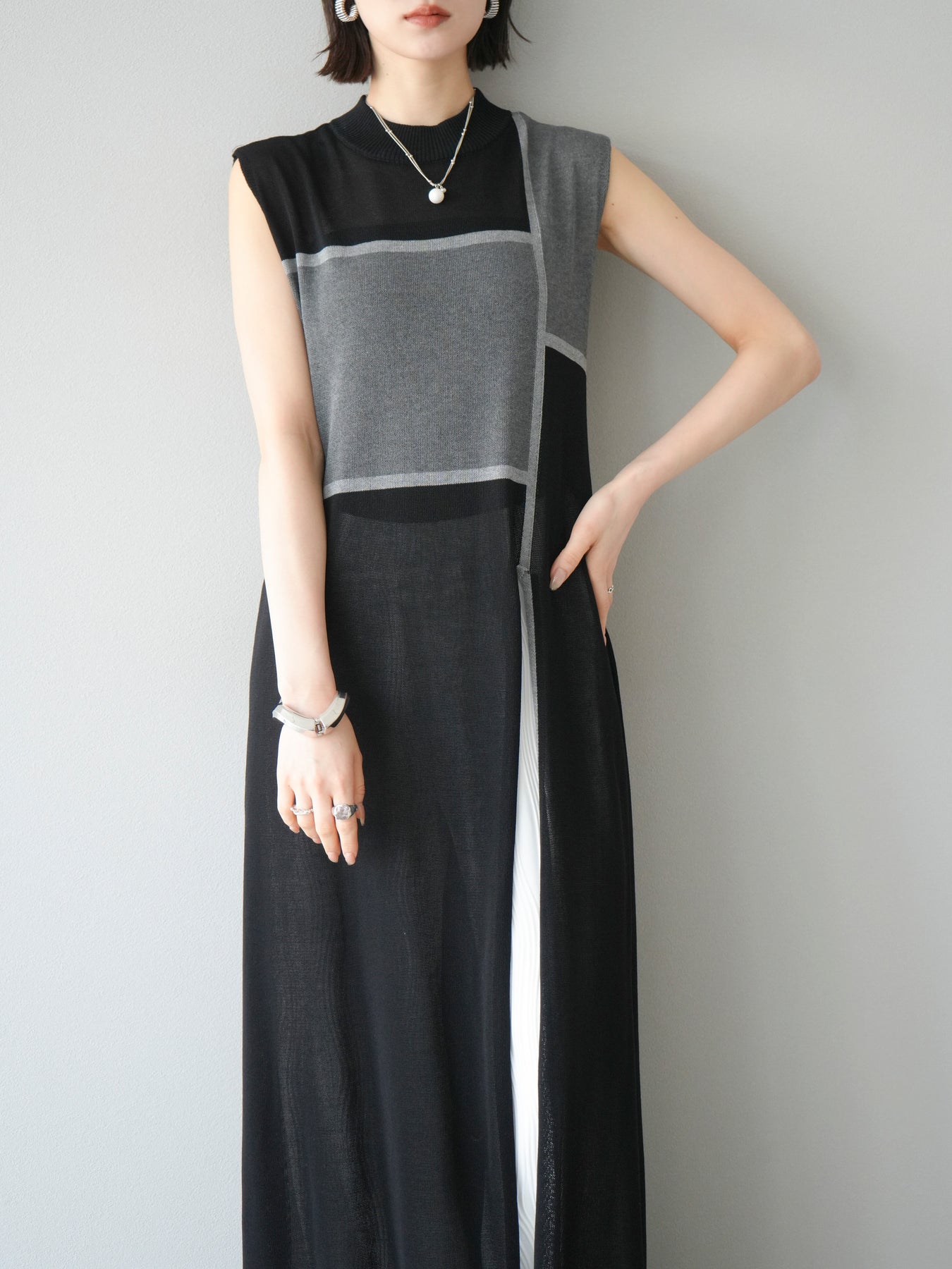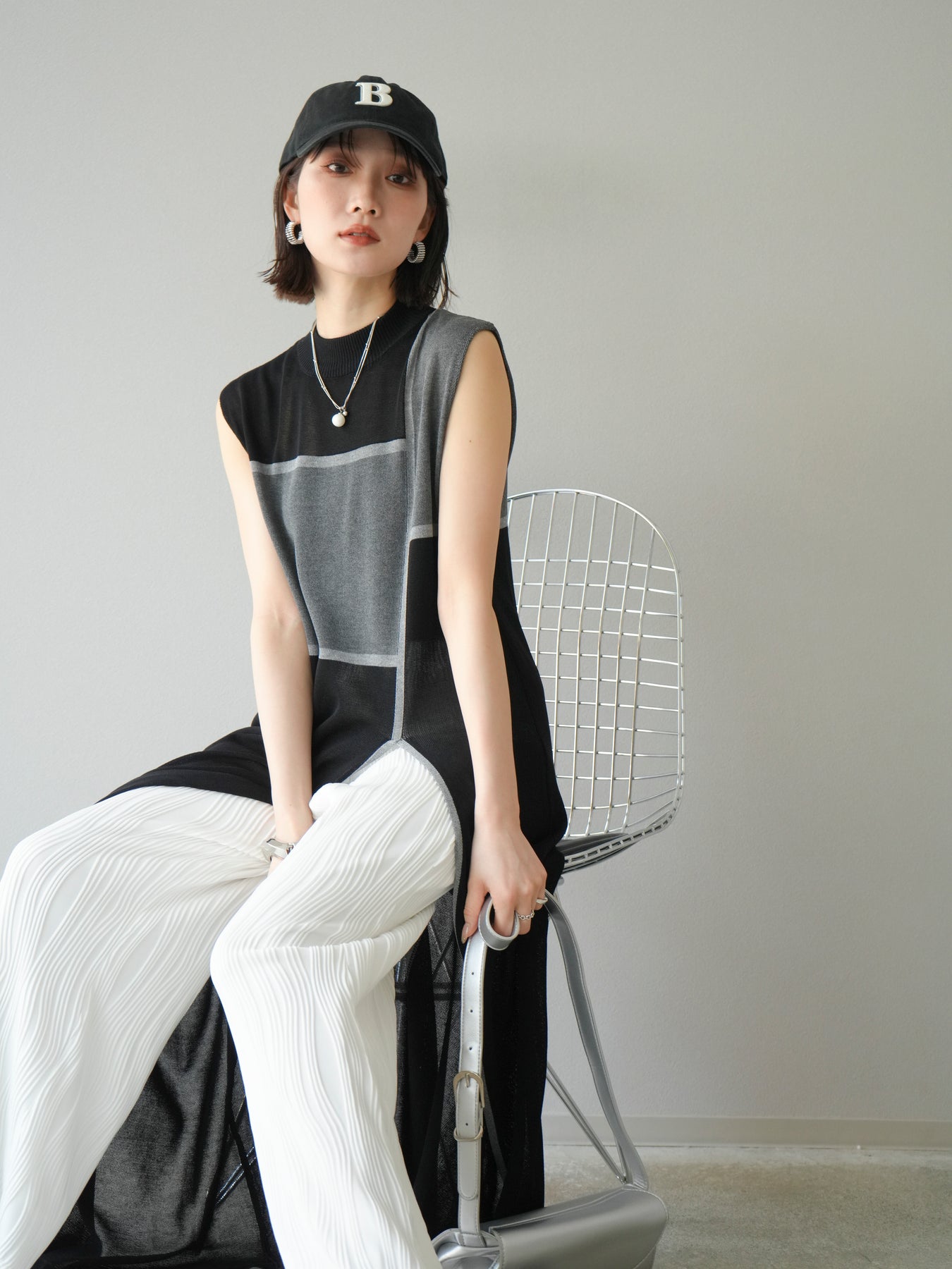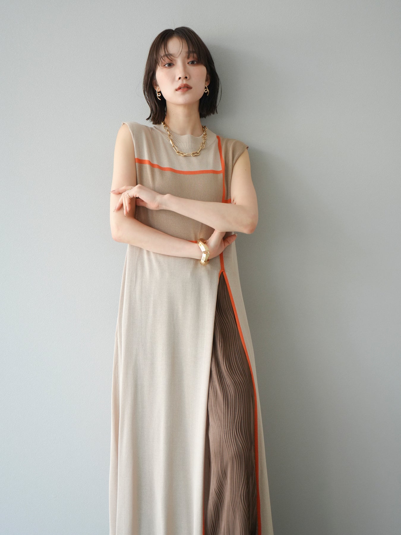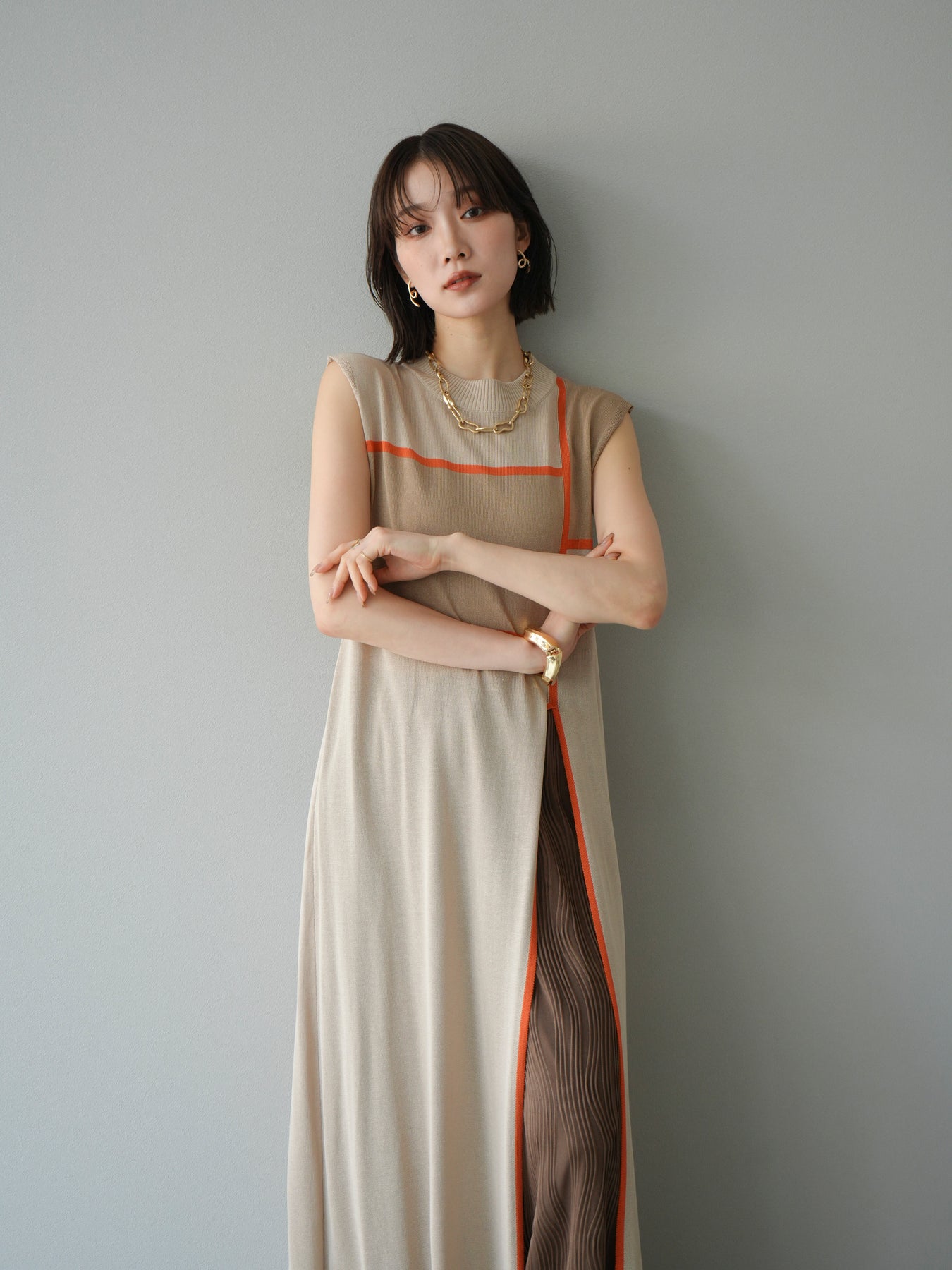 大膽搶眼的撞色針織洋裝。採用輕盈的透明針織布料,適度的透明度營造出春夏的氛圍。藝術感十足的配色方案引人注目,本身就極具視覺衝擊力。兩側的深開衩設計,方便活動,並帶來層疊穿搭的樂趣。時尚與休閒兼具,非常適合搭配褲子或吊帶裙。 *除下裝和吊帶裙(內衣)外,其他商品均不含內衣。