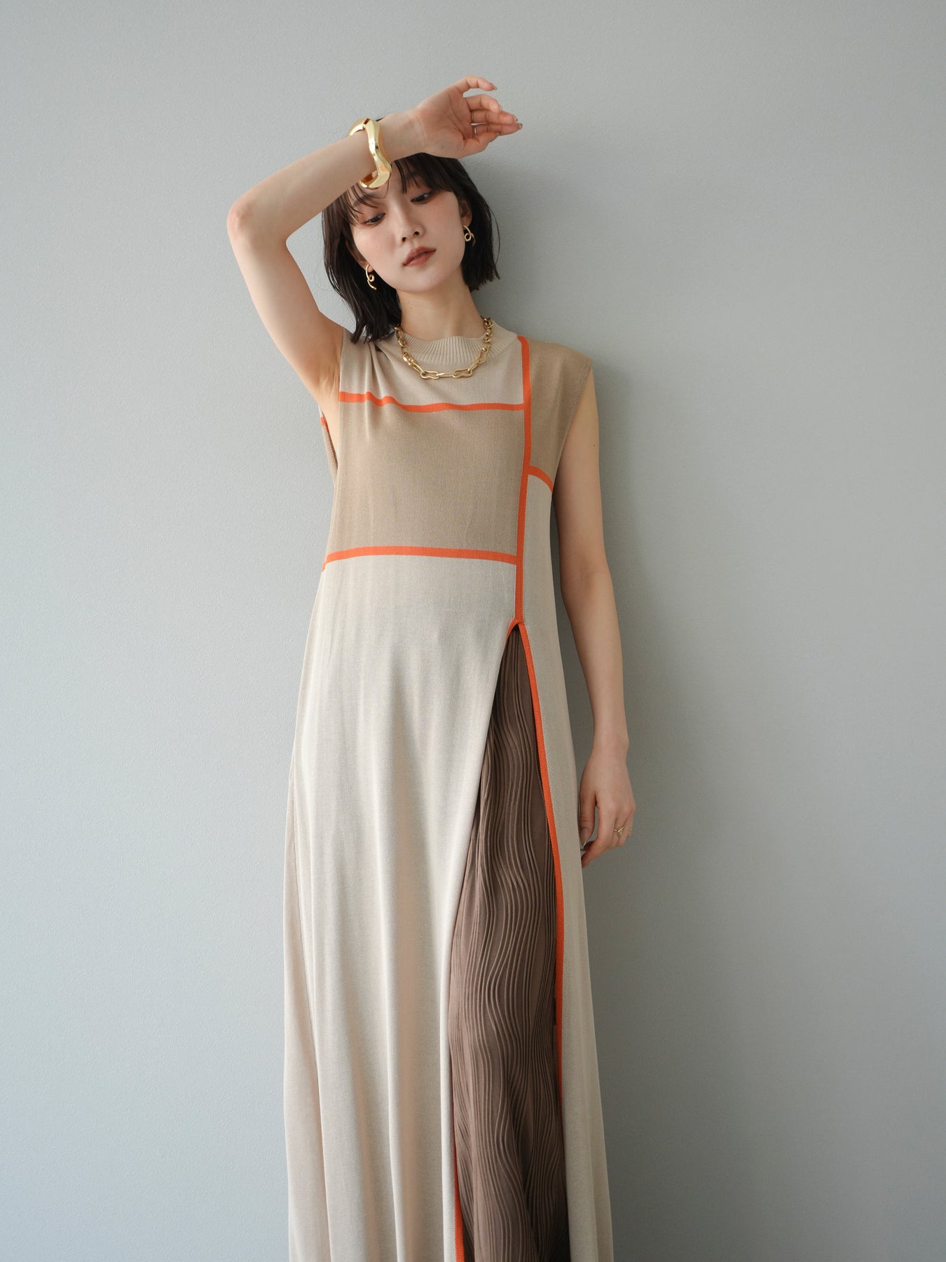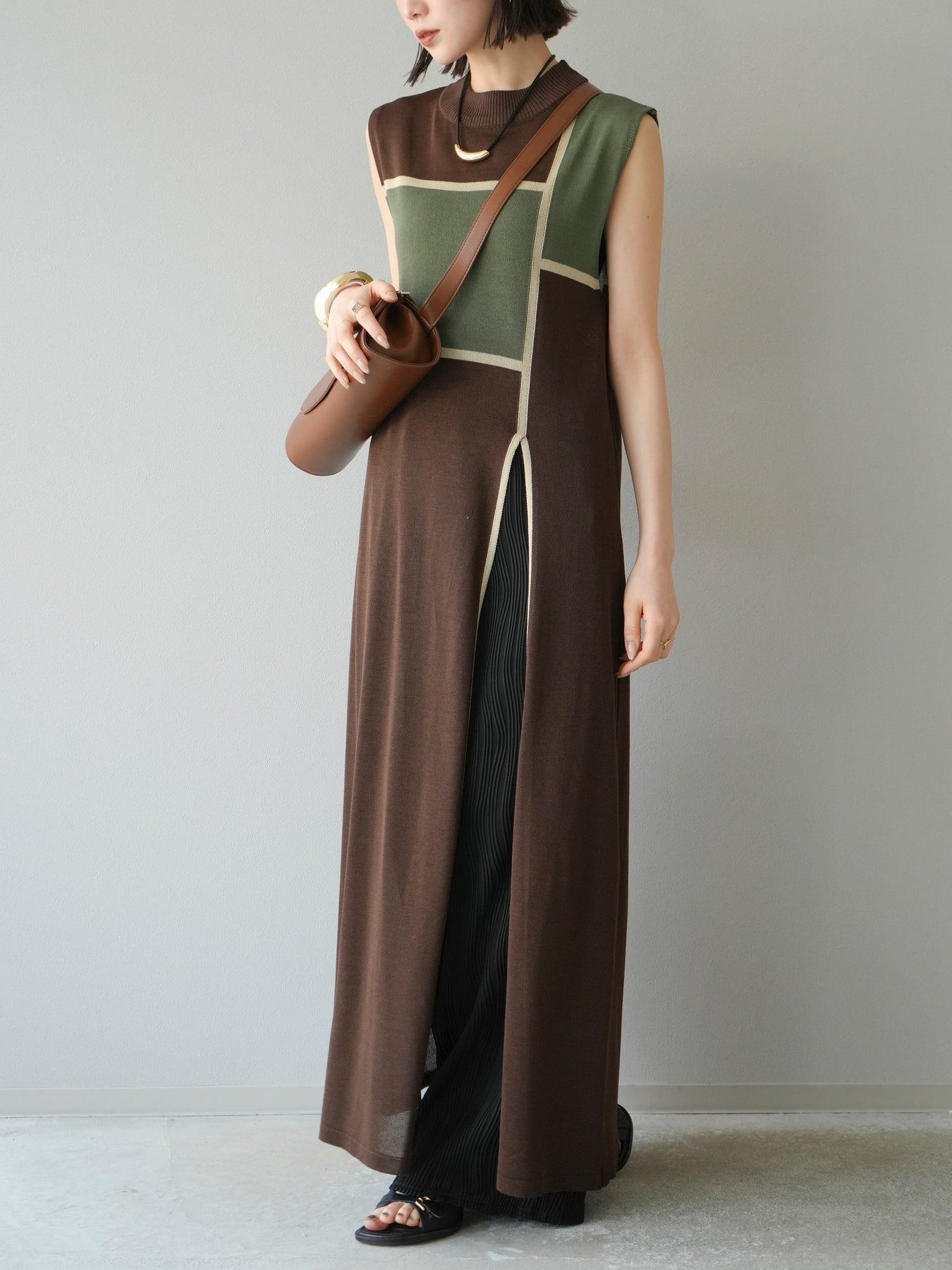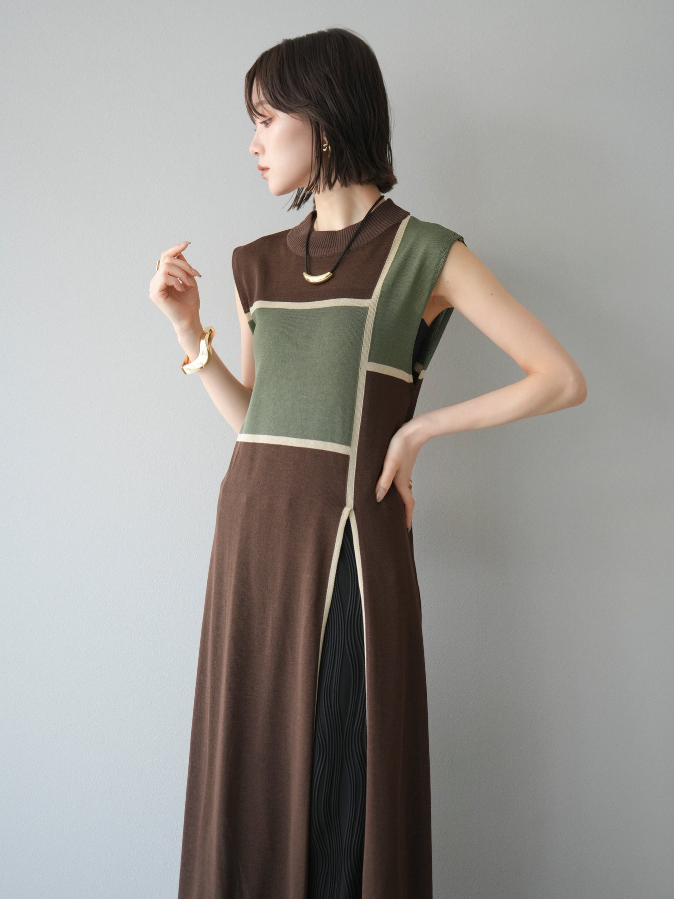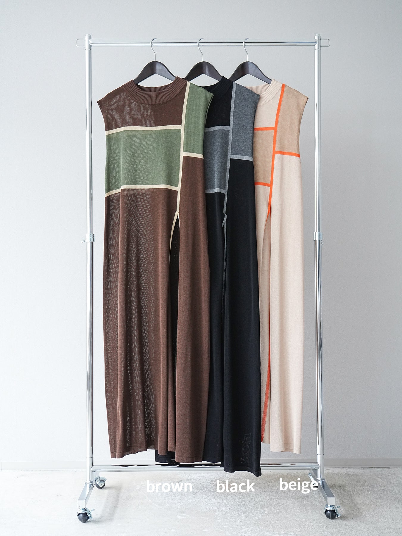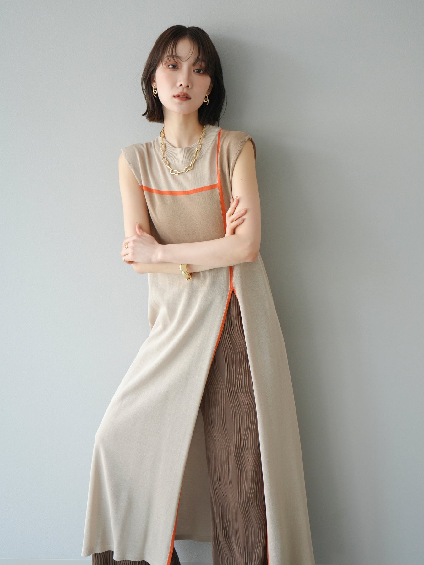 大膽搶眼的撞色針織洋裝。採用輕盈的透明針織布料,適度的透明度營造出春夏的氛圍。藝術感十足的配色方案引人注目,本身就極具視覺衝擊力。兩側的深開衩設計,方便活動,並帶來層疊穿搭的樂趣。時尚與休閒兼具,非常適合搭配褲子或吊帶裙。 *除下裝和吊帶裙(內衣)外,其他商品均不含內衣。