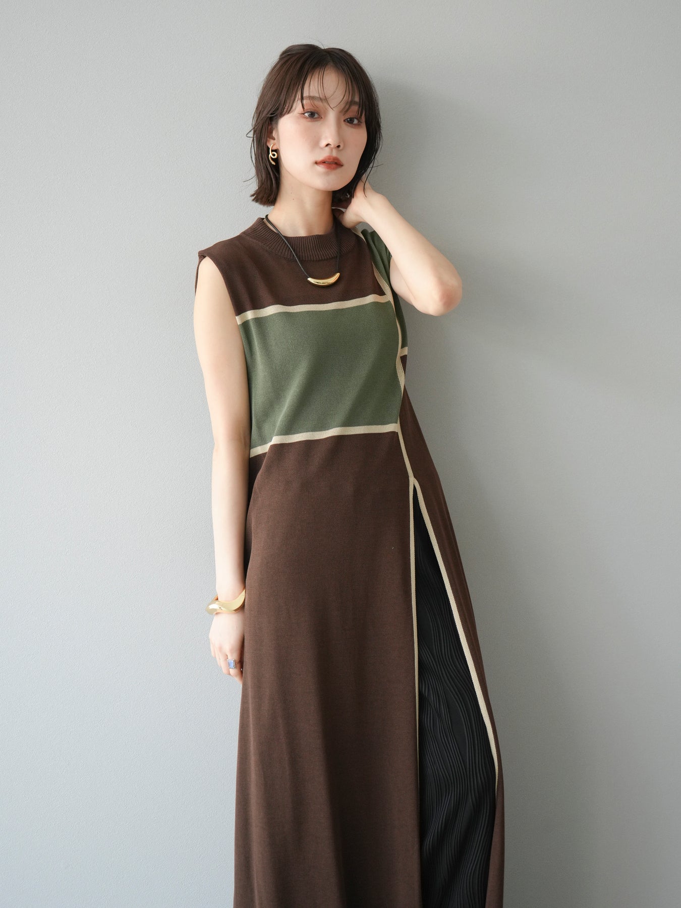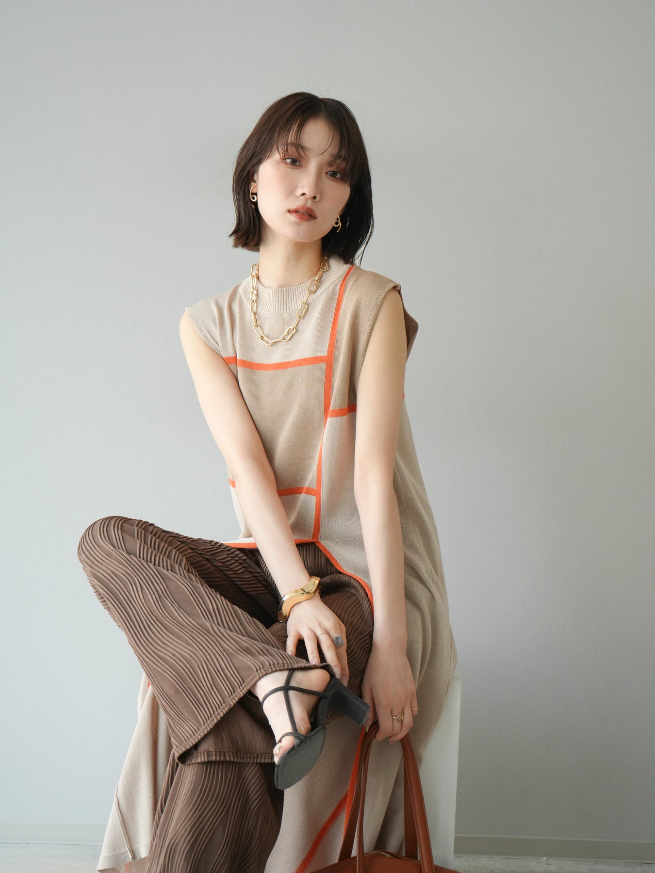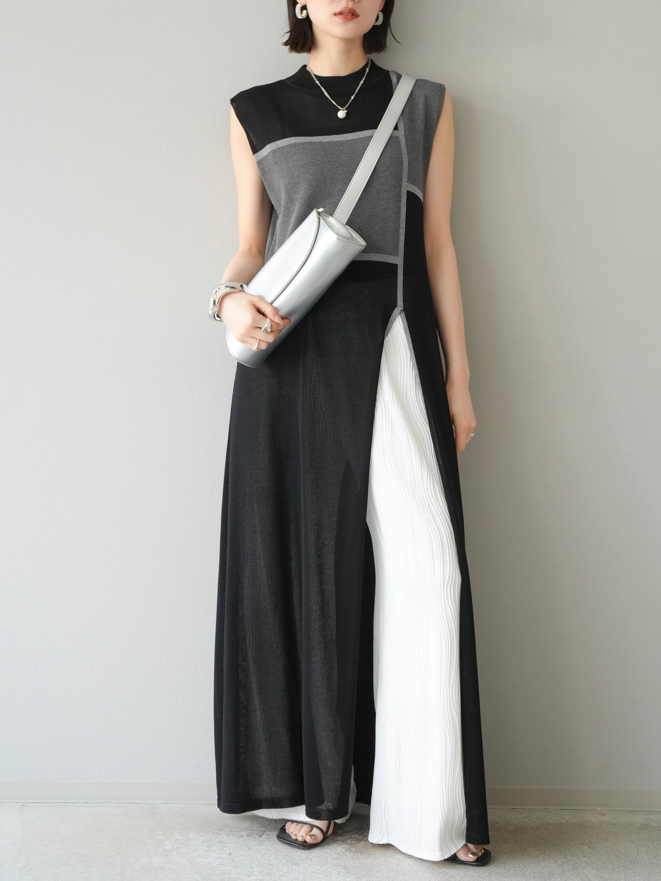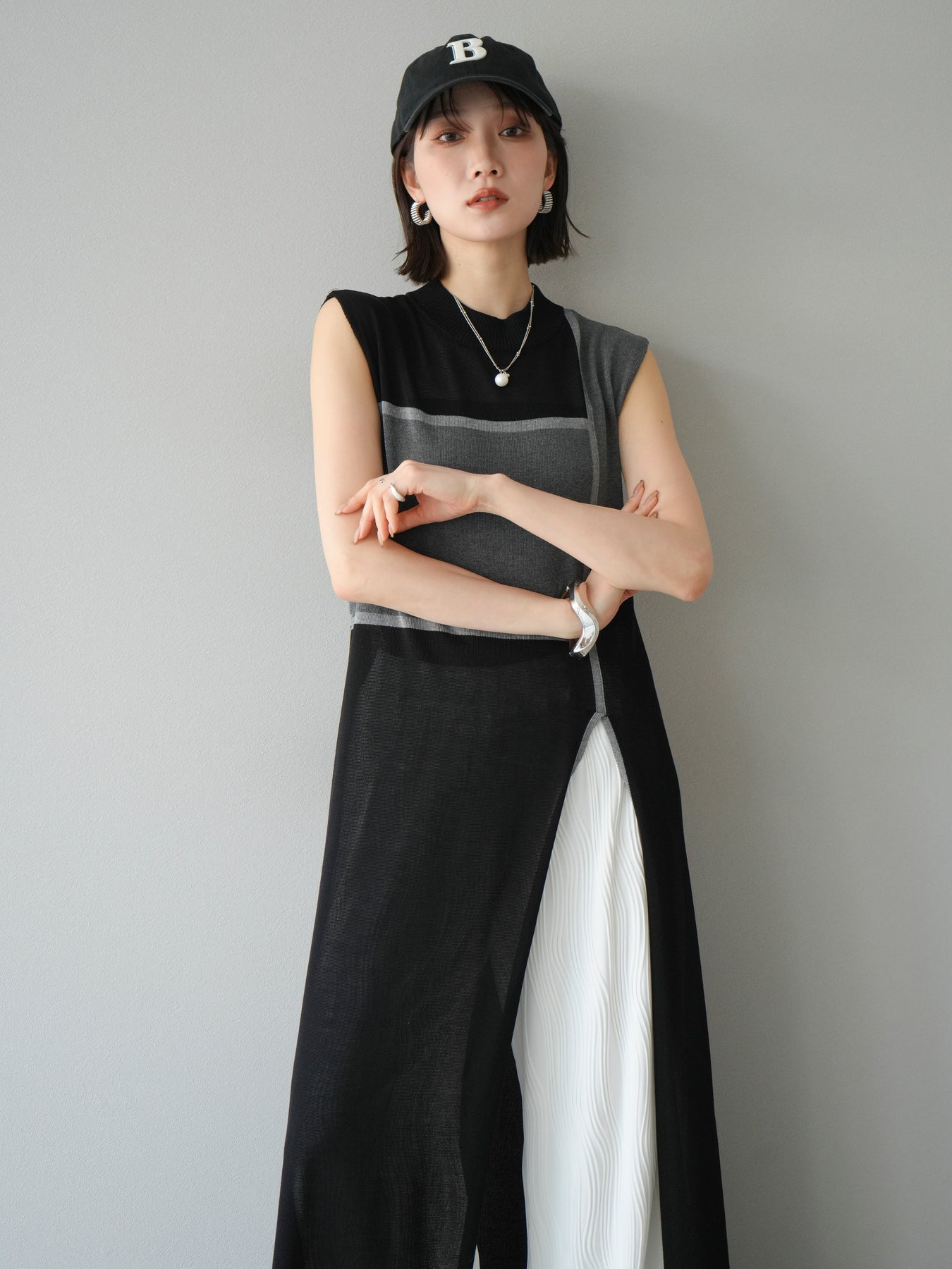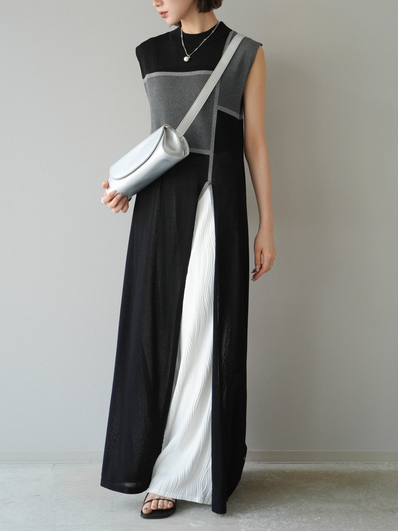 大膽搶眼的撞色針織洋裝。採用輕盈的透明針織布料,適度的透明度營造出春夏的氛圍。藝術感十足的配色方案引人注目,本身就極具視覺衝擊力。兩側的深開衩設計,方便活動,並帶來層疊穿搭的樂趣。時尚與休閒兼具,非常適合搭配褲子或吊帶裙。 *除下裝和吊帶裙(內衣)外,其他商品均不含內衣。