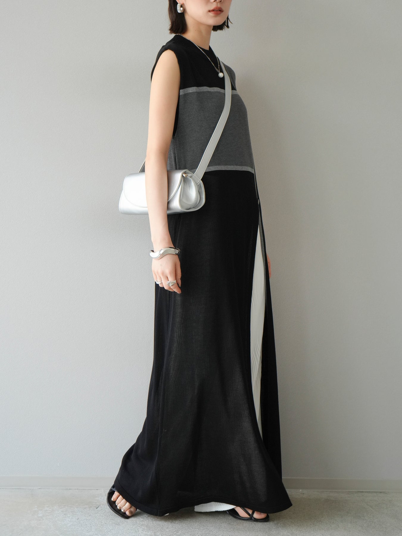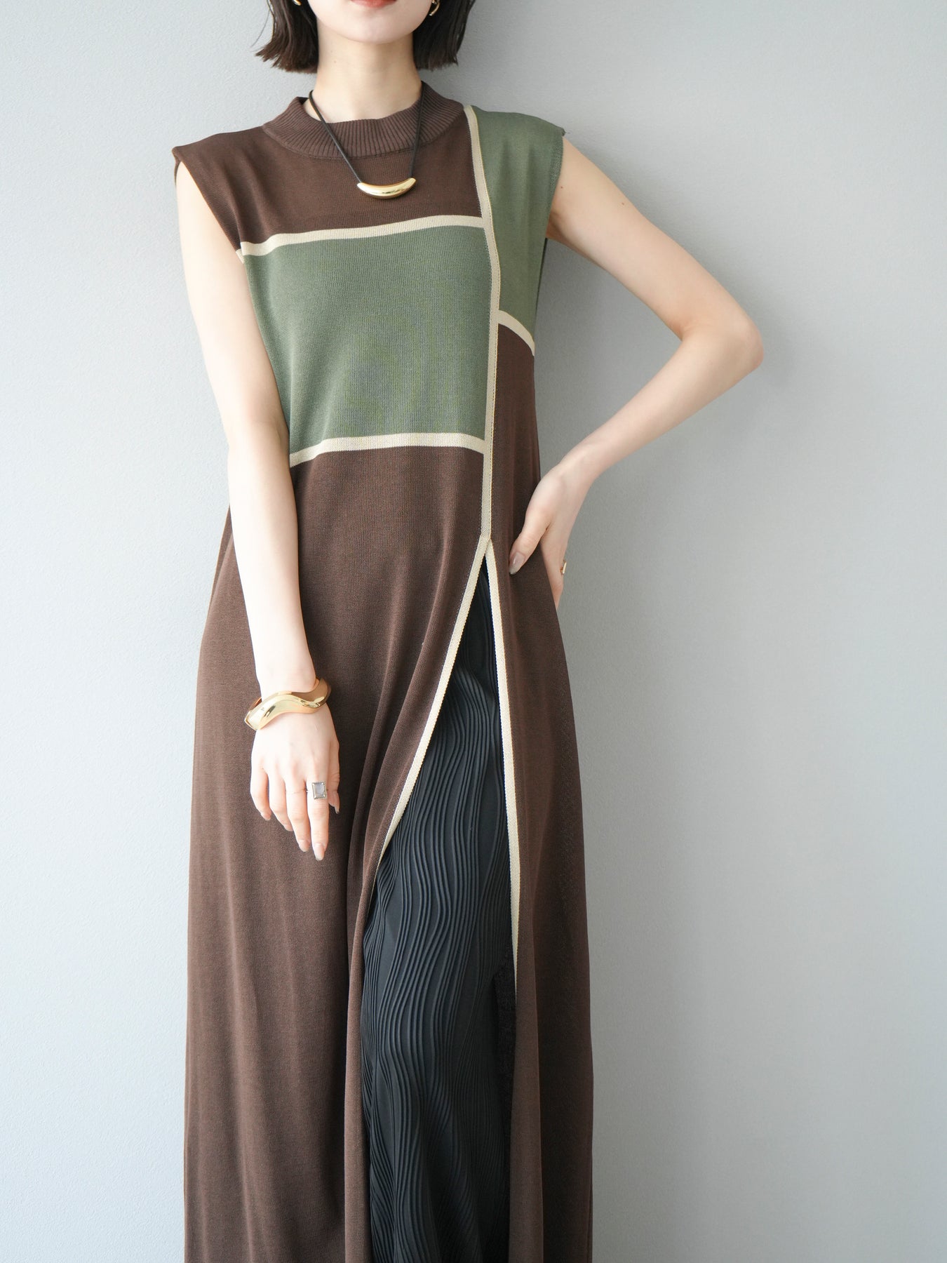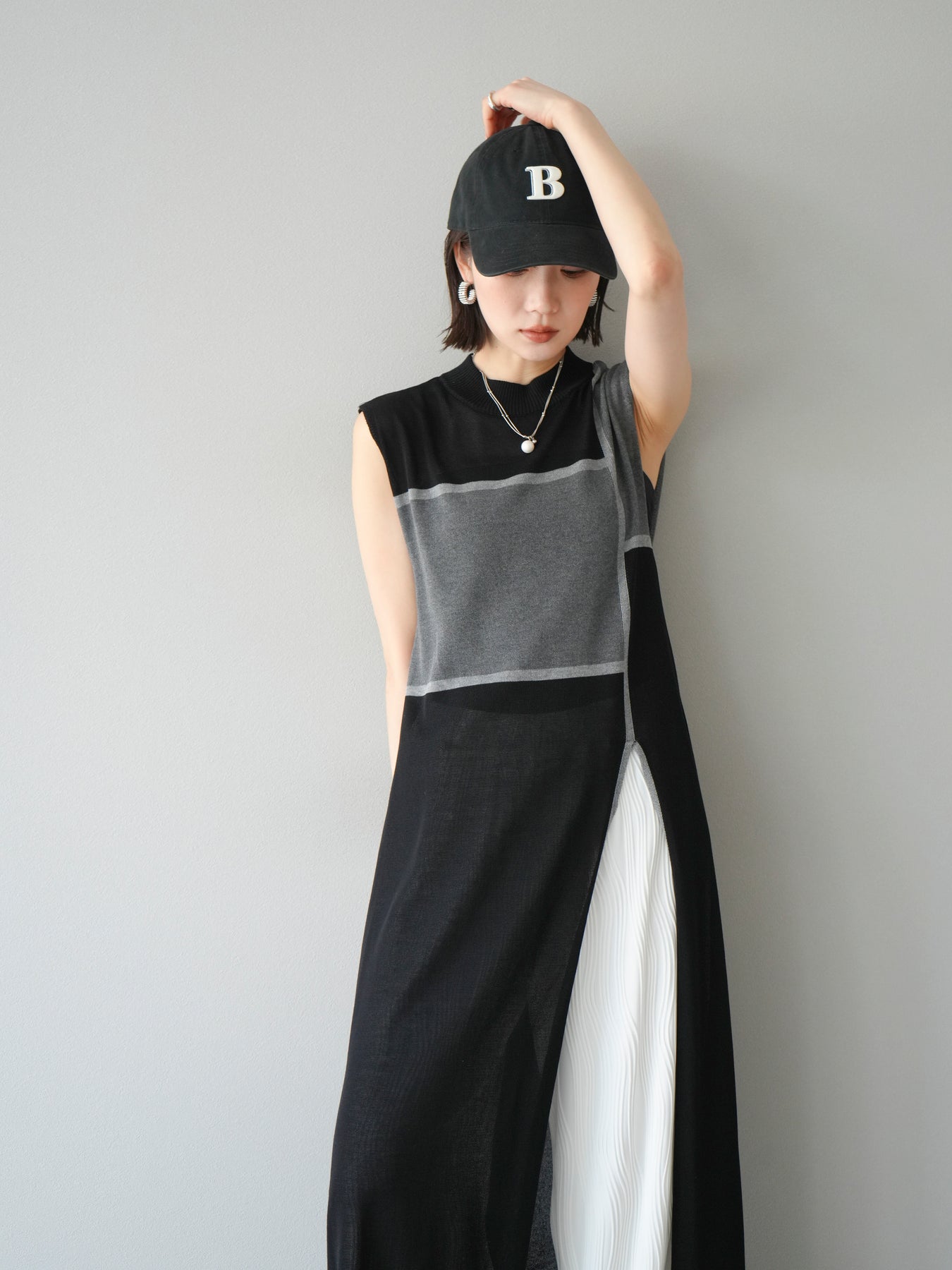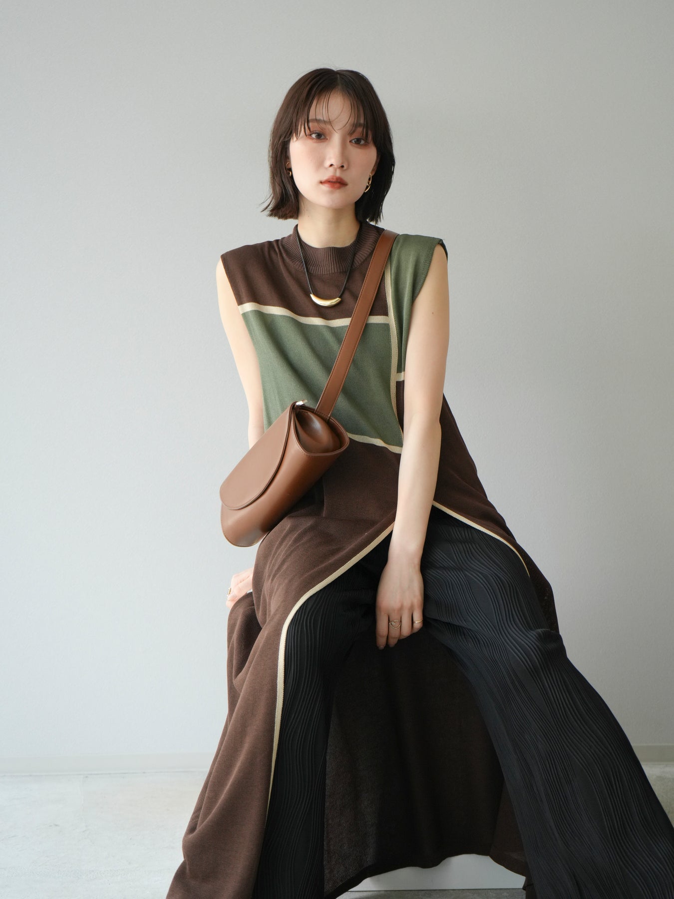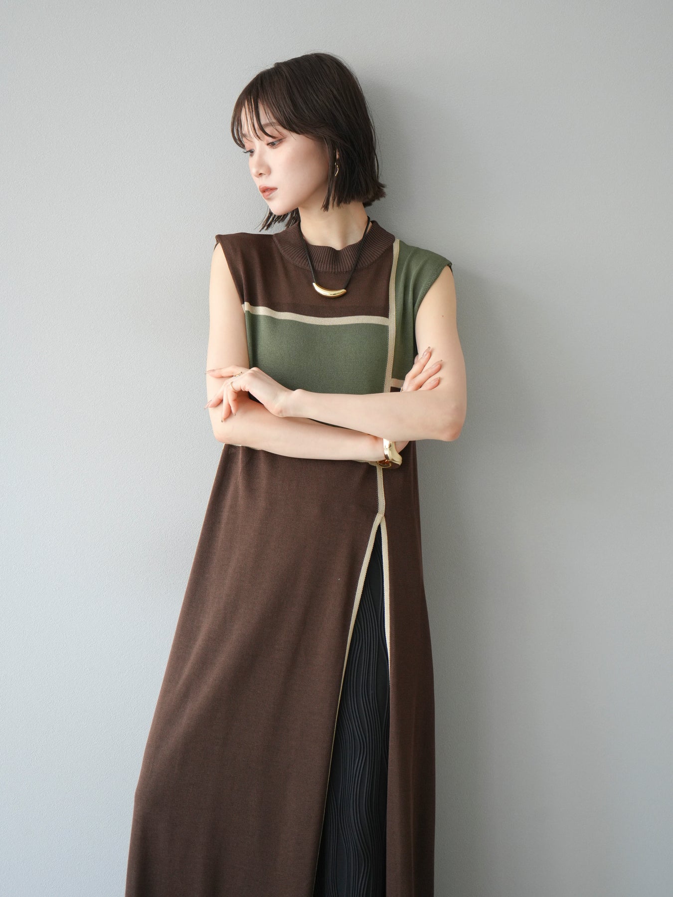 大膽搶眼的撞色針織洋裝。採用輕盈的透明針織布料,適度的透明度營造出春夏的氛圍。藝術感十足的配色方案引人注目,本身就極具視覺衝擊力。兩側的深開衩設計,方便活動,並帶來層疊穿搭的樂趣。時尚與休閒兼具,非常適合搭配褲子或吊帶裙。 *除下裝和吊帶裙(內衣)外,其他商品均不含內衣。