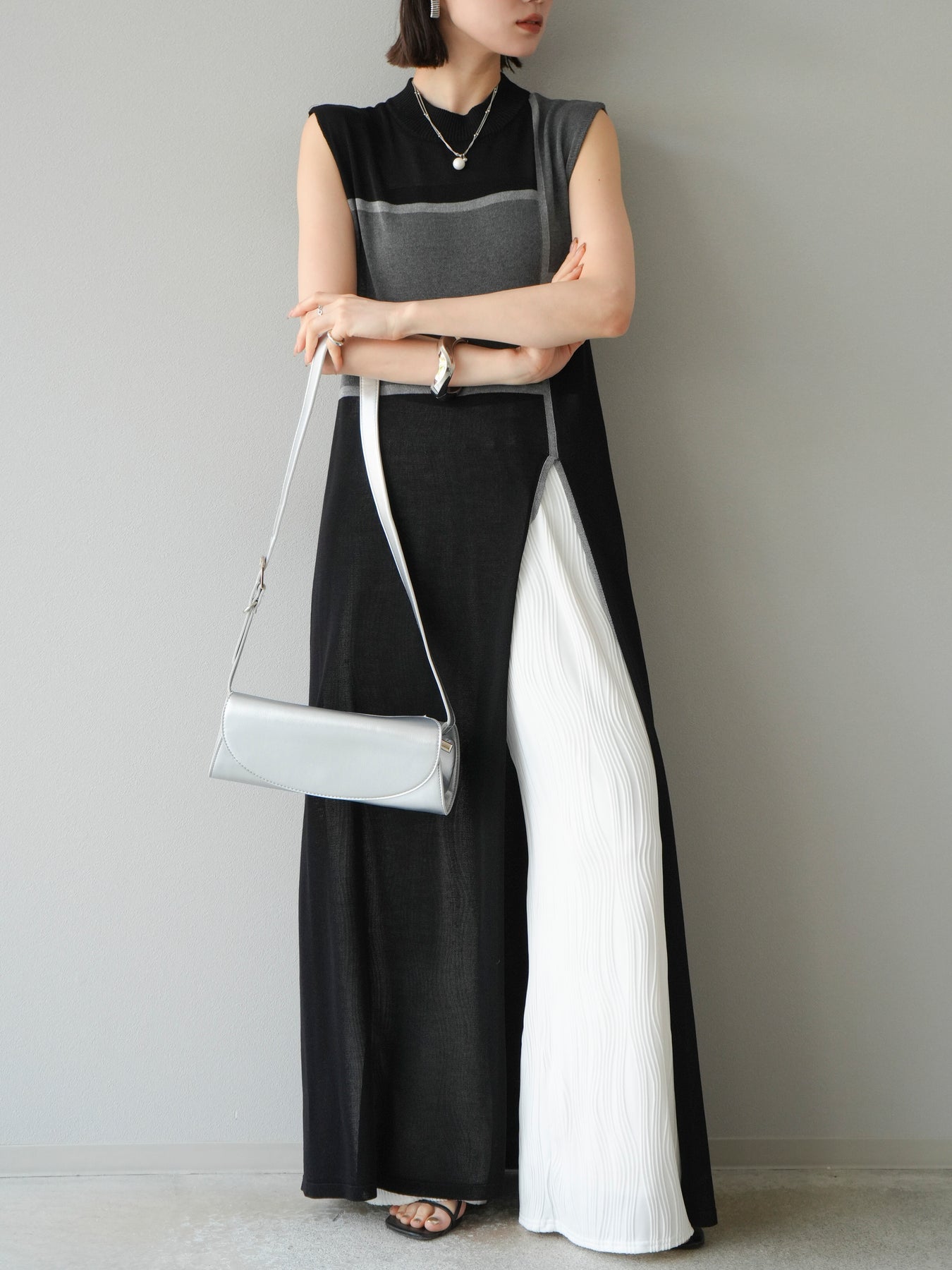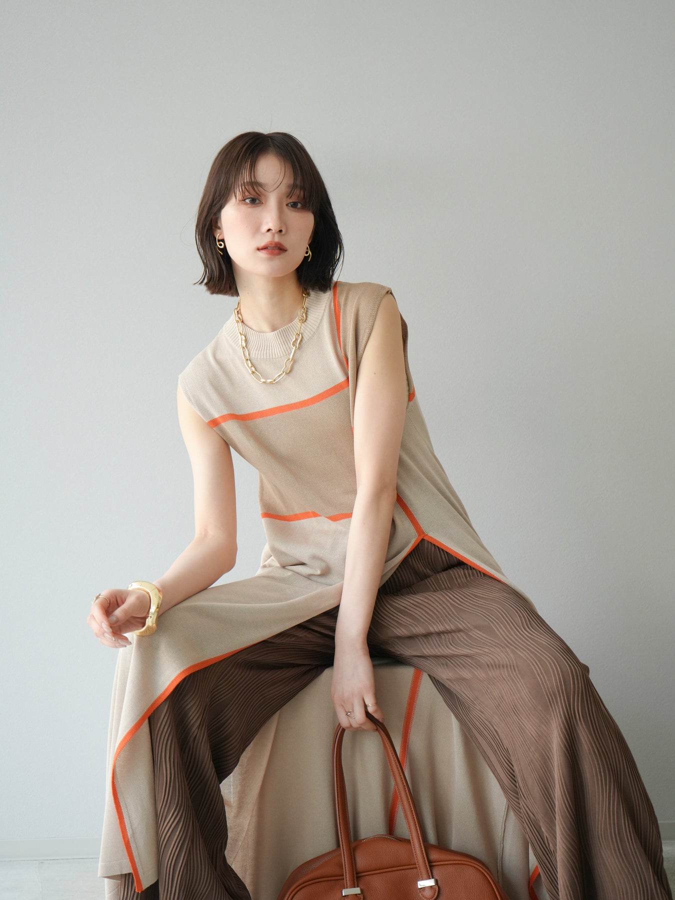 [SET] 配色開衩針織洋裝 + 波浪滾邊休閒褲 (2件套)