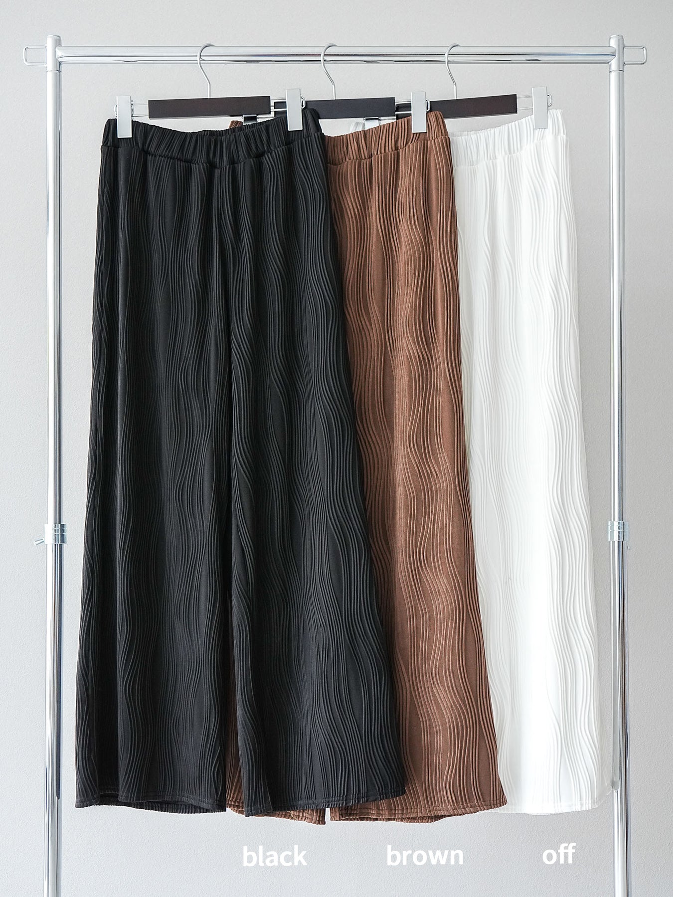 這款時尚休閒褲採用醒目的立體波浪滾邊設計。柔和的波浪紋路,簡潔卻不失深邃感。褲腰採用全彈性設計,方便穿脫。穿著舒適,同時能凸顯垂直線條,打造纖細身形。適度寬鬆的廓形,可與T卹、襯衫等各種上衣、背心、襯衫等完美搭配。 *除下裝和吊帶背心(內衣)外,其他商品均不含內衣。