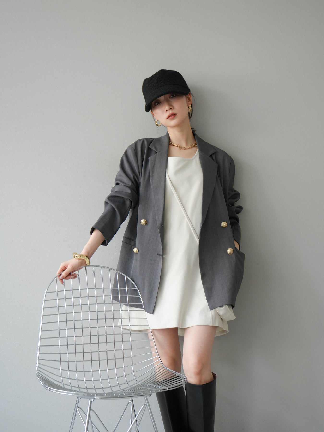 ◆ 【預訂】金色紐帶斜紋雙層修身夾克