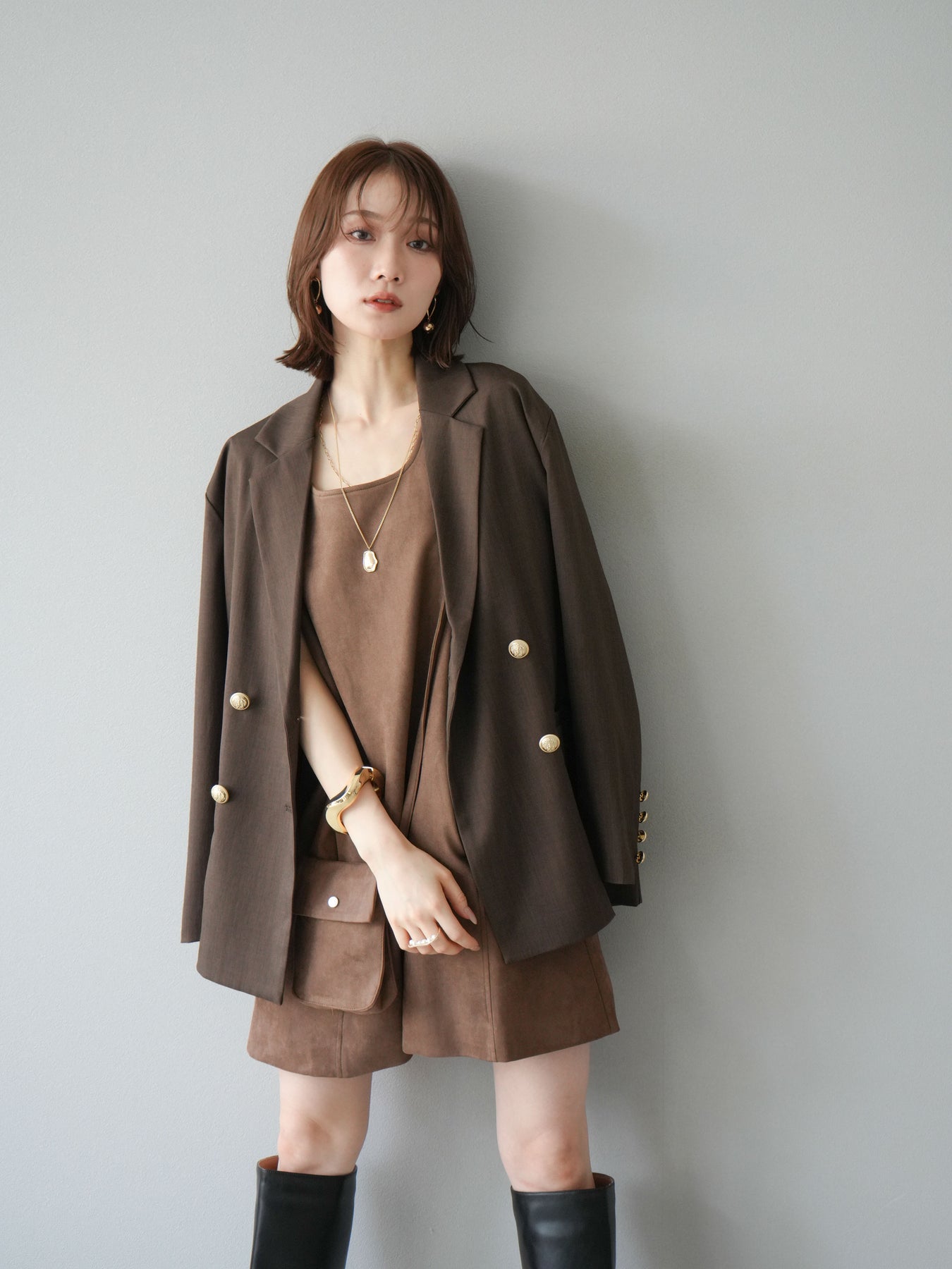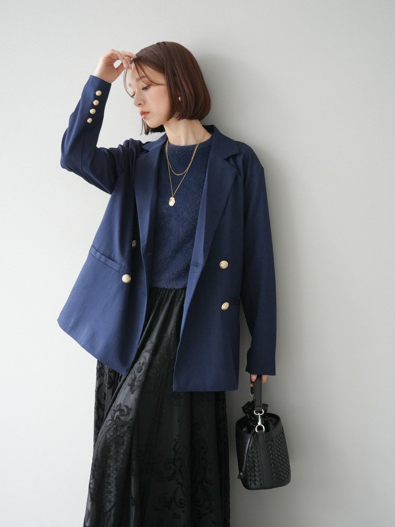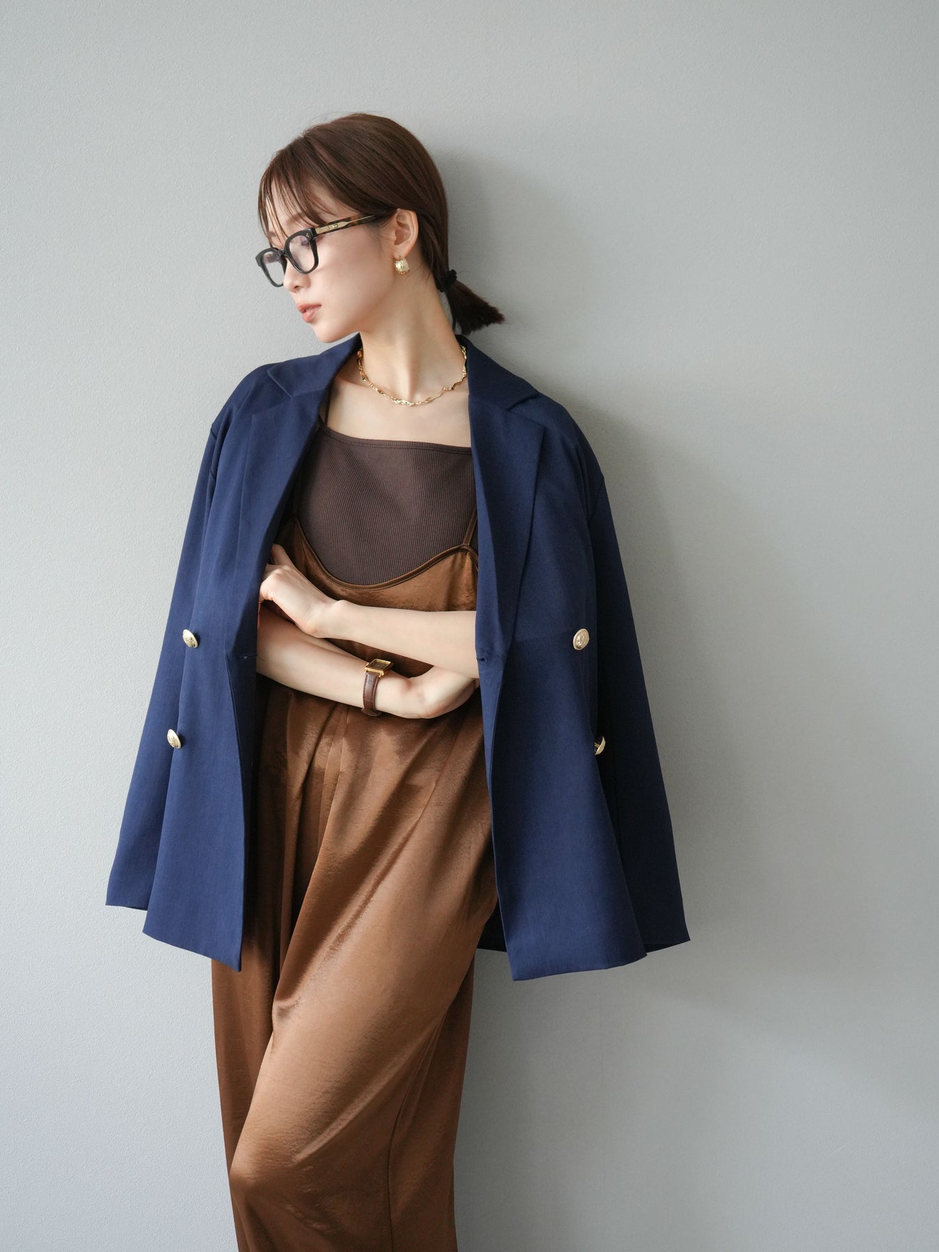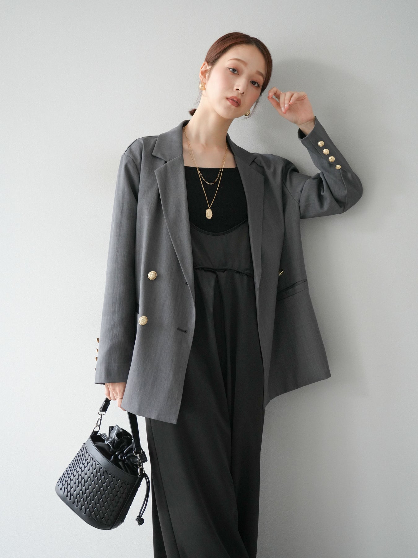 這款雙排扣剪裁夾克採用精緻柔和的斜紋面料製成。正面的金色連結增添經典氣息,即使是最基本的服裝也能提升質感。寬鬆的廓形,輕鬆打造輕鬆休閒的造型。它百搭百搭,適合正式場合和休閒場合,搭配褲裝打造中性風,或內搭連身裙或半身裙,打造柔和氣質。這款百搭夾克適合各種場合,從日常穿著到特殊場合,應有盡有。 *所有商品(下裝和吊帶背心(內衣)除外)均不含內衣。
