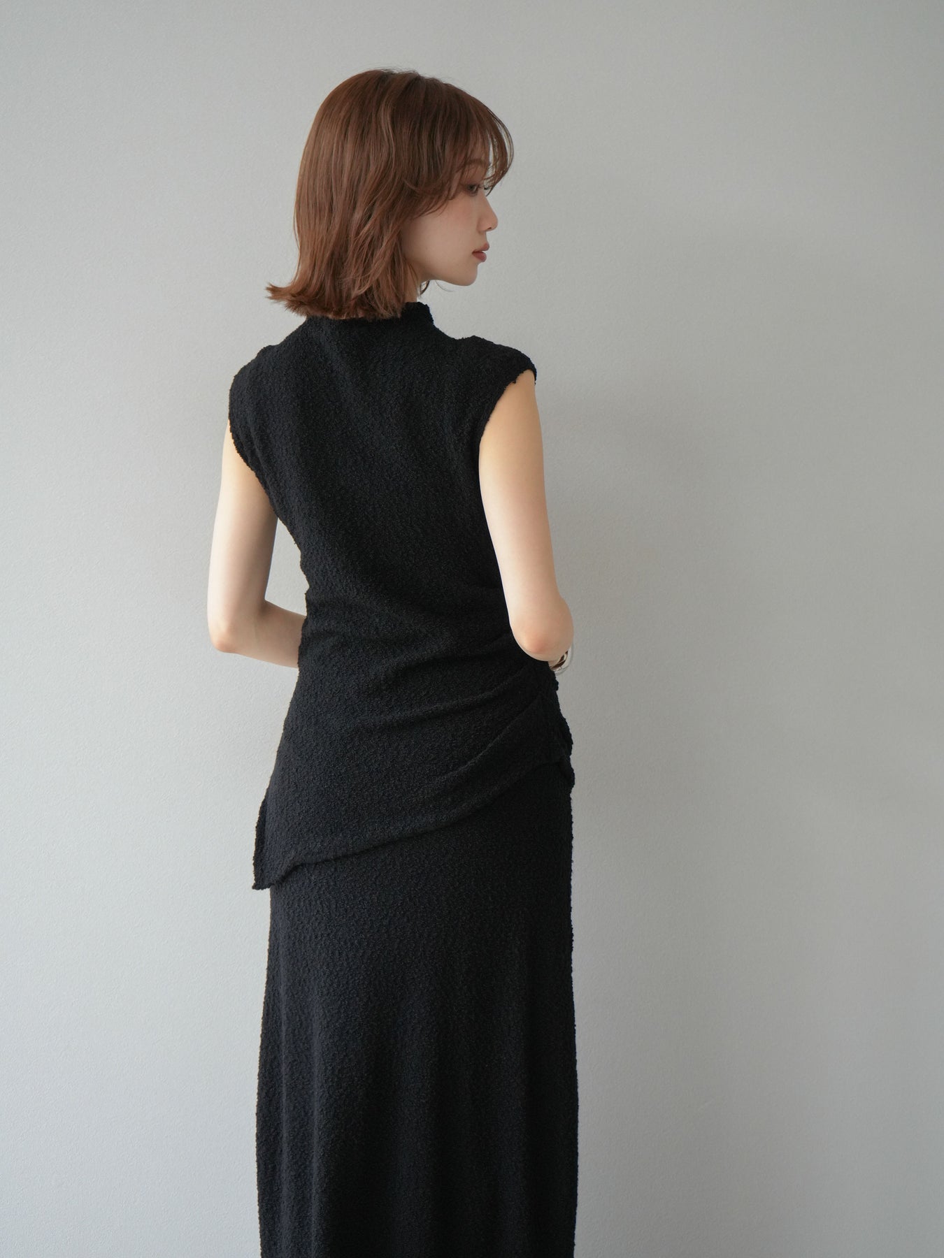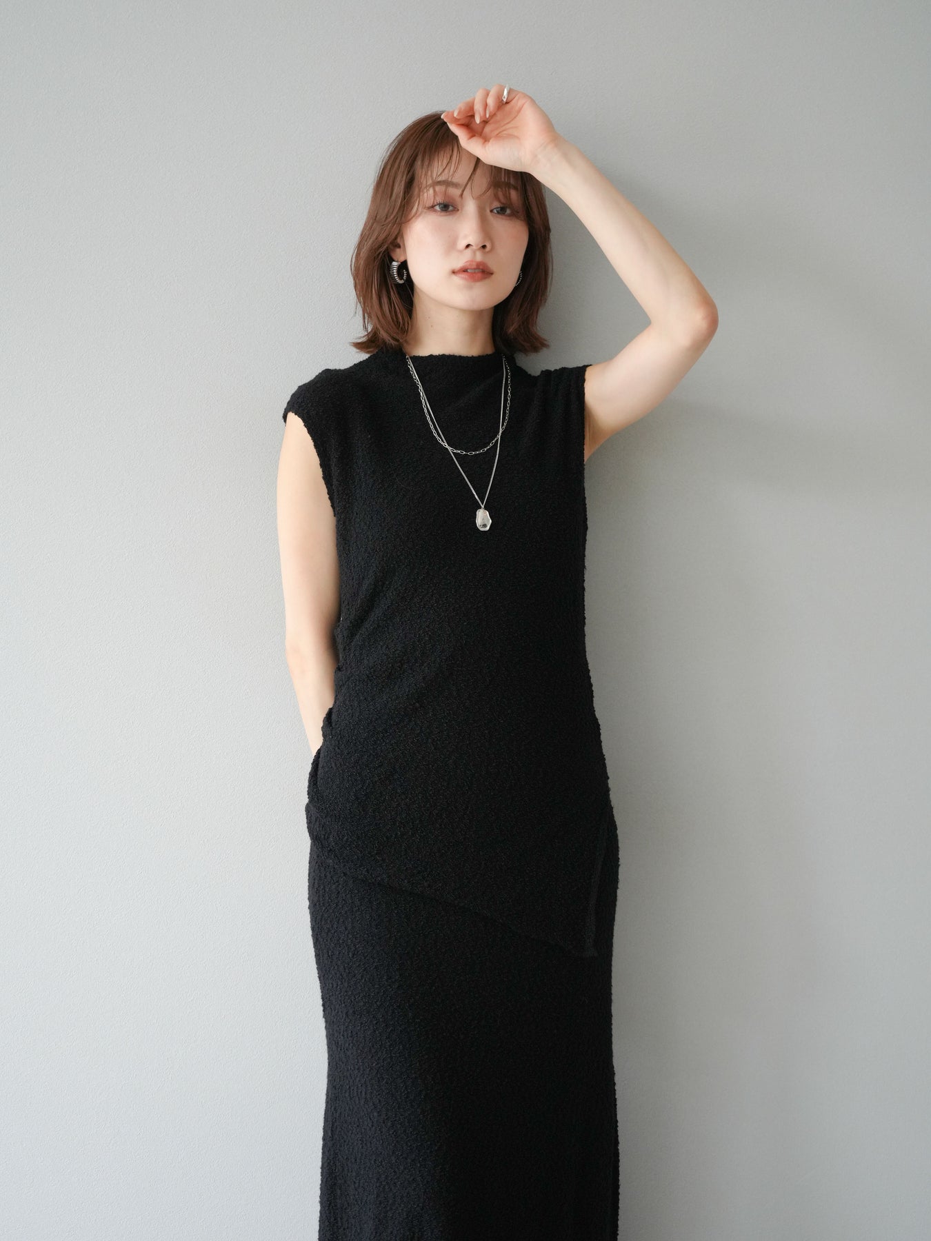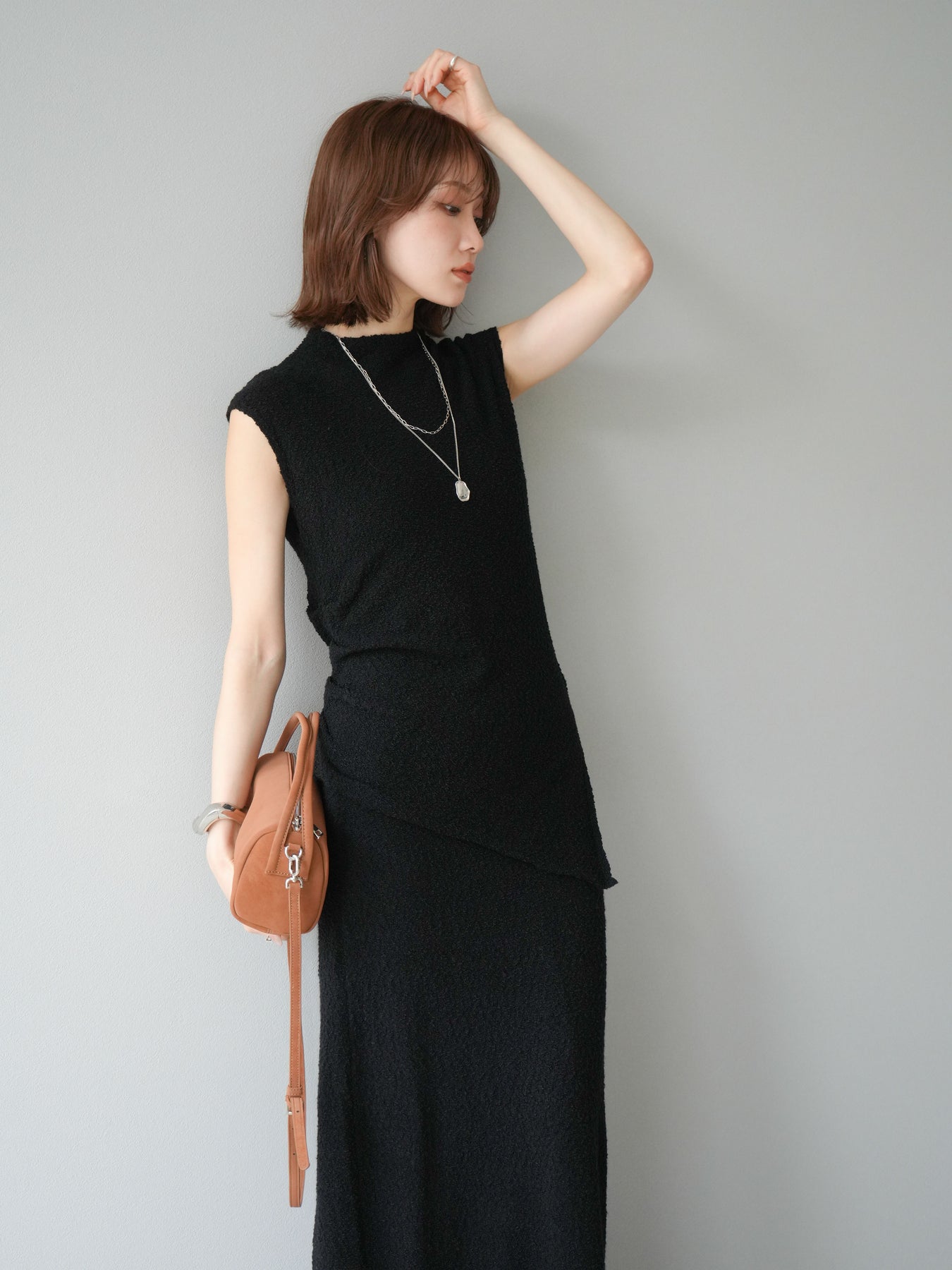 這款無袖上衣採用立體圈布製成。輪廓簡潔,不對稱腰帶增添一絲現代感。適中的厚度確保修身剪裁,穿著舒適。簡潔的長度使其易於與下裝搭配,百搭性十足,可輕鬆搭配褲裝和裙裝。搭配同材質的半身裙,更顯精緻優雅。 ※除下裝、吊帶背心(內衣)以外的商品均為標準品,不含內衣。