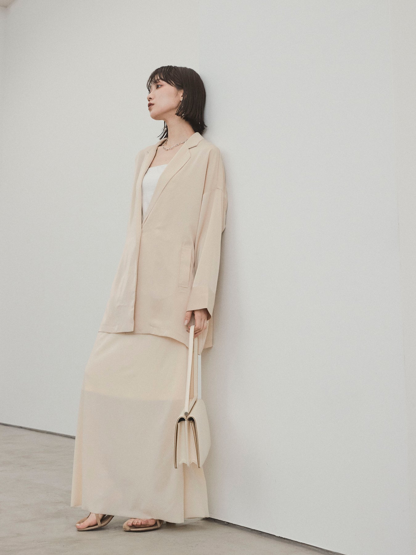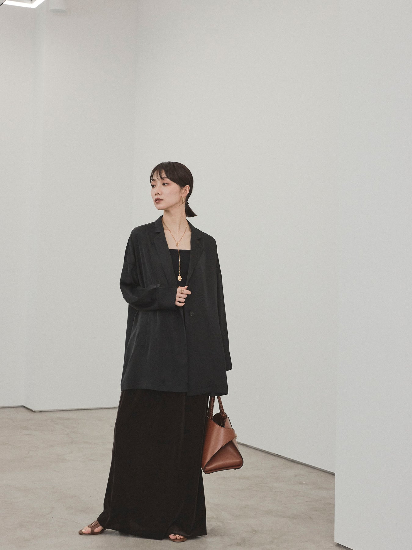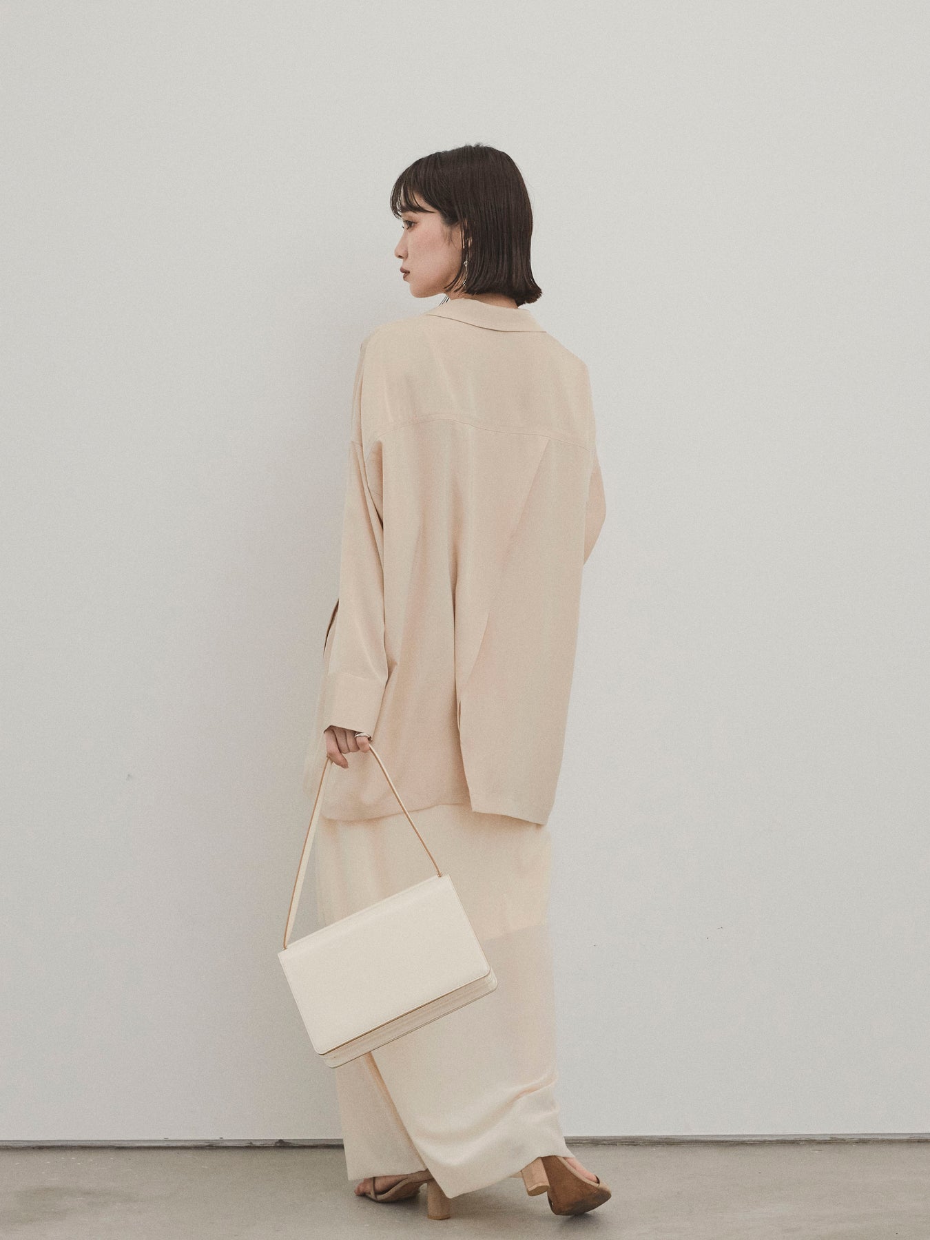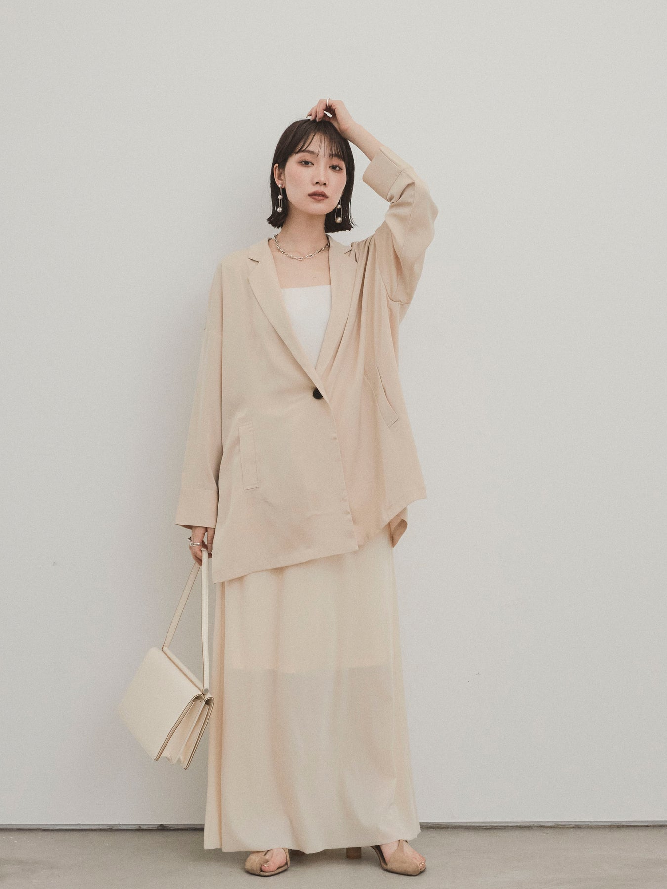 這款輕便外套採用霧面緞面材質製成,光澤度適中,營造出優雅而輕鬆的外觀。 光滑的垂墜自然貼合身體,只需穿上即可展現精緻的外觀。 它具有寬鬆的超大輪廓,並由輕質材料製成,易於穿戴。 捲起的袖子和自然的垂墜感賦予設計一種精緻的感覺。 只需搭配 T 卹或背心即可展現輕鬆休閒風格,或搭配洋裝和休閒褲即可展現更優雅的外觀。 這是一件適合四季穿著的服裝,它將成為您衣櫃中的必備品。