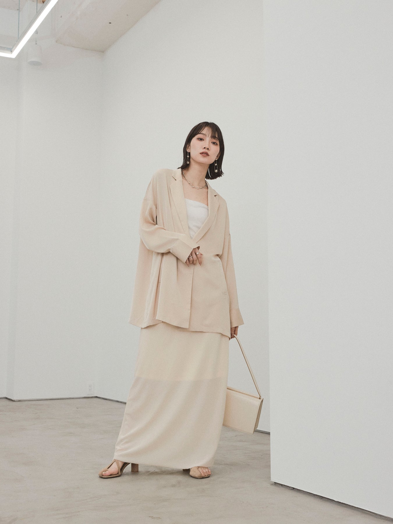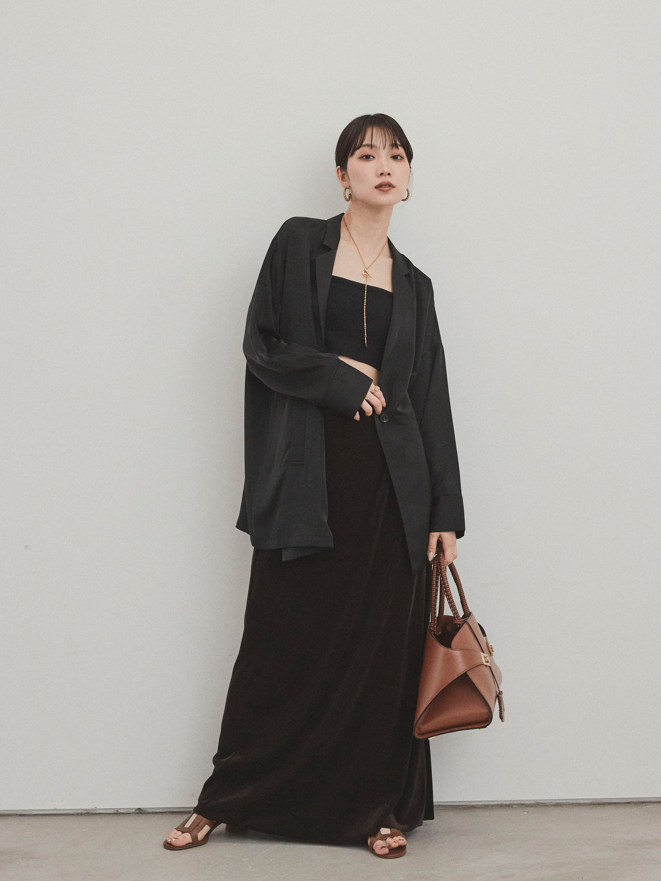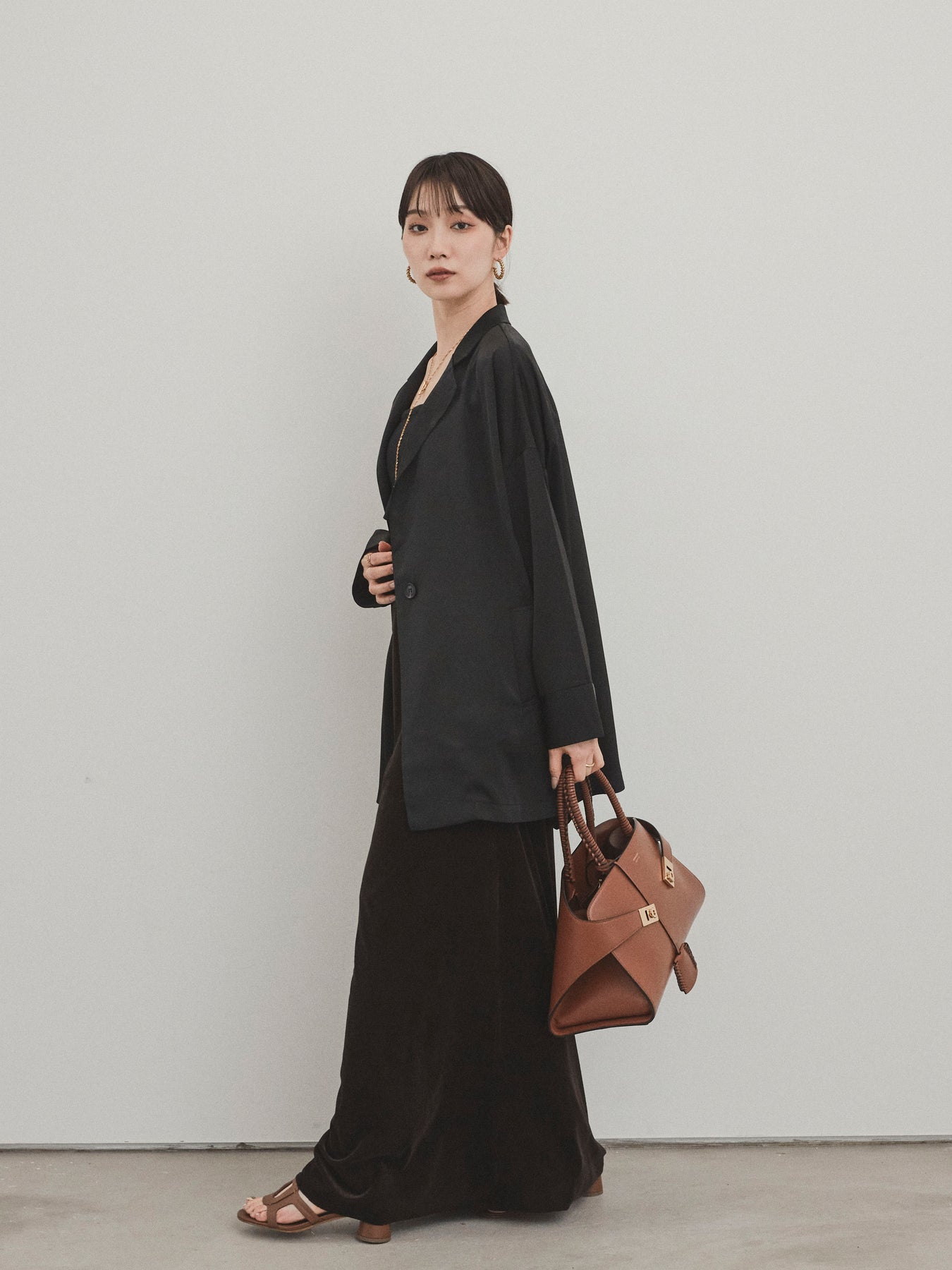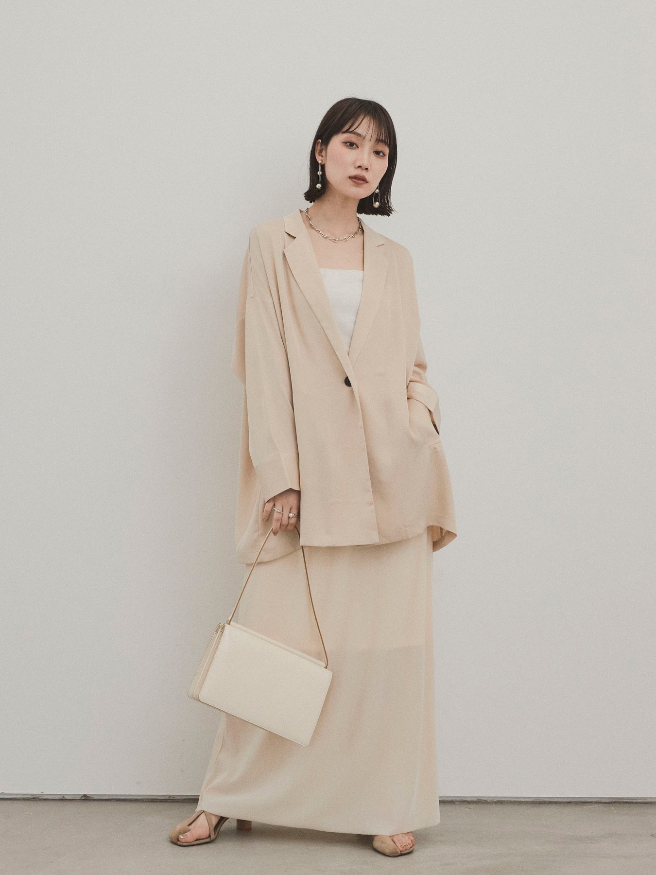 這款輕便外套採用霧面緞面材質製成,光澤度適中,營造出優雅而輕鬆的外觀。 光滑的垂墜自然貼合身體,只需穿上即可展現精緻的外觀。 它具有寬鬆的超大輪廓,並由輕質材料製成,易於穿戴。 捲起的袖子和自然的垂墜感賦予設計一種精緻的感覺。 只需搭配 T 卹或背心即可展現輕鬆休閒風格,或搭配洋裝和休閒褲即可展現更優雅的外觀。 這是一件適合四季穿著的服裝,它將成為您衣櫃中的必備品。