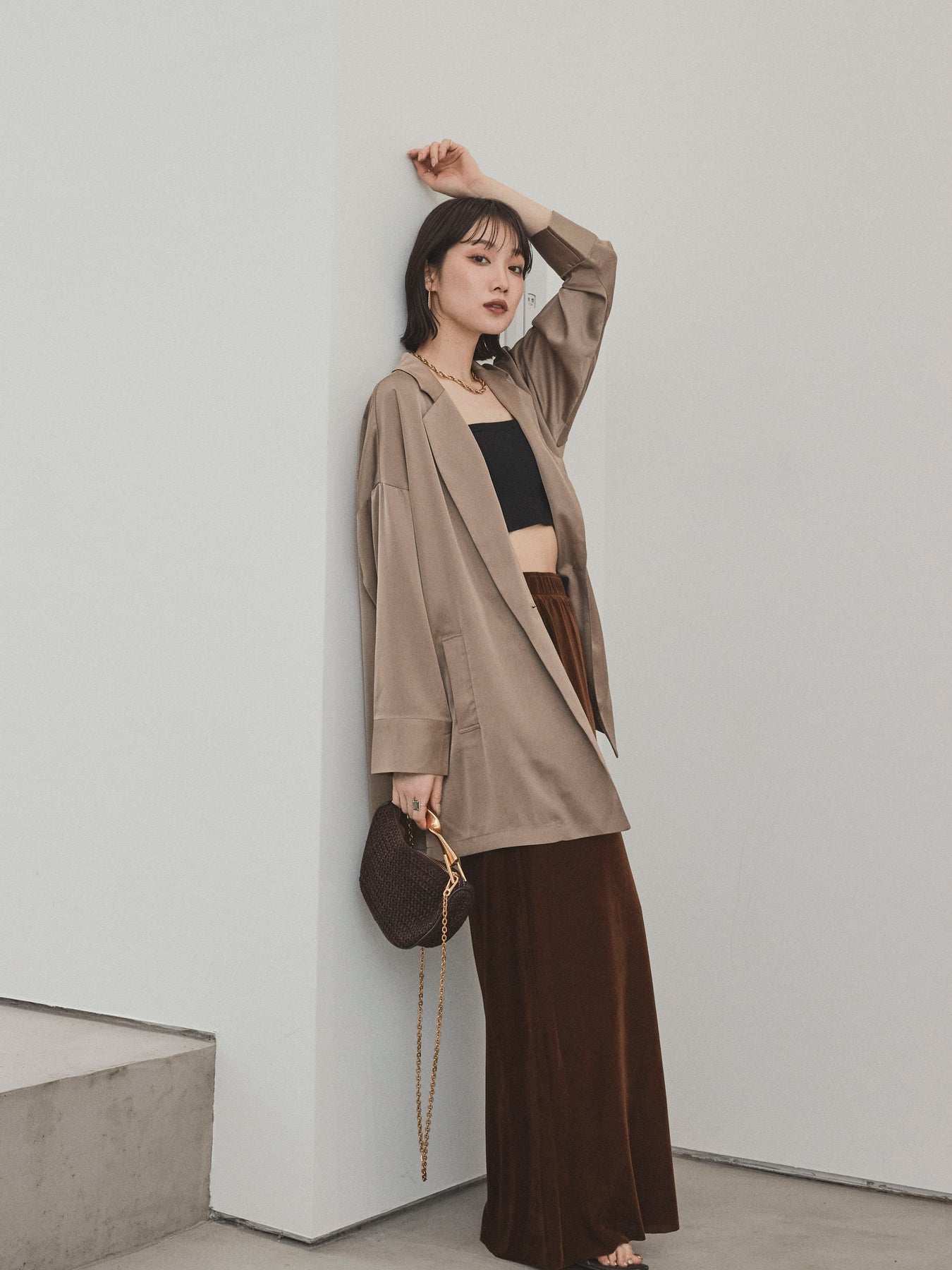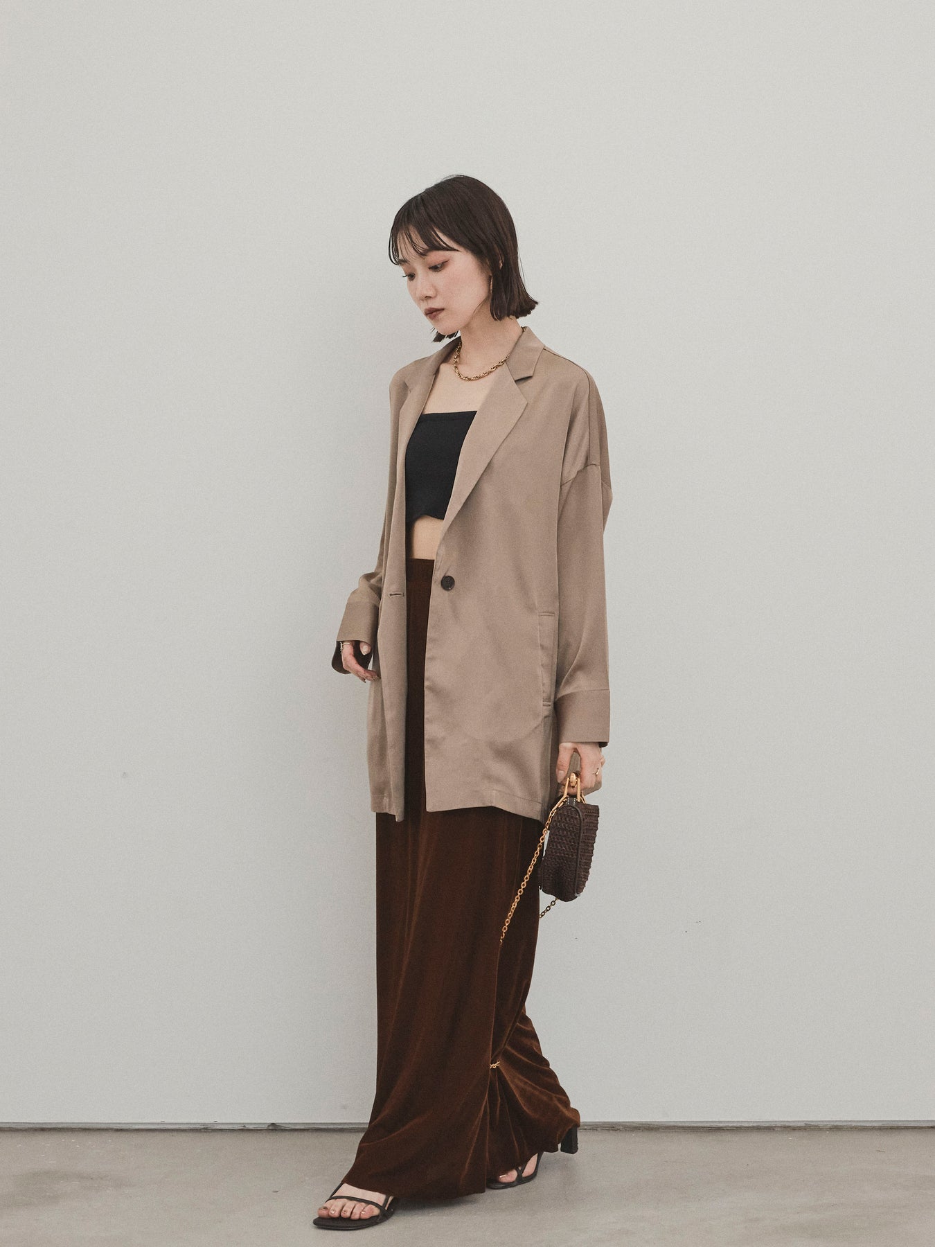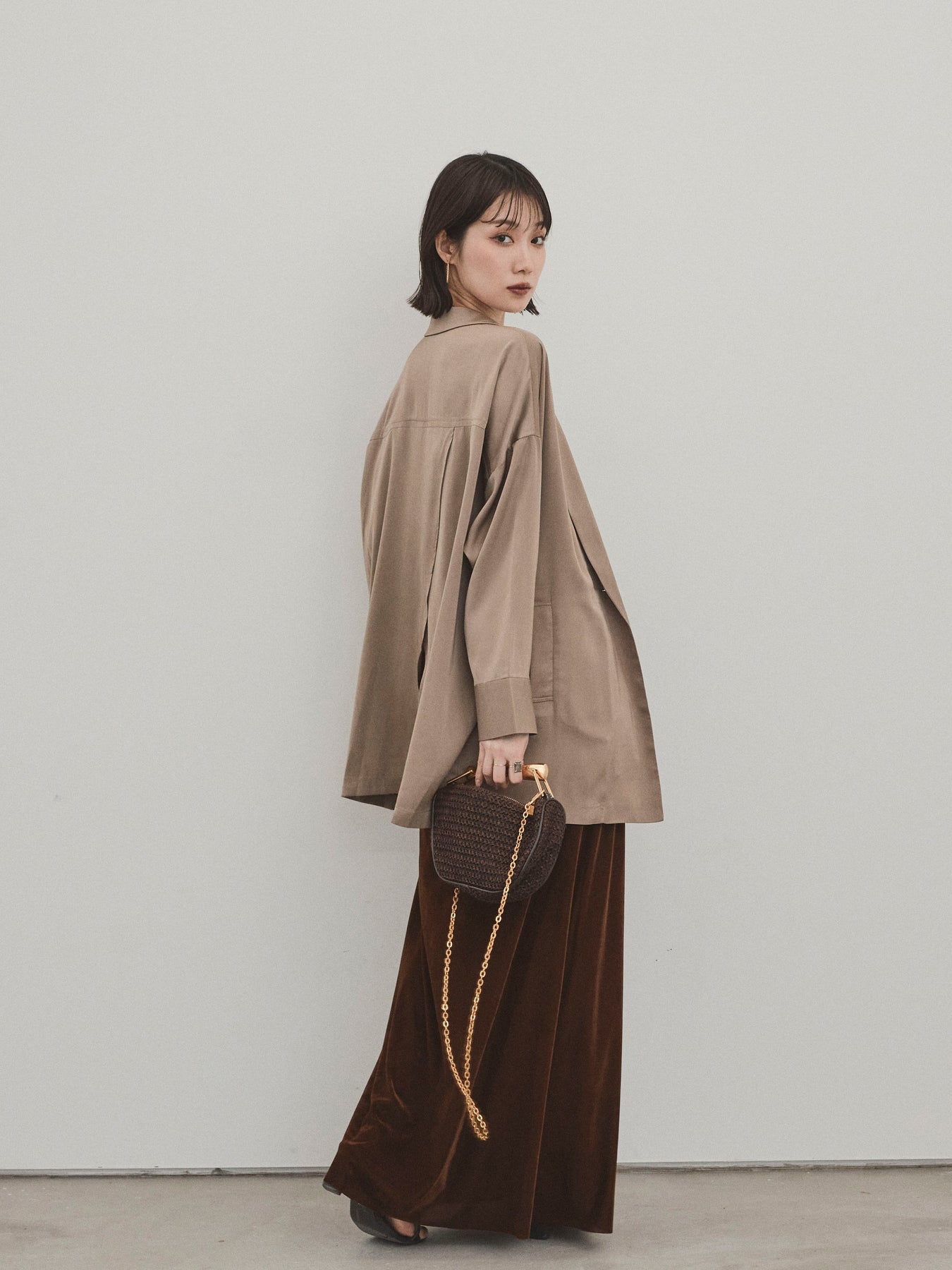 [SET] 霧面緞面外套 + 天鵝絨半身裙 (2set)