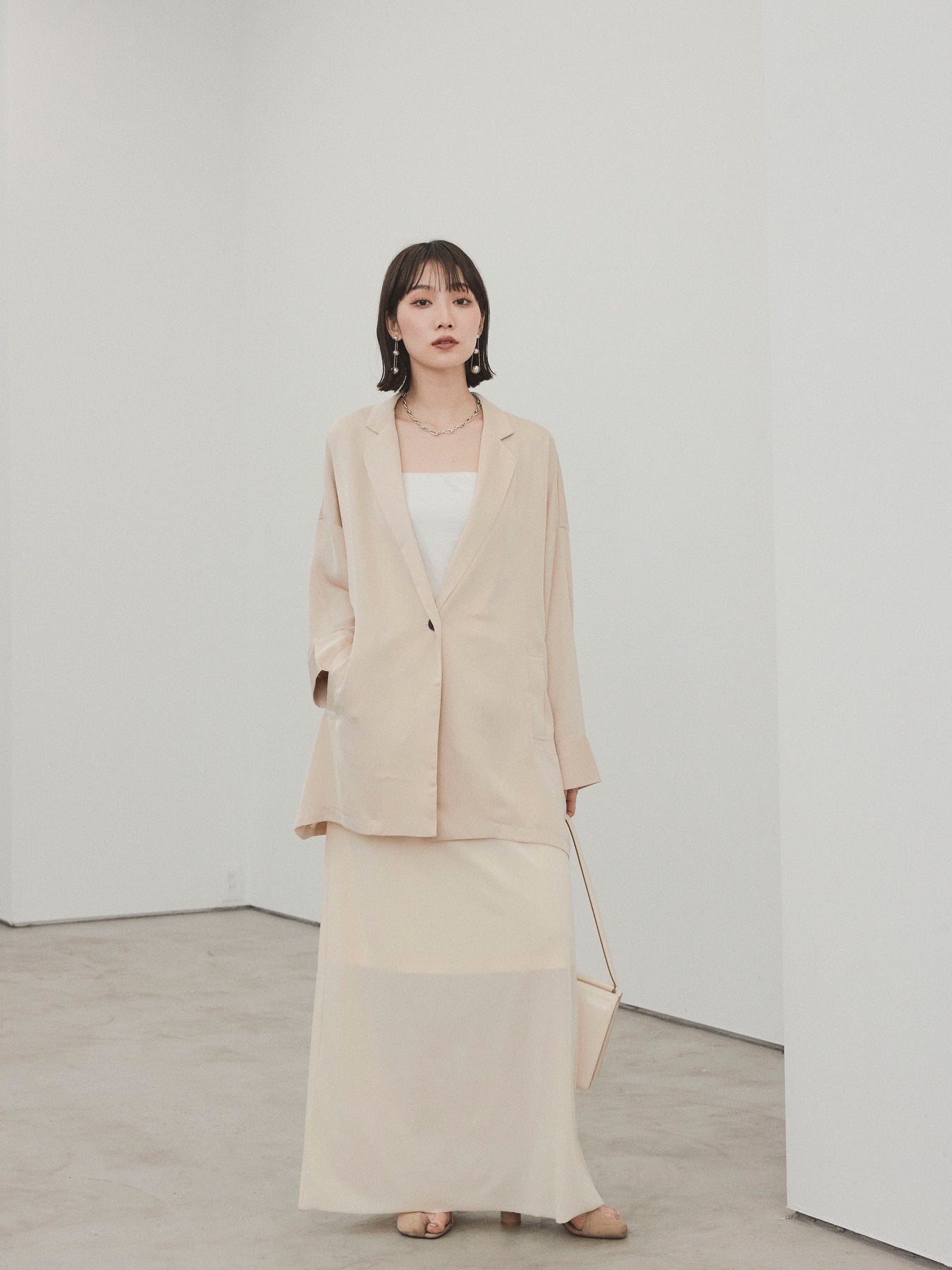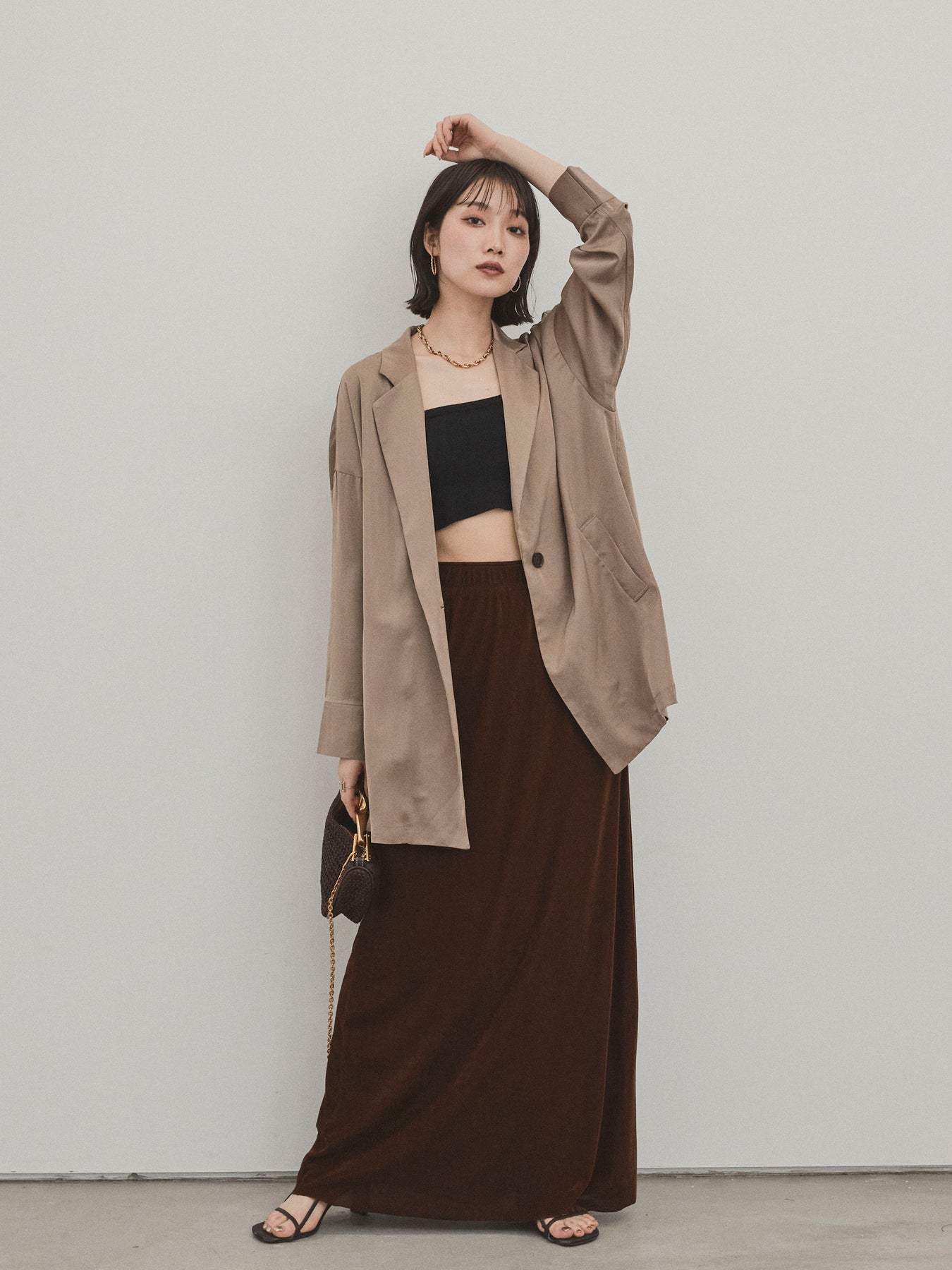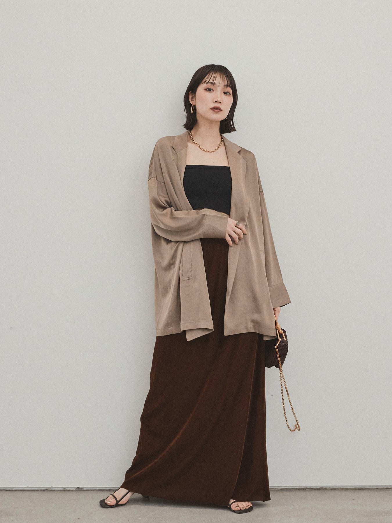 [SET] 霧面緞面外套 + 天鵝絨半身裙 (2set)
