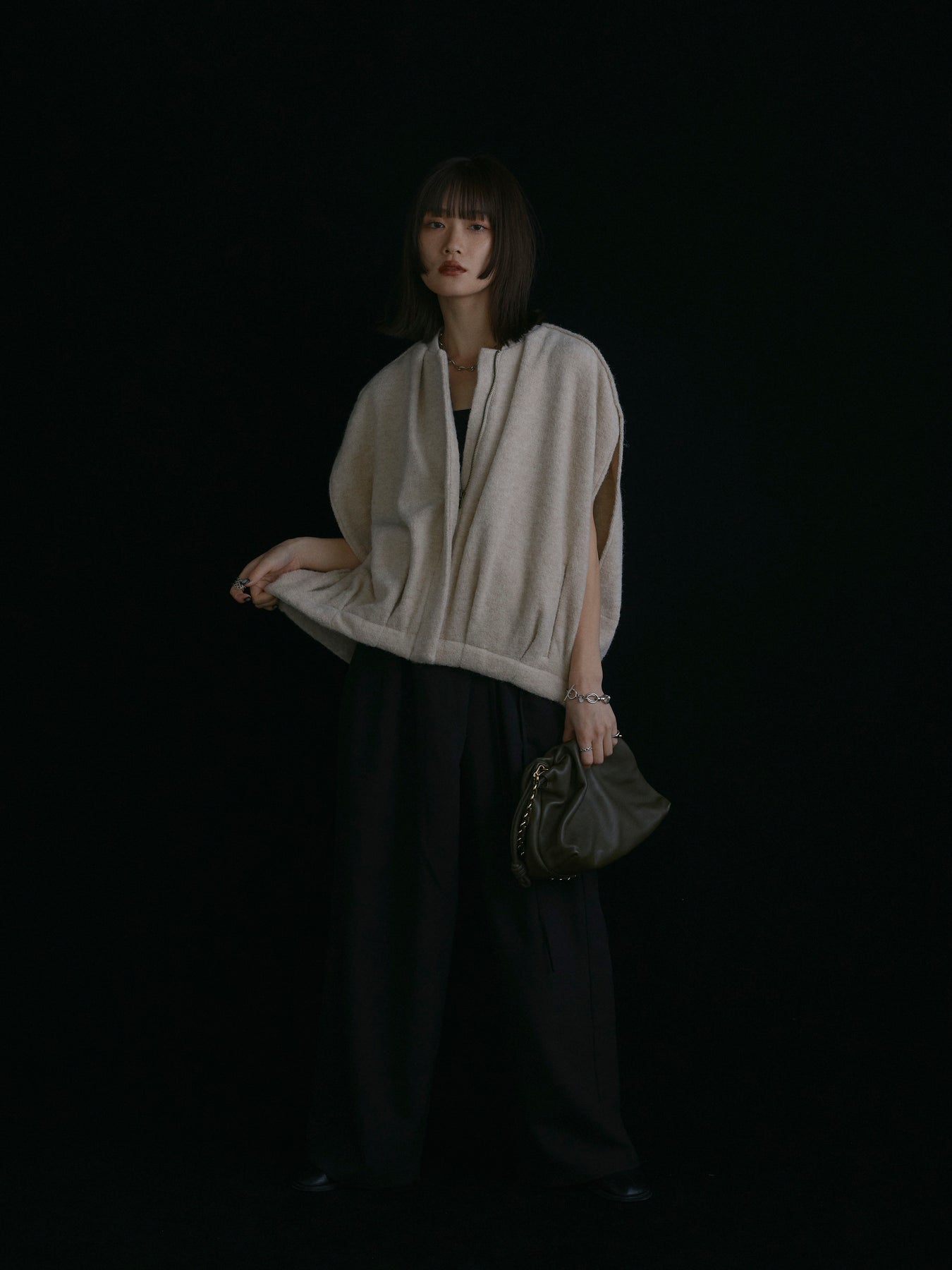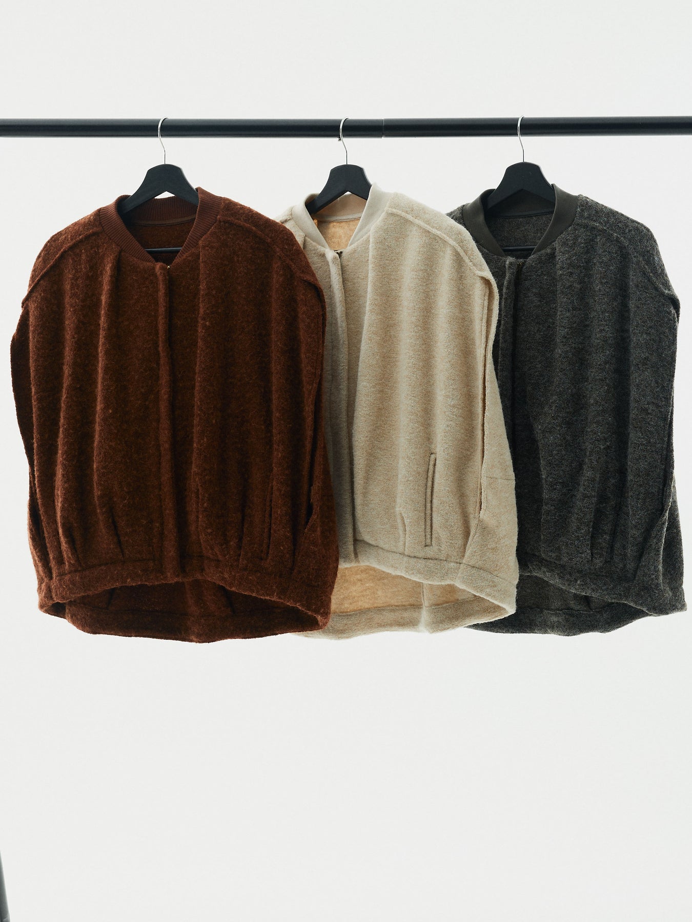丸みのあるシルエットが特徴のウール混ショートブルゾン。フロントやバックのタック使いがふんわりとした立体感を生み出し、さっと羽織るだけで着映える一着。ボタンレスのすっきりとしたフロントや程よくゆとりのあるサイズ感が抜け感を演出し、厚手すぎない生地感でロングシーズン活躍します。