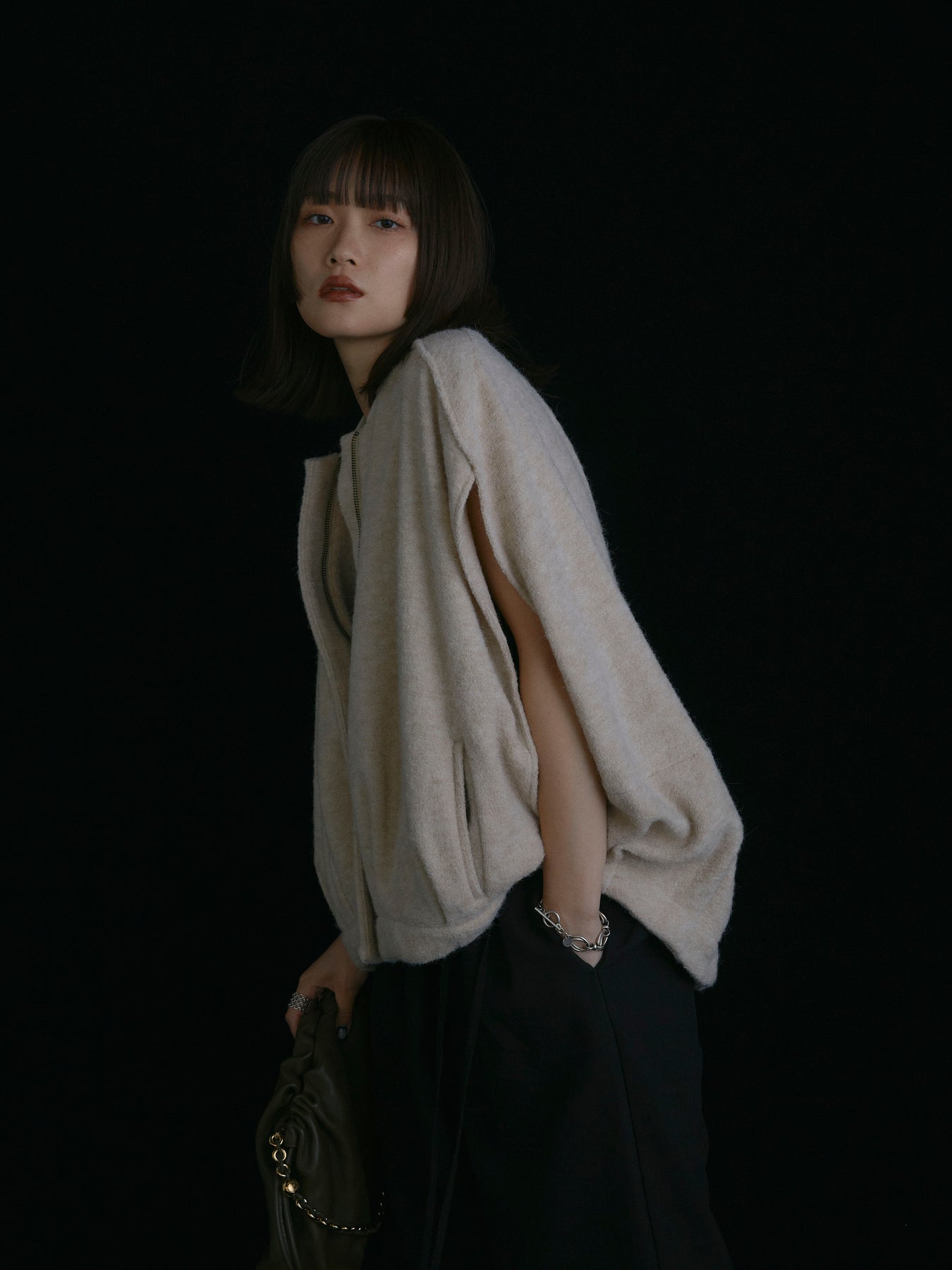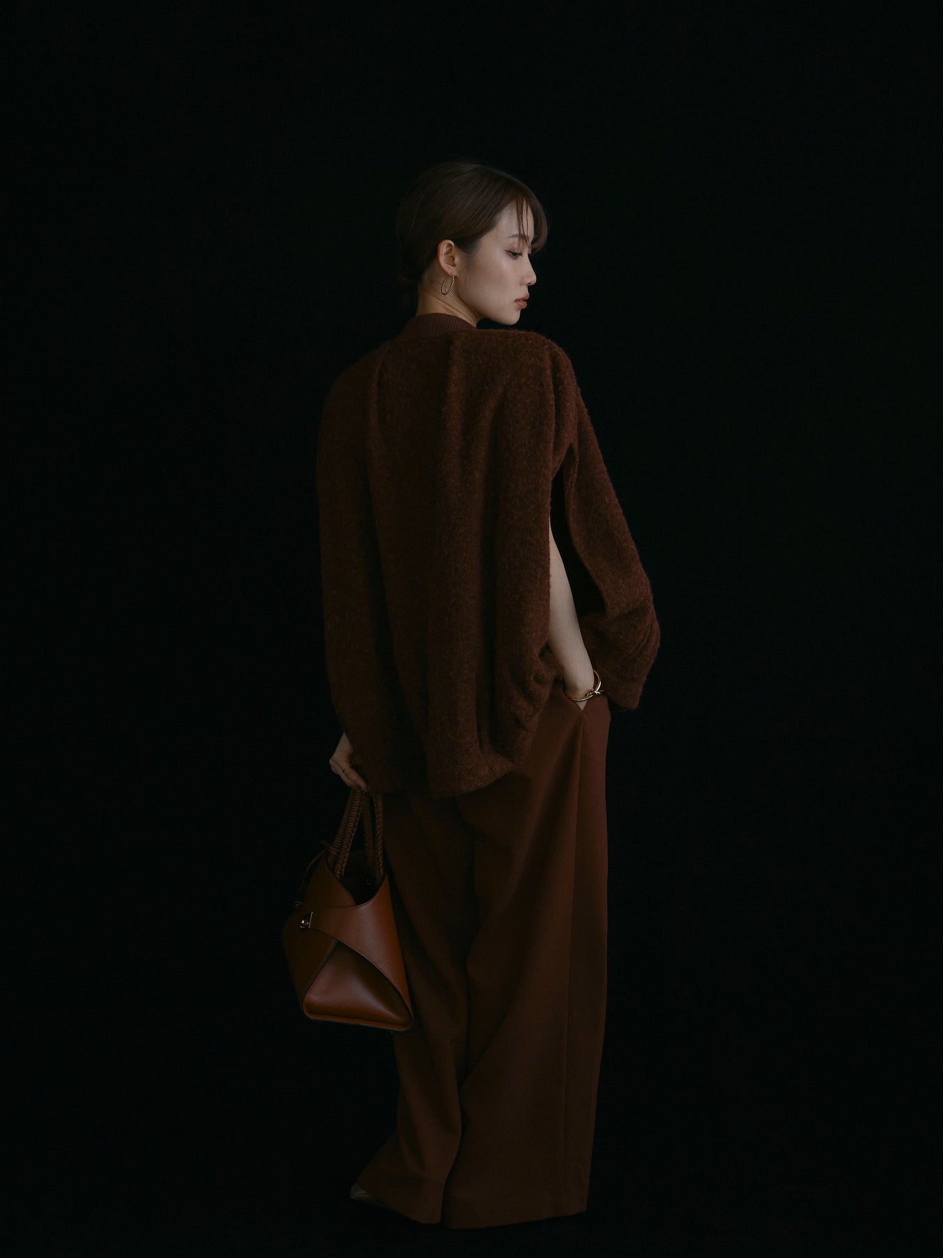 ・お手入れ方法:水温30℃以下手洗い優しく押し洗いでのお洗濯をお薦めします。素材の特性上、洗濯の際に毛抜け・色落ち・縮みが生じる恐れがありますので単独で・短時間でのお洗濯をお薦めします。裏返してネットに入れ手洗いコースで洗濯、洗濯後は形を整えてから干してください。※タンブラー乾燥は控えてください。 濡れたままの状態で擦れると、色落ち色移りすることがあります。つけ置き洗いや雨や汗で濡れたまま放置は避け、速やかに処理してください。着用中の摩擦や汗、水濡れ、濃淡差があるものとの重ね着にご注意ください。