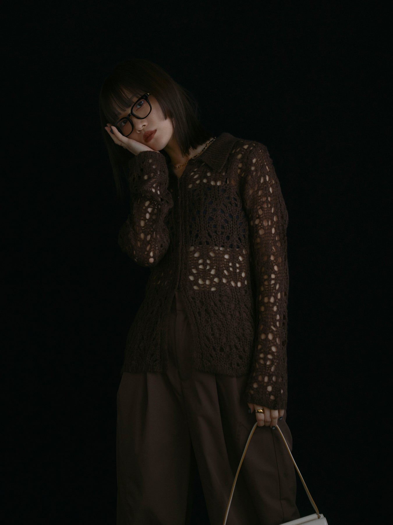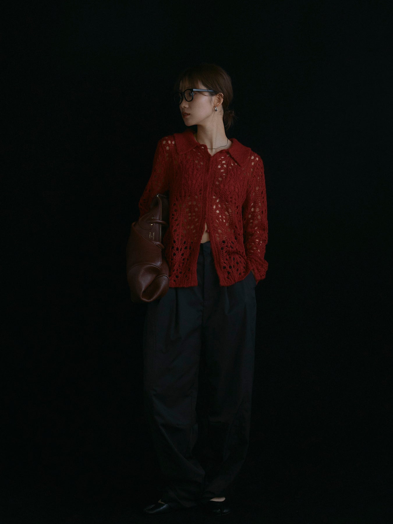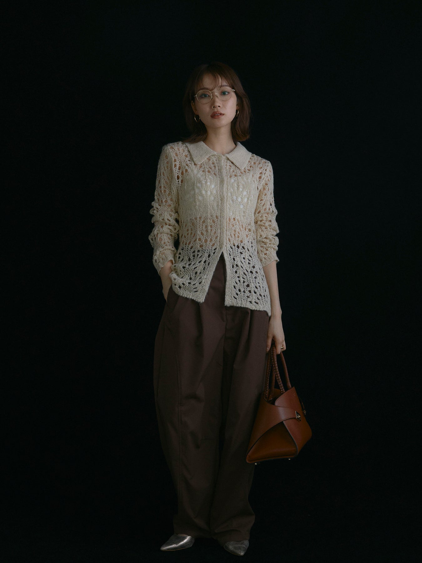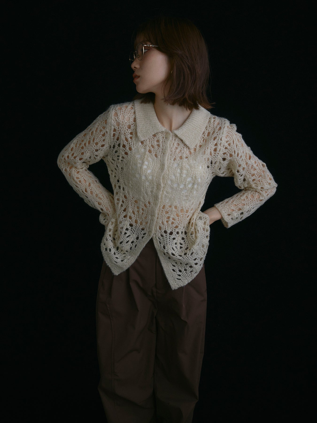 ◆ [予約]ローゲージ透かし編みポロニッカーディガン