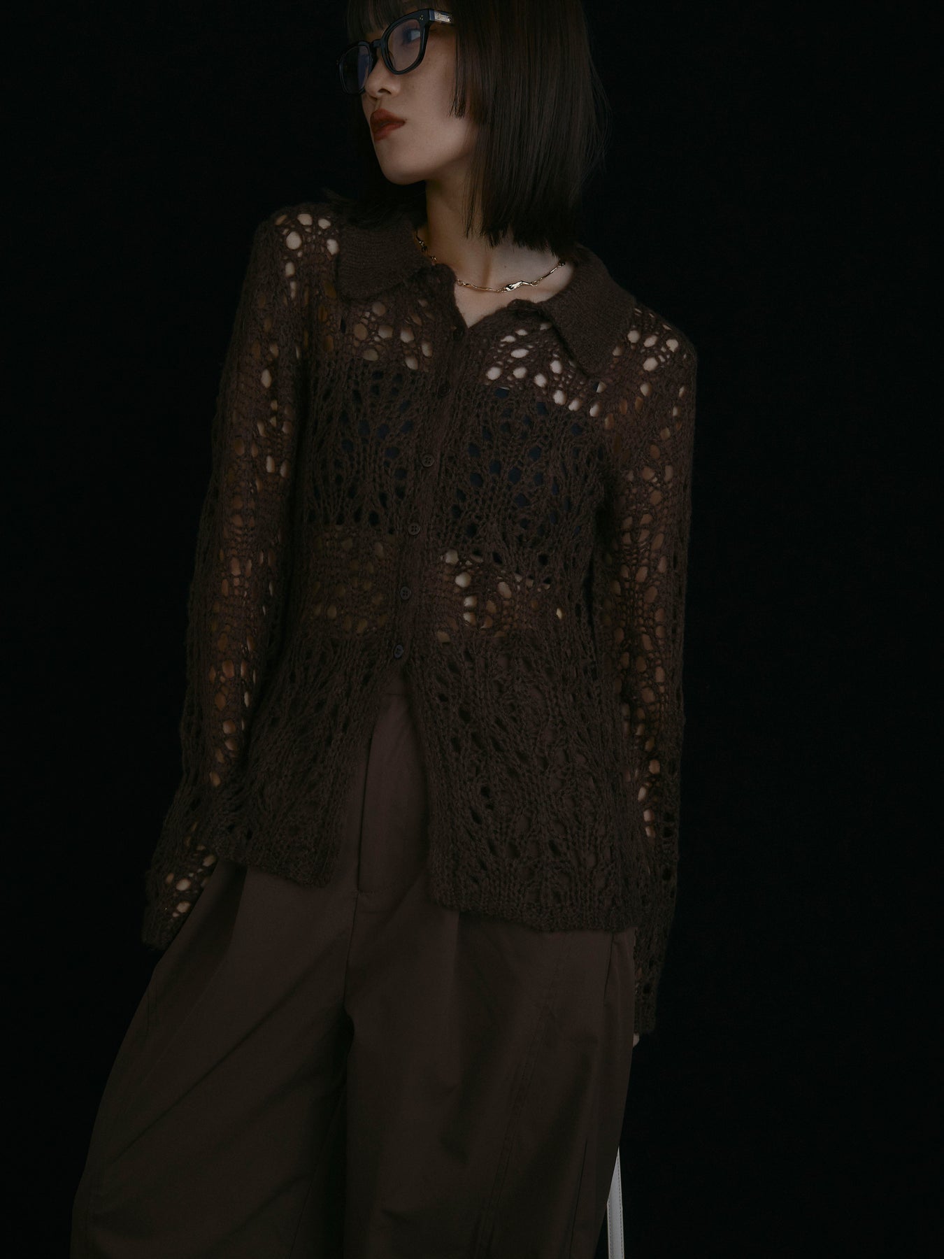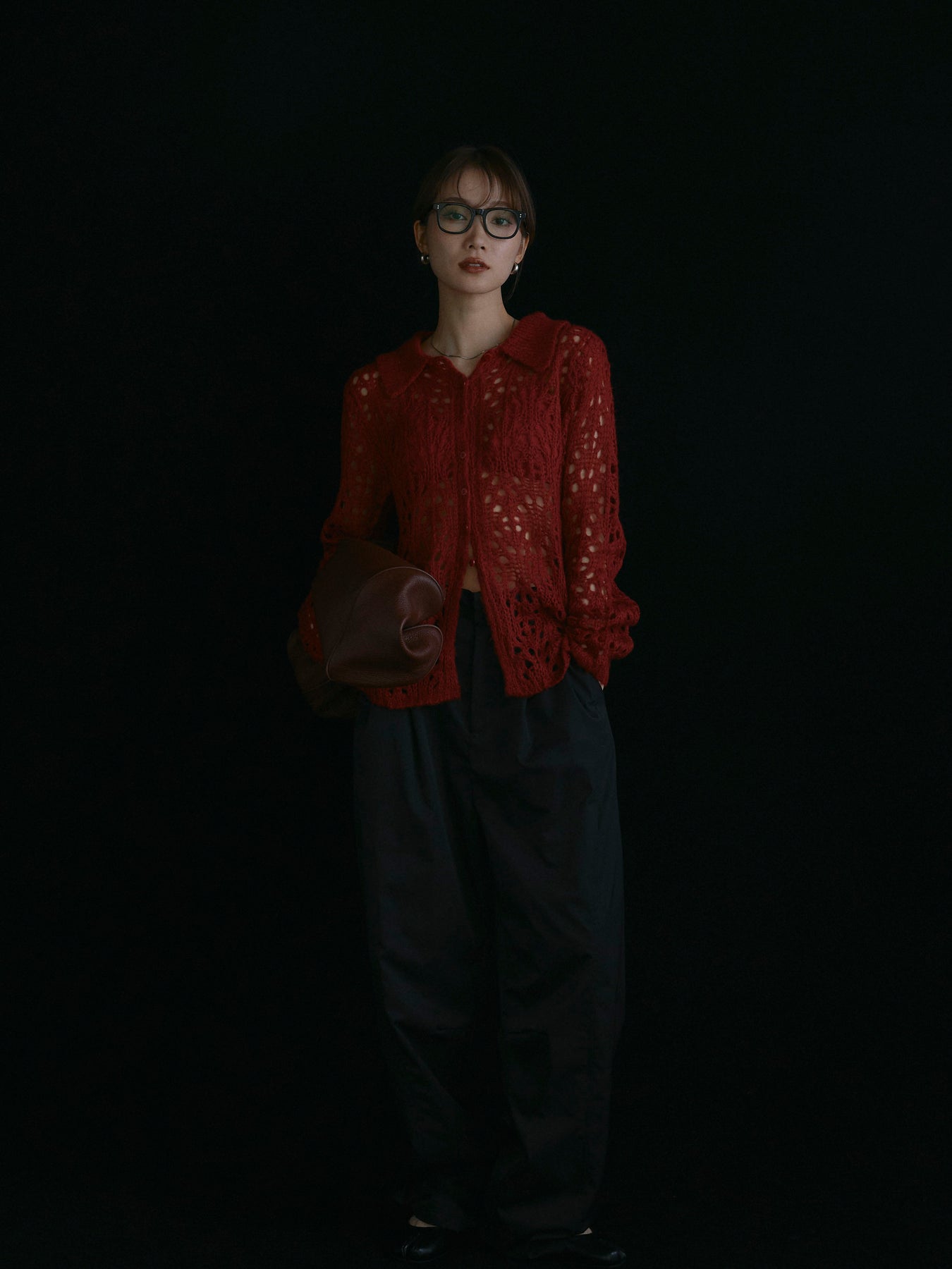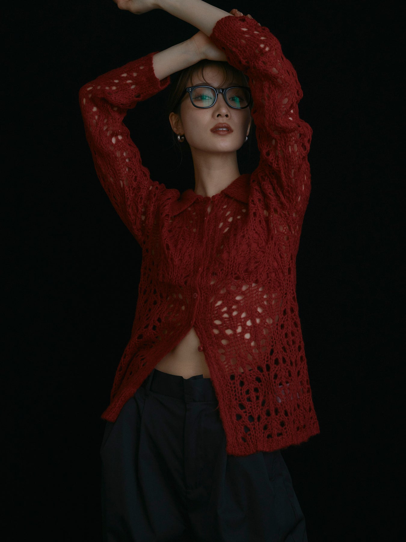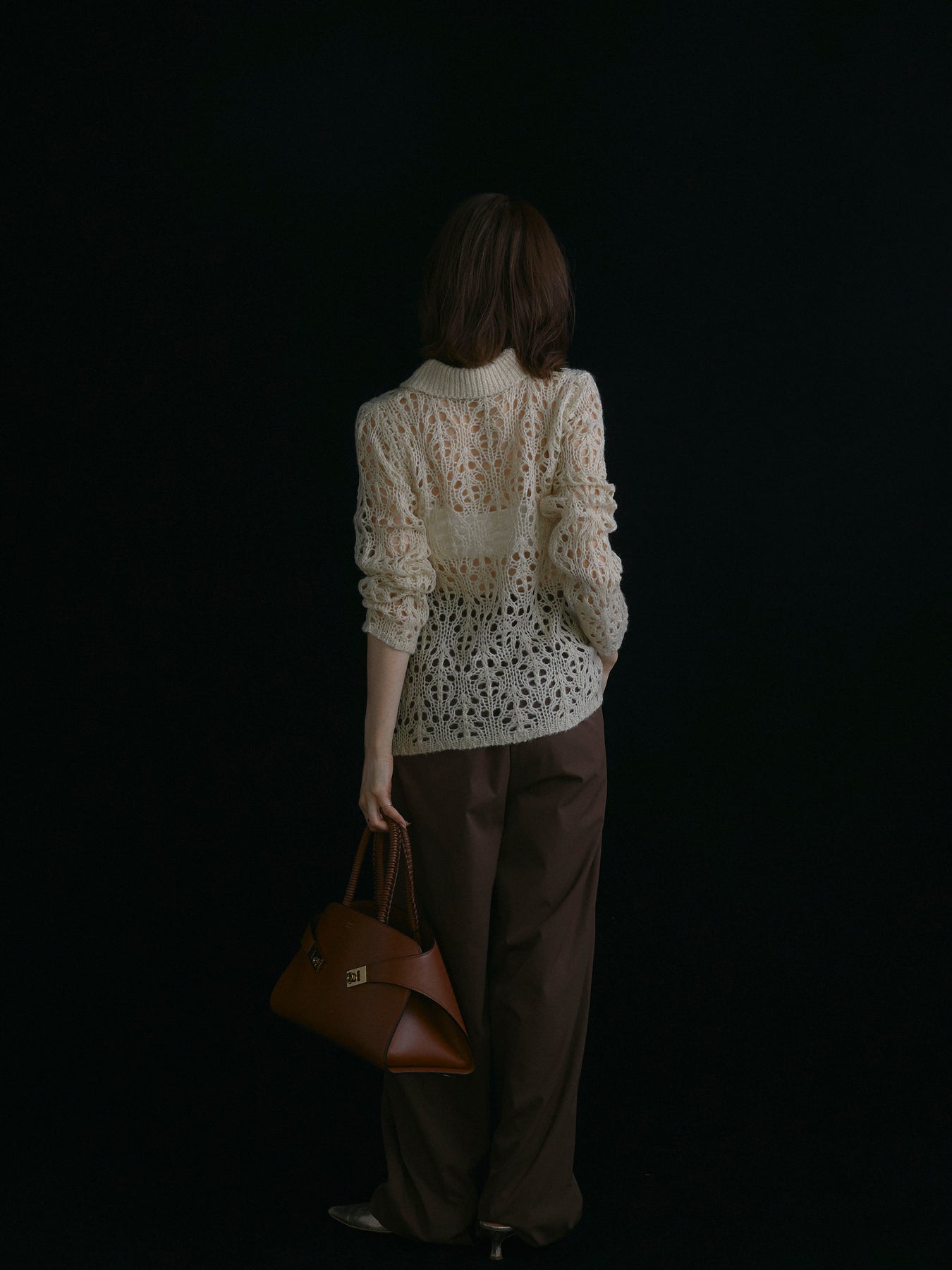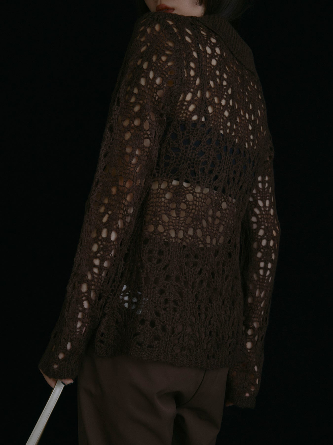 ◆ [予約]ローゲージ透かし編みポロニッカーディガン