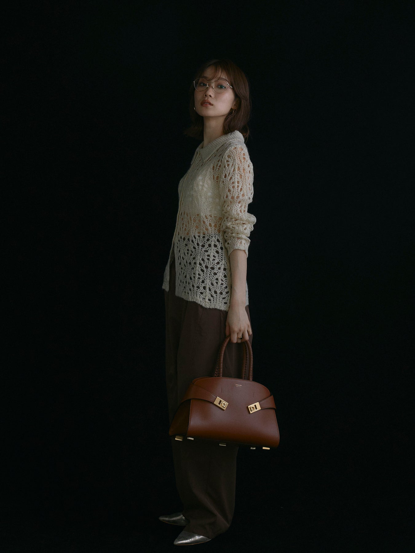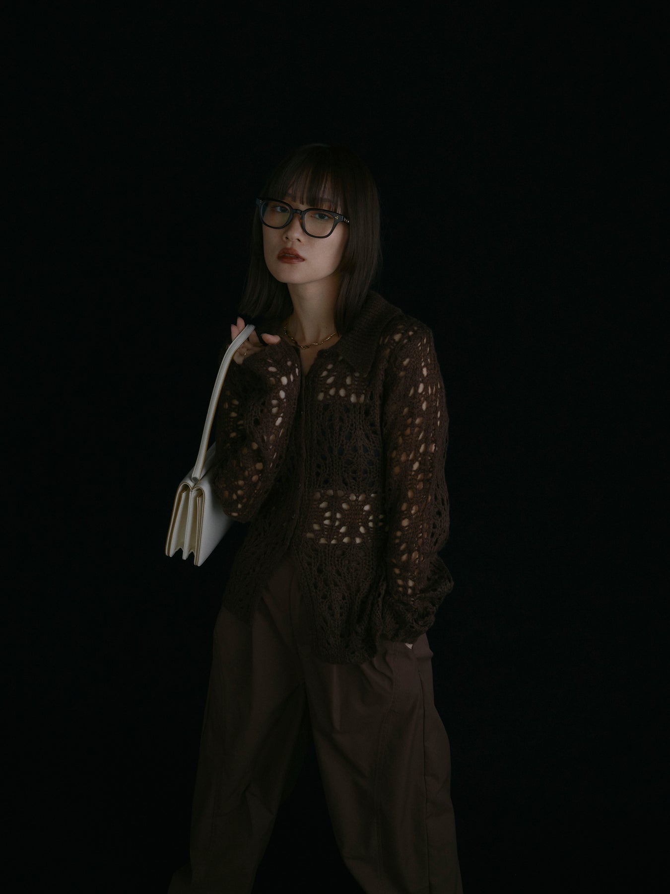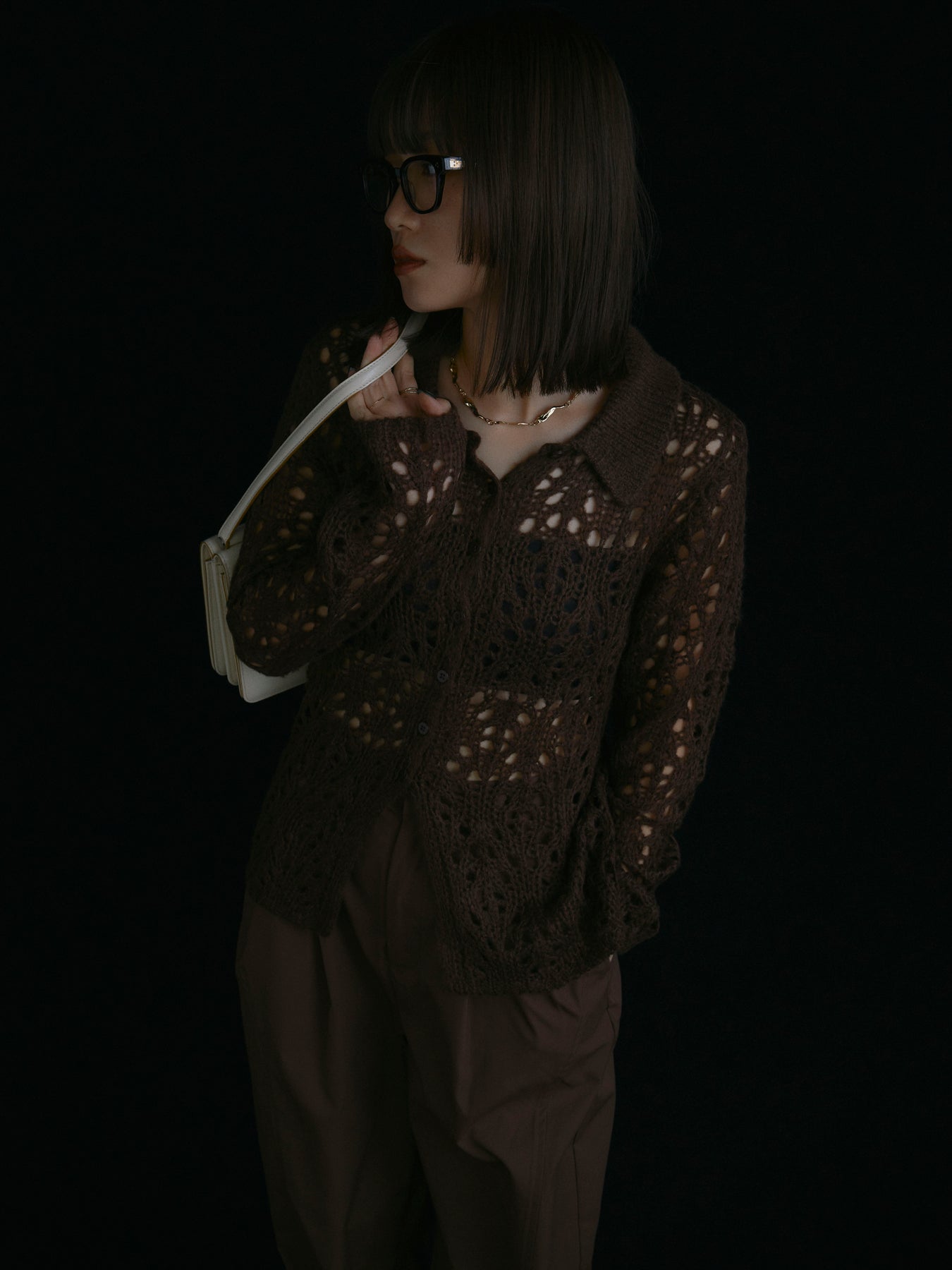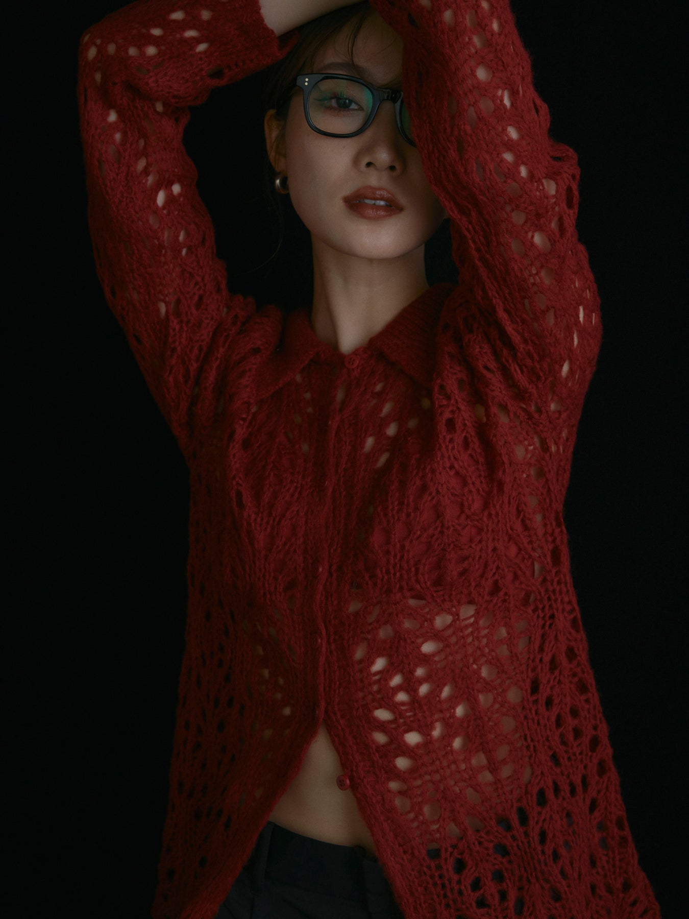◆ [予約]ローゲージ透かし編みポロニッカーディガン