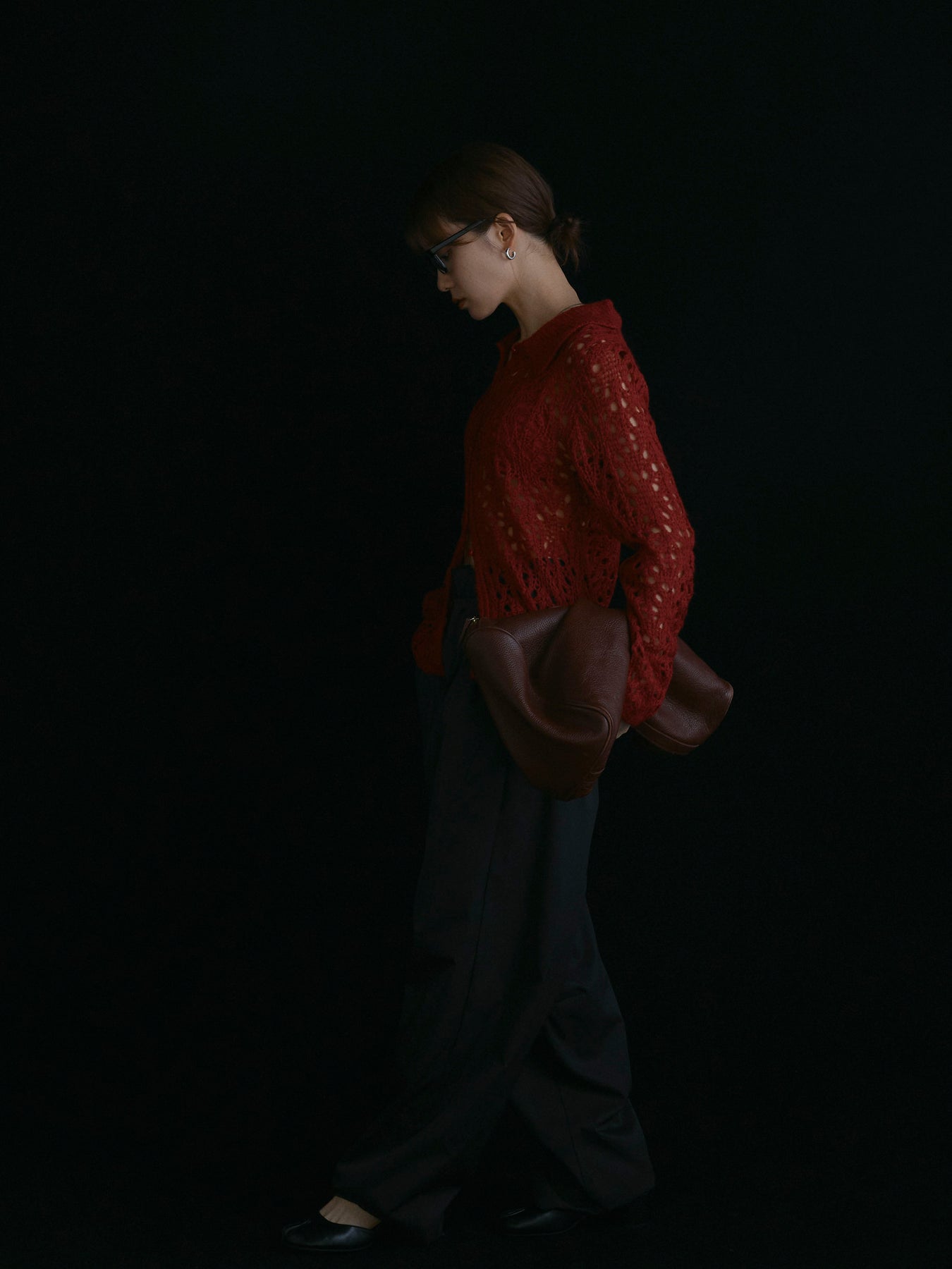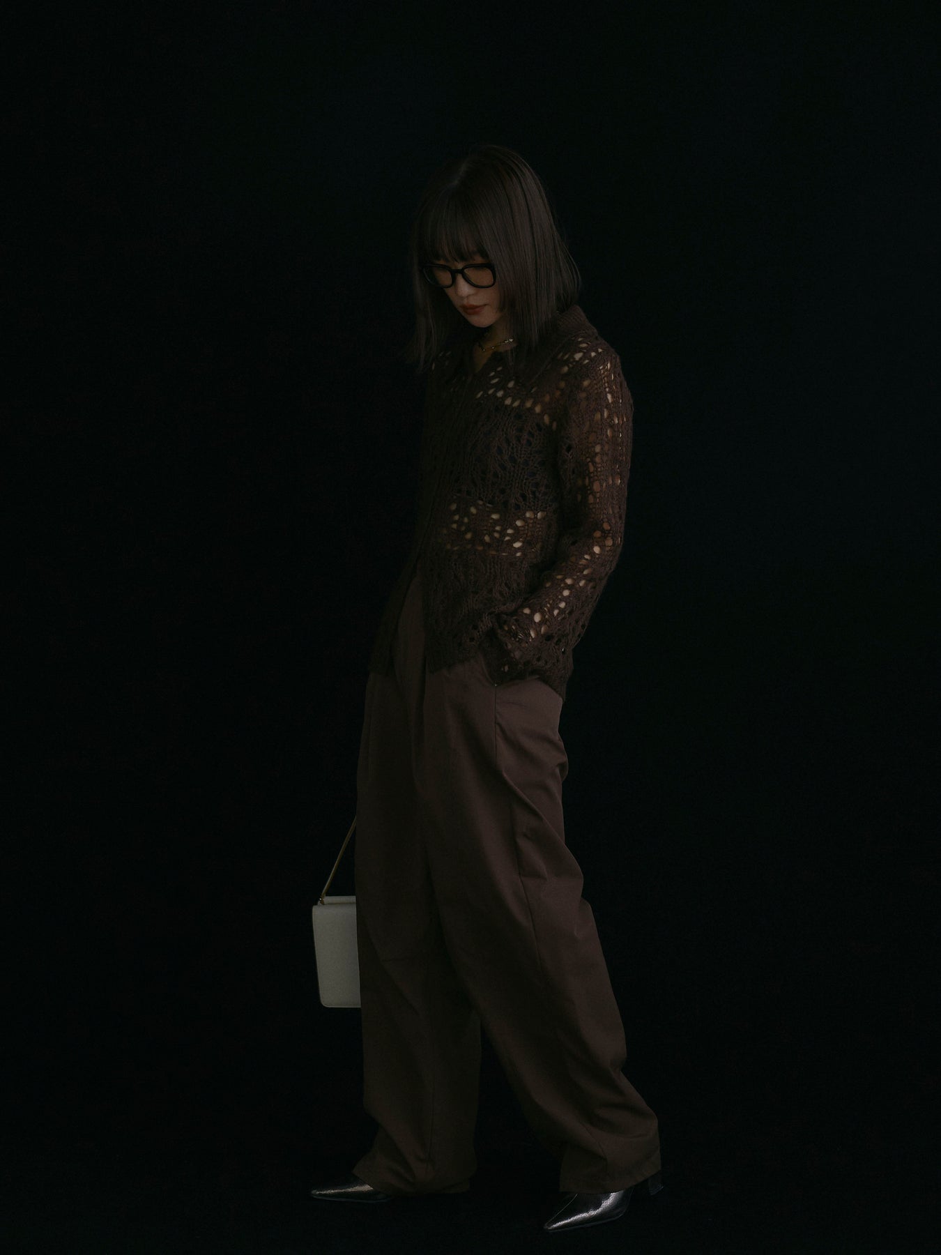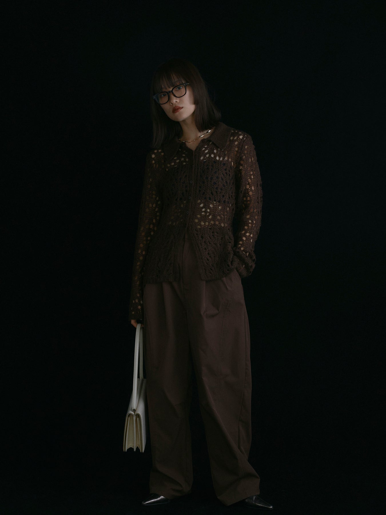 ざっくりとしたローゲージの透かし編みで抜け感を演出するニットポロ。ゆったりとしたサイズ感と柔らかな風合いで軽やかに羽織れ、ボタンを閉めれば一枚着としても活躍。ニットの表情が主役になる、存在感のある一枚です。