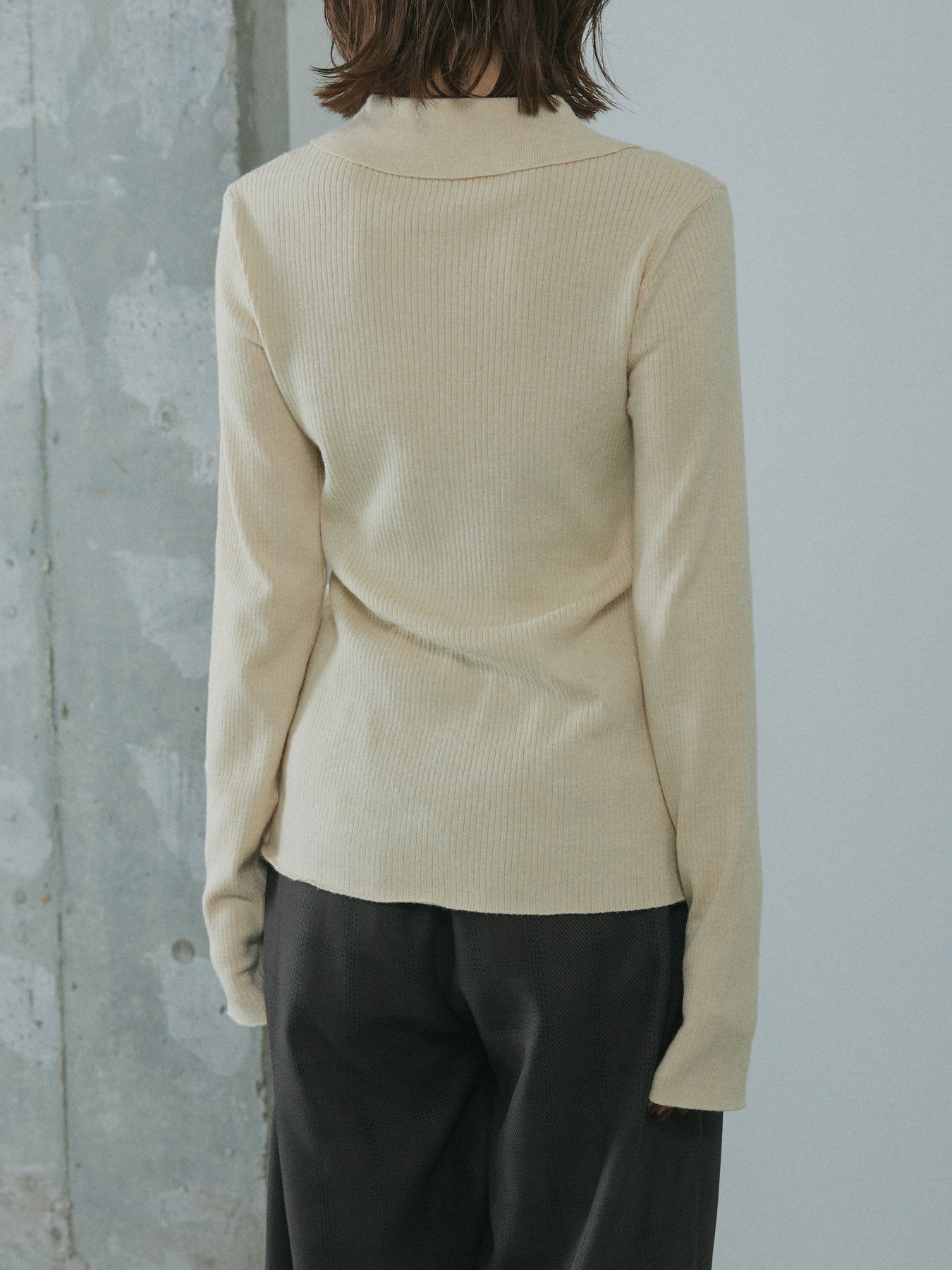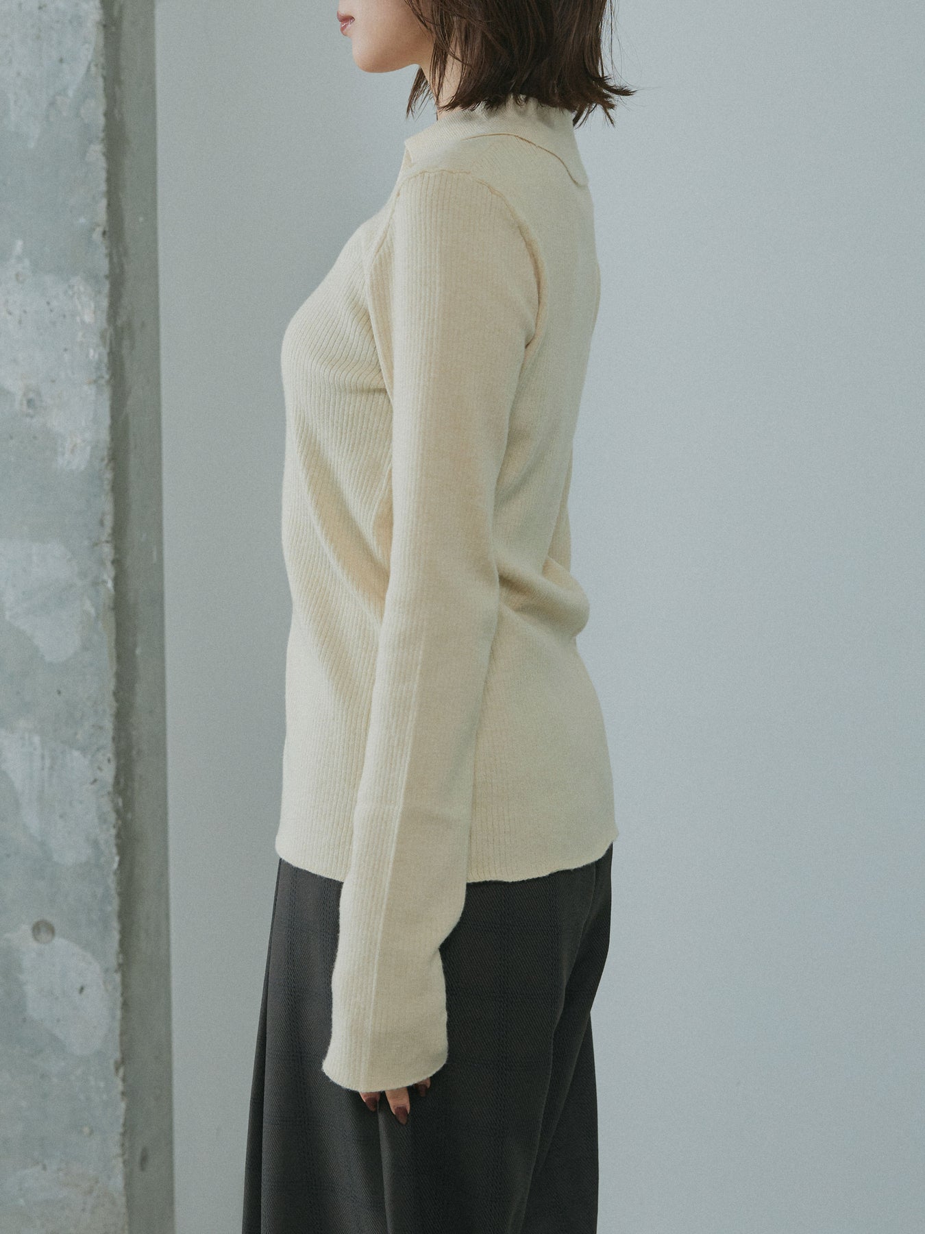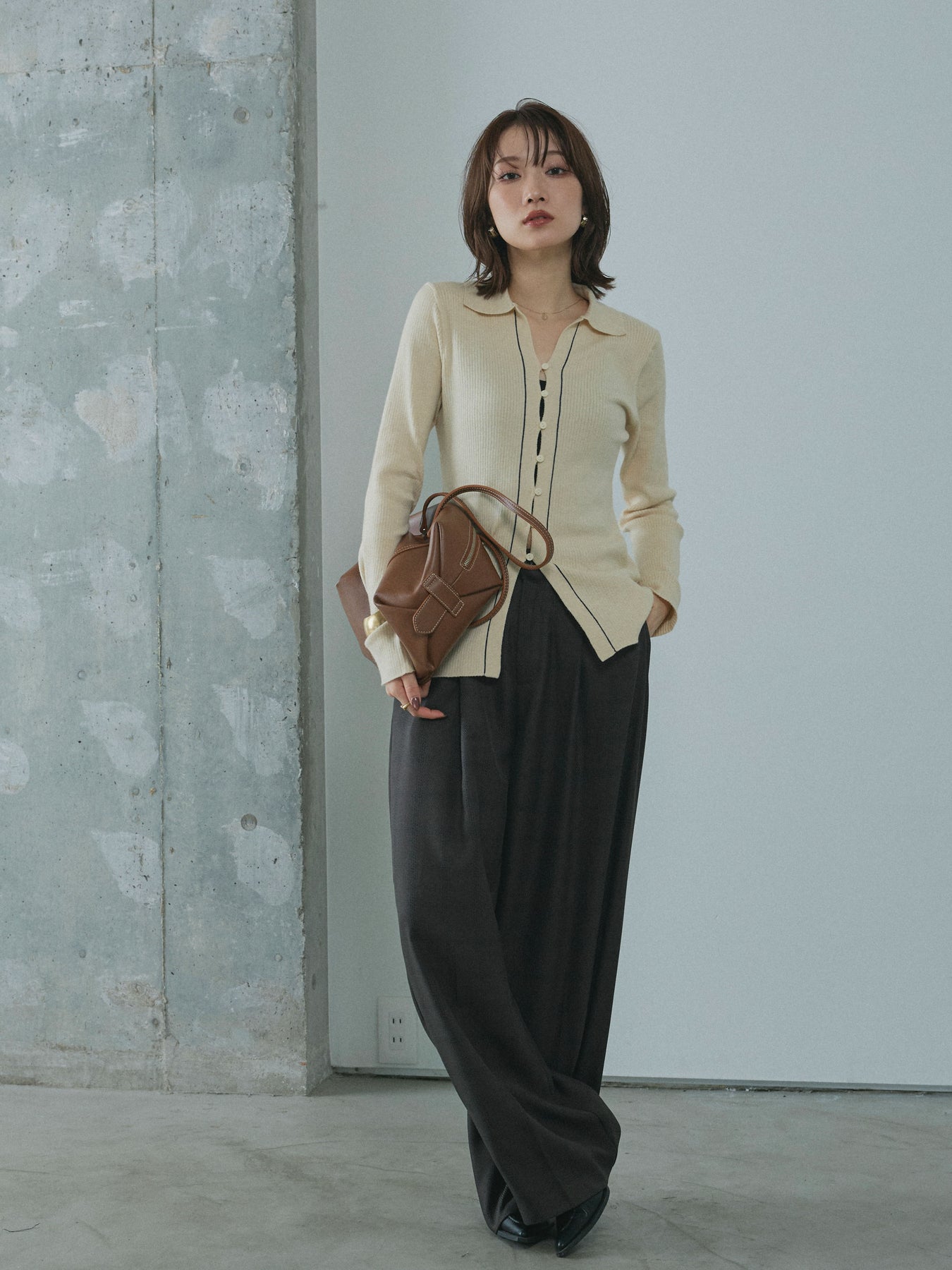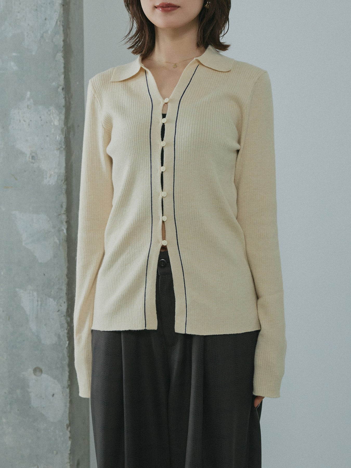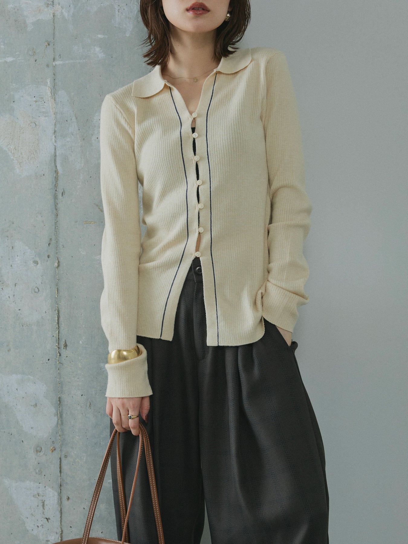 [予約]リブ配色ラインポロニットカーディガン/ivory