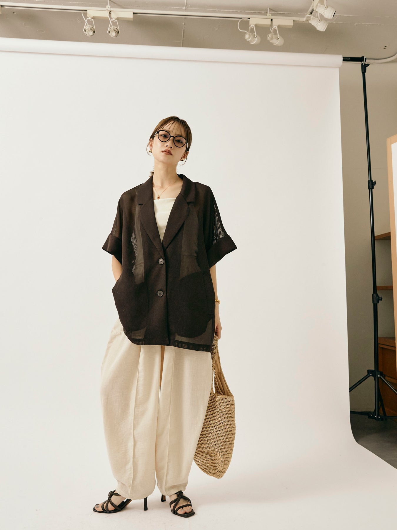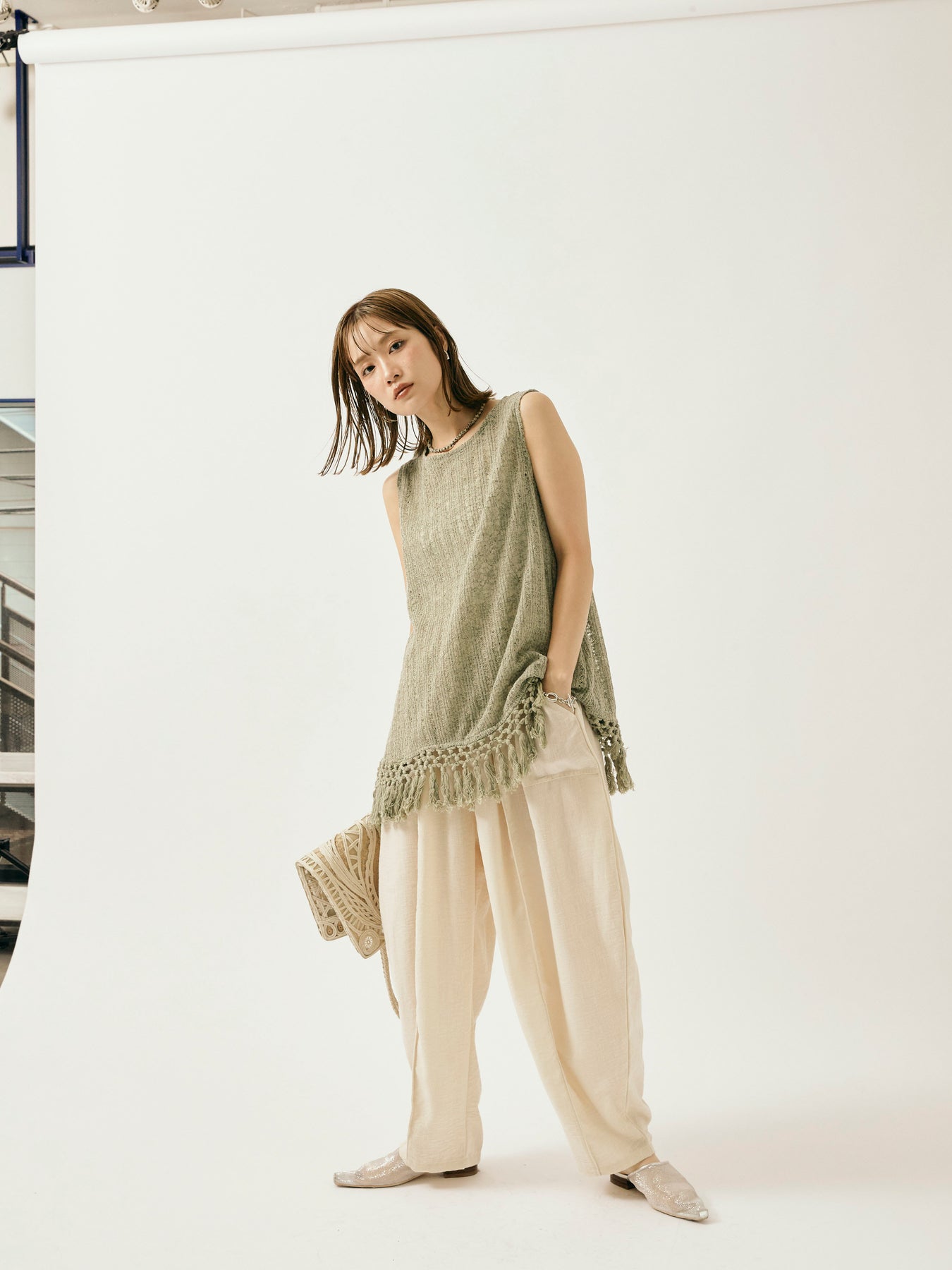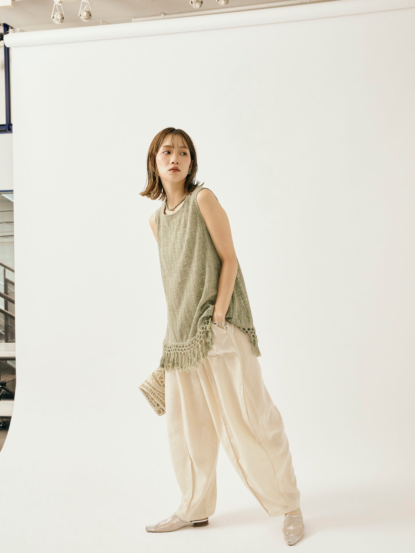 ほどよいボリューム感が魅力の、リネンライク素材のベイカーバルーンパンツ。 ナチュラルな風合いと涼しげなタッチが、これからの季節にぴったりの1本です。 ウエストは総ゴム仕様でストレスフリーな穿き心地を実現。 裾に向かってゆるやかに絞られたバルーンシルエットが、脚のラインをカバーしつつ立体感のある着こなしに。 Tシャツやブラウス、ショートトップスとの相性も抜群で、着回し力も◎。