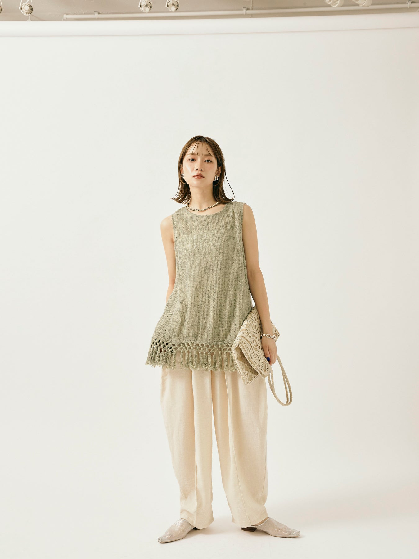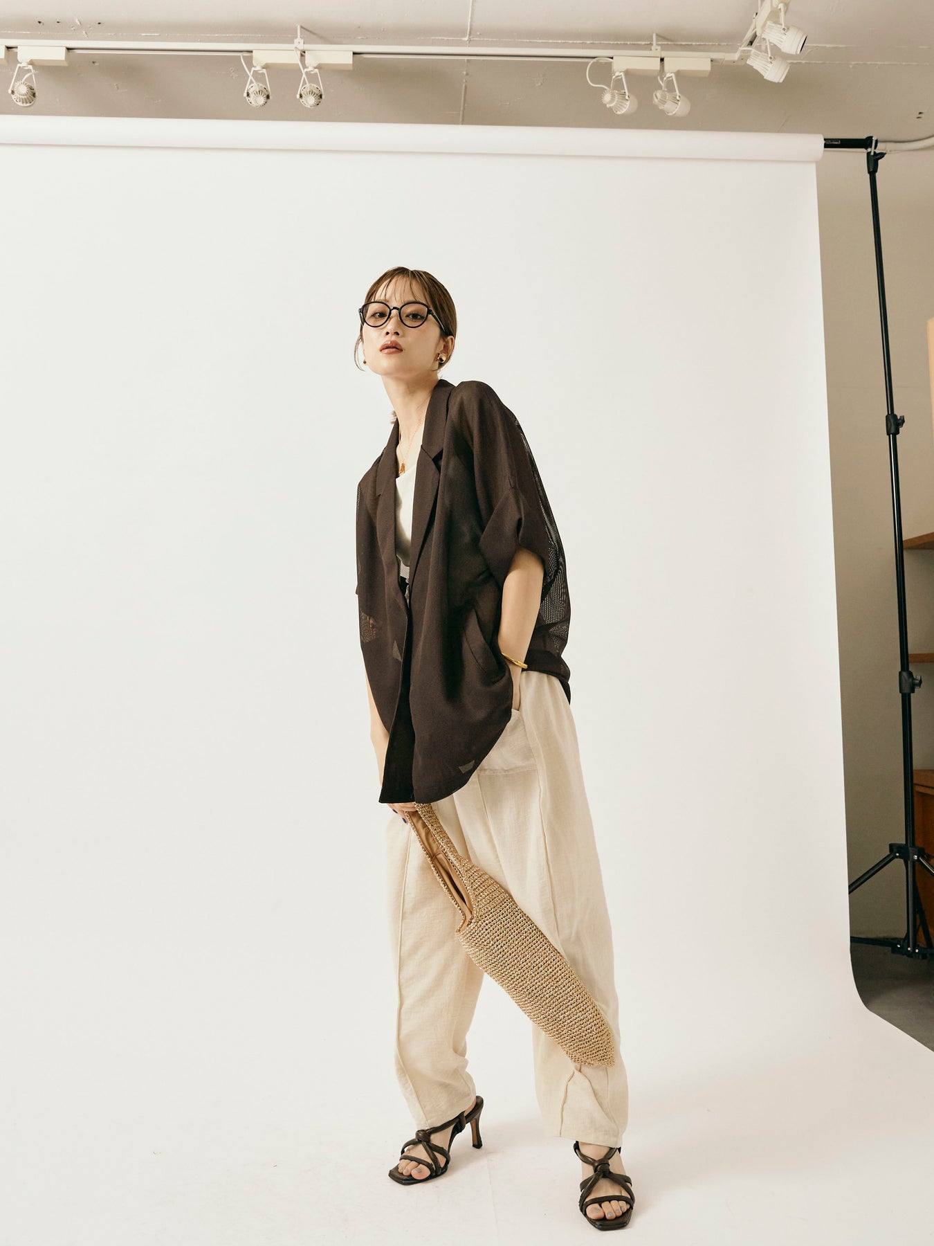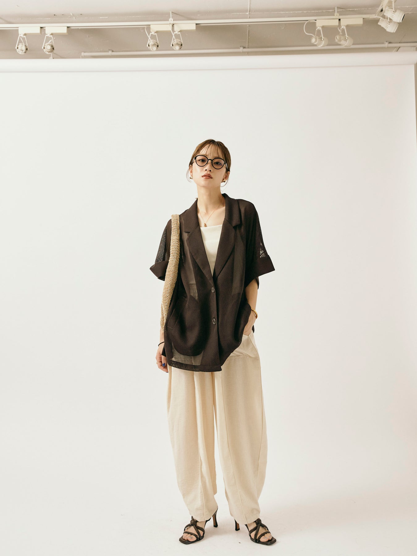 ほどよいボリューム感が魅力の、リネンライク素材のベイカーバルーンパンツ。 ナチュラルな風合いと涼しげなタッチが、これからの季節にぴったりの1本です。 ウエストは総ゴム仕様でストレスフリーな穿き心地を実現。 裾に向かってゆるやかに絞られたバルーンシルエットが、脚のラインをカバーしつつ立体感のある着こなしに。 Tシャツやブラウス、ショートトップスとの相性も抜群で、着回し力も◎。