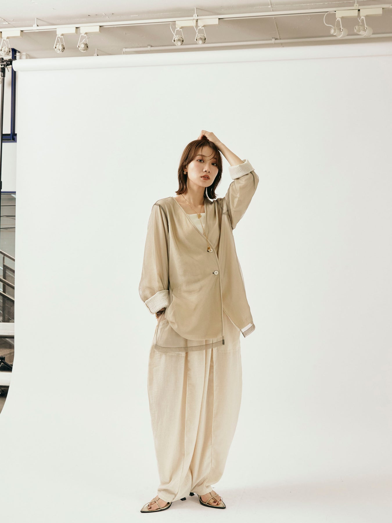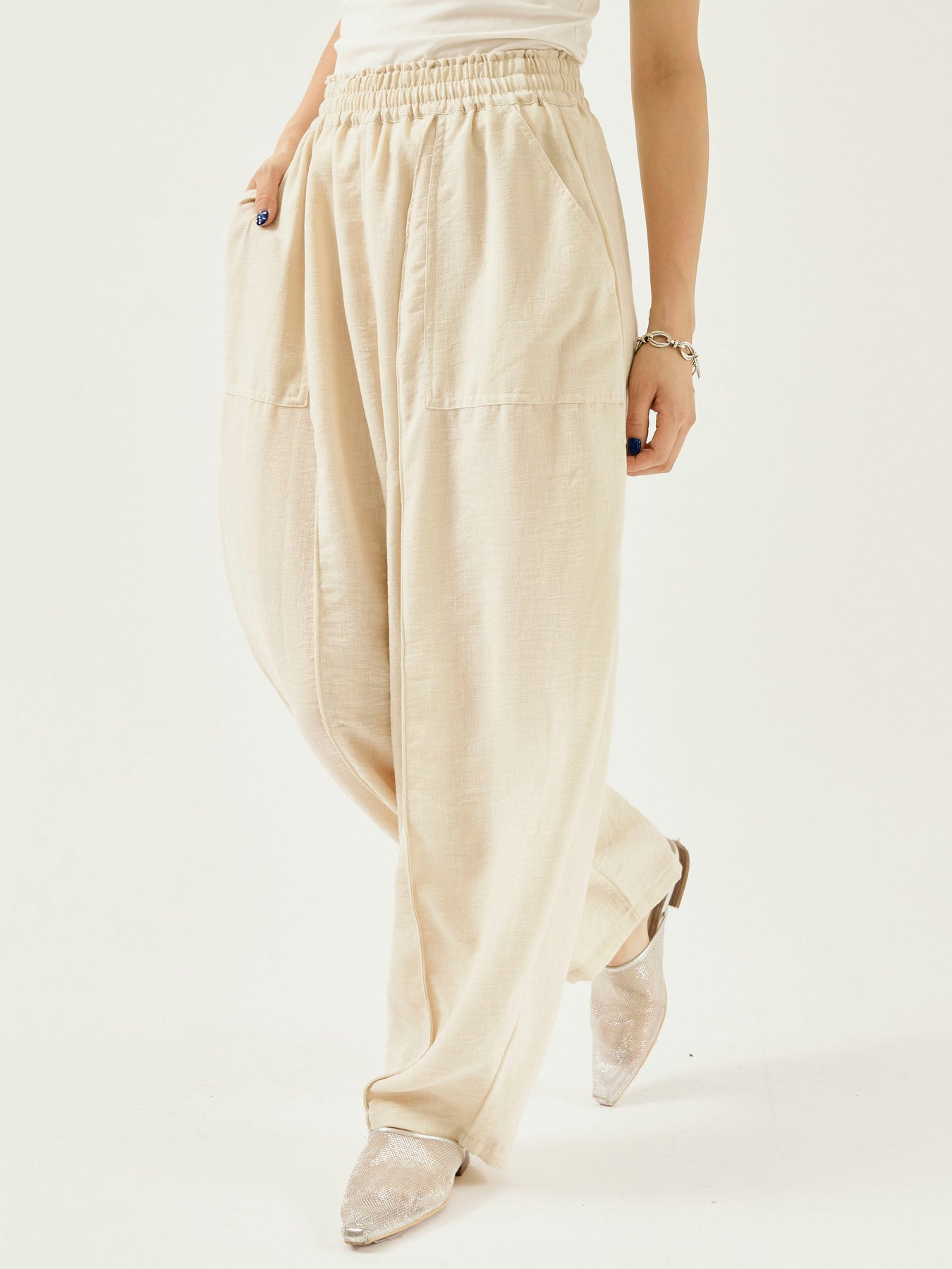 [予約]リネンライクベイカーバルーンパンツ/アイボリー