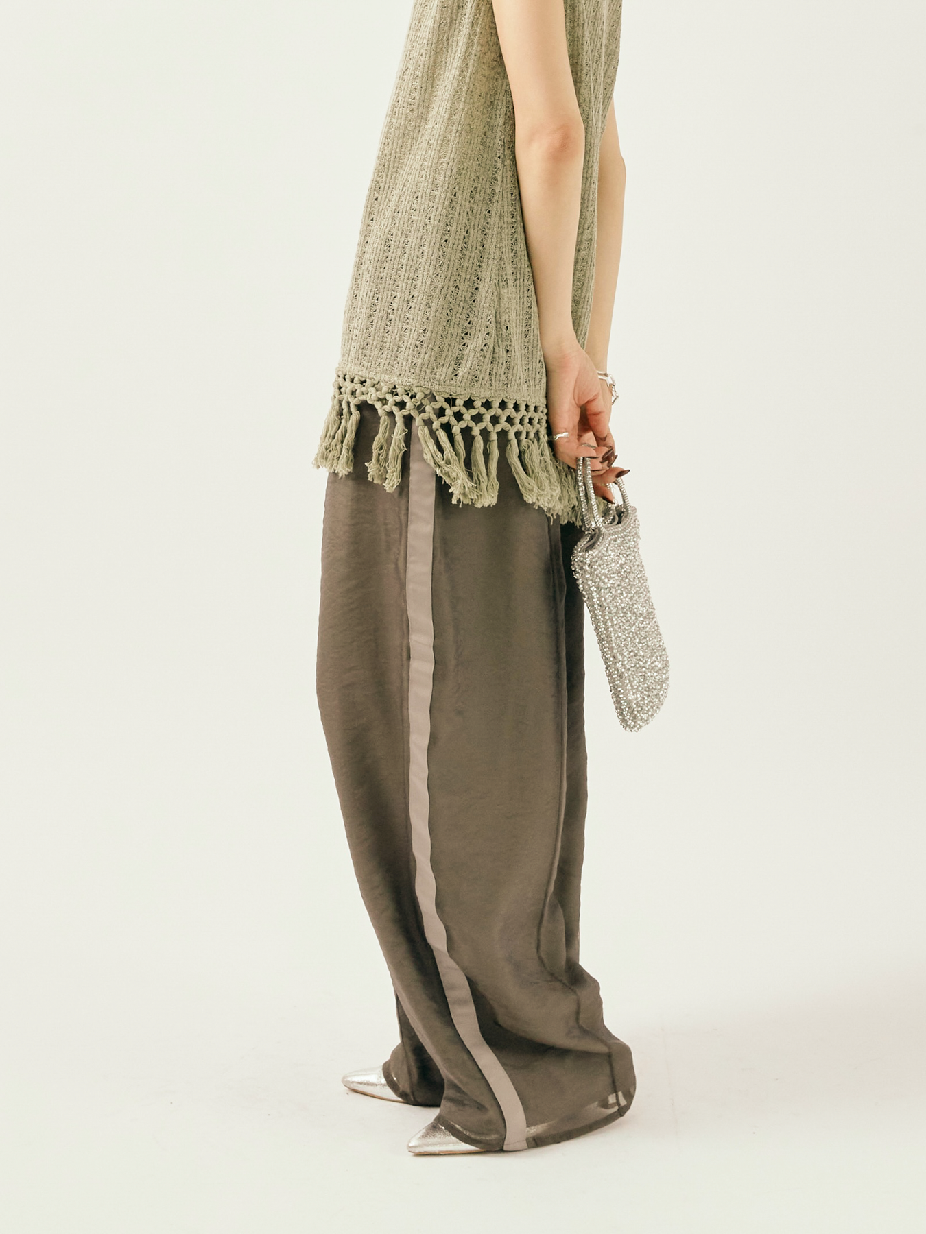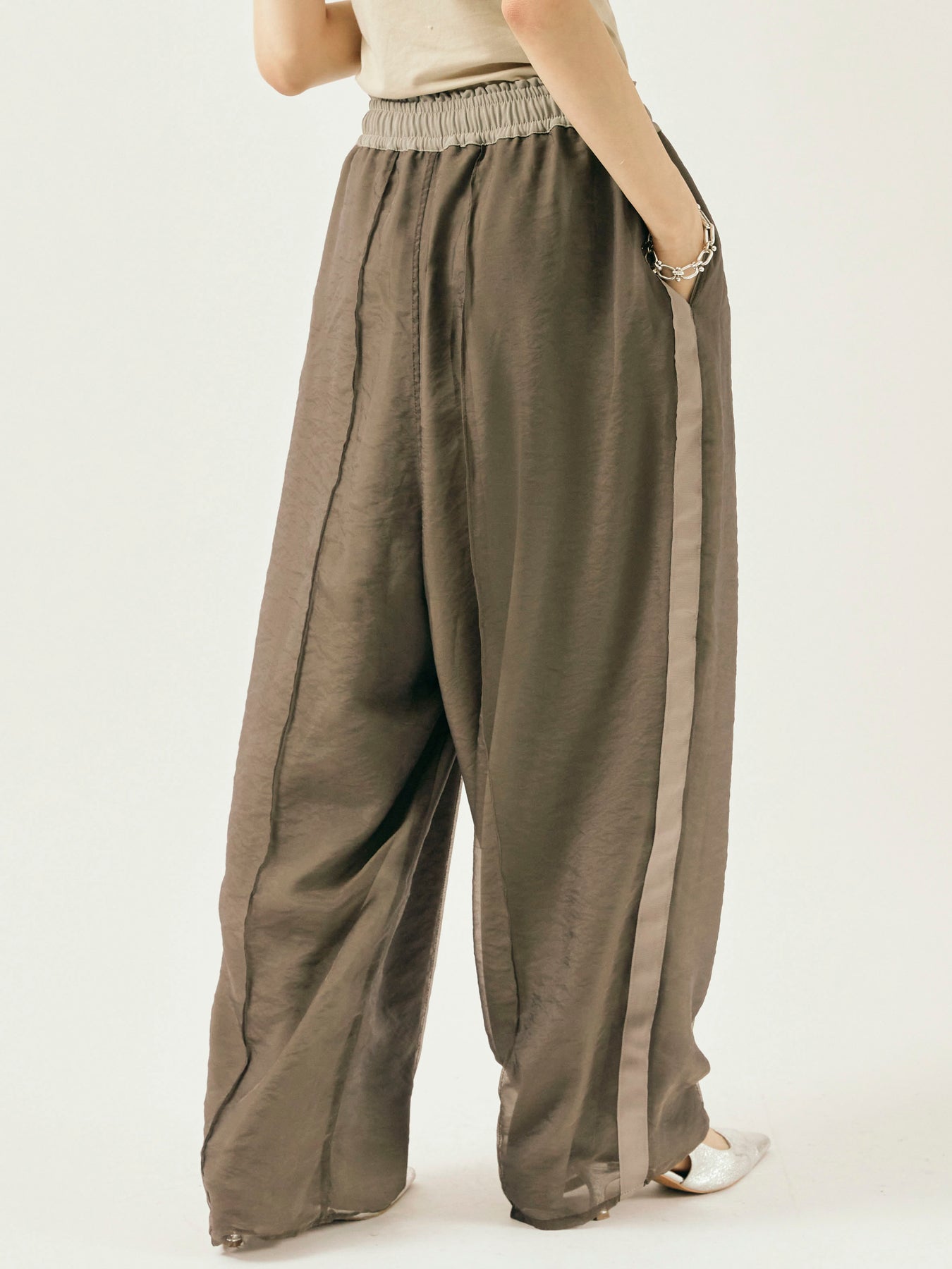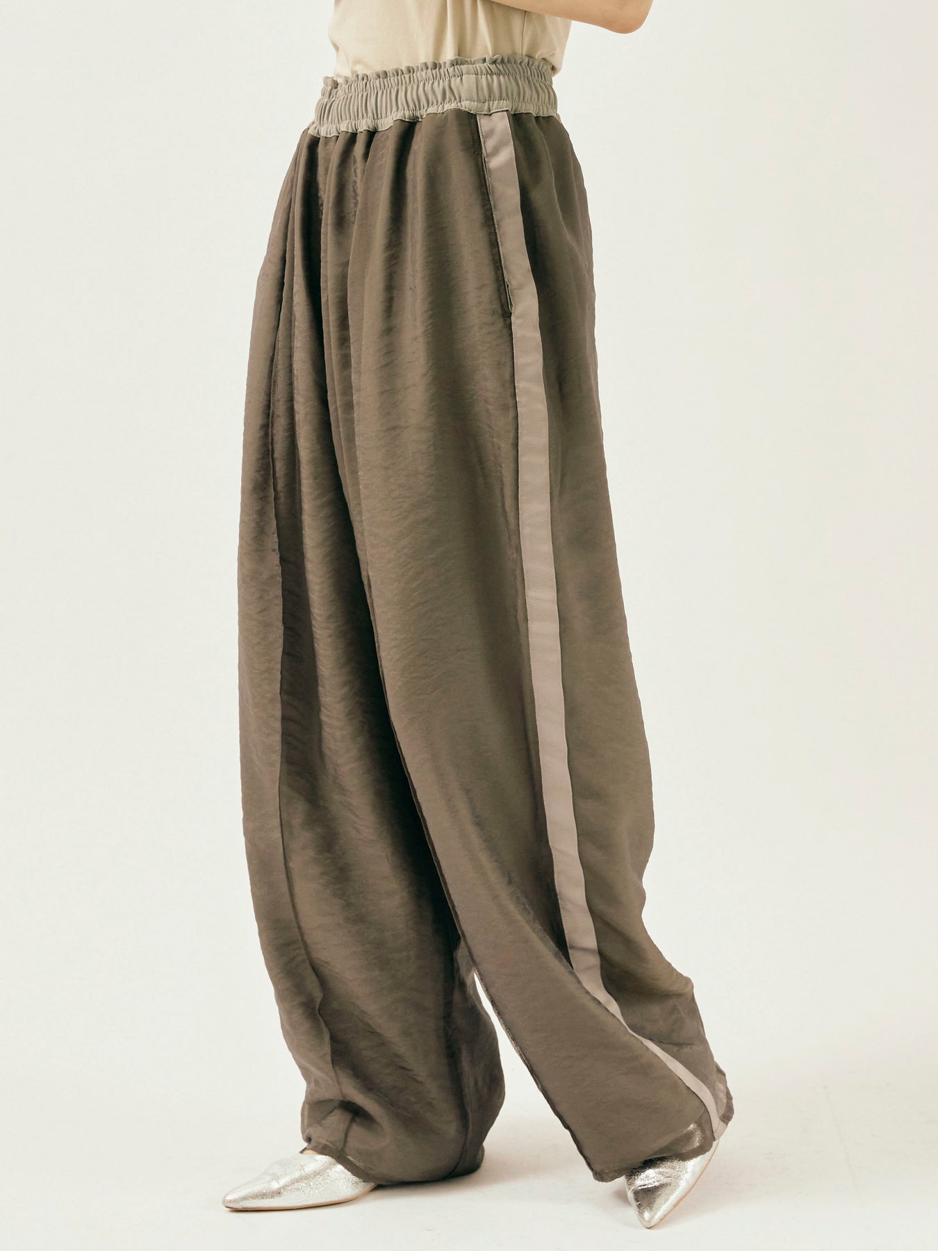[予約]オーガンジーレイヤードサイドラインパンツ/チャコール