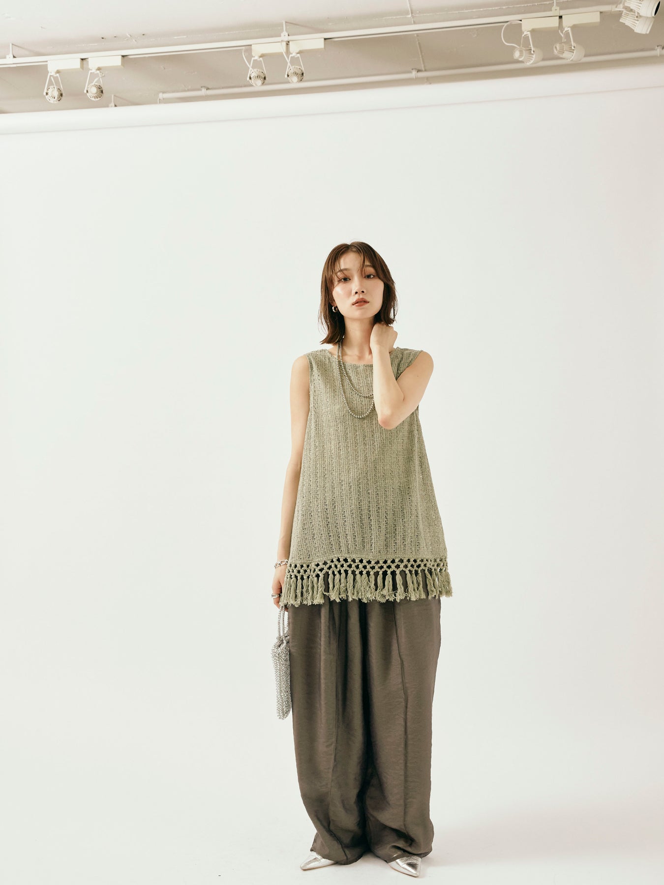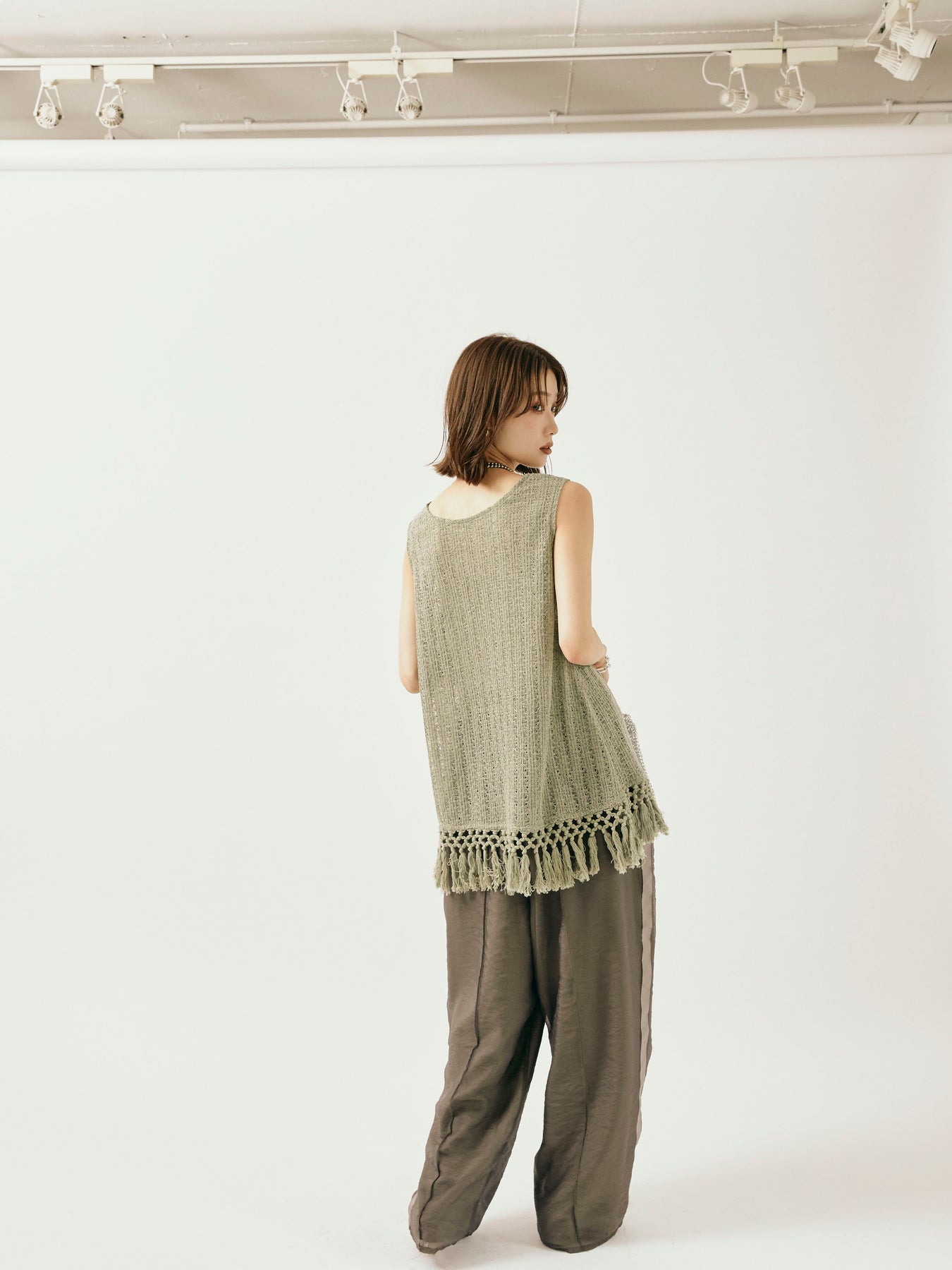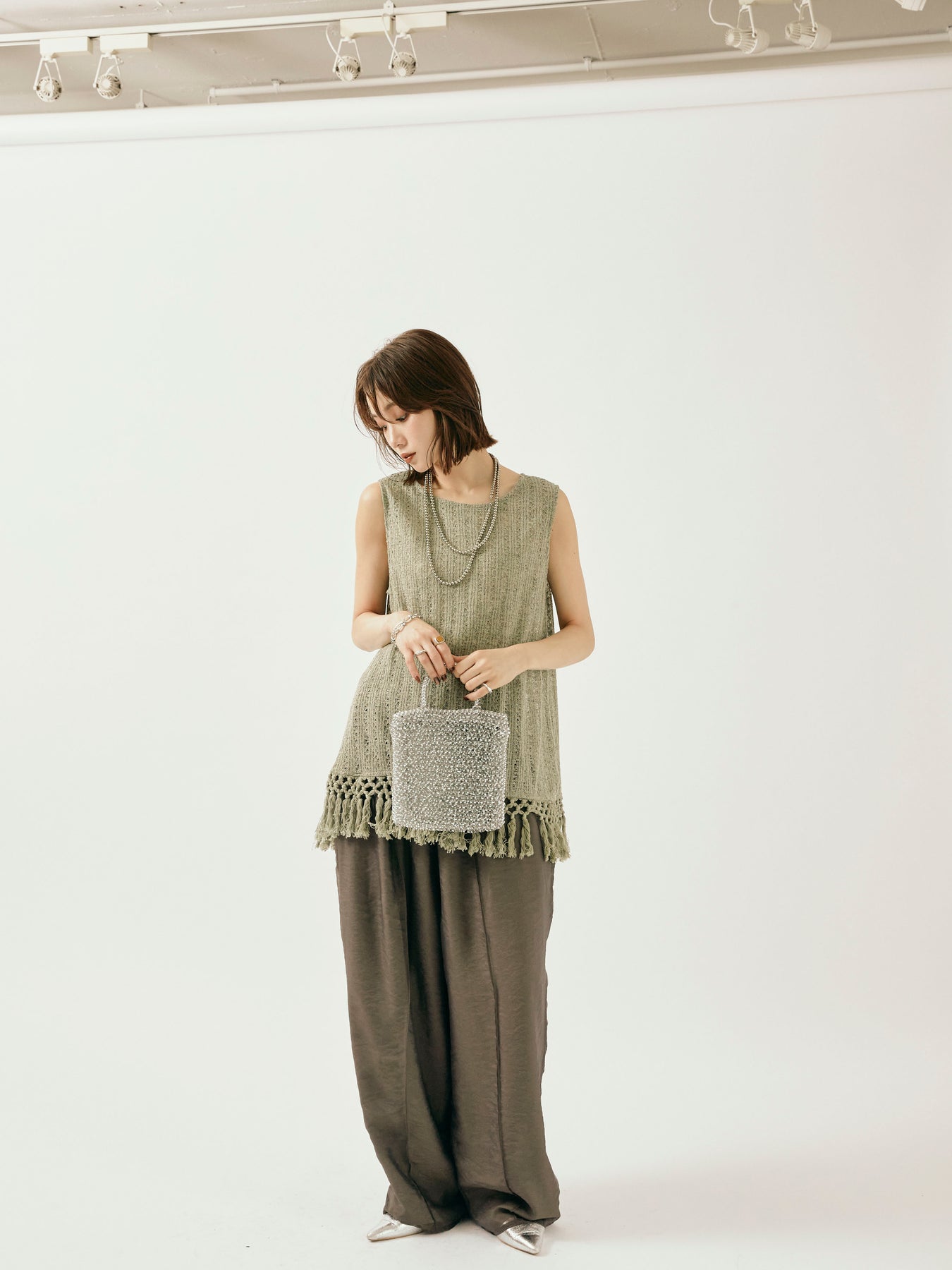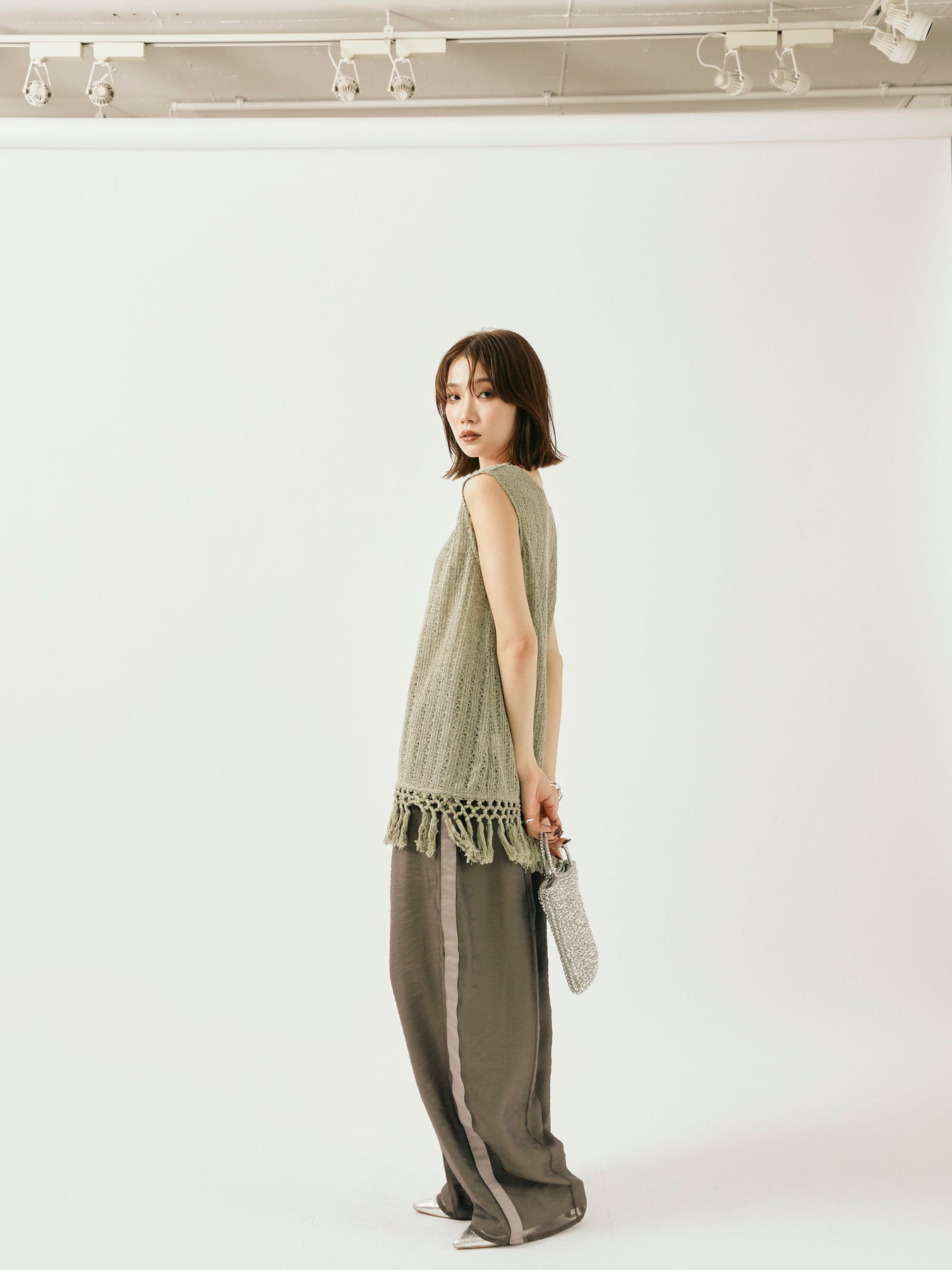 [予約]オーガンジーレイヤードサイドラインパンツ/チャコール