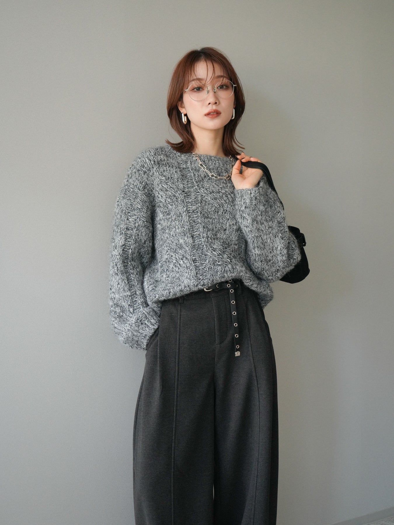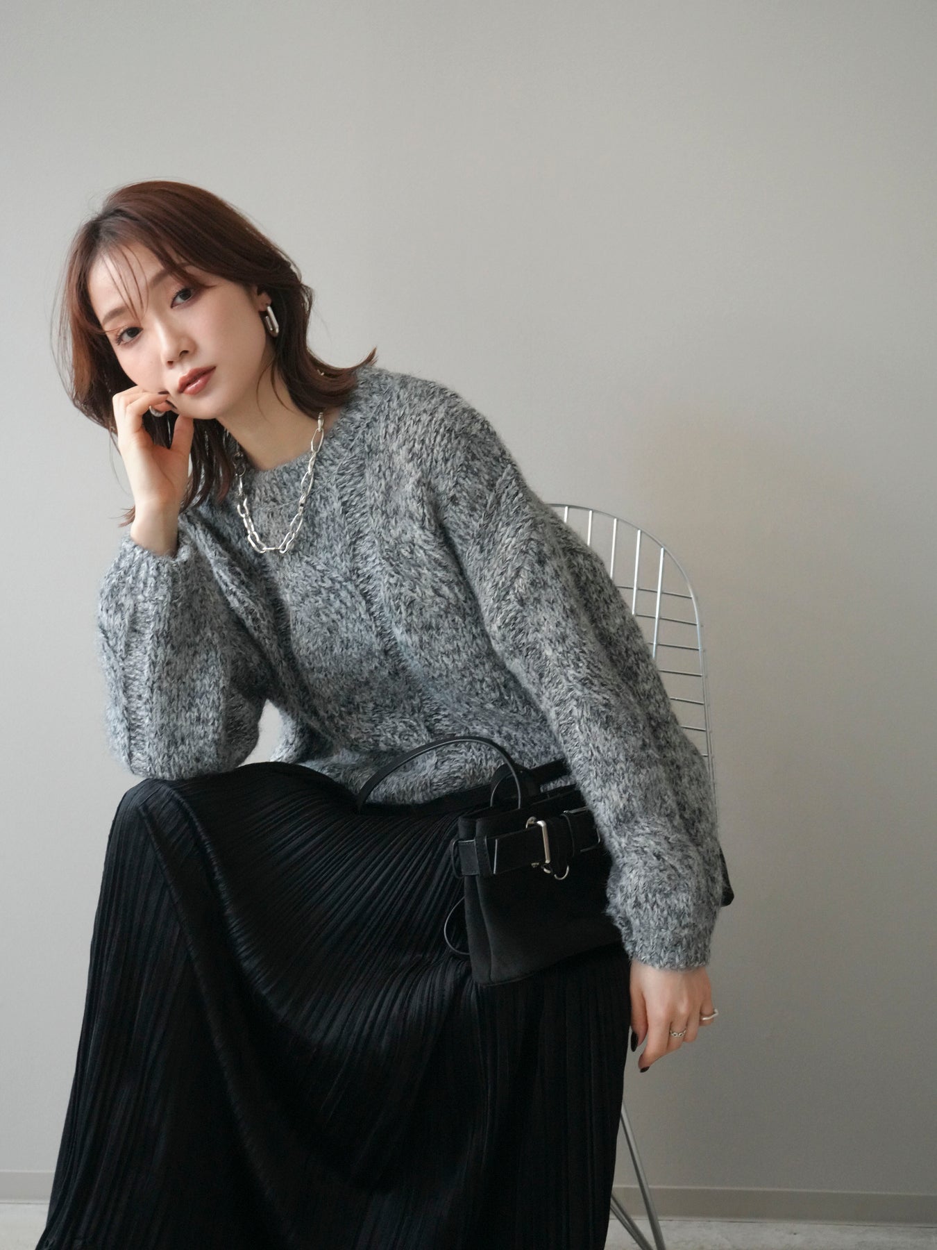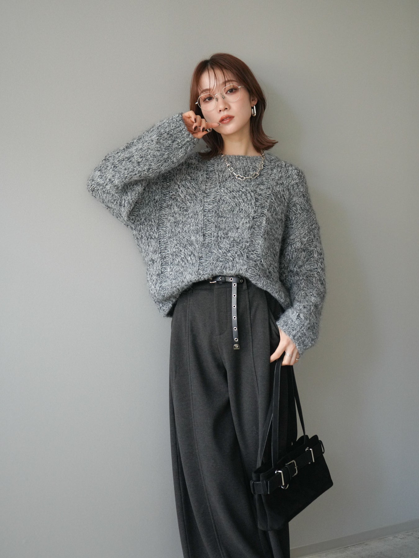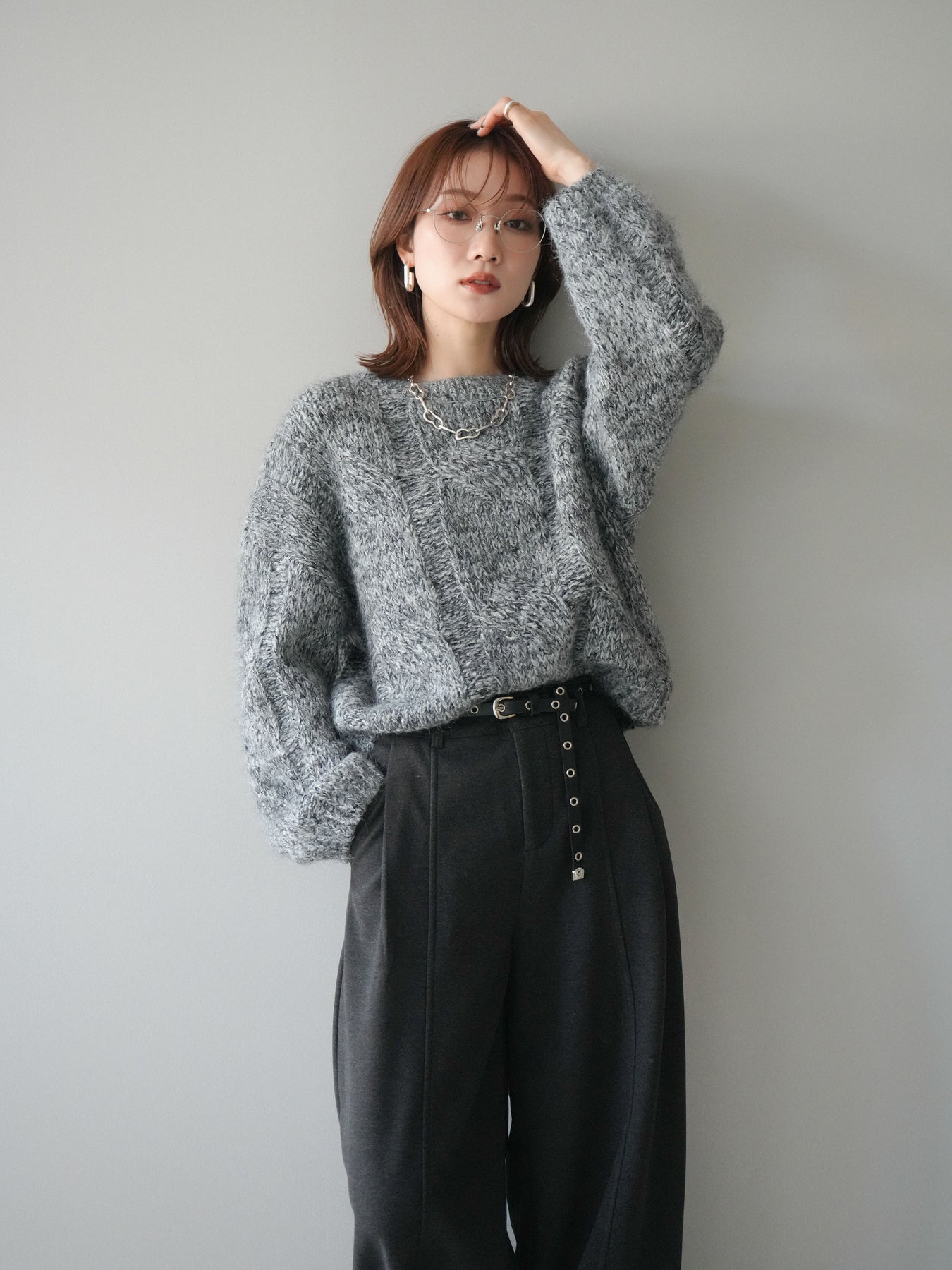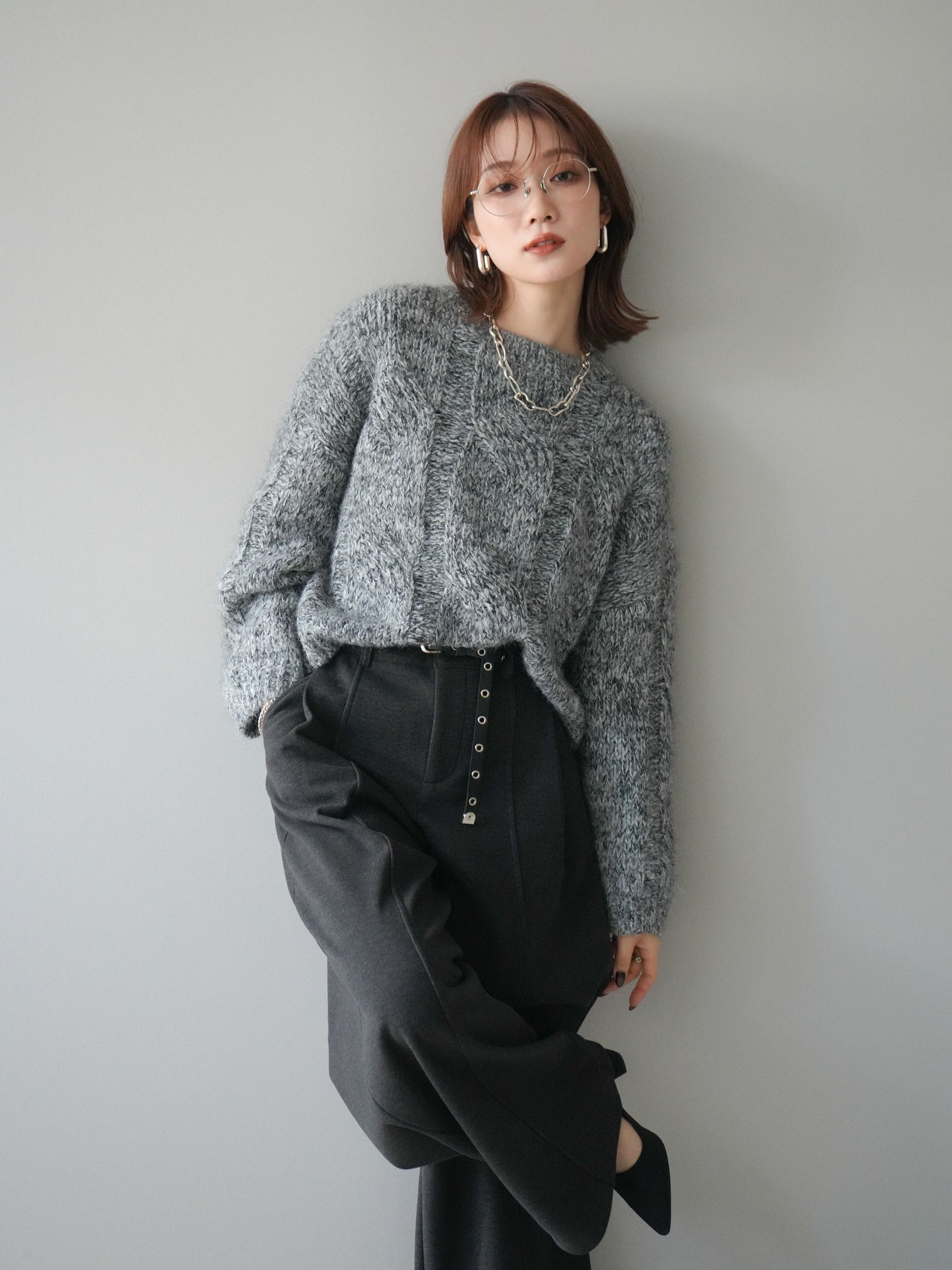 太めのケーブル編みとミックスヤーンが織りなす立体感が魅力のニットプルオーバー。ざっくりとした編地ながら重たく見えず、柔らかな風合いが季節らしい温もりを感じさせます。ワイドシルエットでゆったりと着られ、抜け感がありながらもルーズすぎない絶妙なバランスに。デニムやスカートなど幅広いボトムスと合わせやすく、1枚で主役になる存在感のあるアイテムです。 ※ボトムス、キャミソール(インナー)以外の商品は一律でインナーは付属していません。