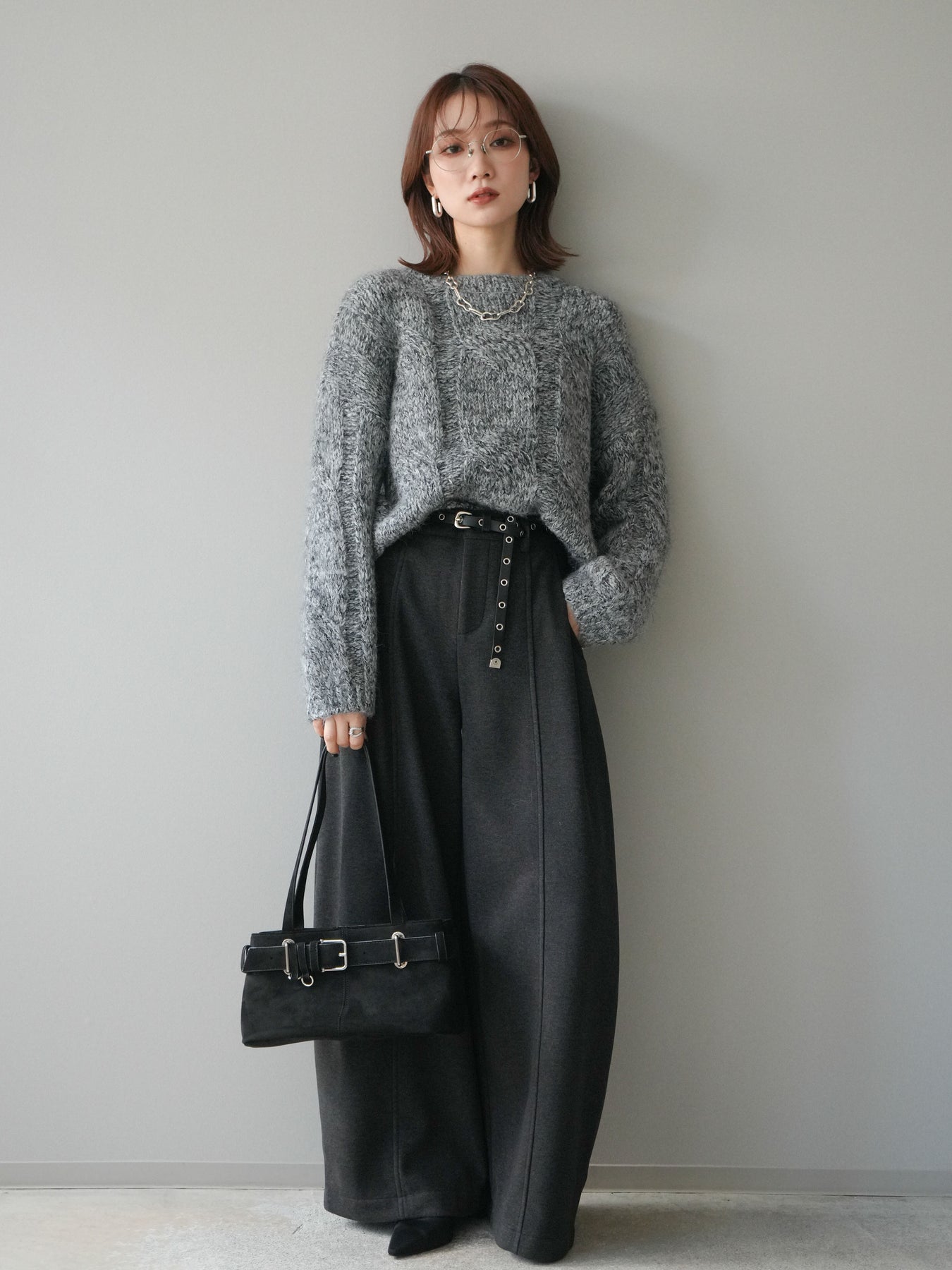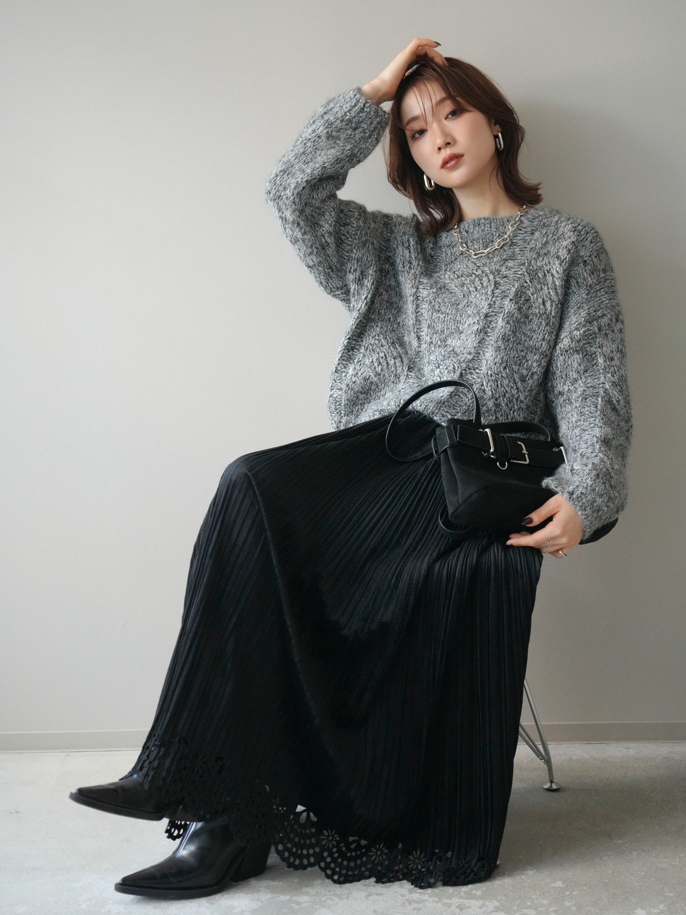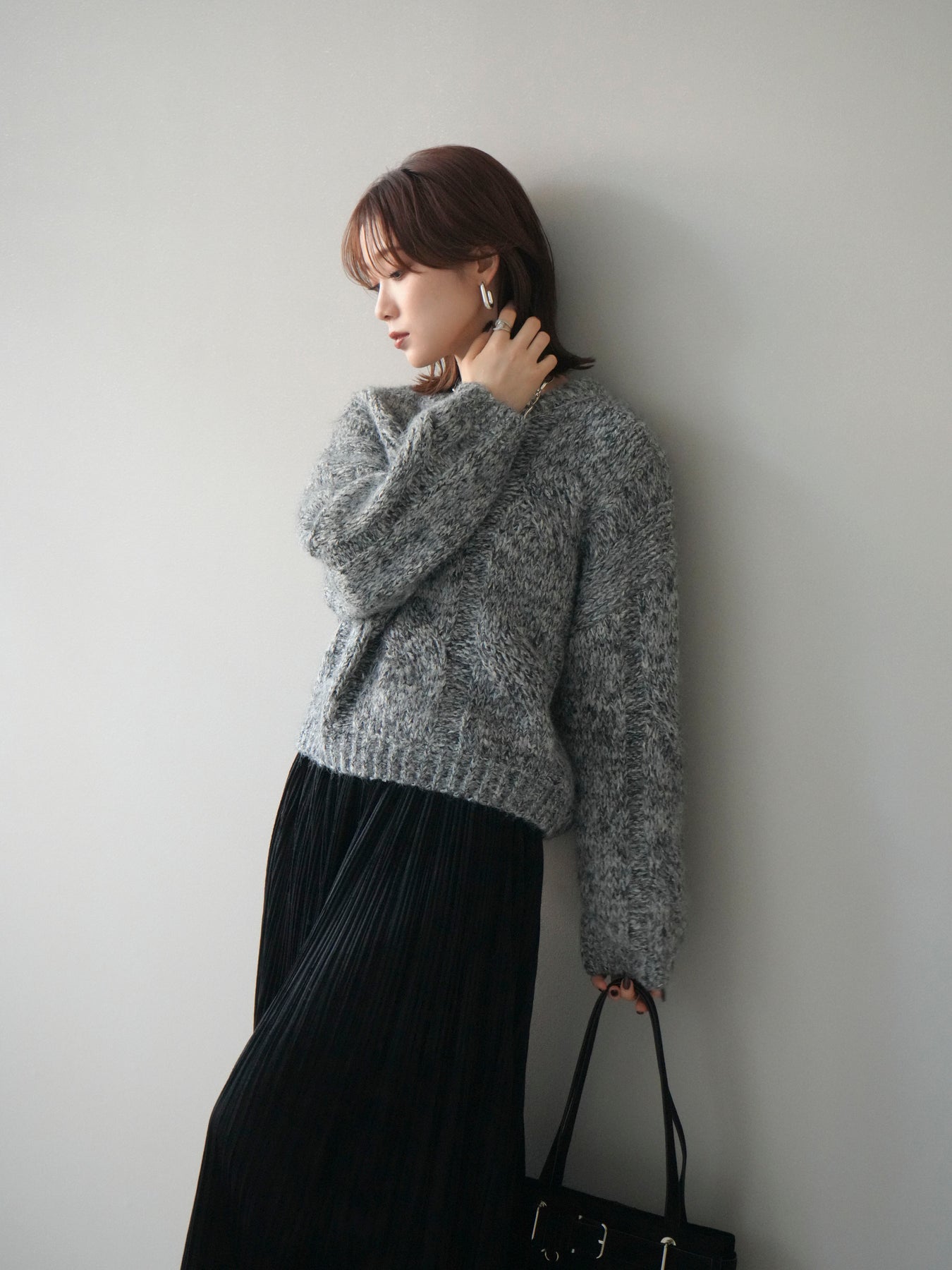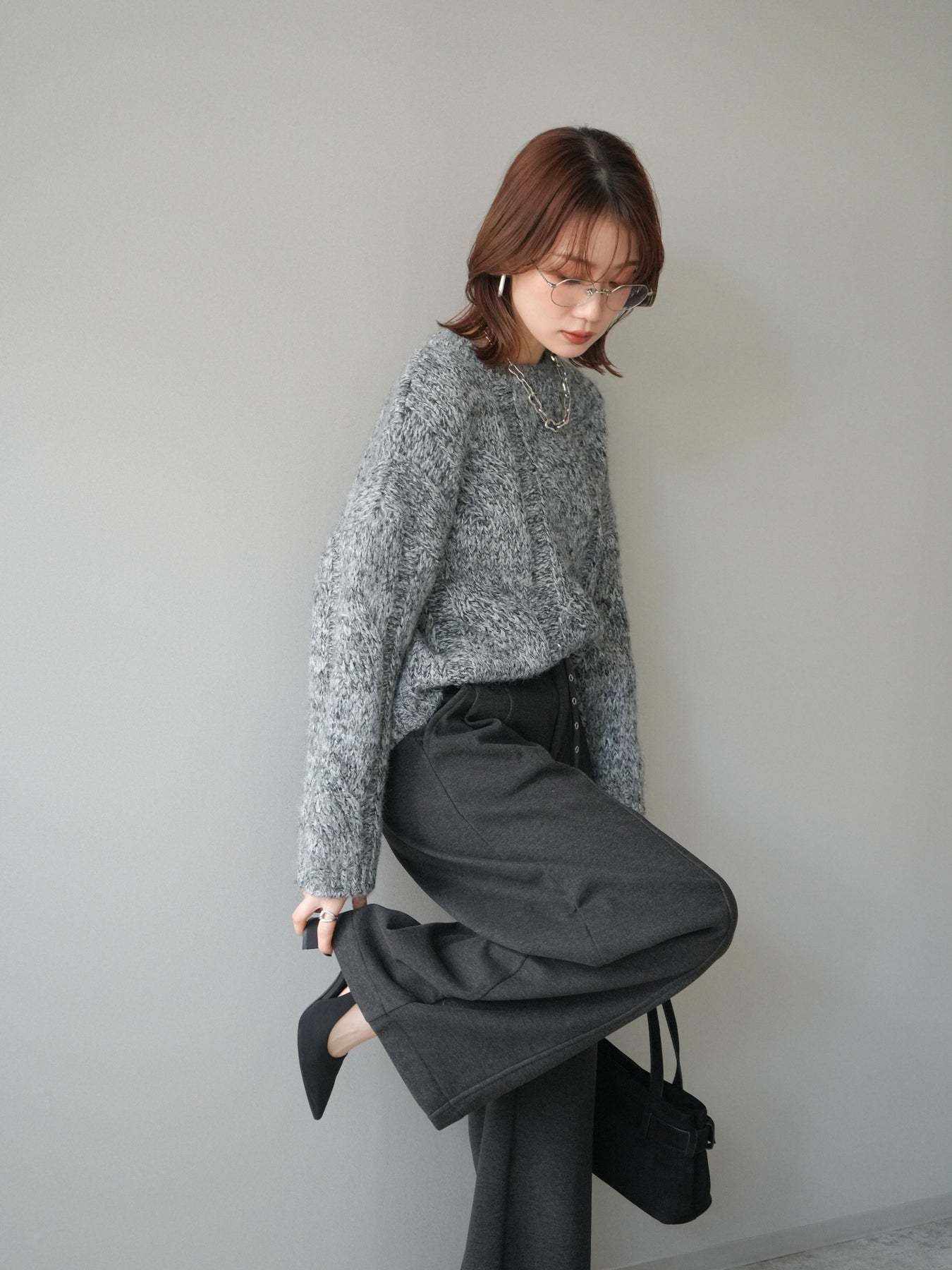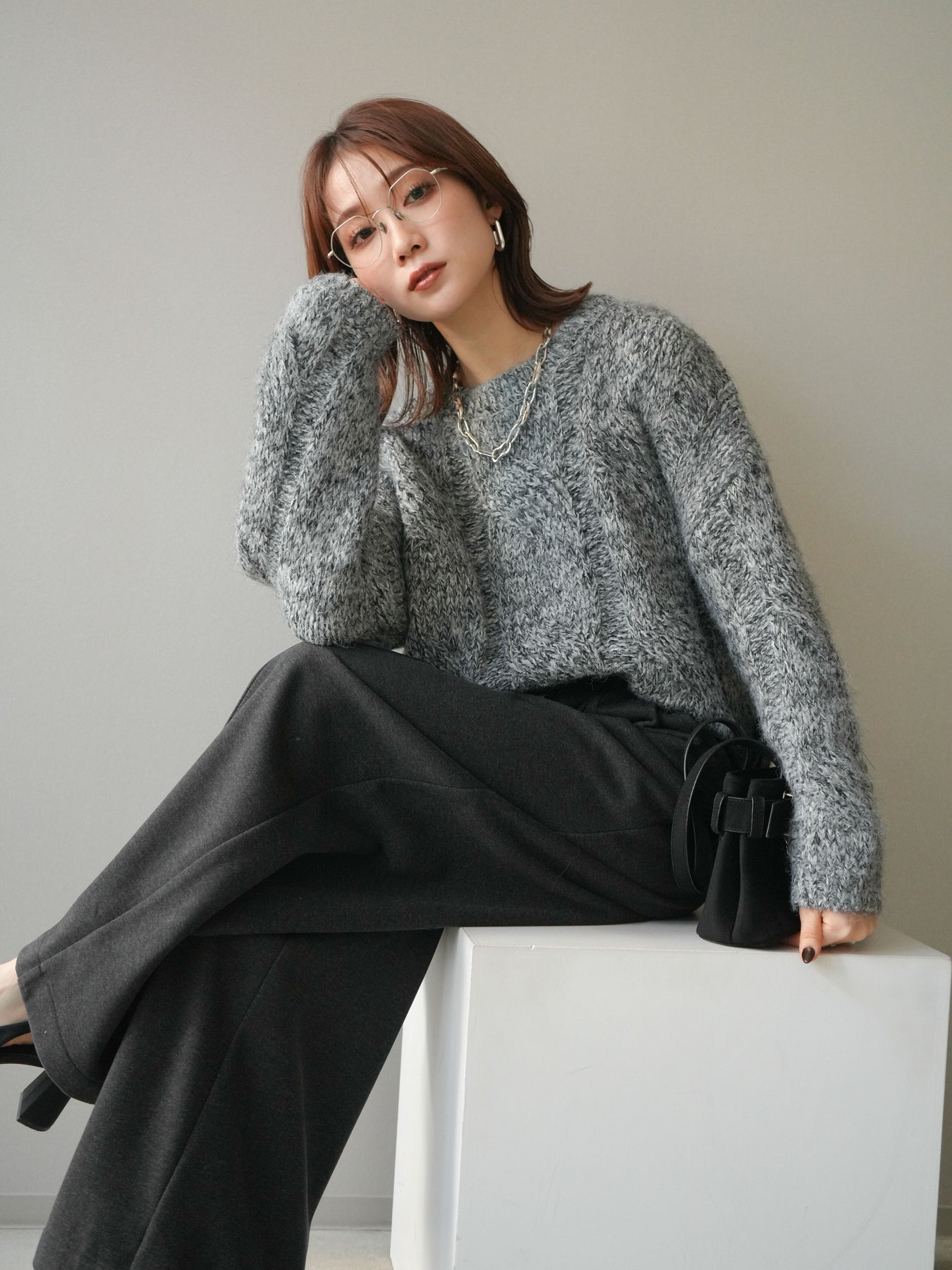 太めのケーブル編みとミックスヤーンが織りなす立体感が魅力のニットプルオーバー。ざっくりとした編地ながら重たく見えず、柔らかな風合いが季節らしい温もりを感じさせます。ワイドシルエットでゆったりと着られ、抜け感がありながらもルーズすぎない絶妙なバランスに。デニムやスカートなど幅広いボトムスと合わせやすく、1枚で主役になる存在感のあるアイテムです。 ※ボトムス、キャミソール(インナー)以外の商品は一律でインナーは付属していません。