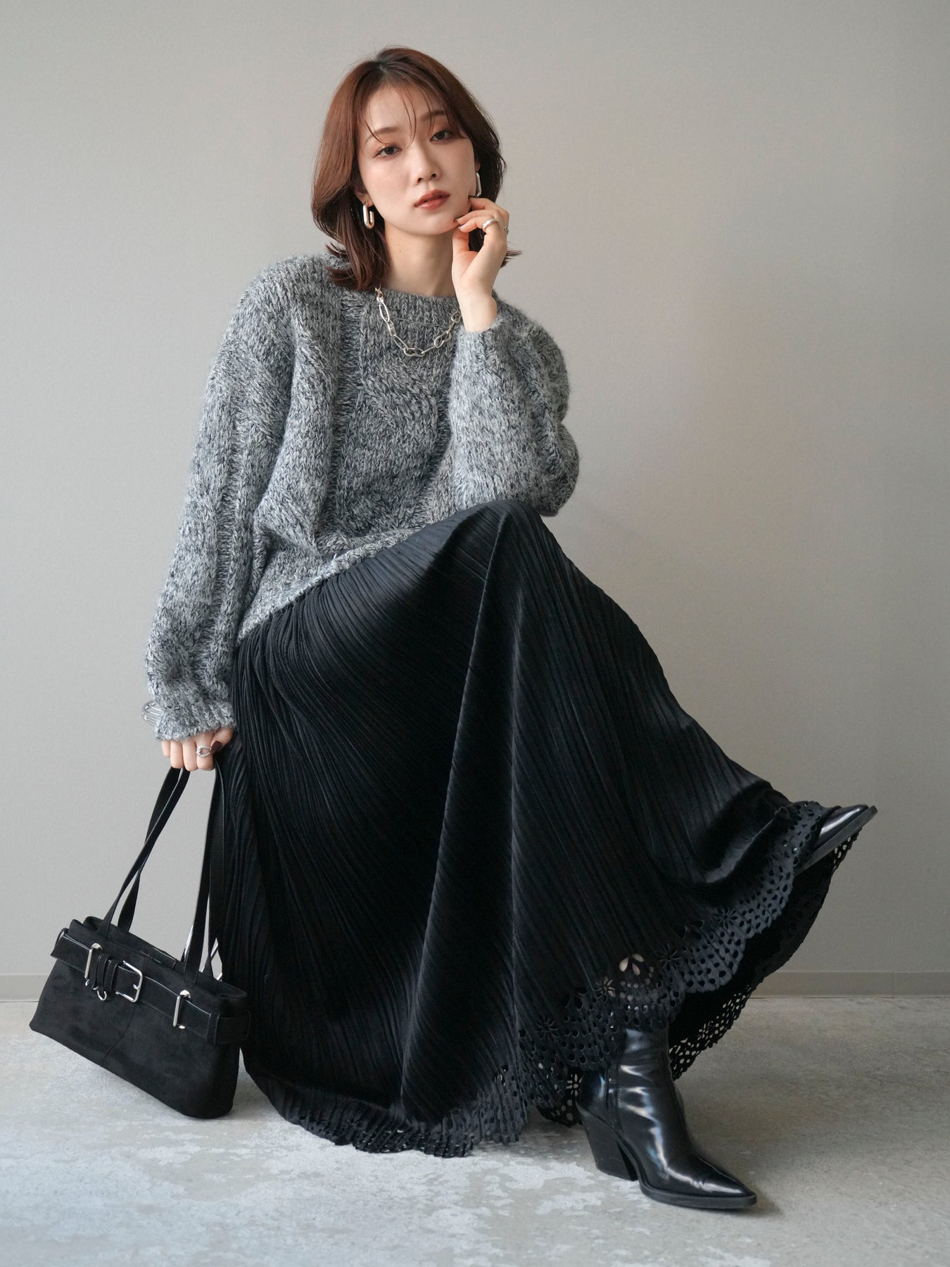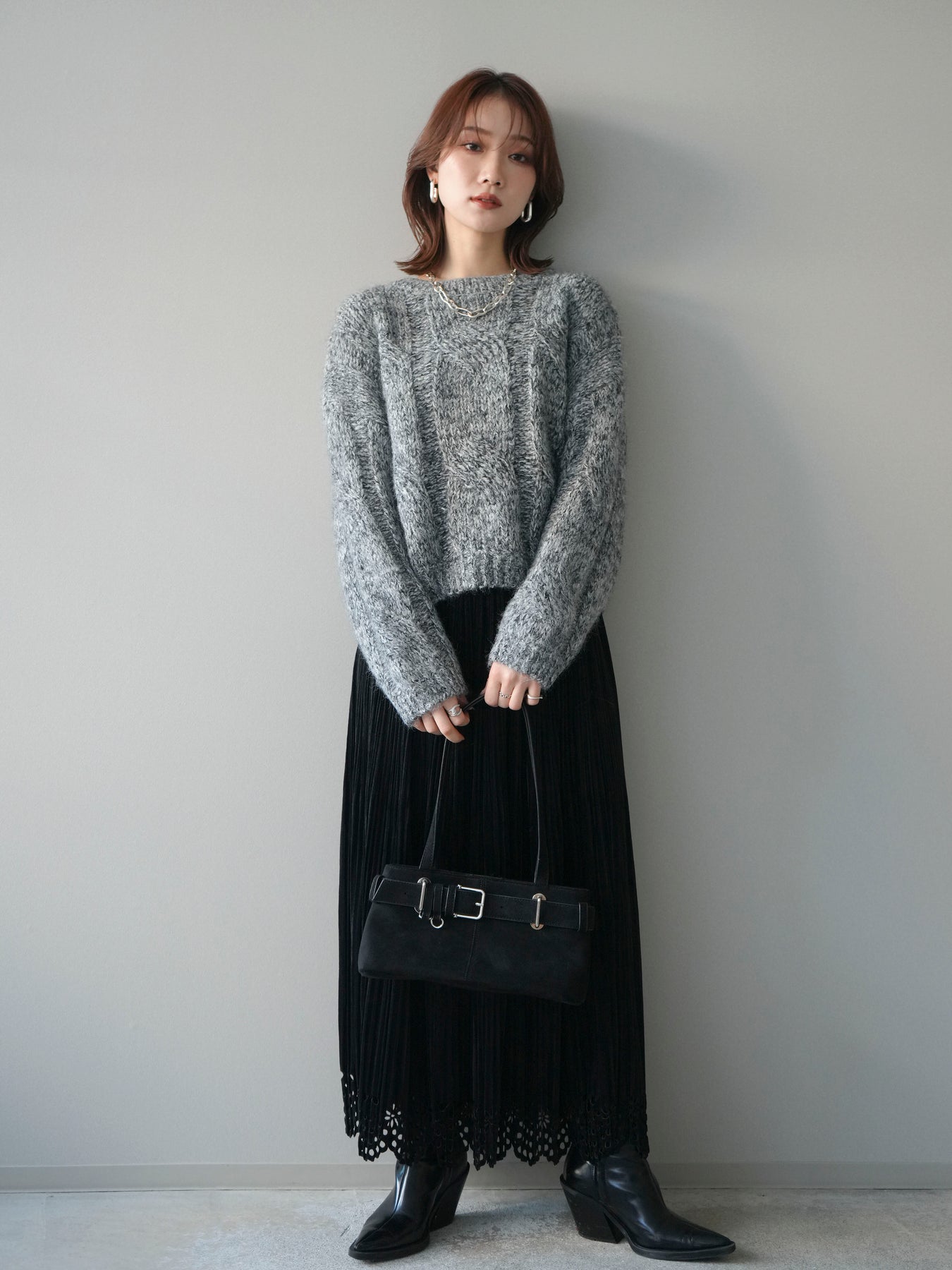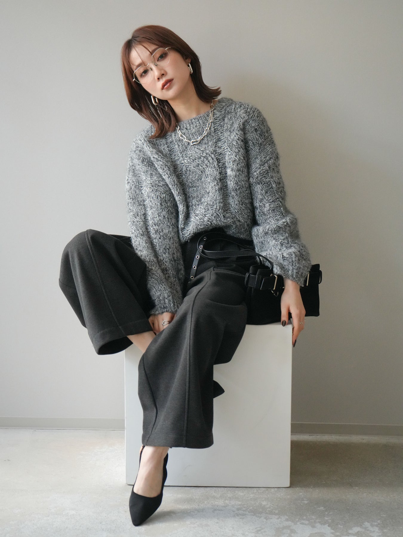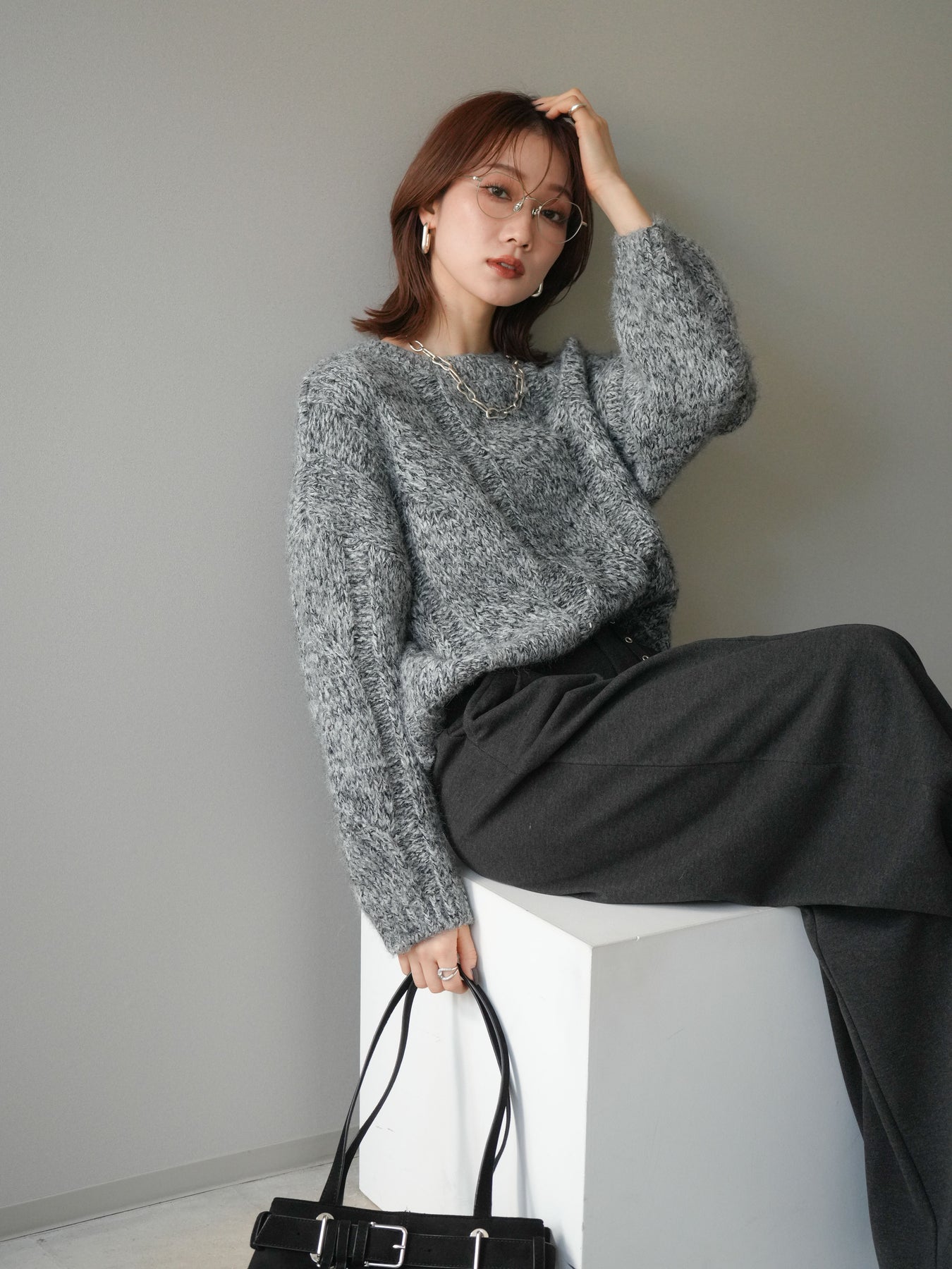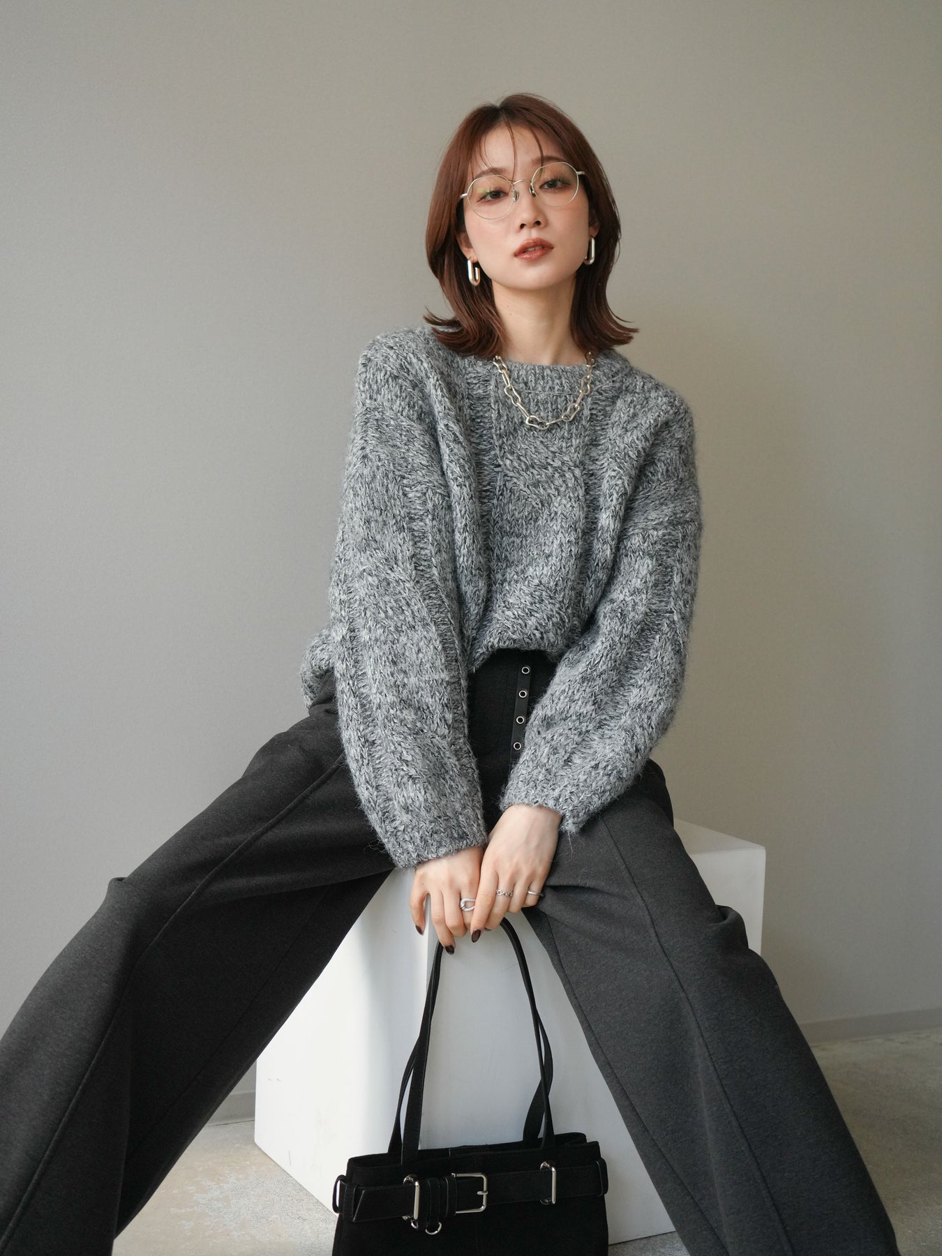 太めのケーブル編みとミックスヤーンが織りなす立体感が魅力のニットプルオーバー。ざっくりとした編地ながら重たく見えず、柔らかな風合いが季節らしい温もりを感じさせます。ワイドシルエットでゆったりと着られ、抜け感がありながらもルーズすぎない絶妙なバランスに。デニムやスカートなど幅広いボトムスと合わせやすく、1枚で主役になる存在感のあるアイテムです。 ※ボトムス、キャミソール(インナー)以外の商品は一律でインナーは付属していません。