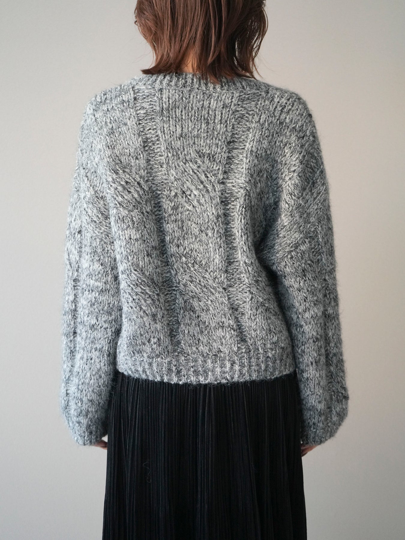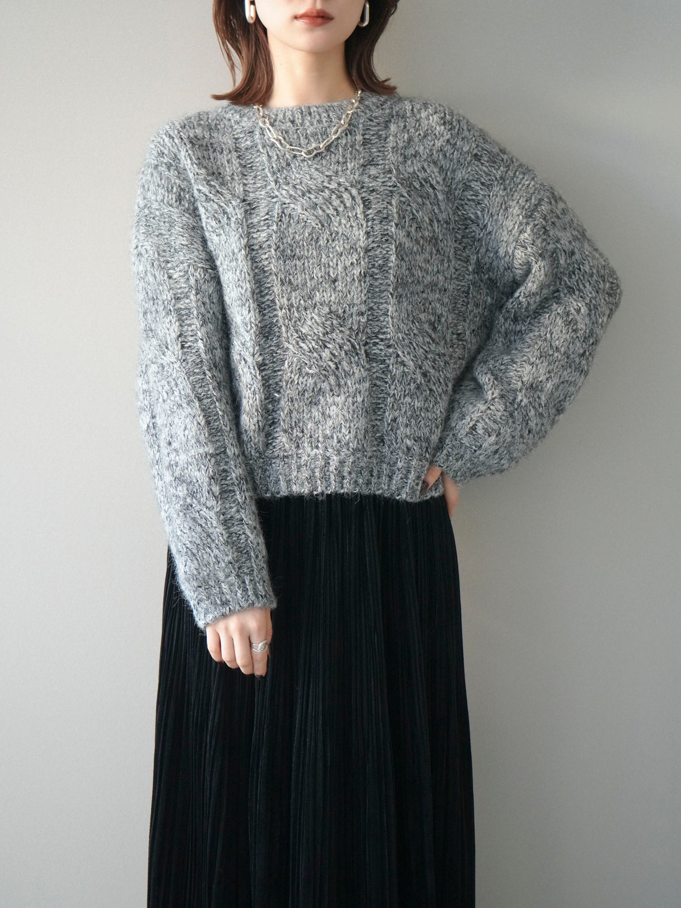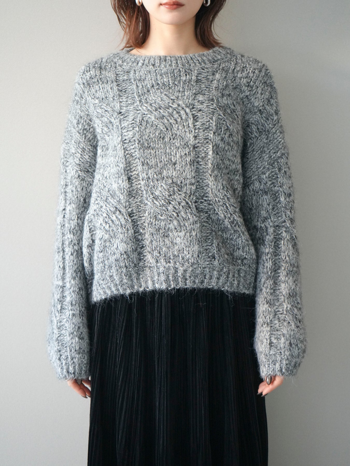 [予約]ワイドケーブルミックスニットプルオーバー/gray