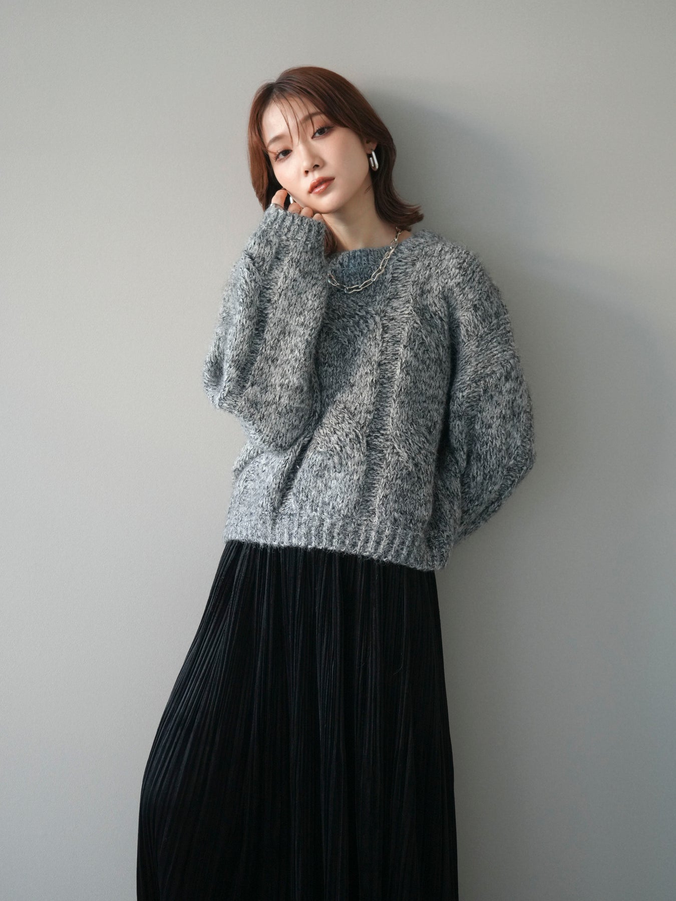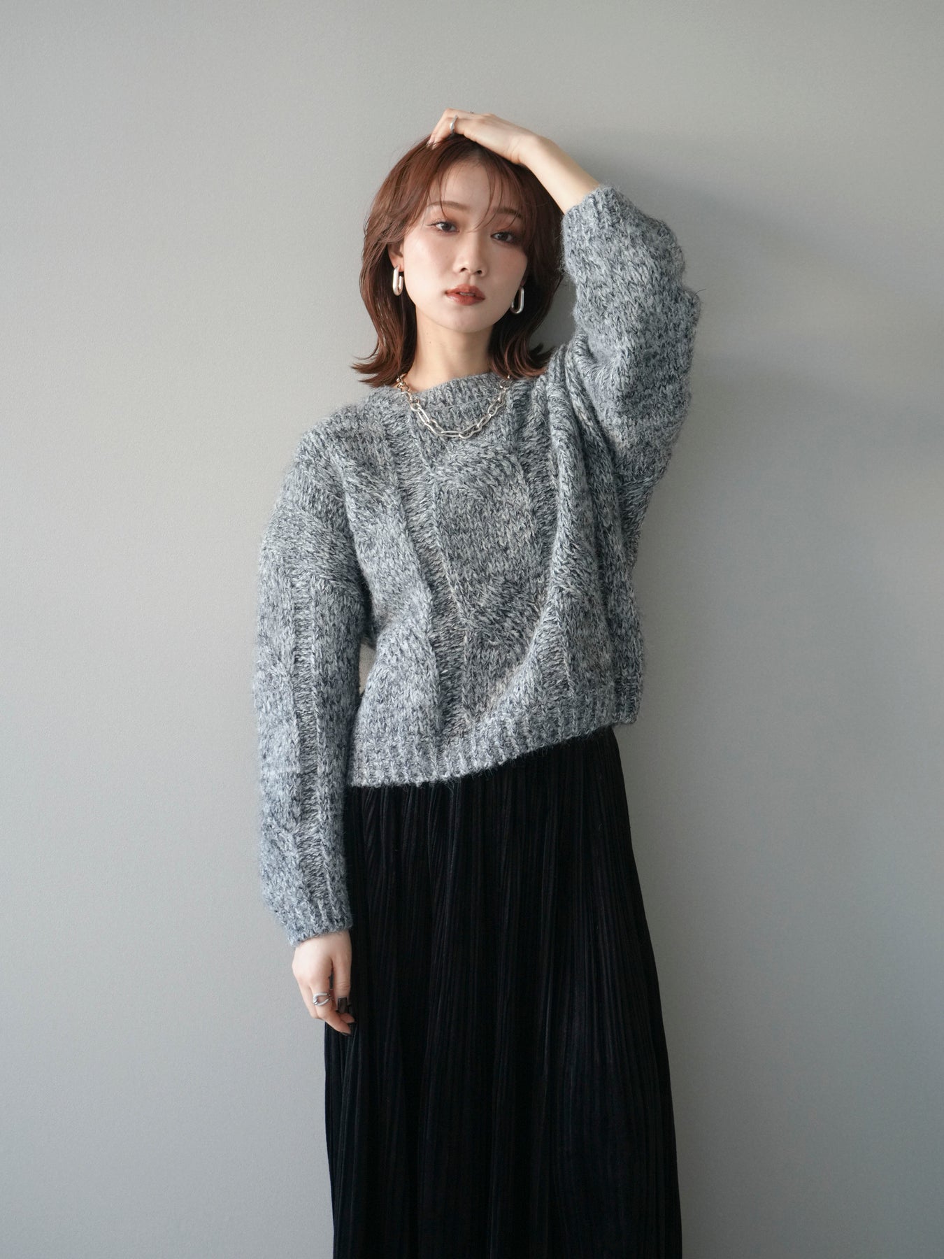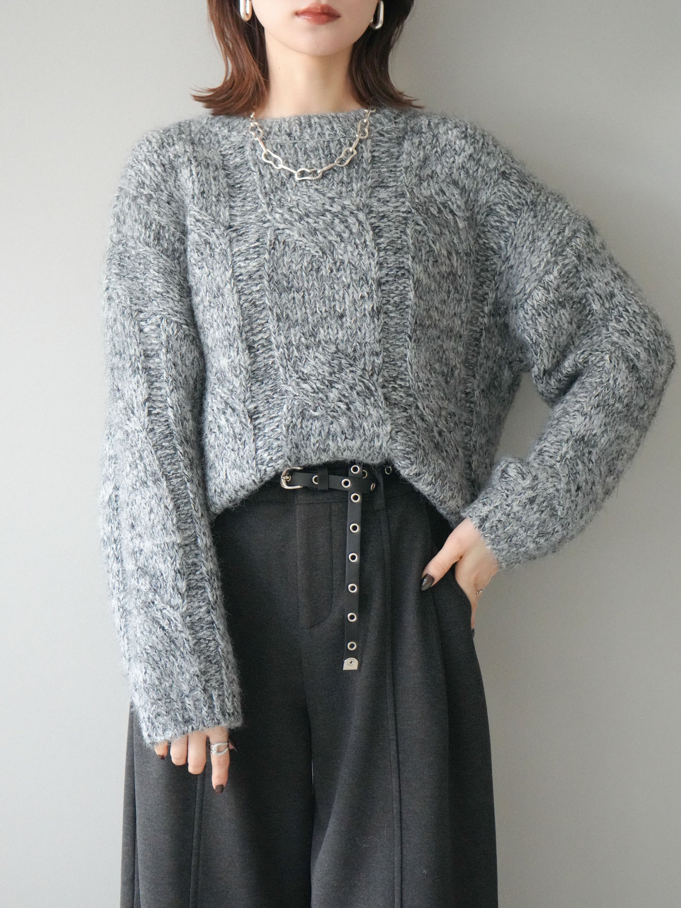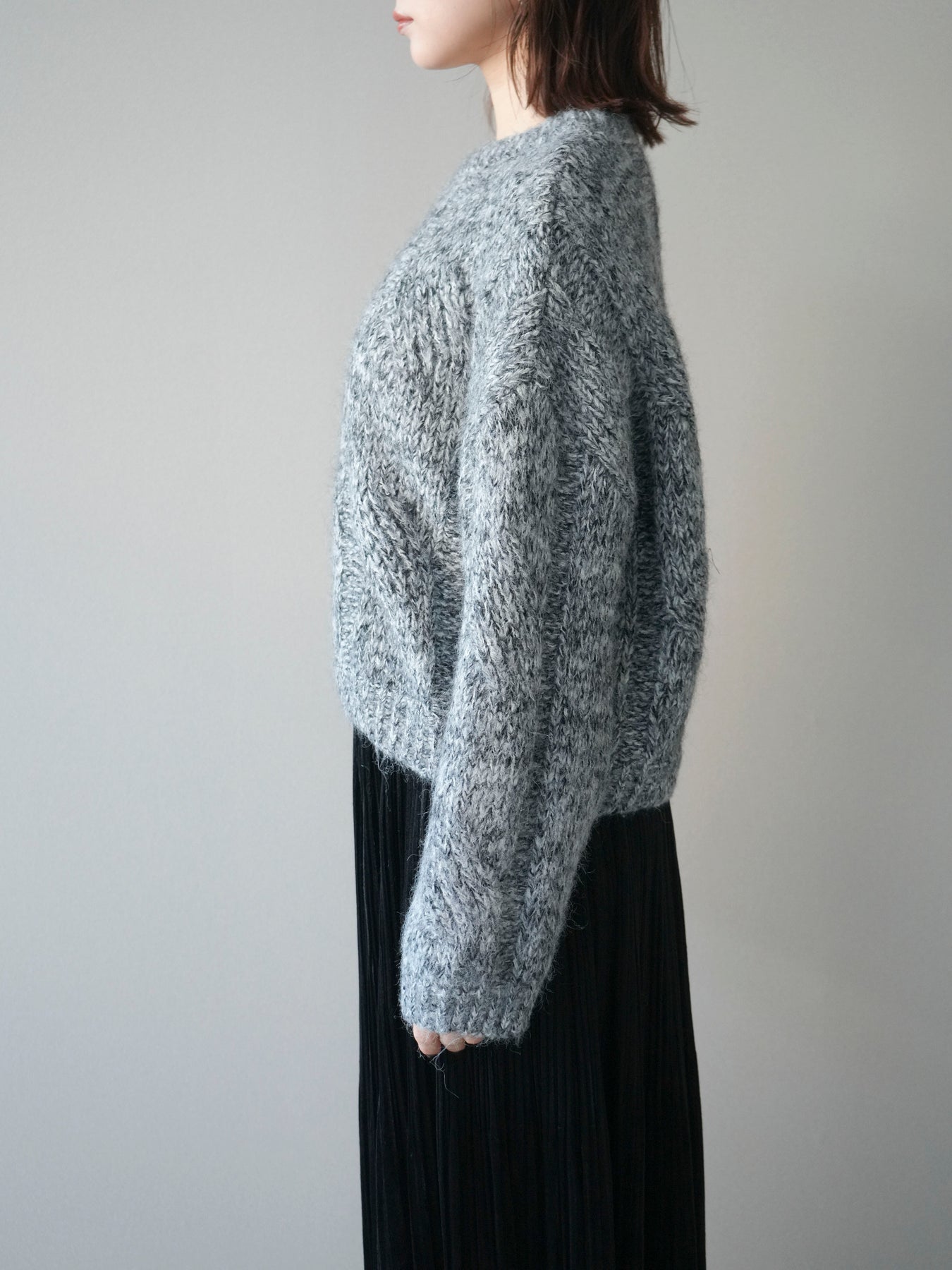 [予約]ワイドケーブルミックスニットプルオーバー/gray