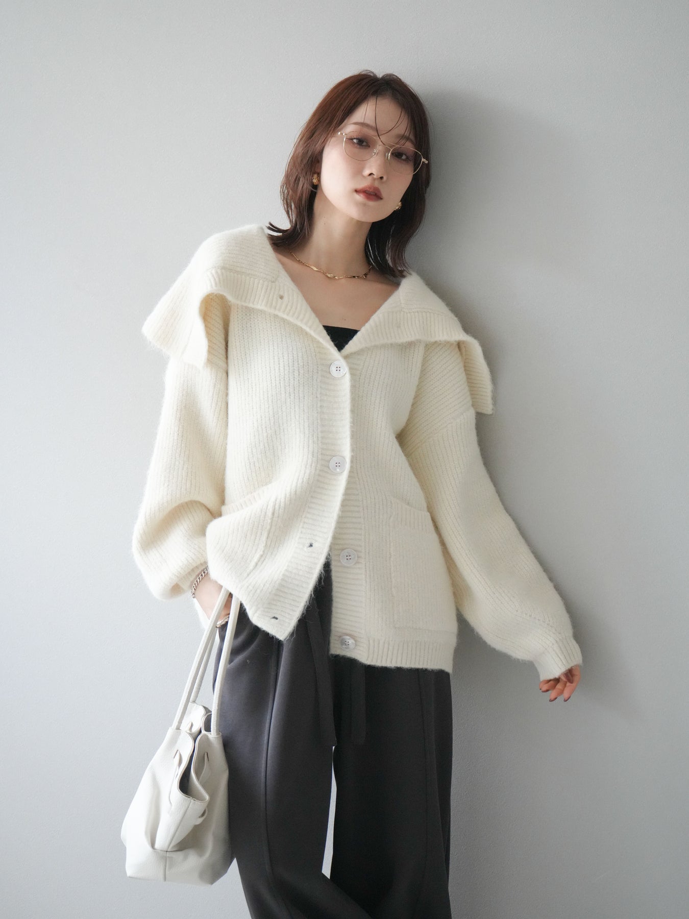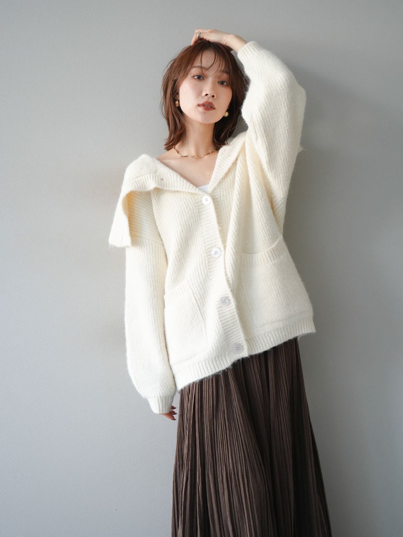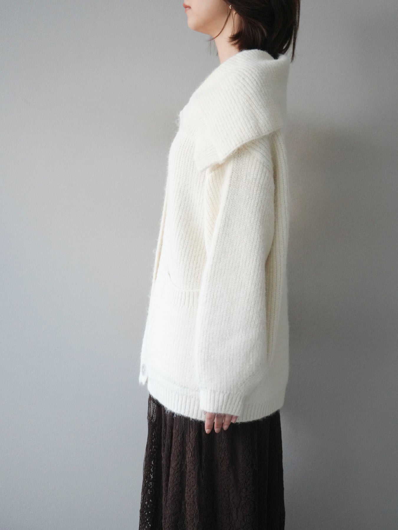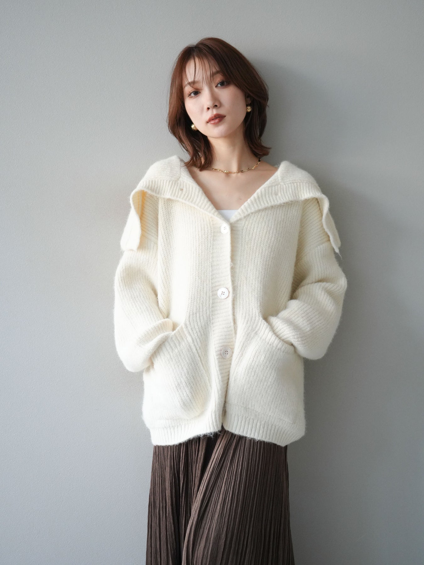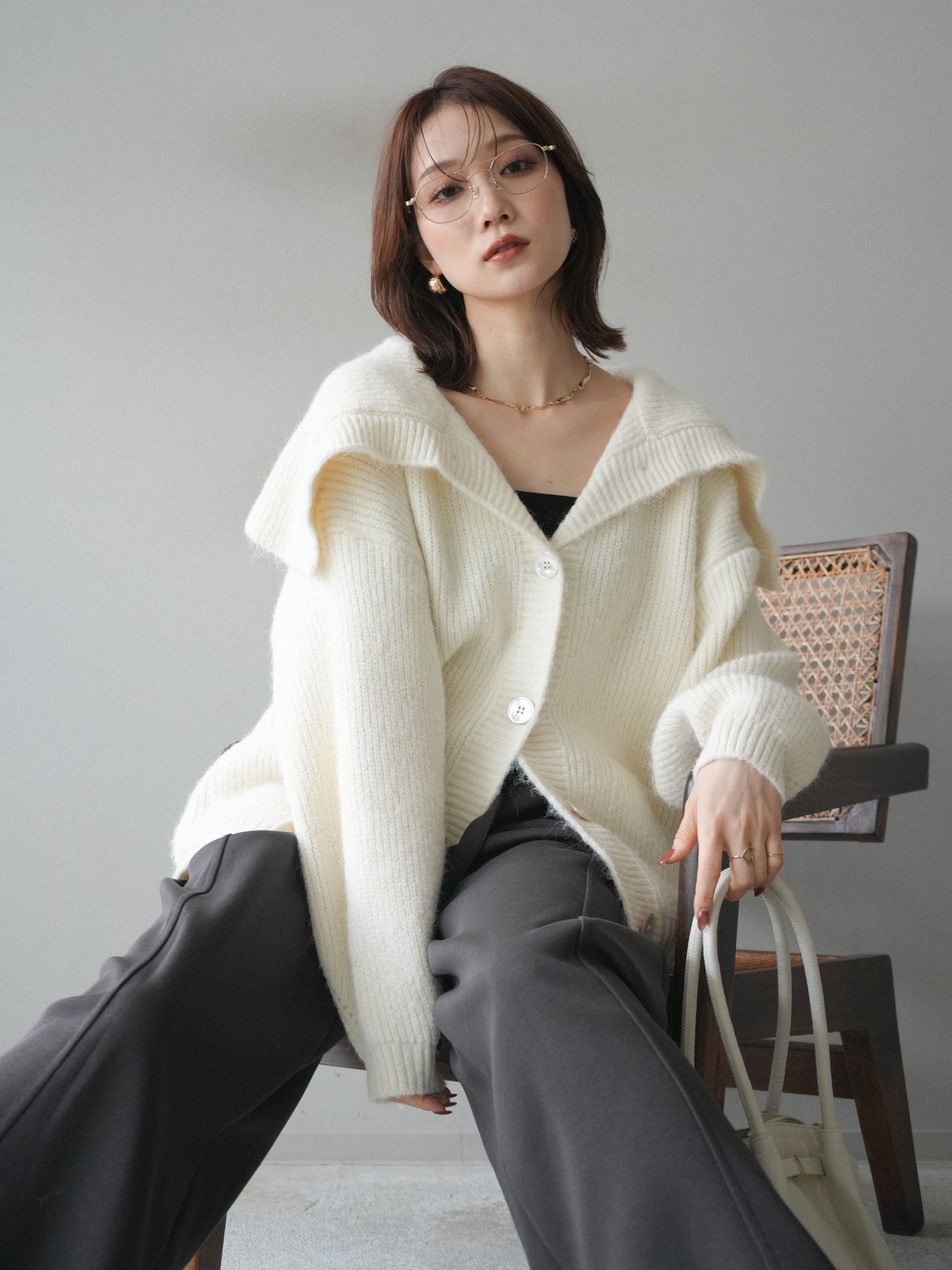 [予約]襟付きボタンオーバーニットカーディガン/ivory