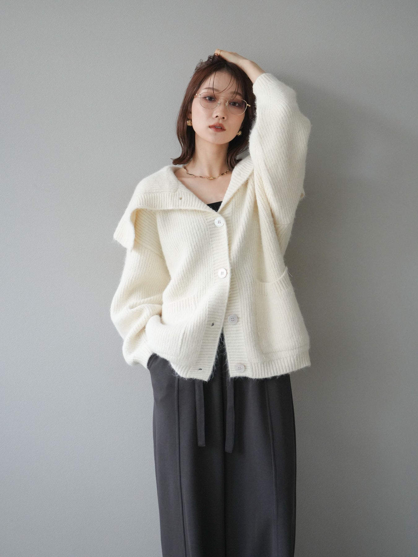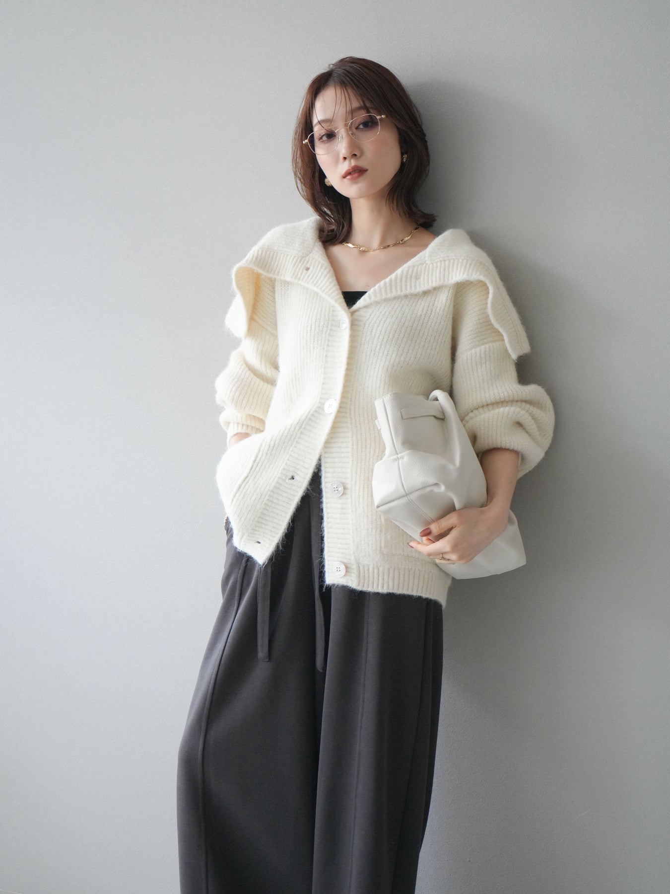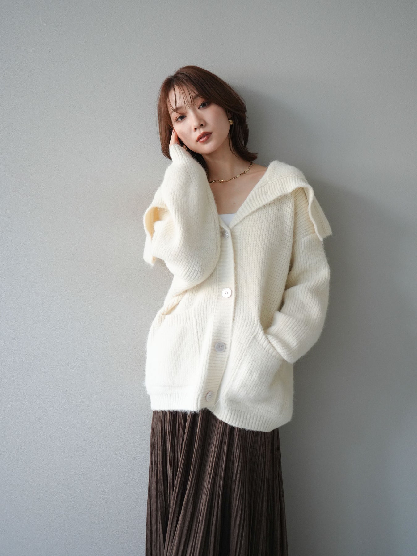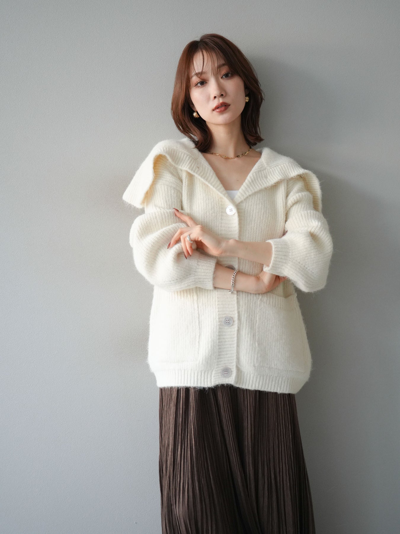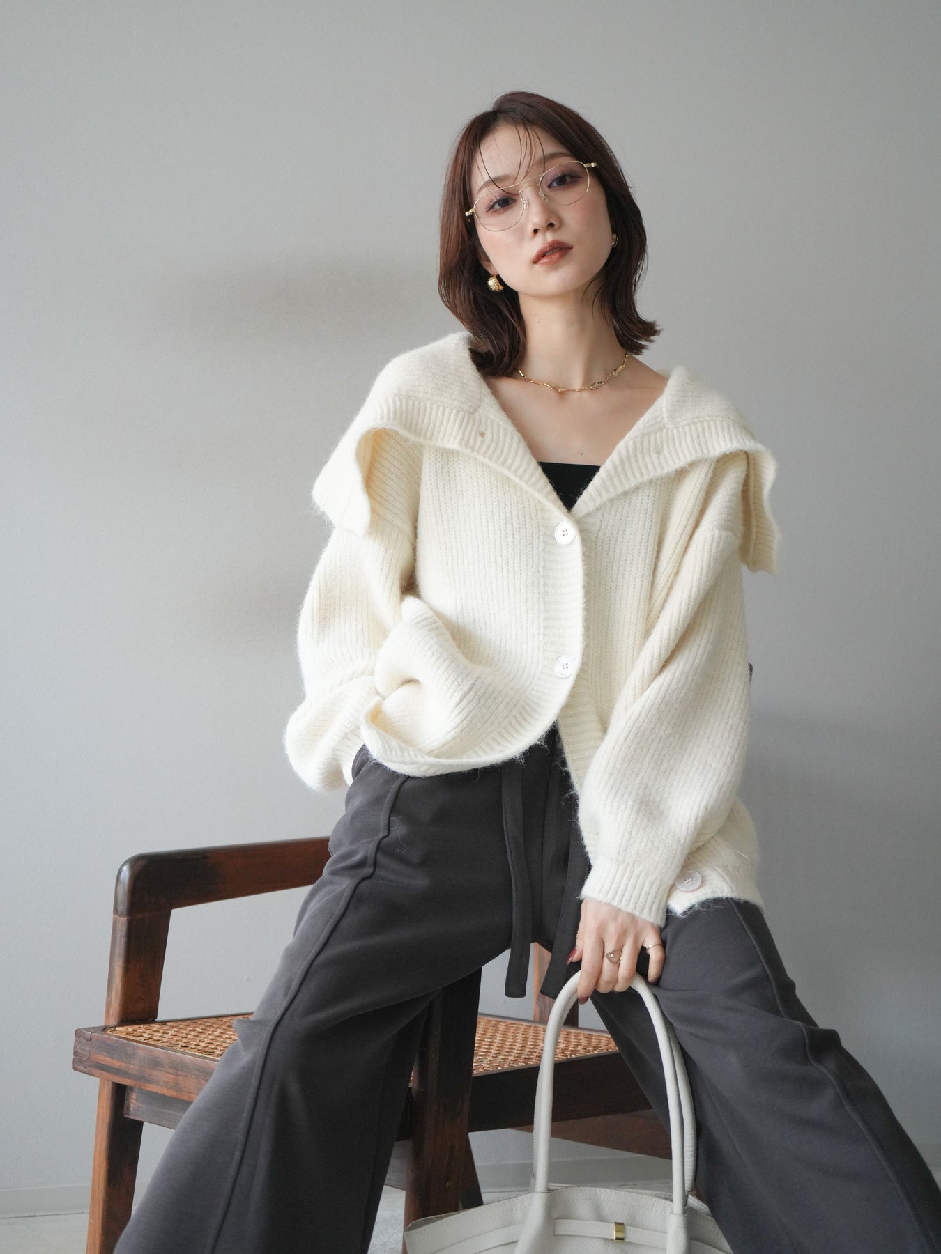 [予約]襟付きボタンオーバーニットカーディガン/ivory