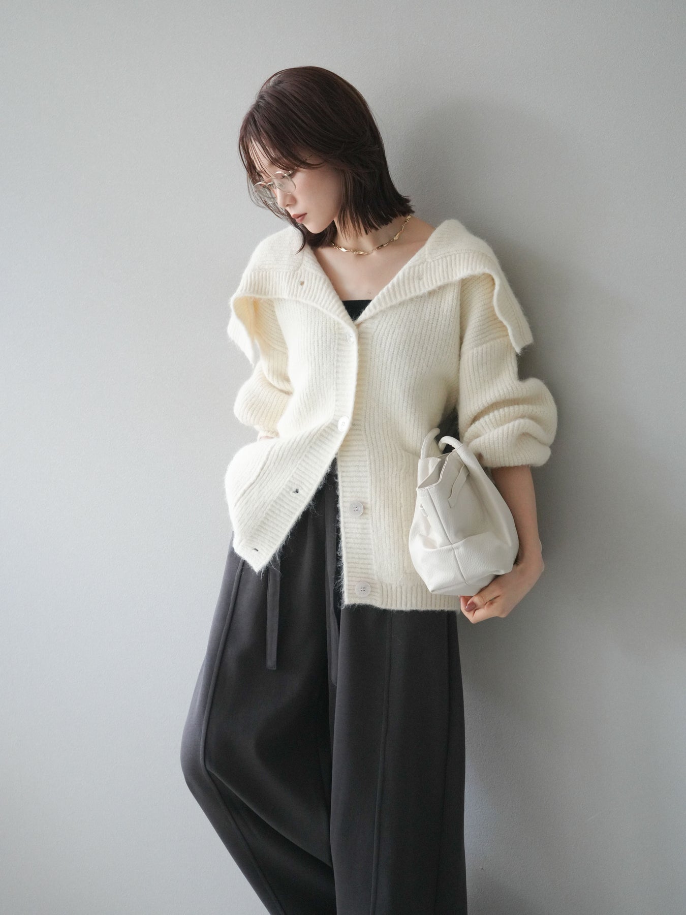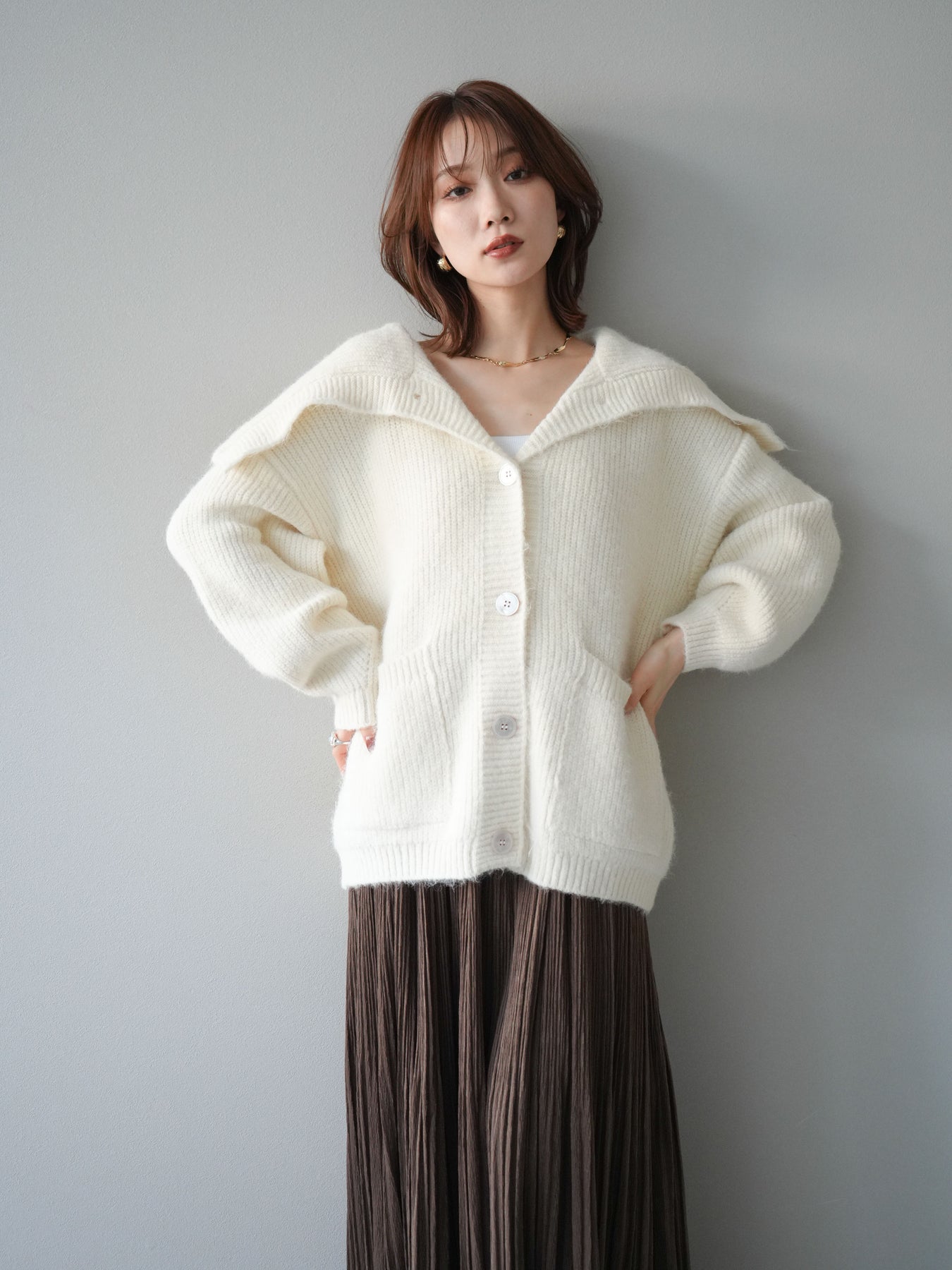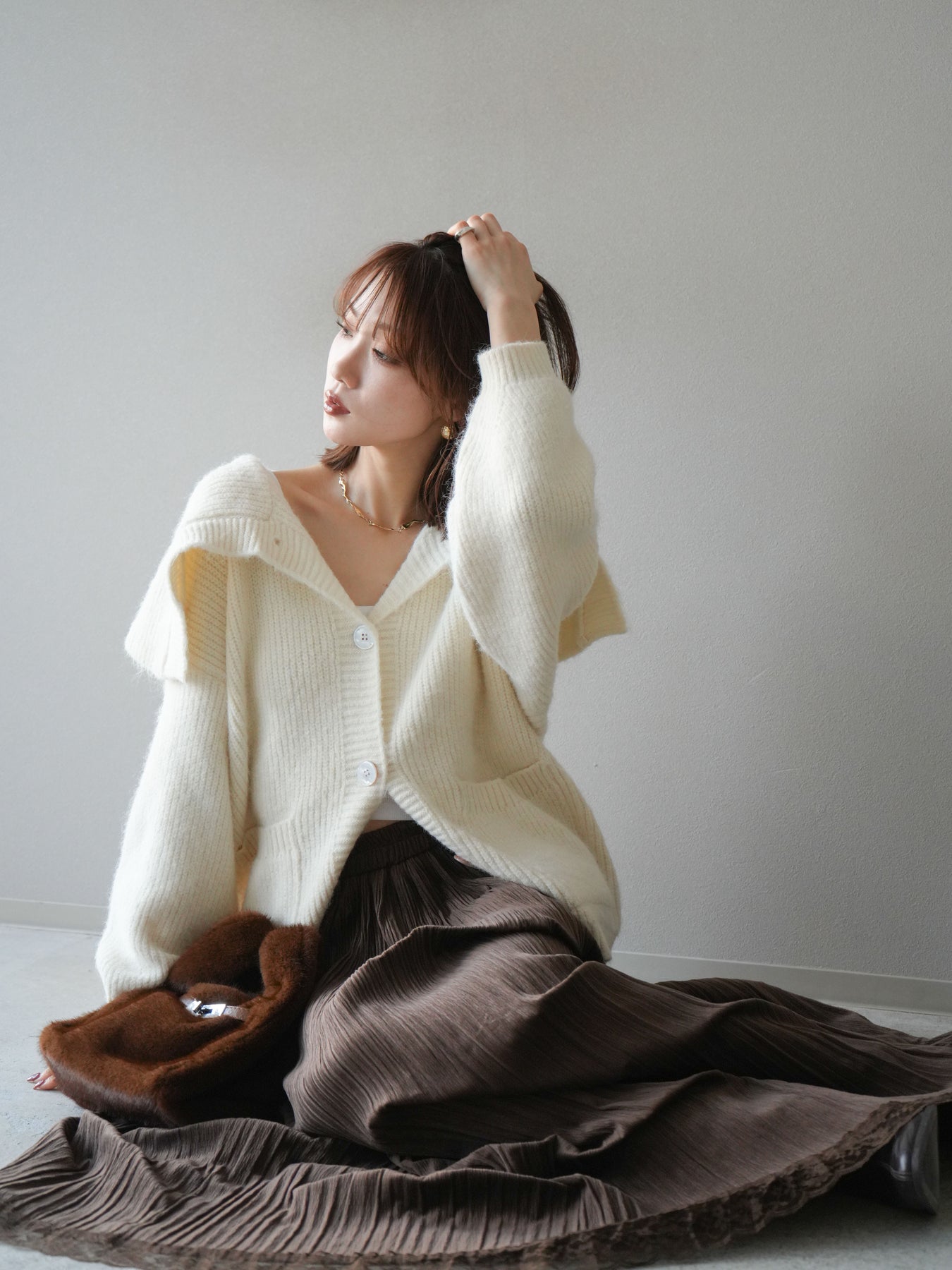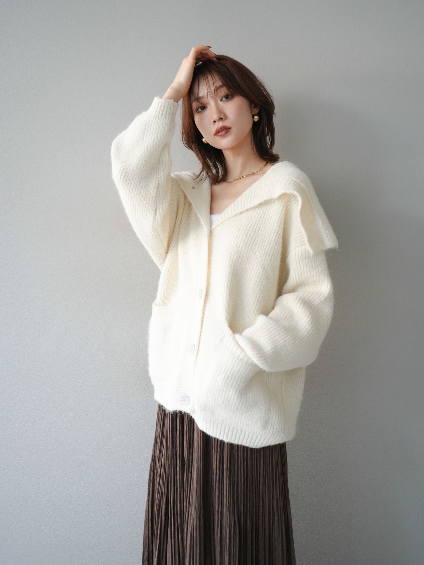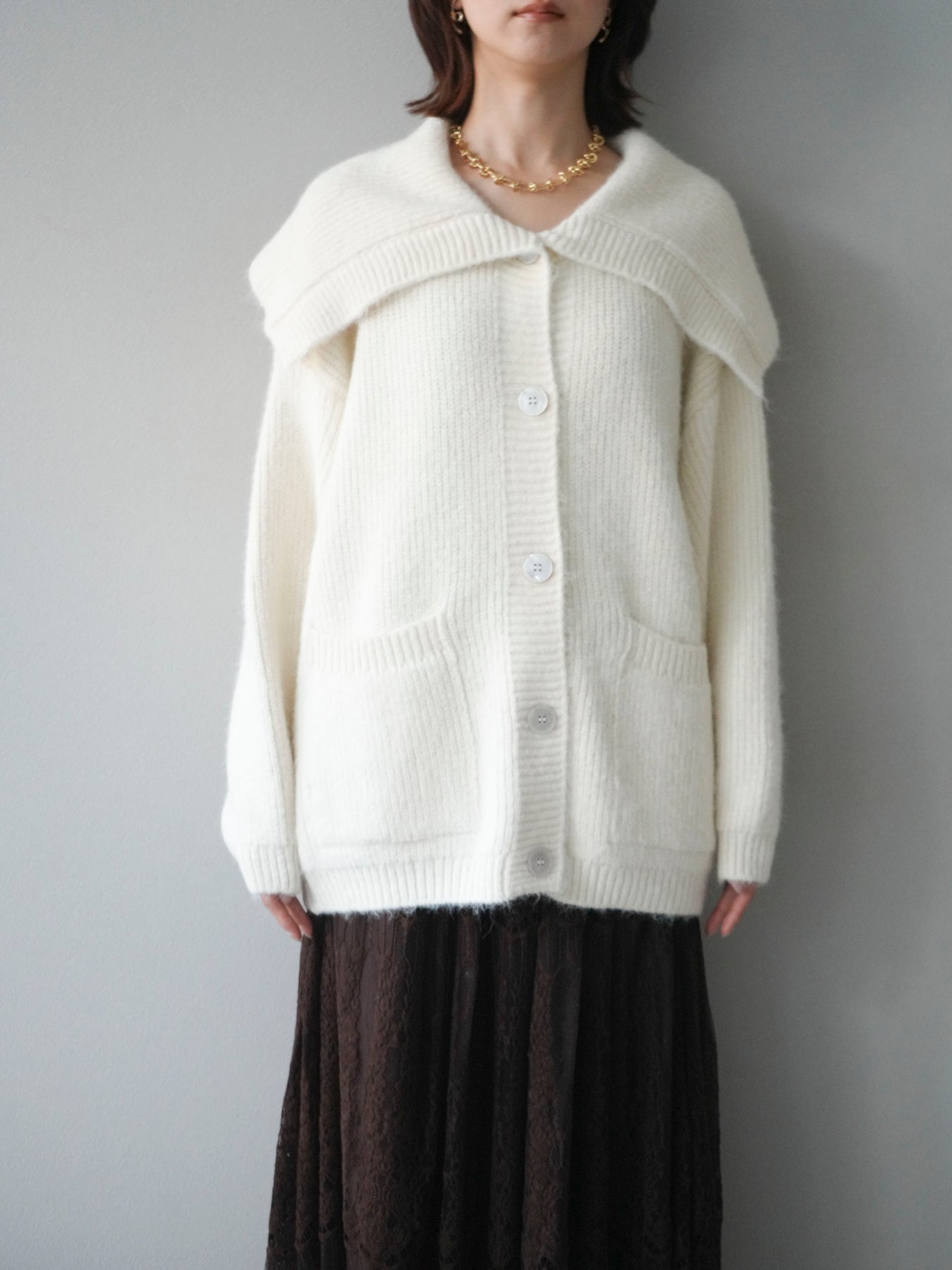 [予約]襟付きボタンオーバーニットカーディガン/ivory
