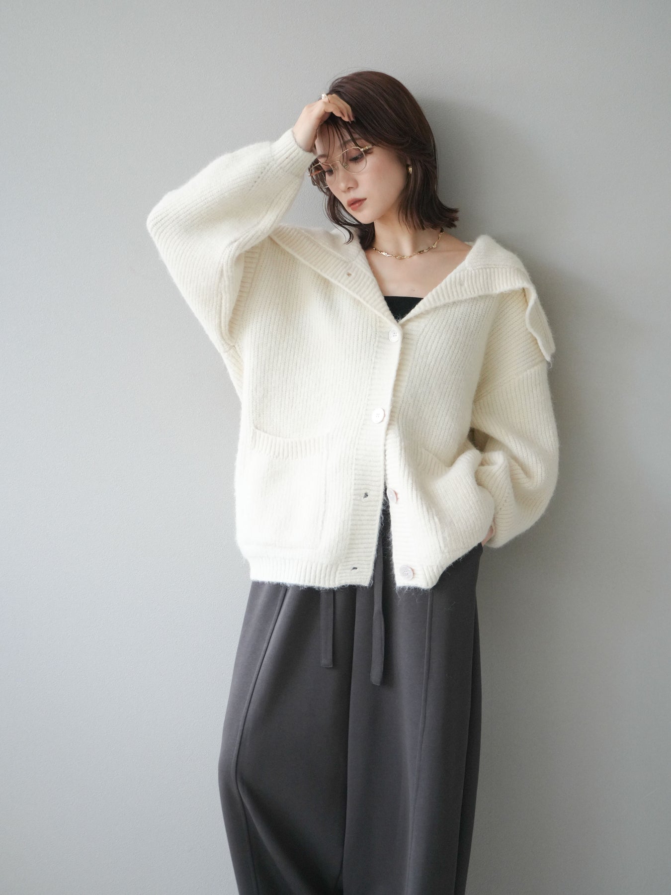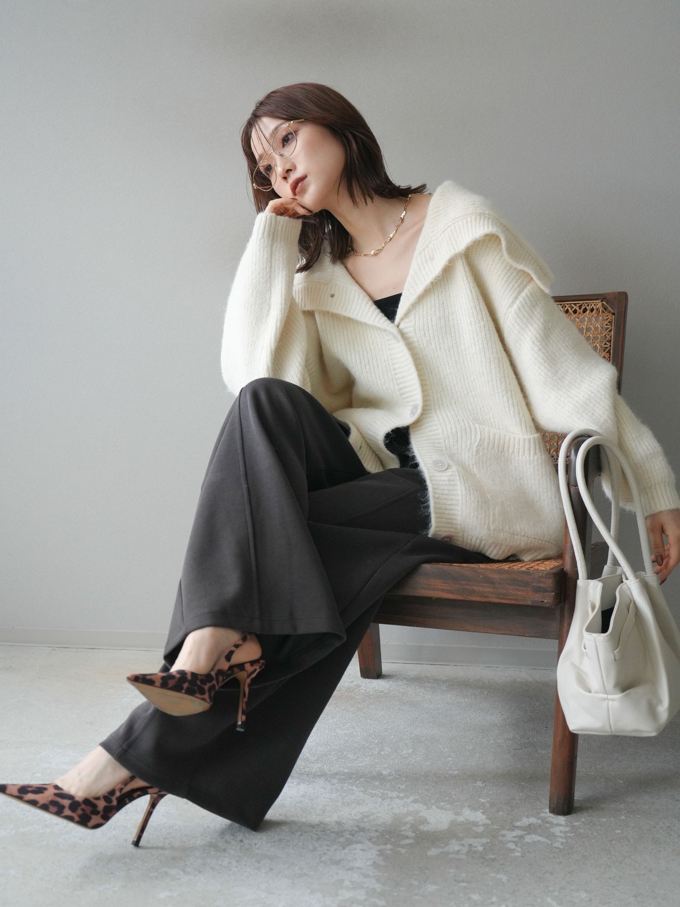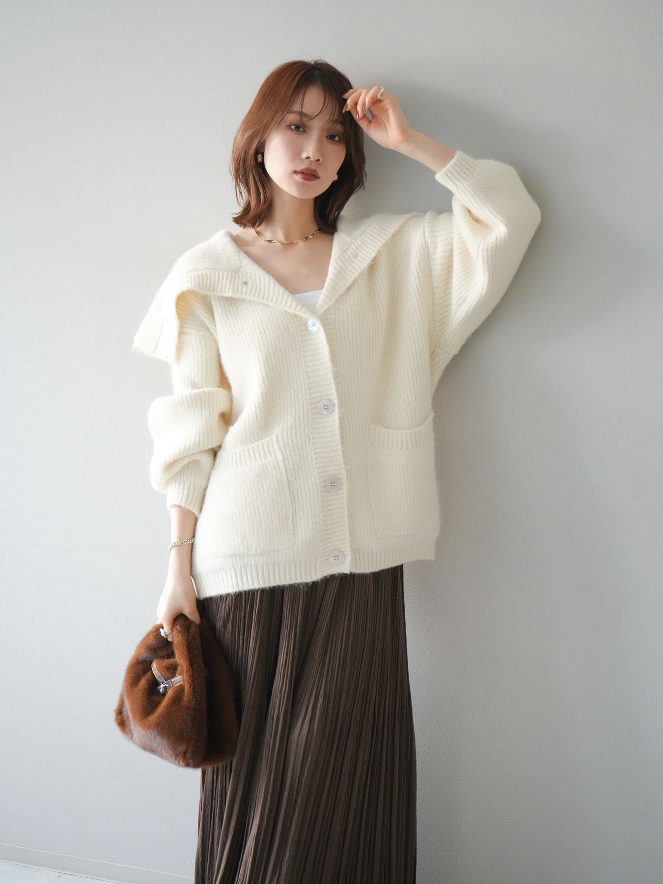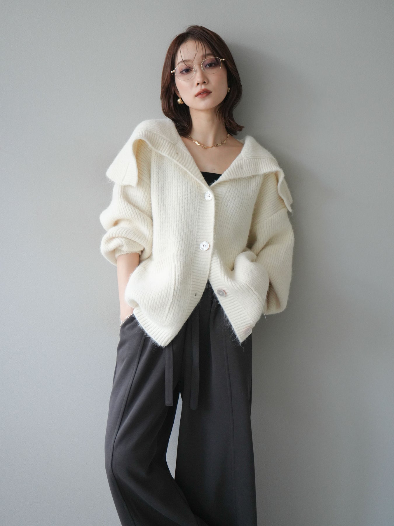 [予約]襟付きボタンオーバーニットカーディガン/ivory