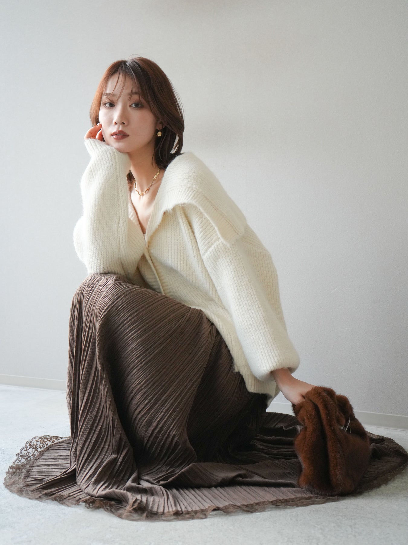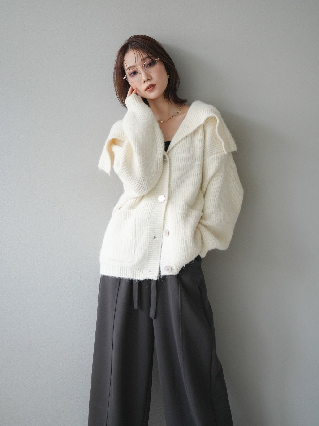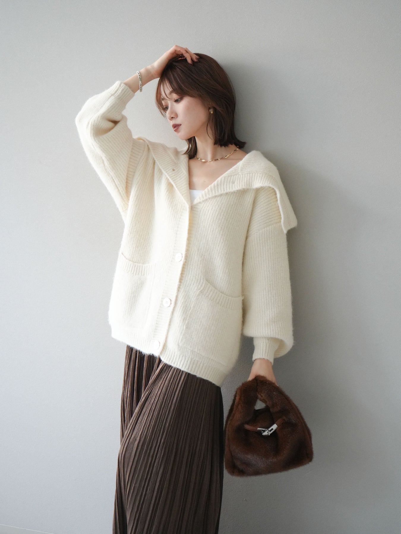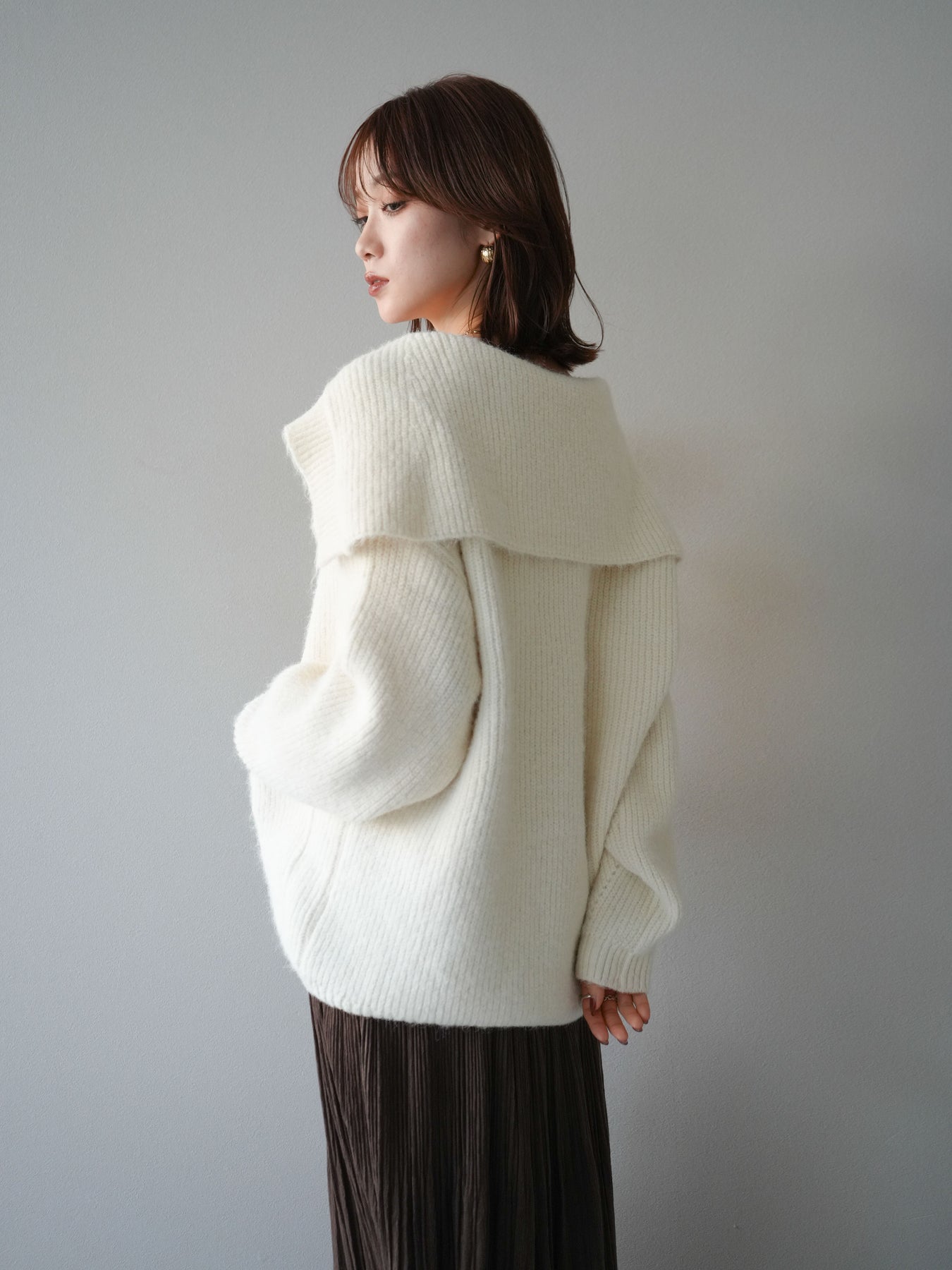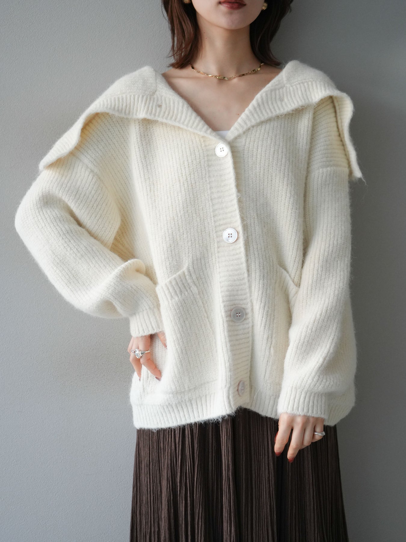 [予約]襟付きボタンオーバーニットカーディガン/ivory