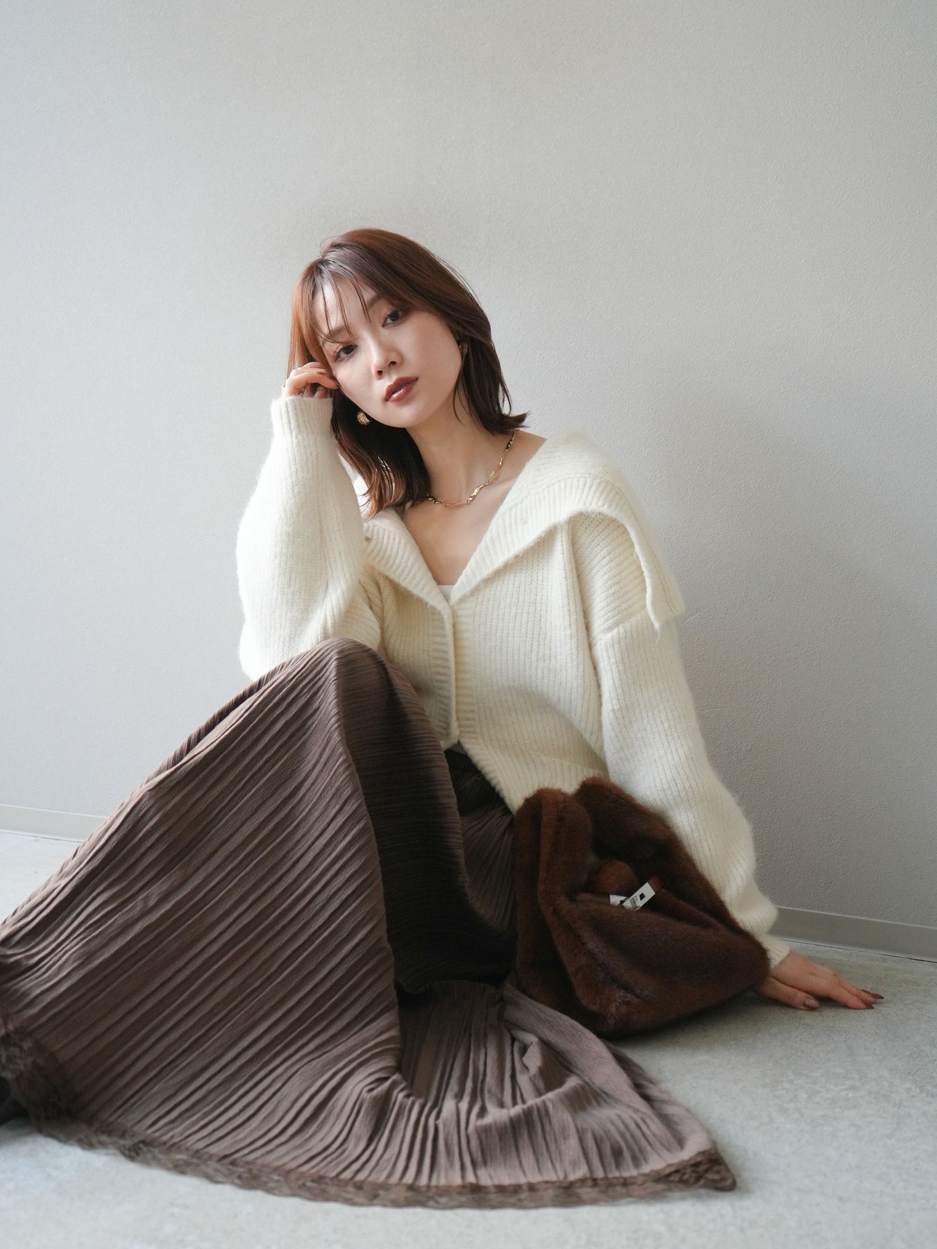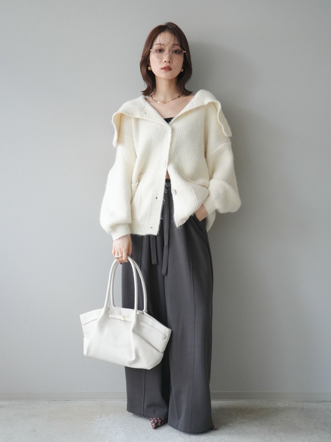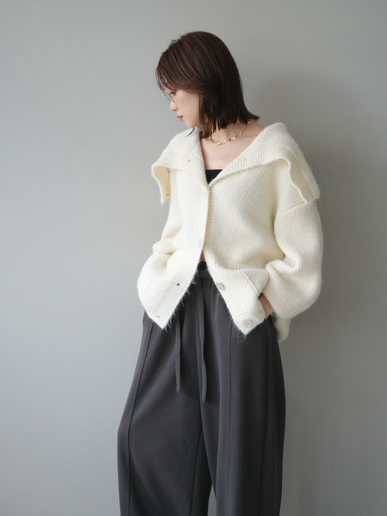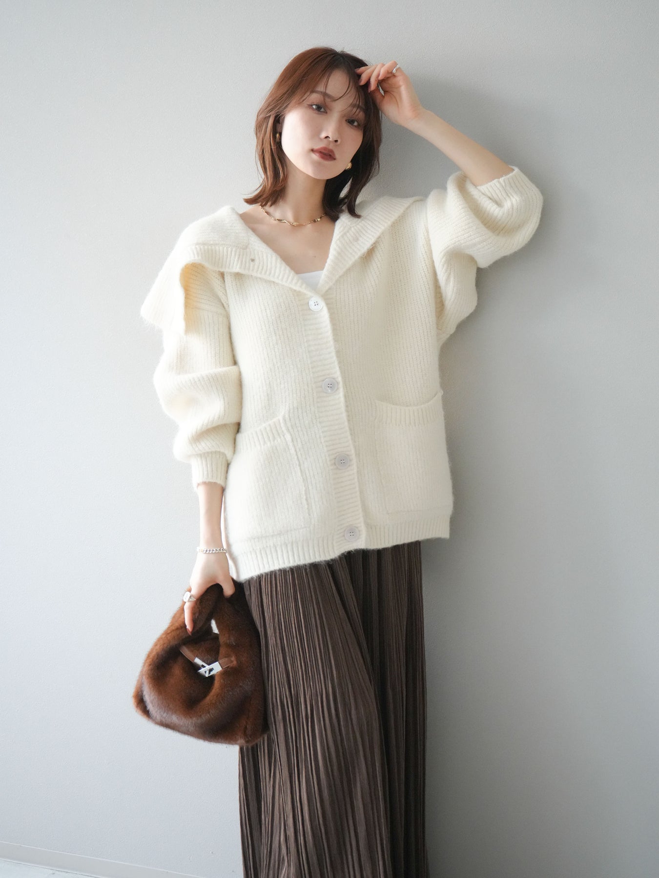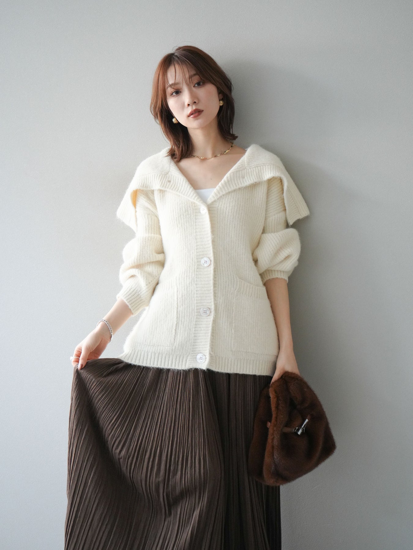 [予約]襟付きボタンオーバーニットカーディガン/ivory