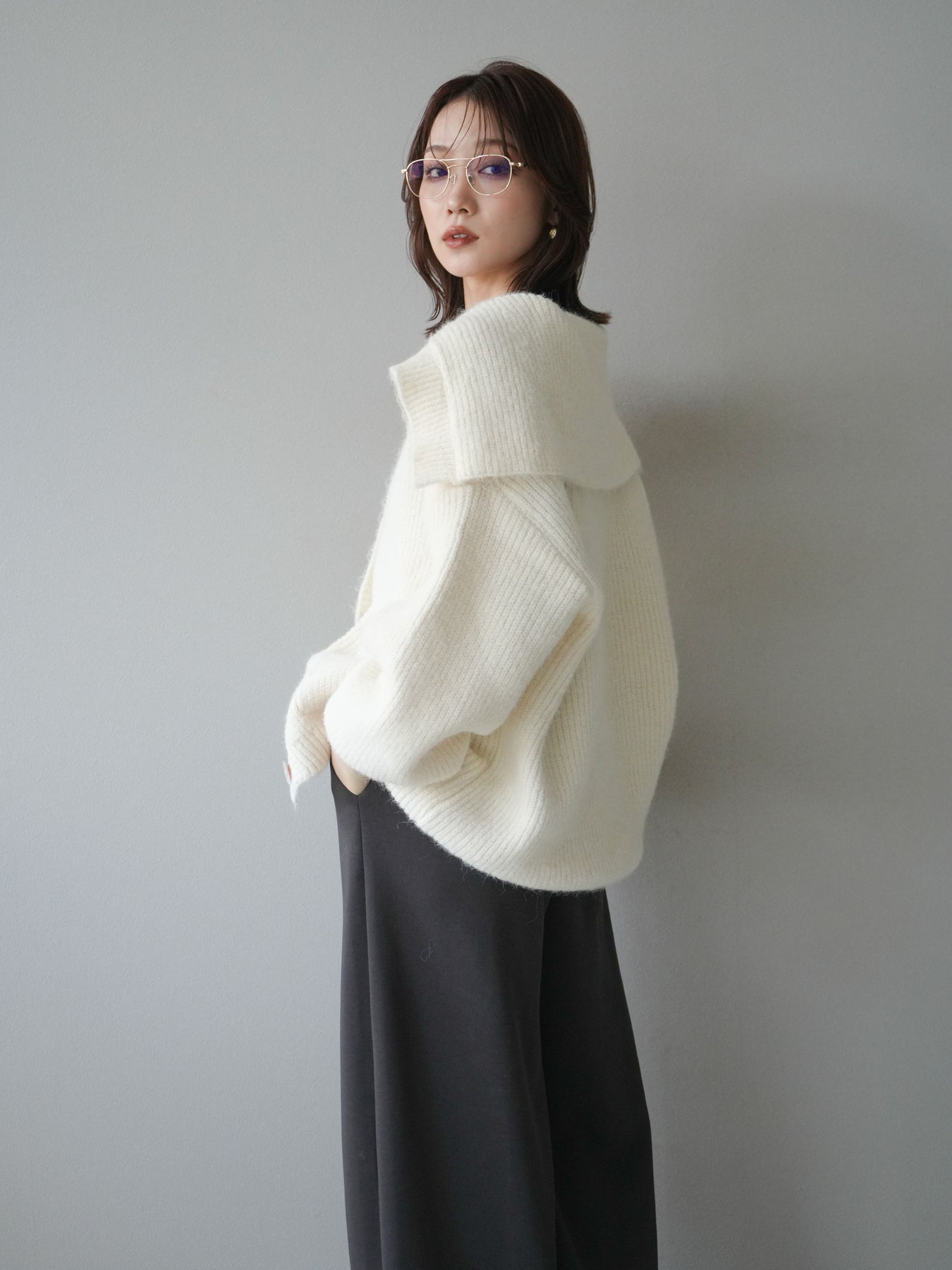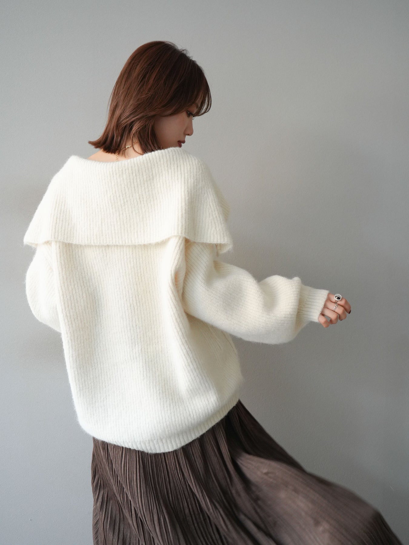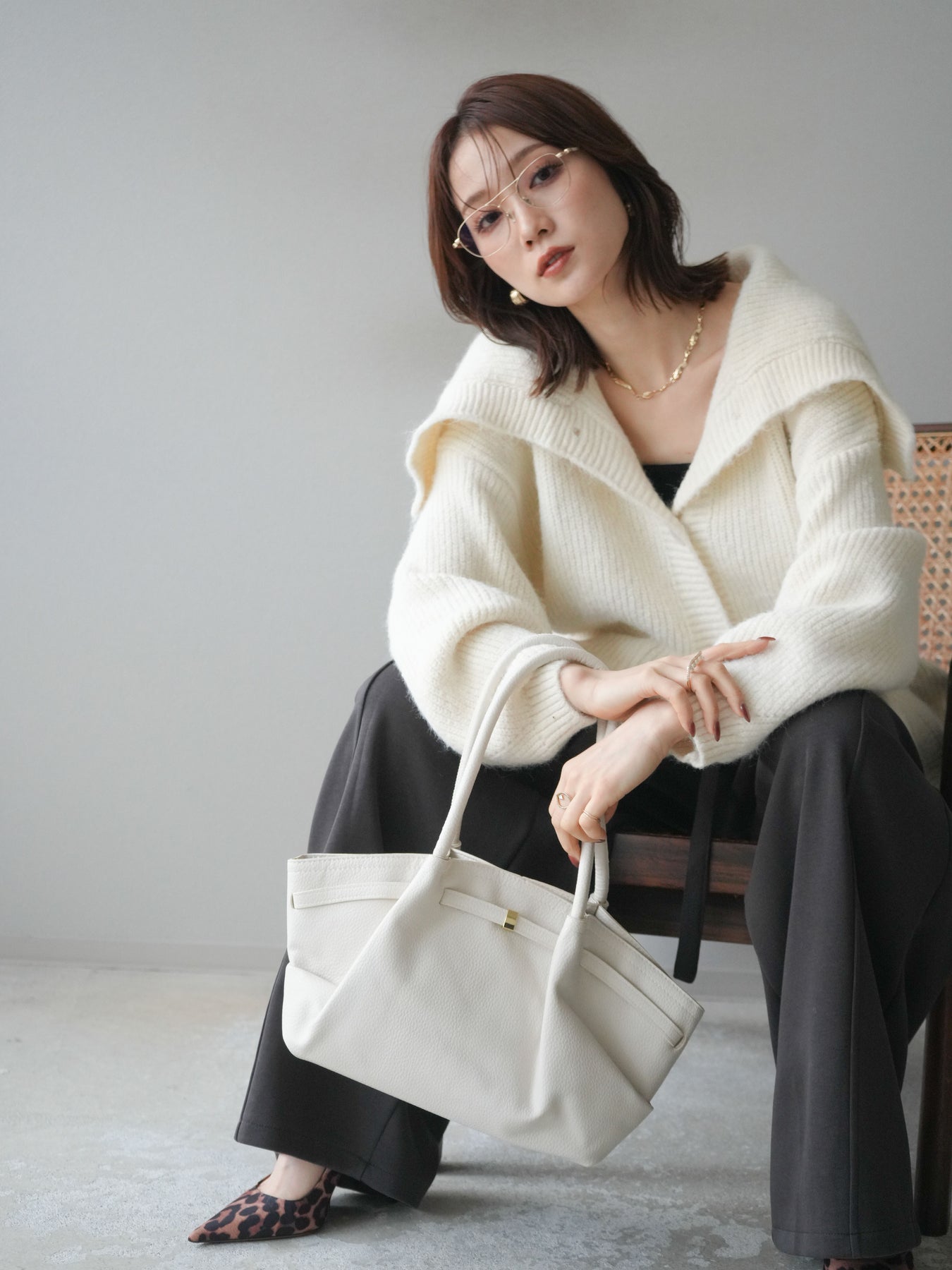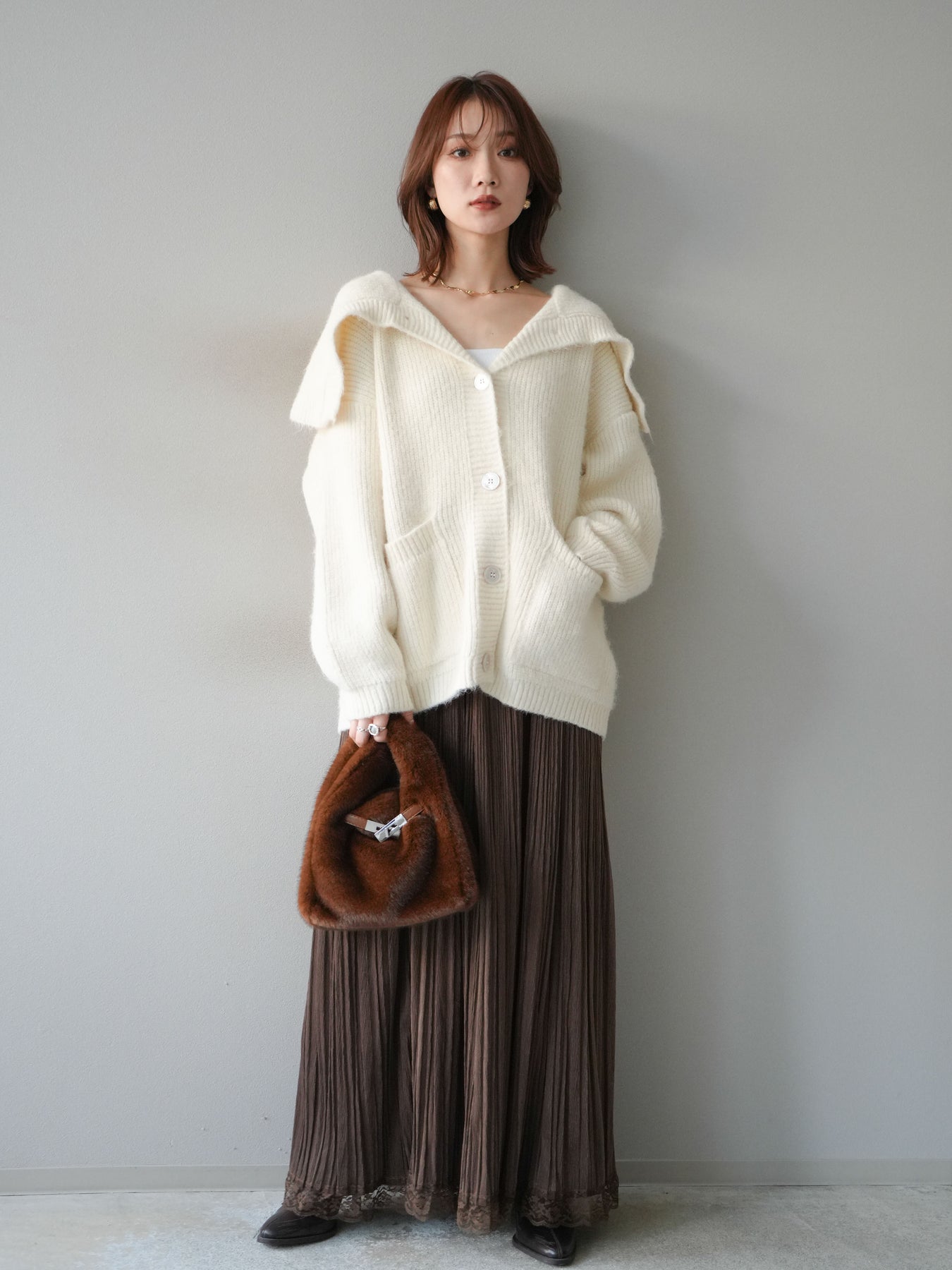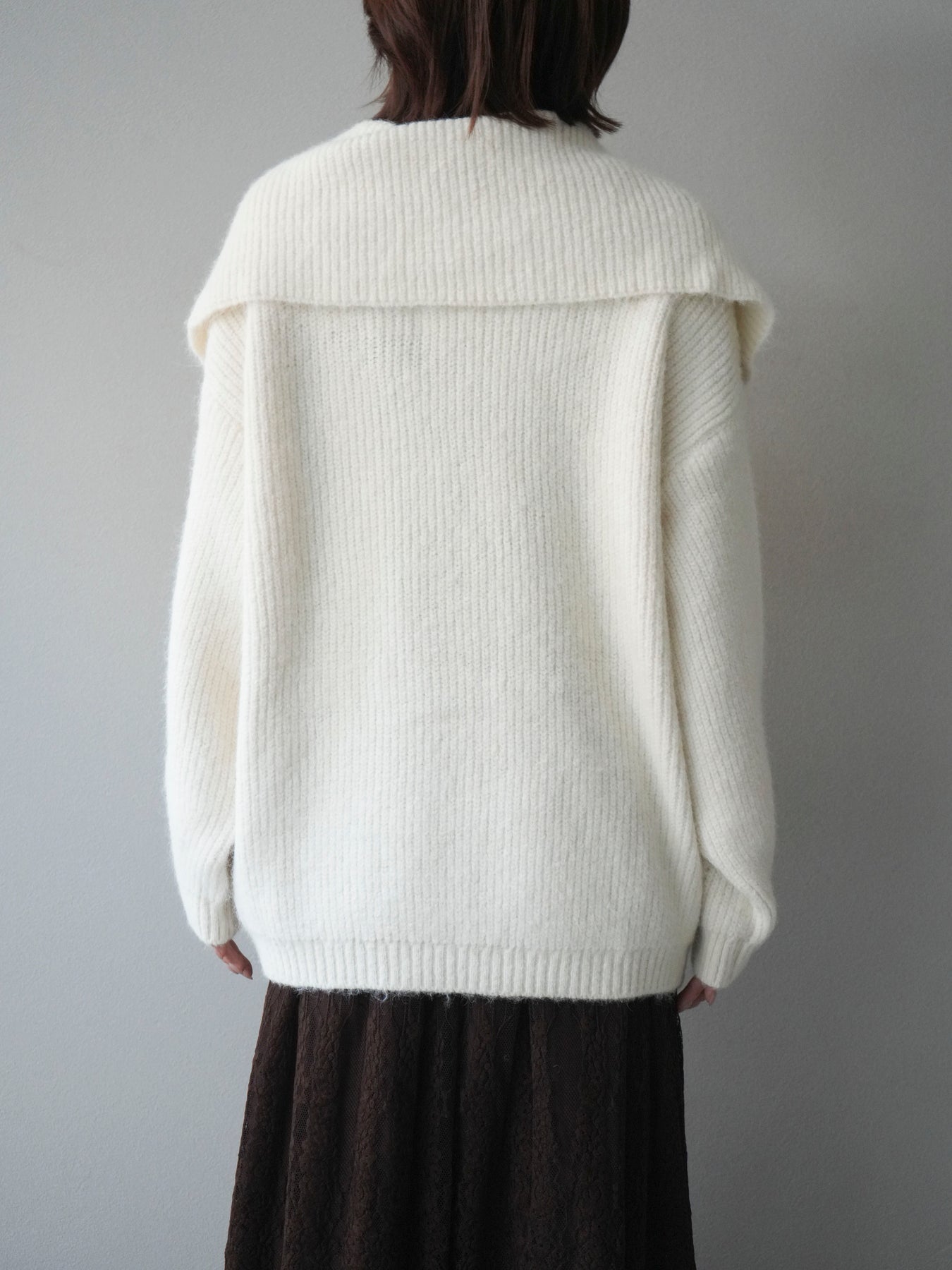 [予約]襟付きボタンオーバーニットカーディガン/ivory
