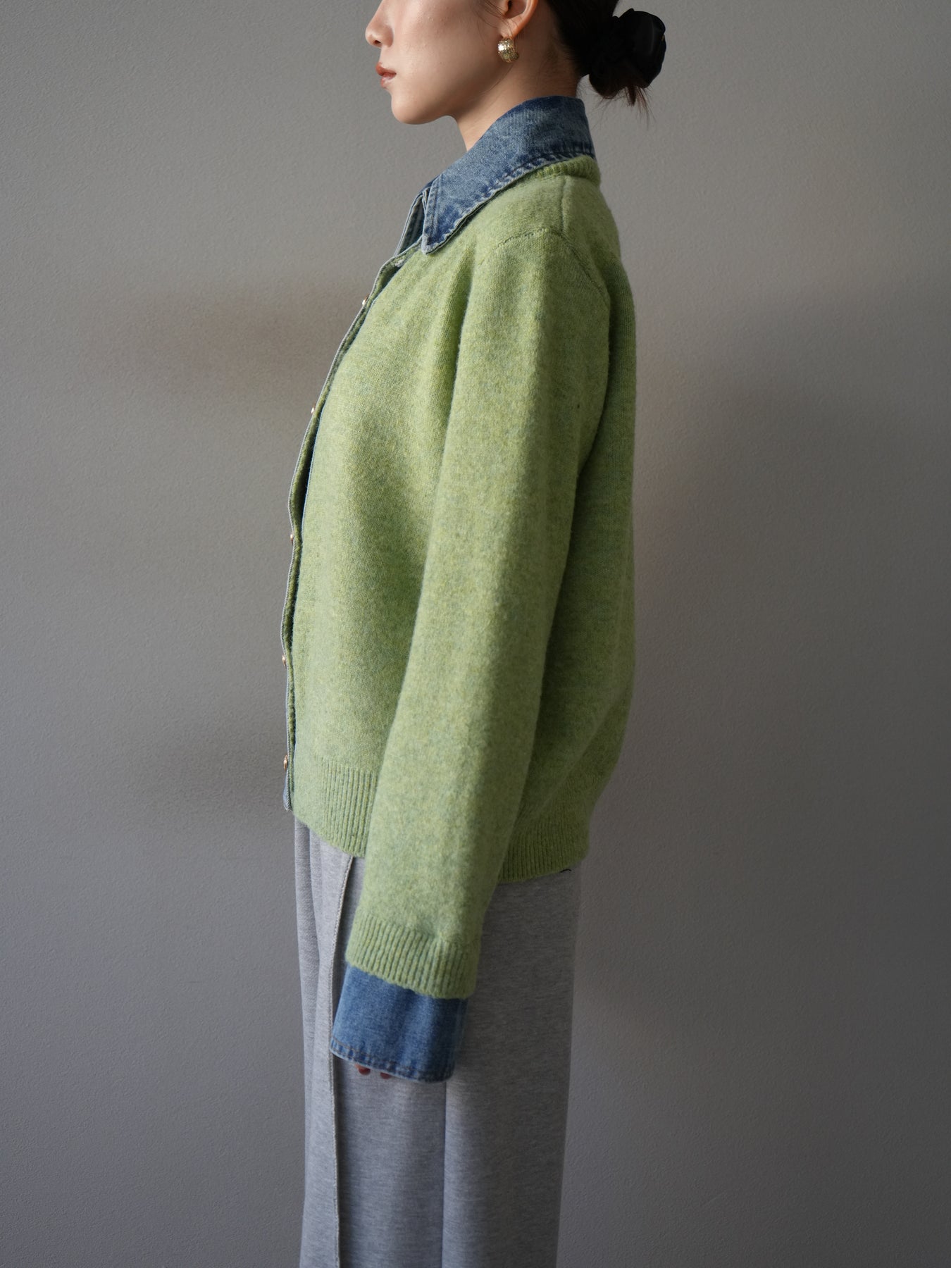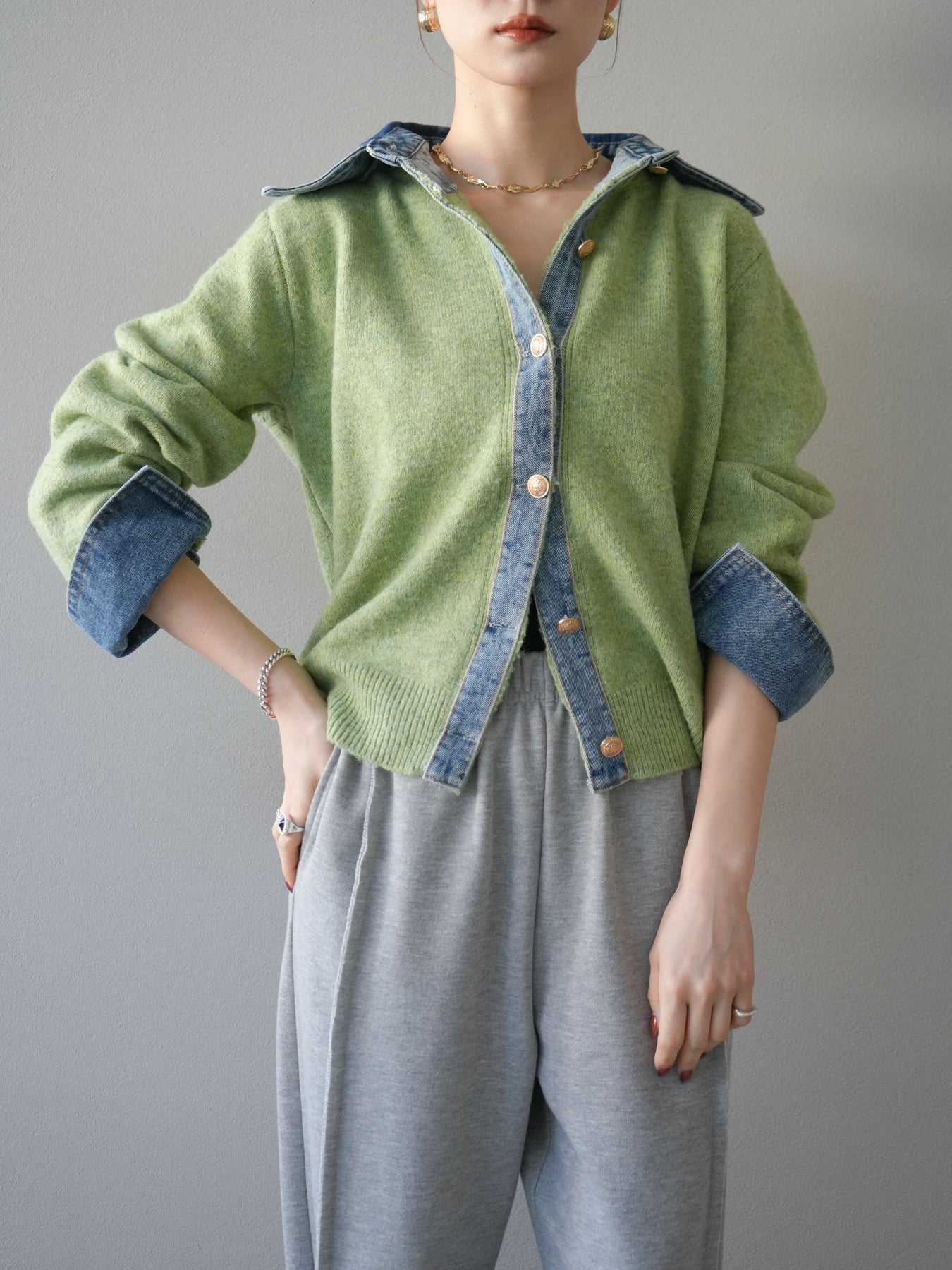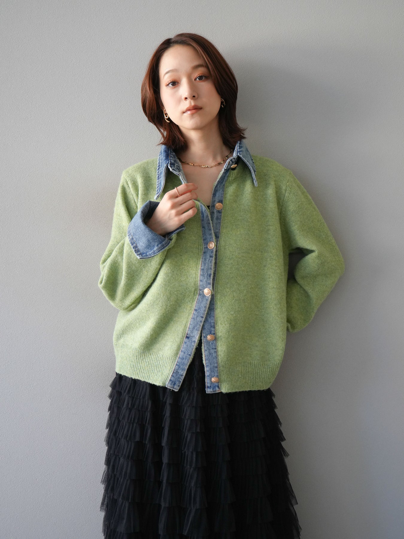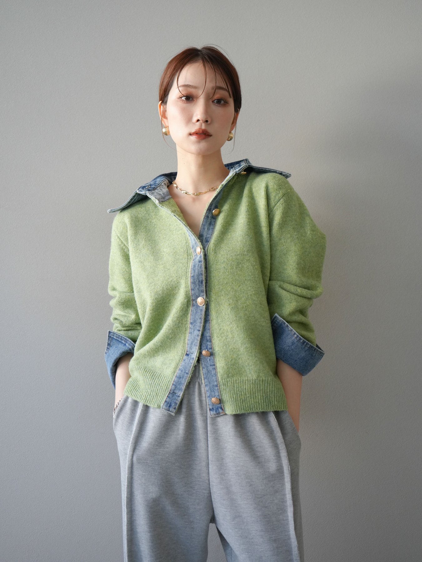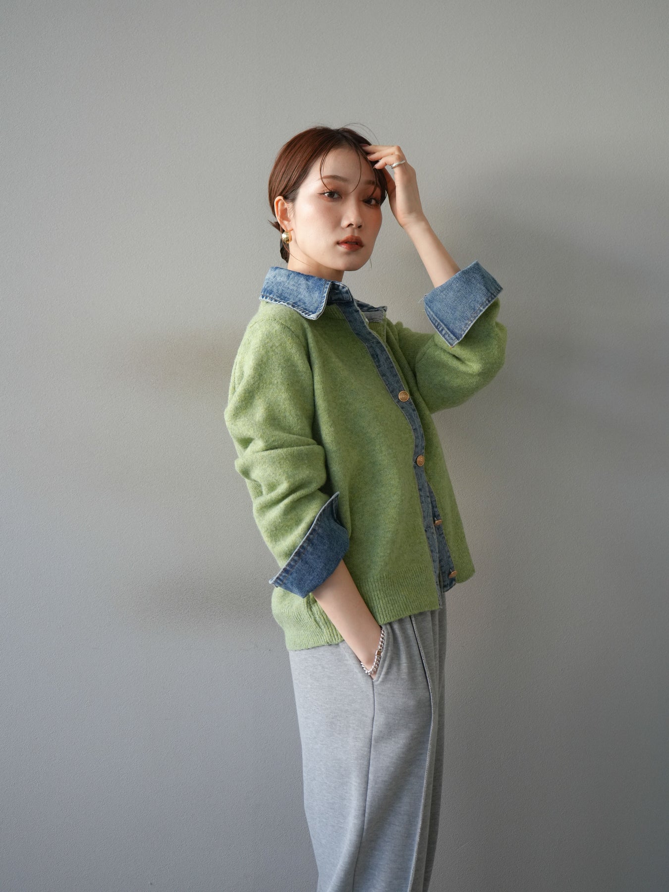 [予約]デニム襟ボタンニットカーディガン/pistachio