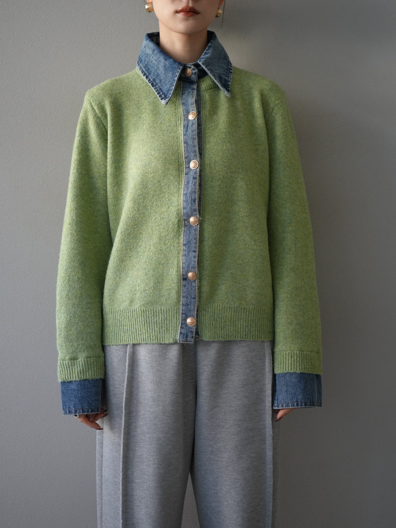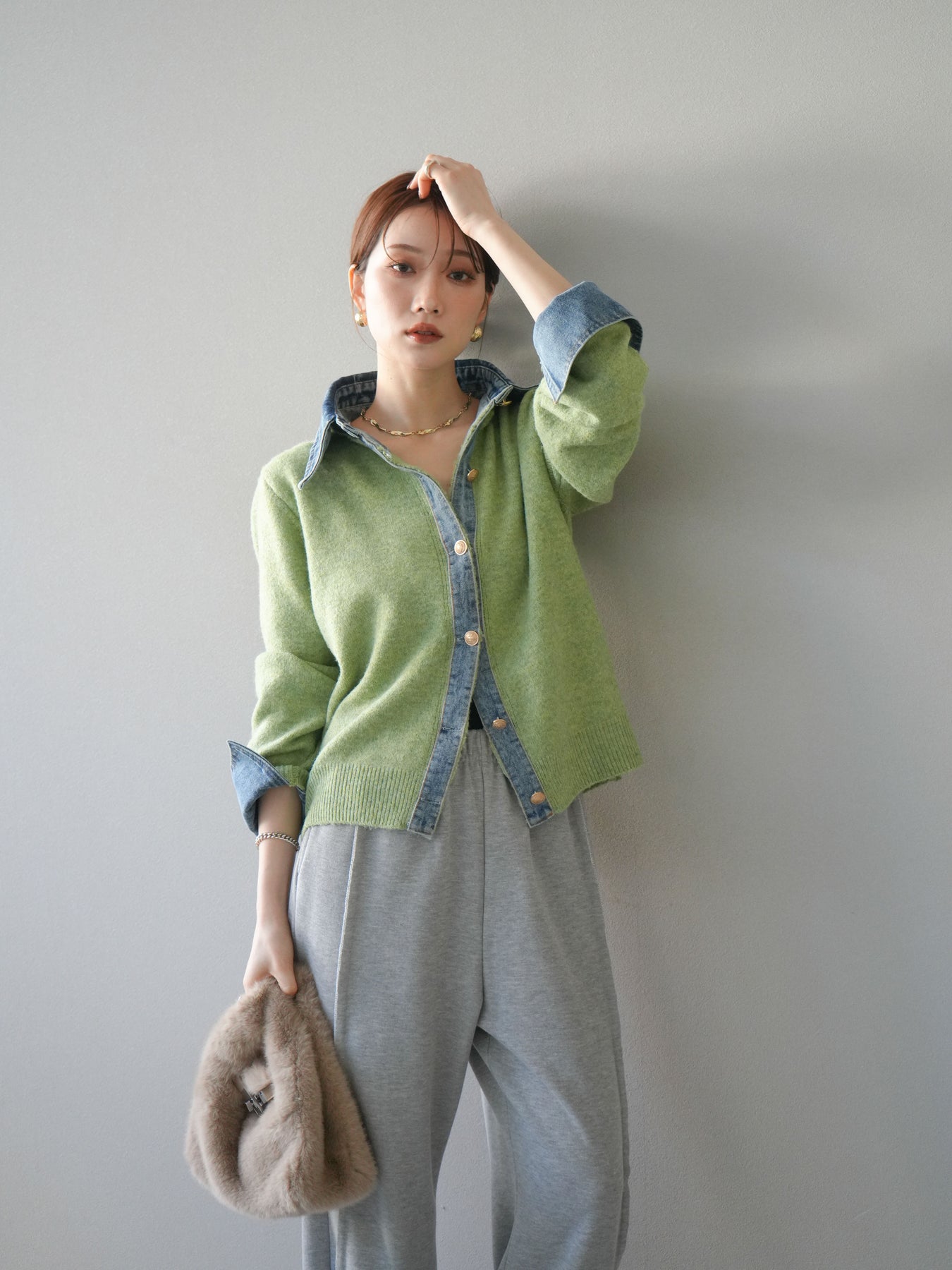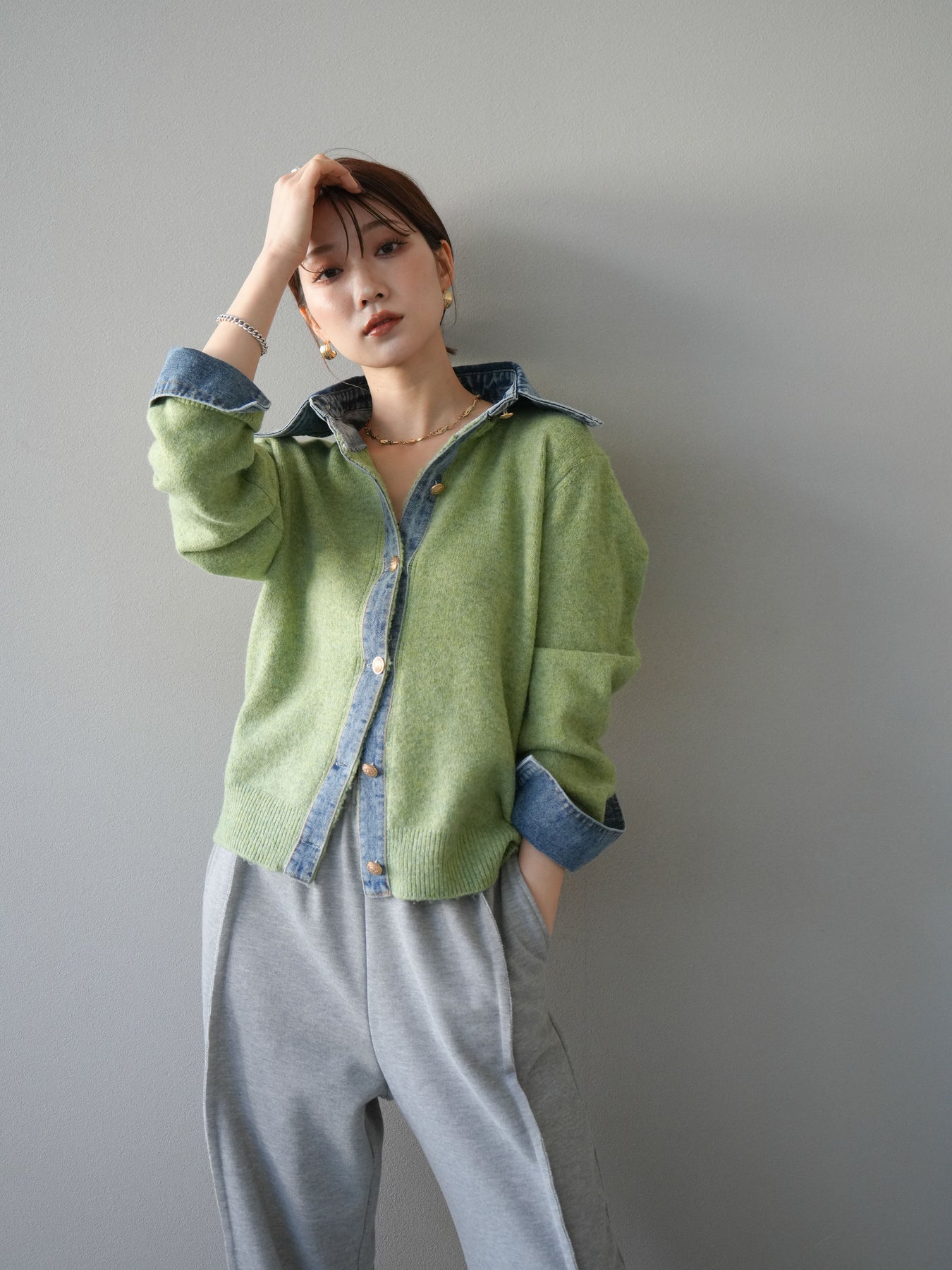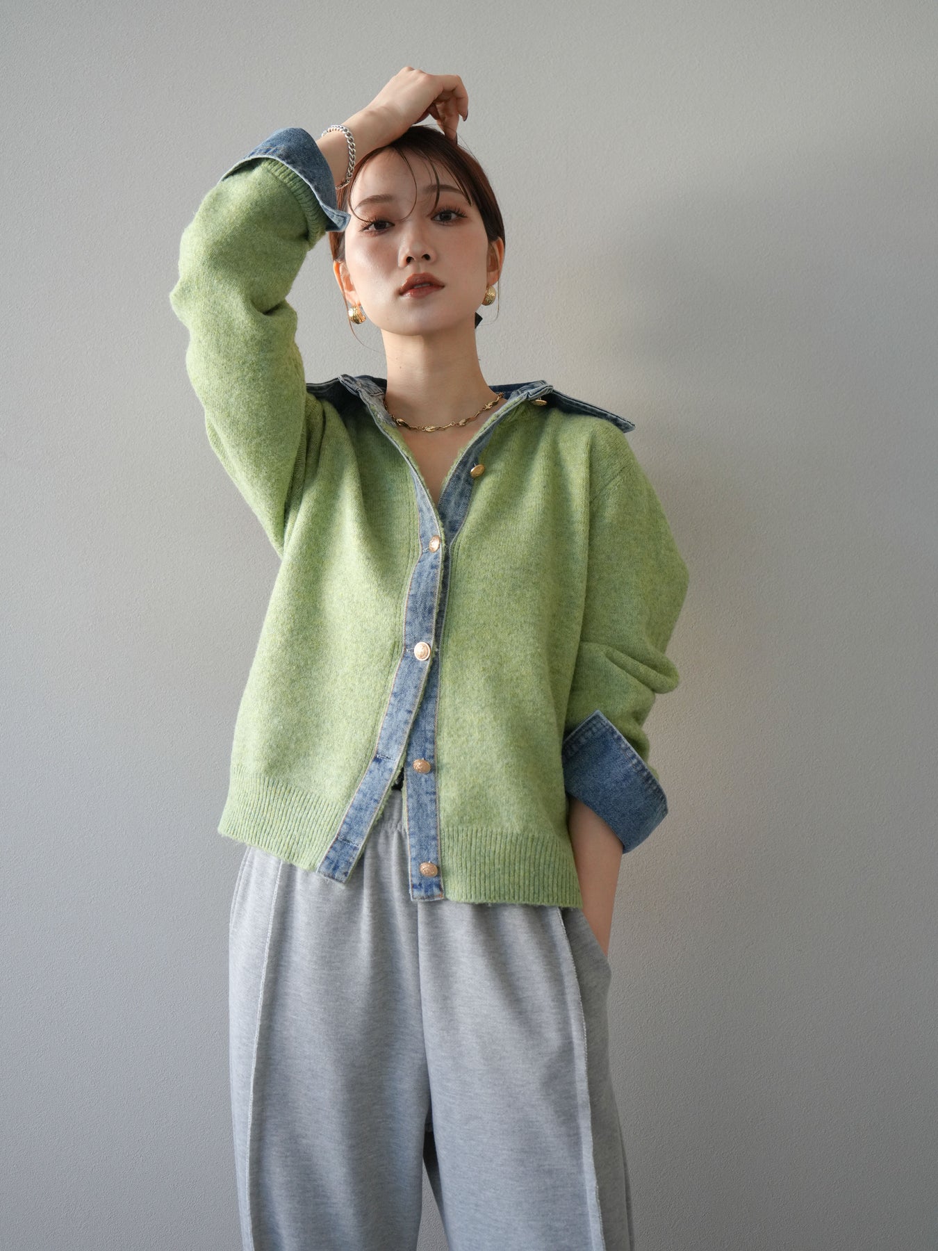 [予約]デニム襟ボタンニットカーディガン/pistachio