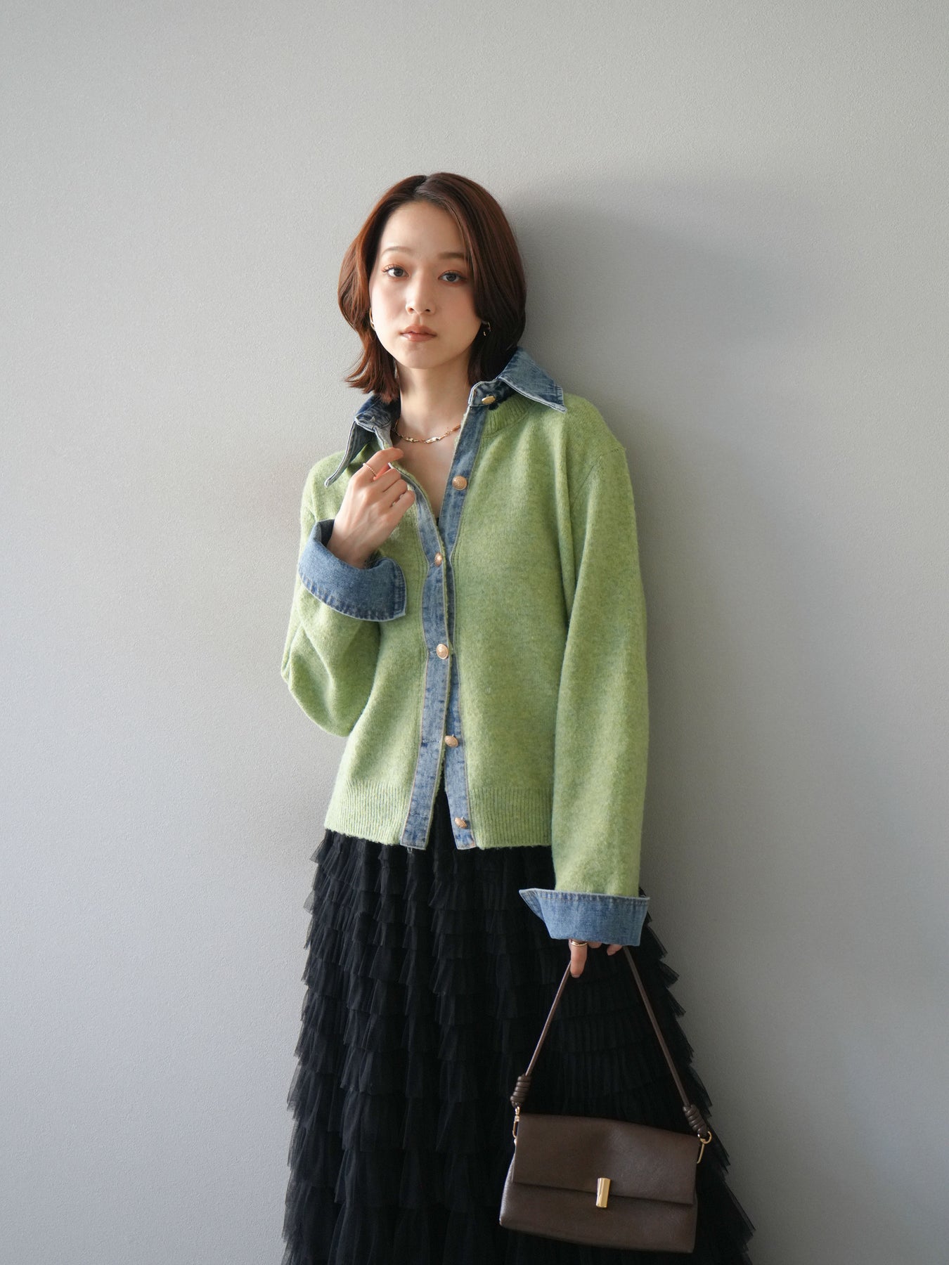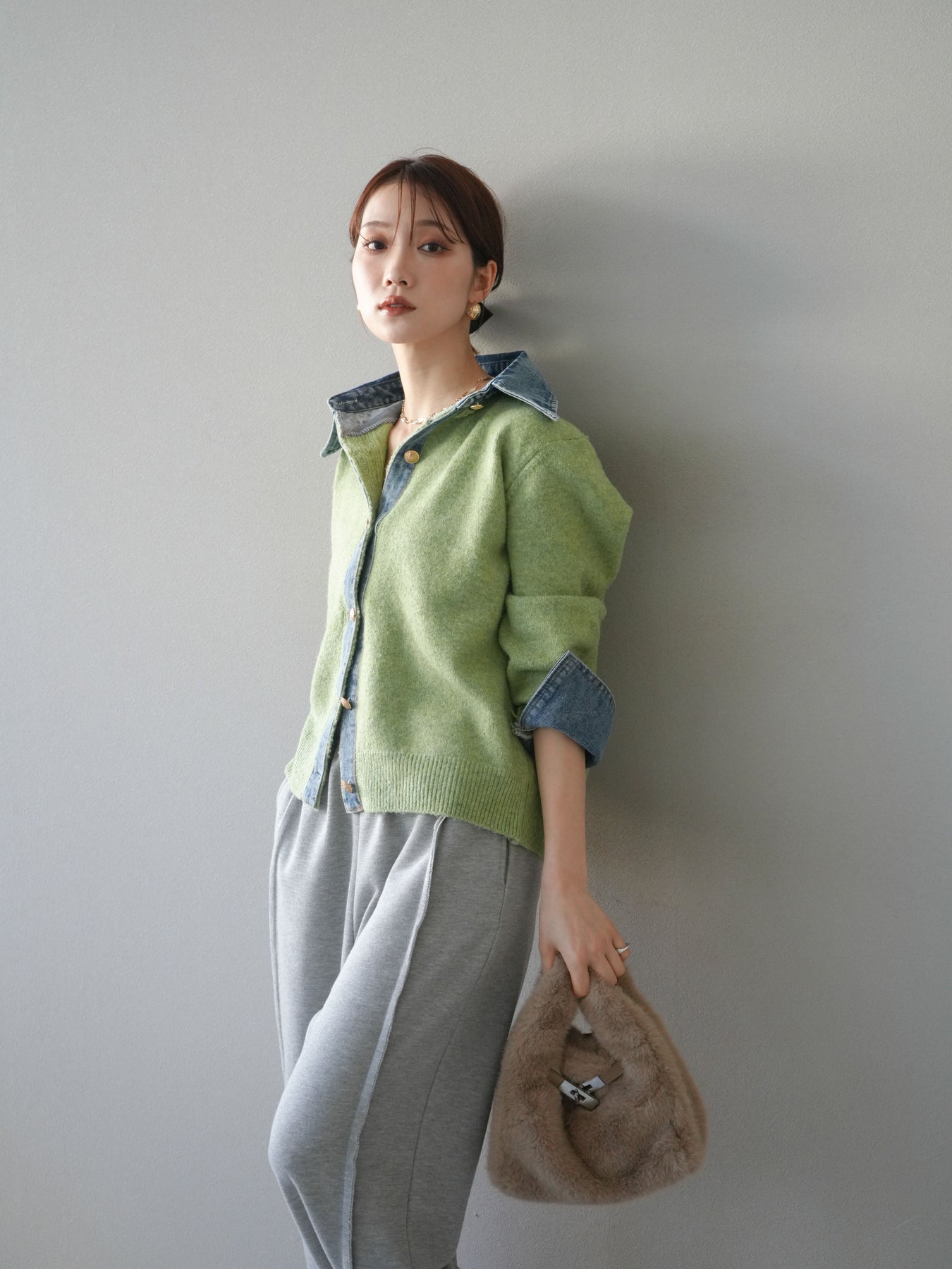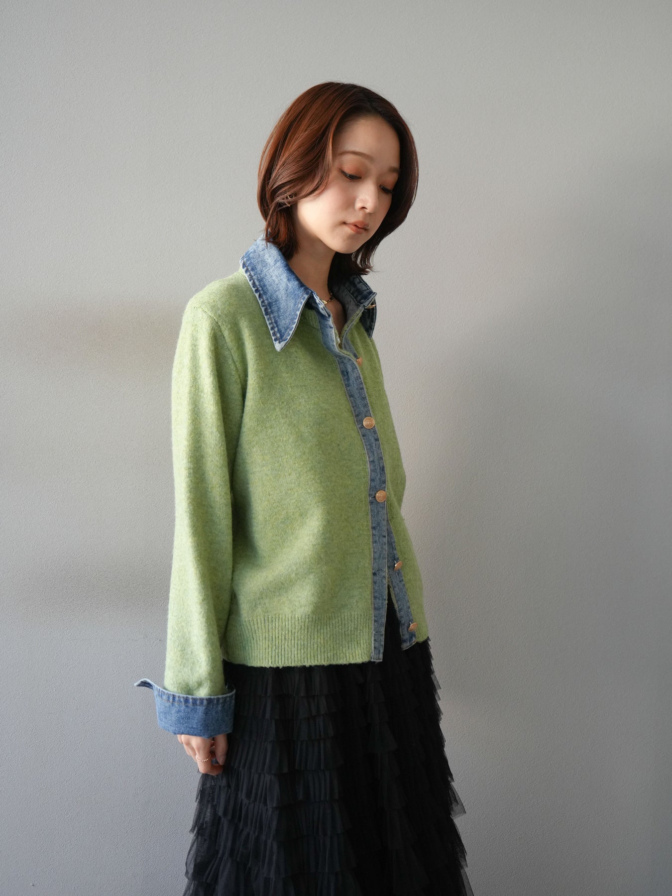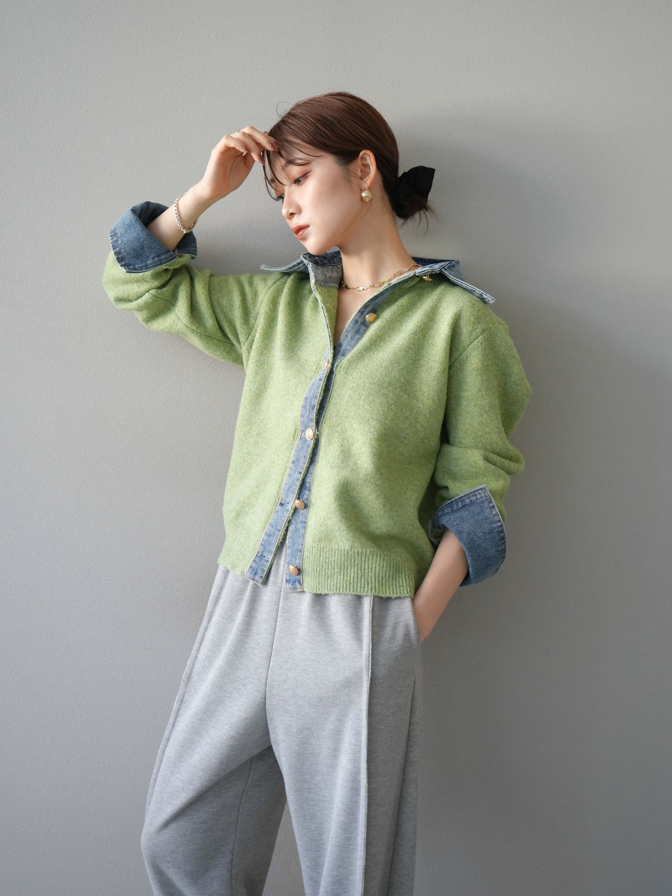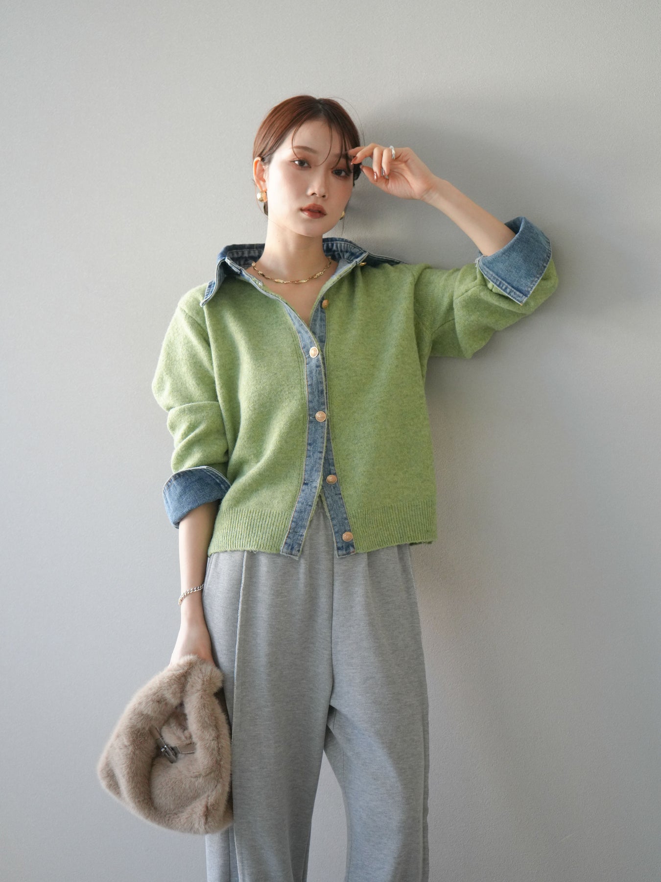 [予約]デニム襟ボタンニットカーディガン/pistachio