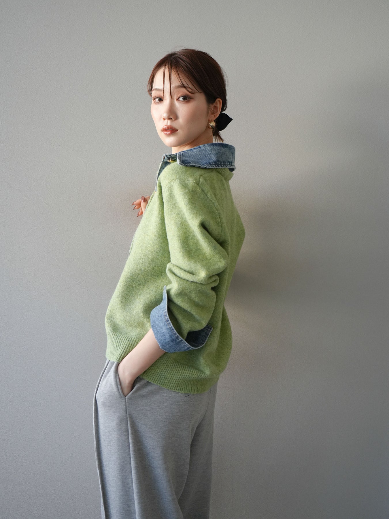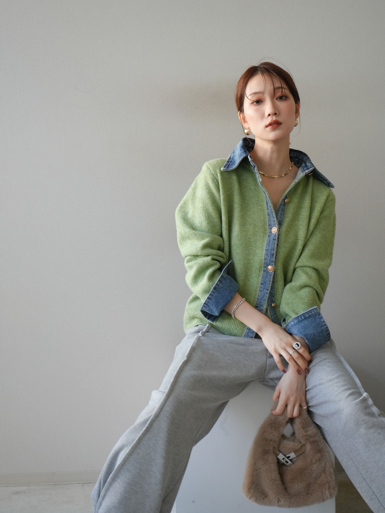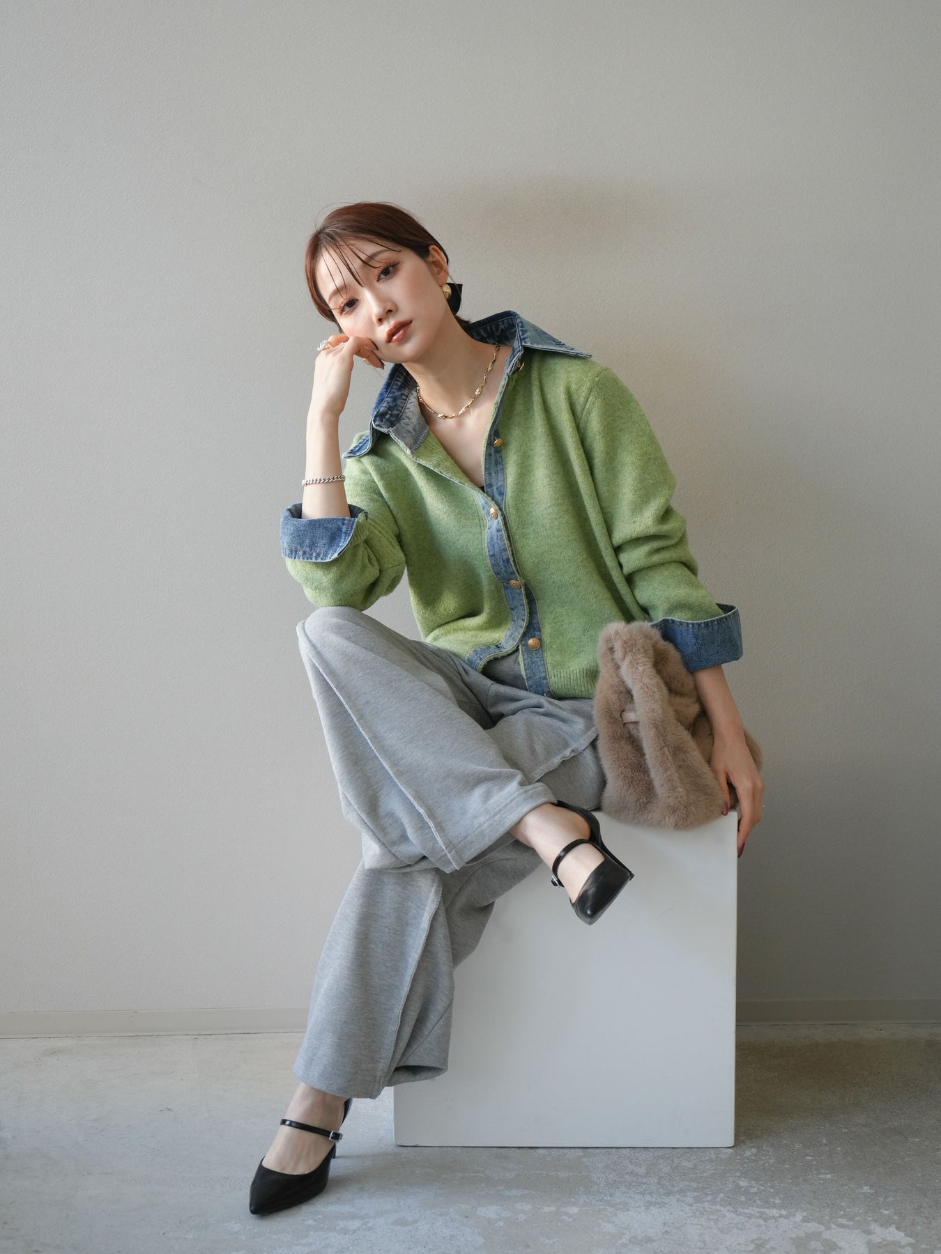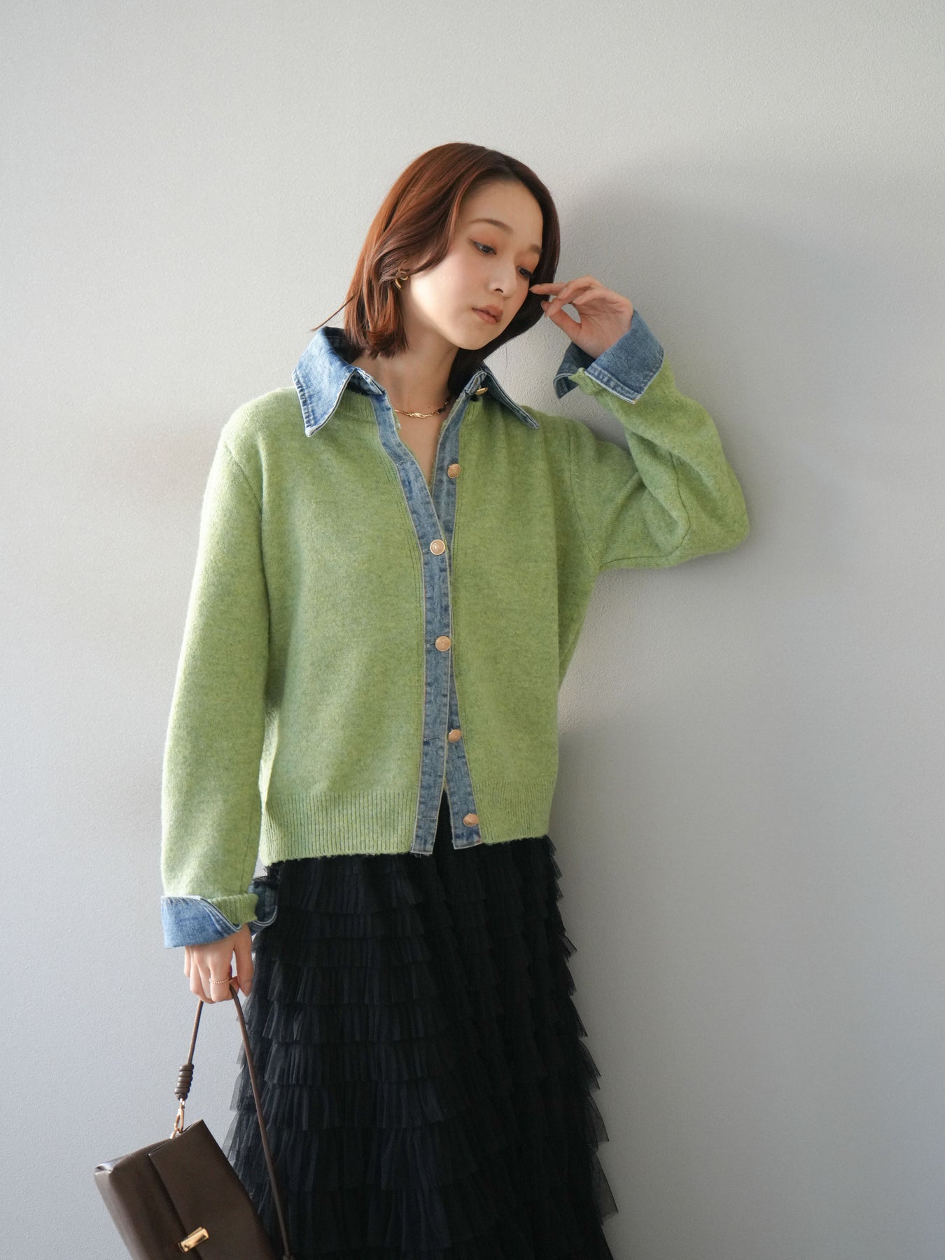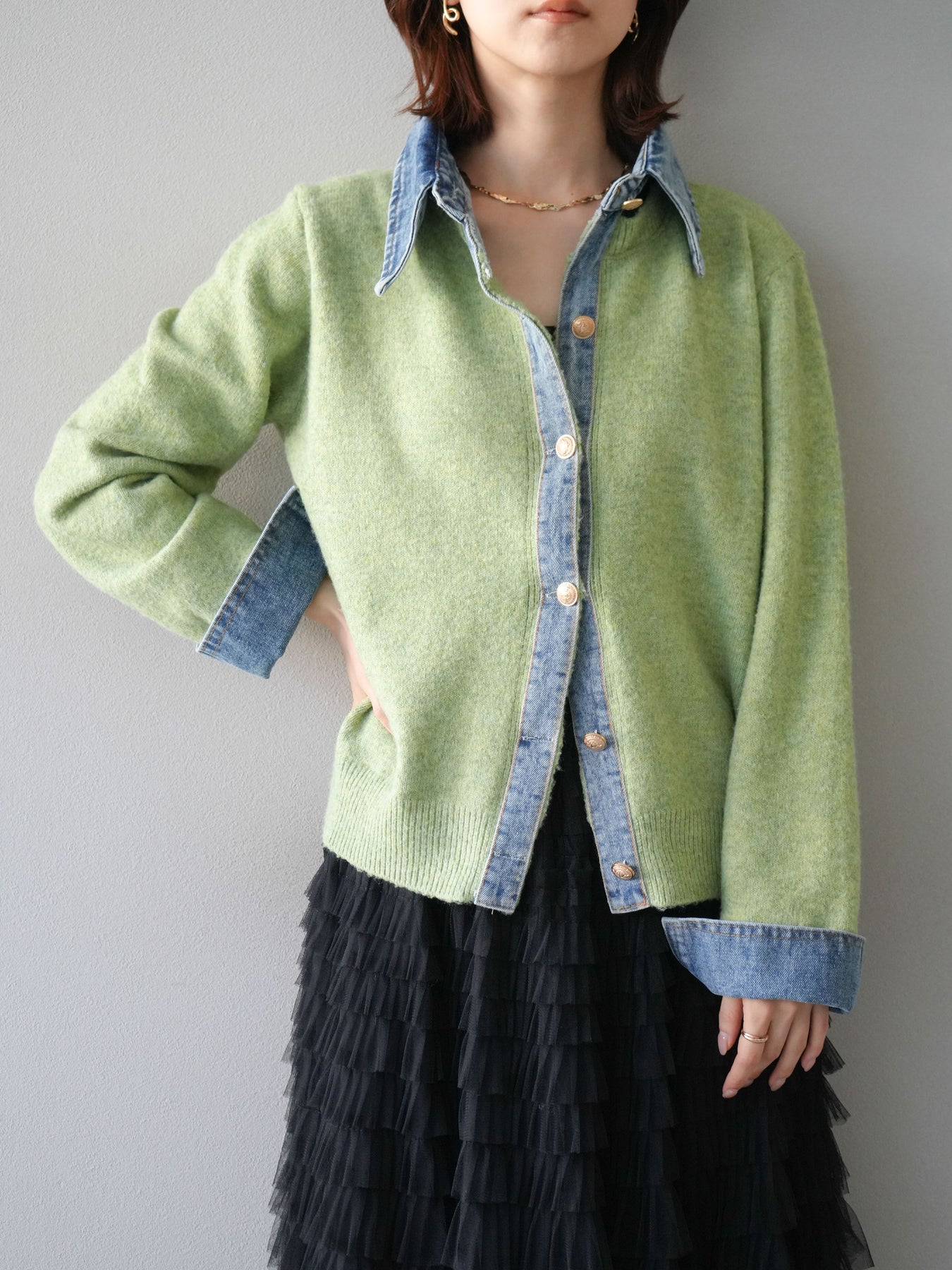 [予約]デニム襟ボタンニットカーディガン/pistachio
