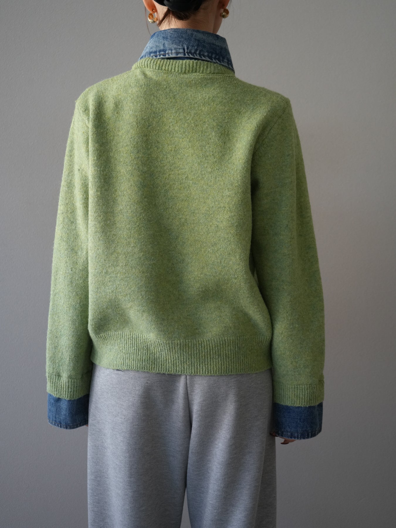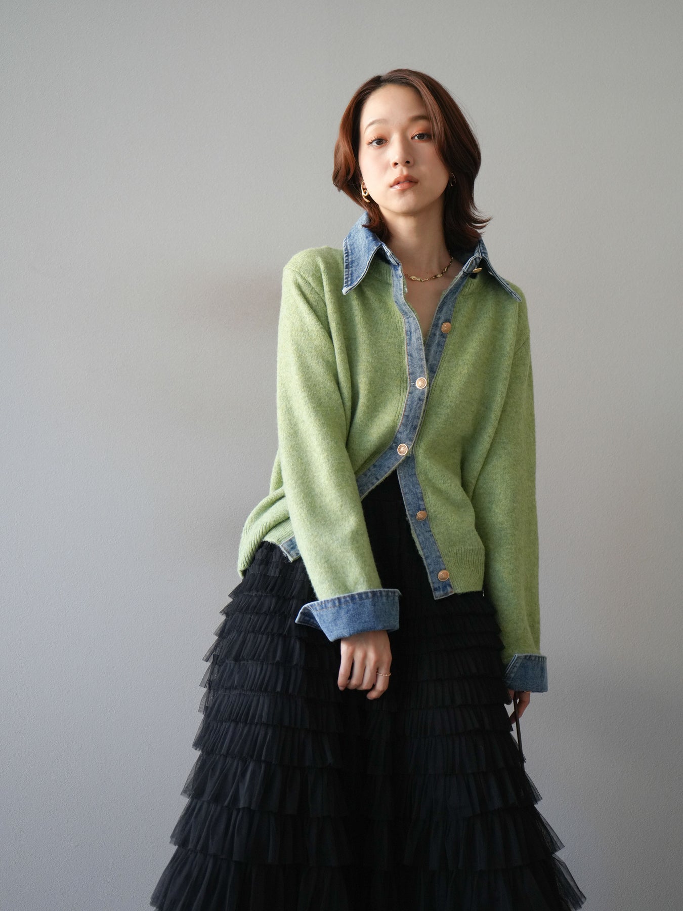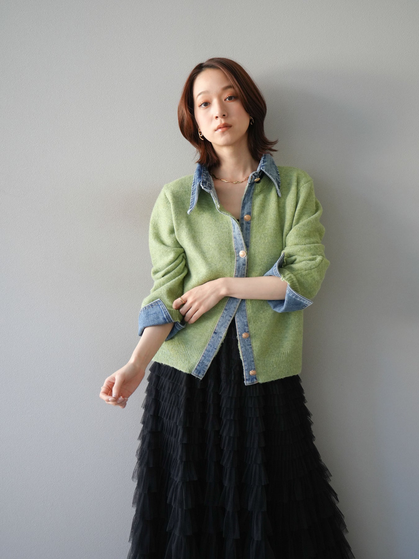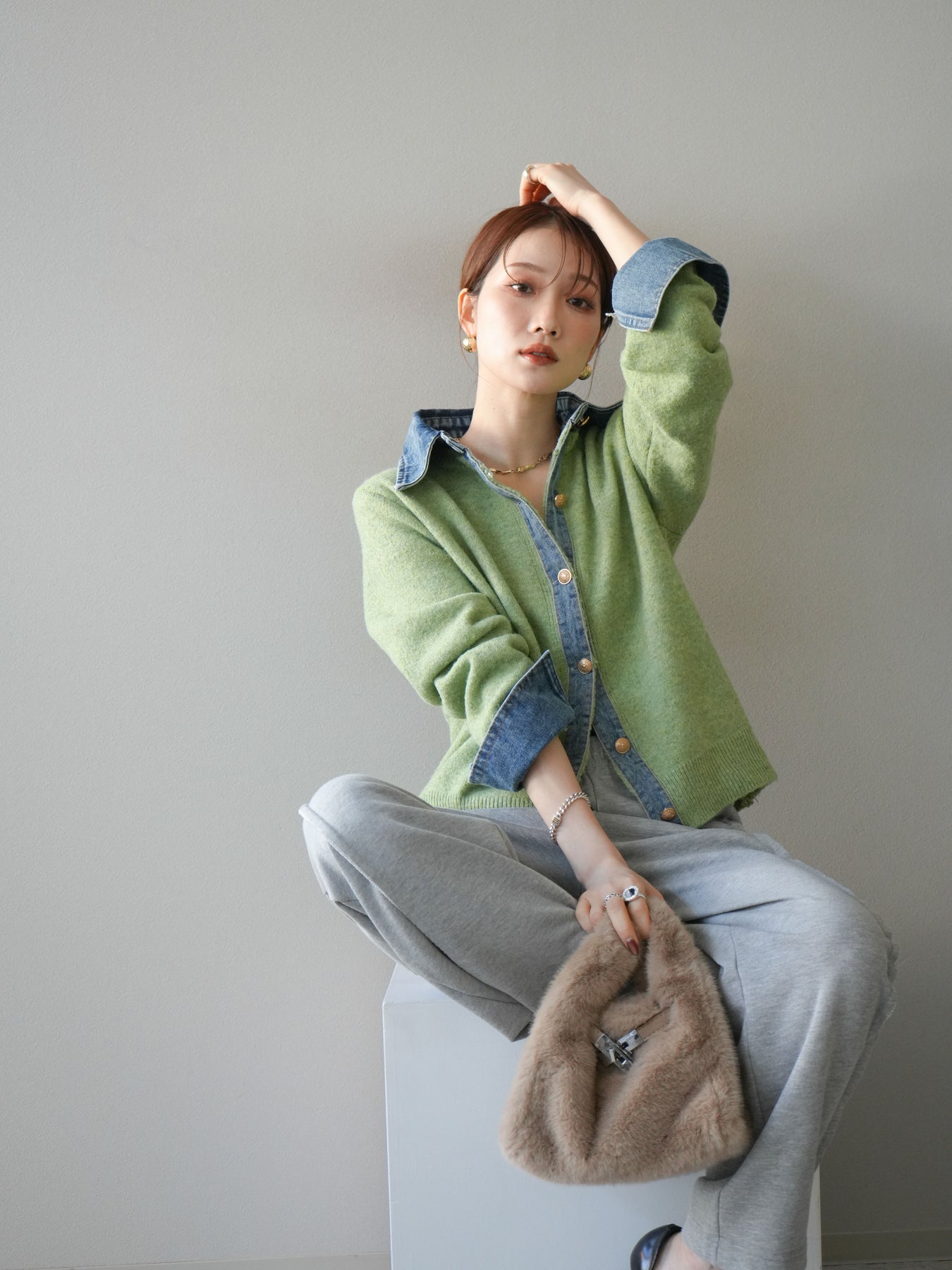 [予約]デニム襟ボタンニットカーディガン/pistachio