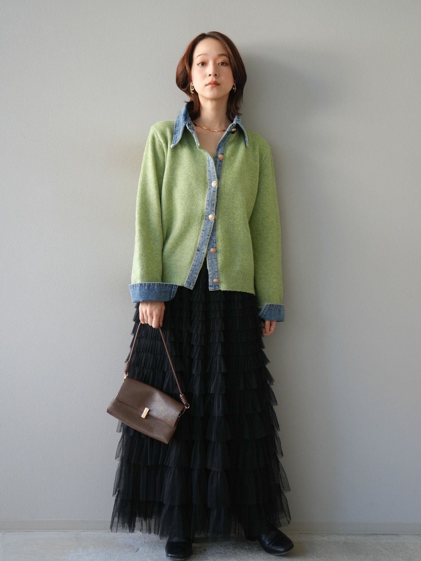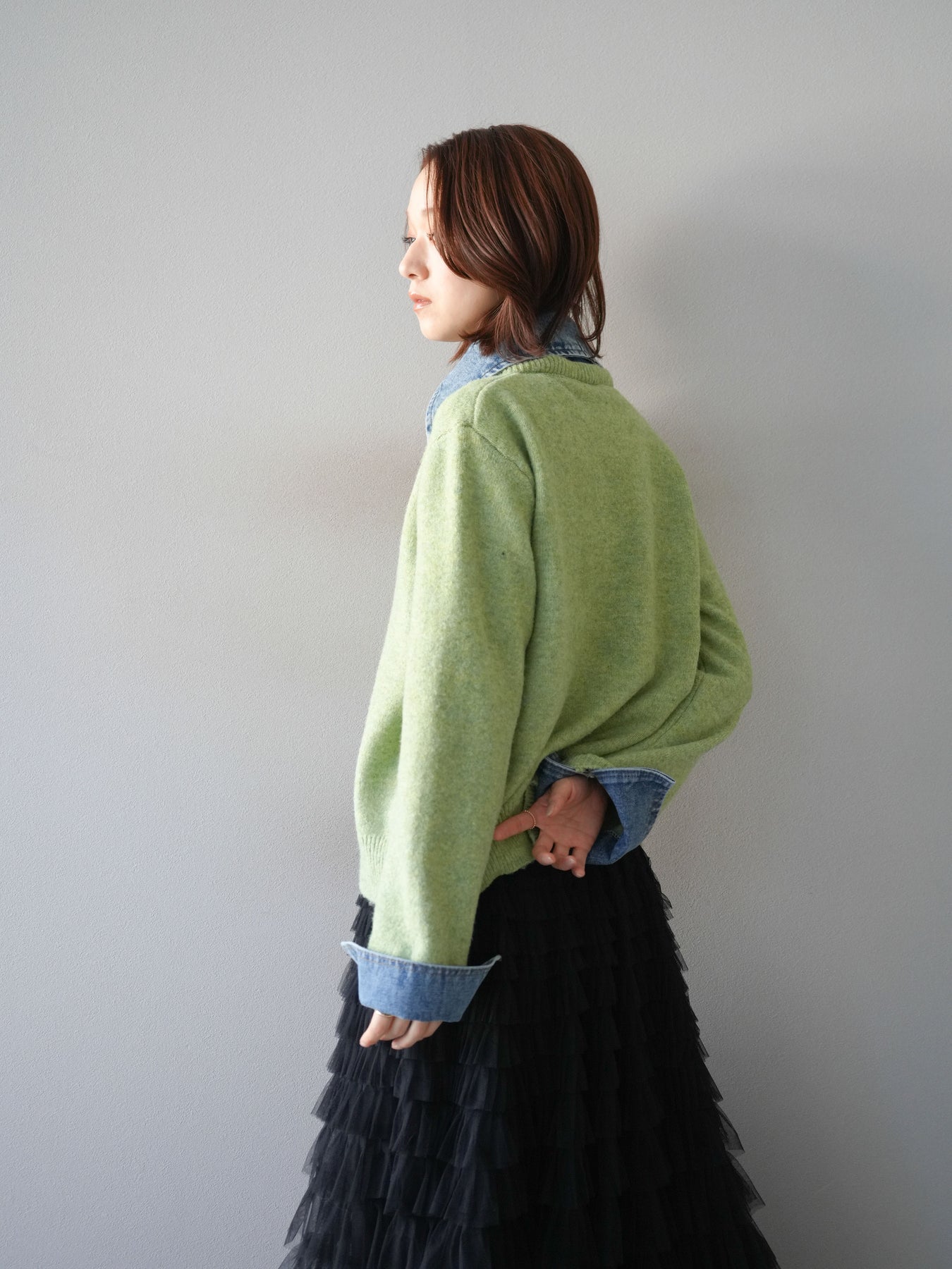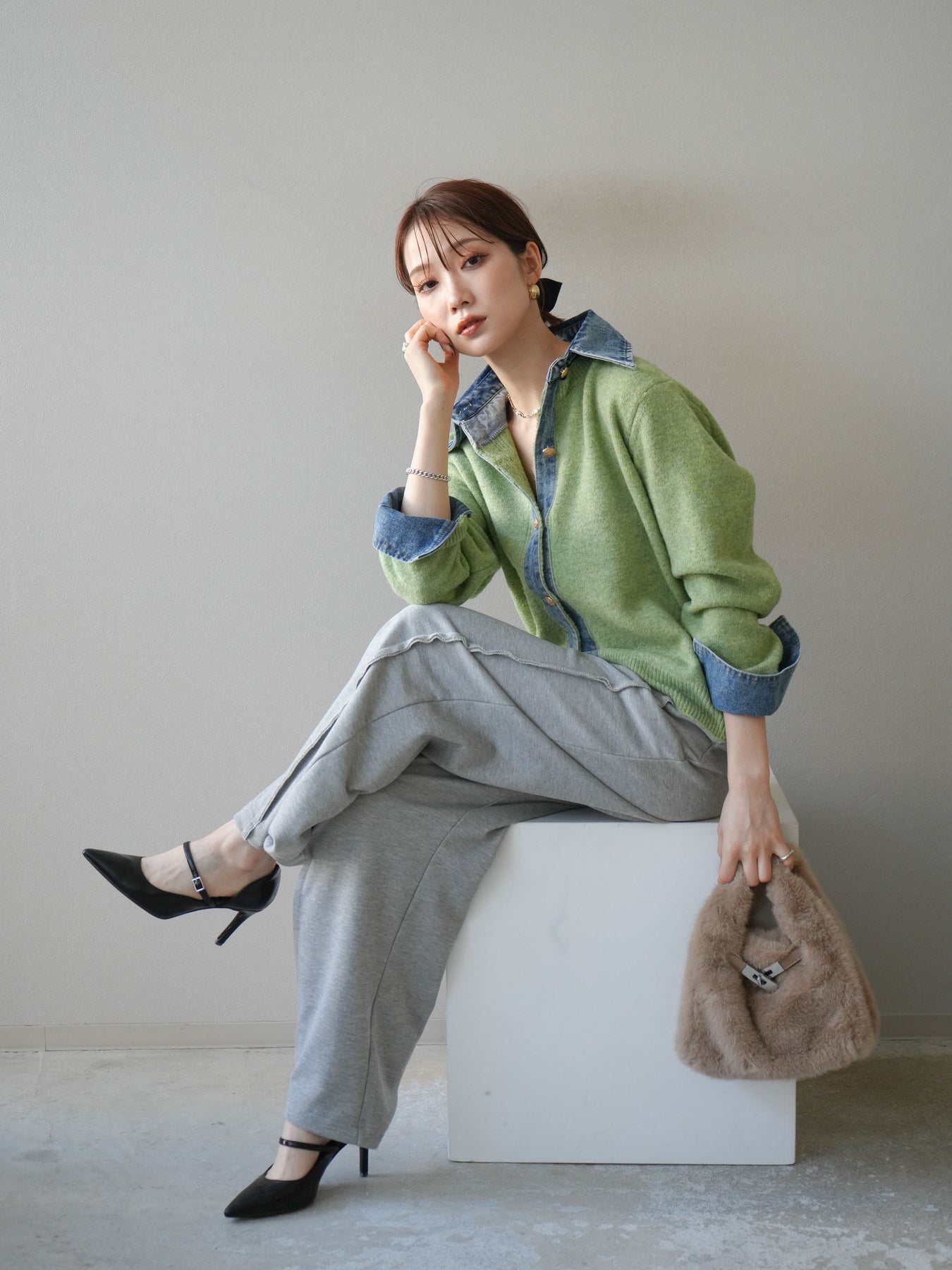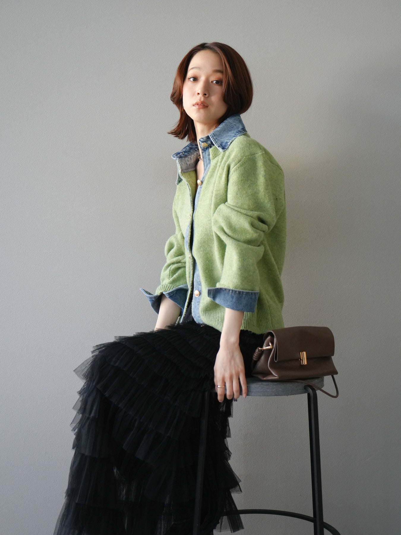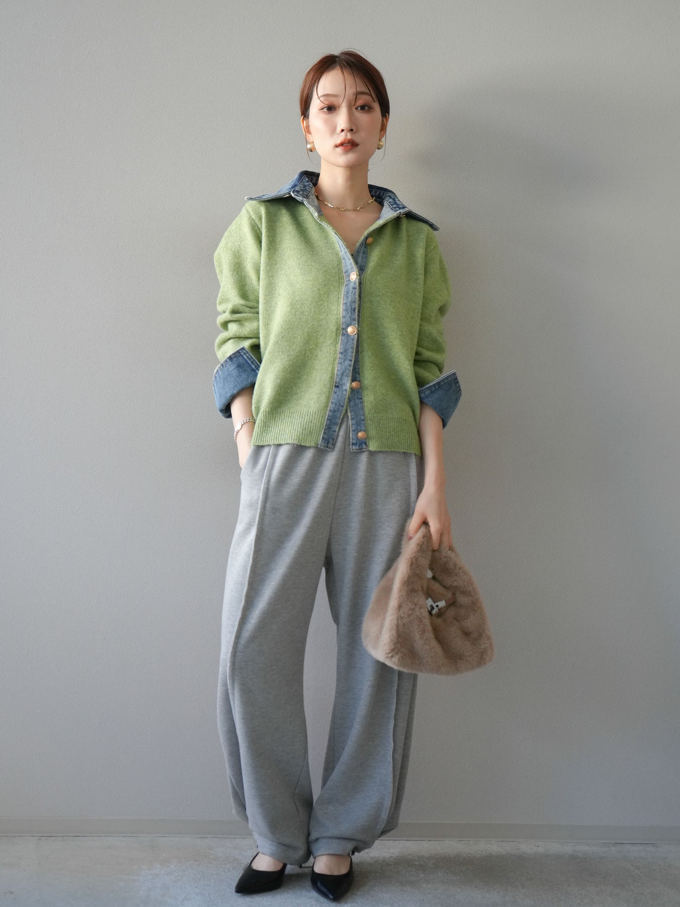 [予約]デニム襟ボタンニットカーディガン/pistachio
