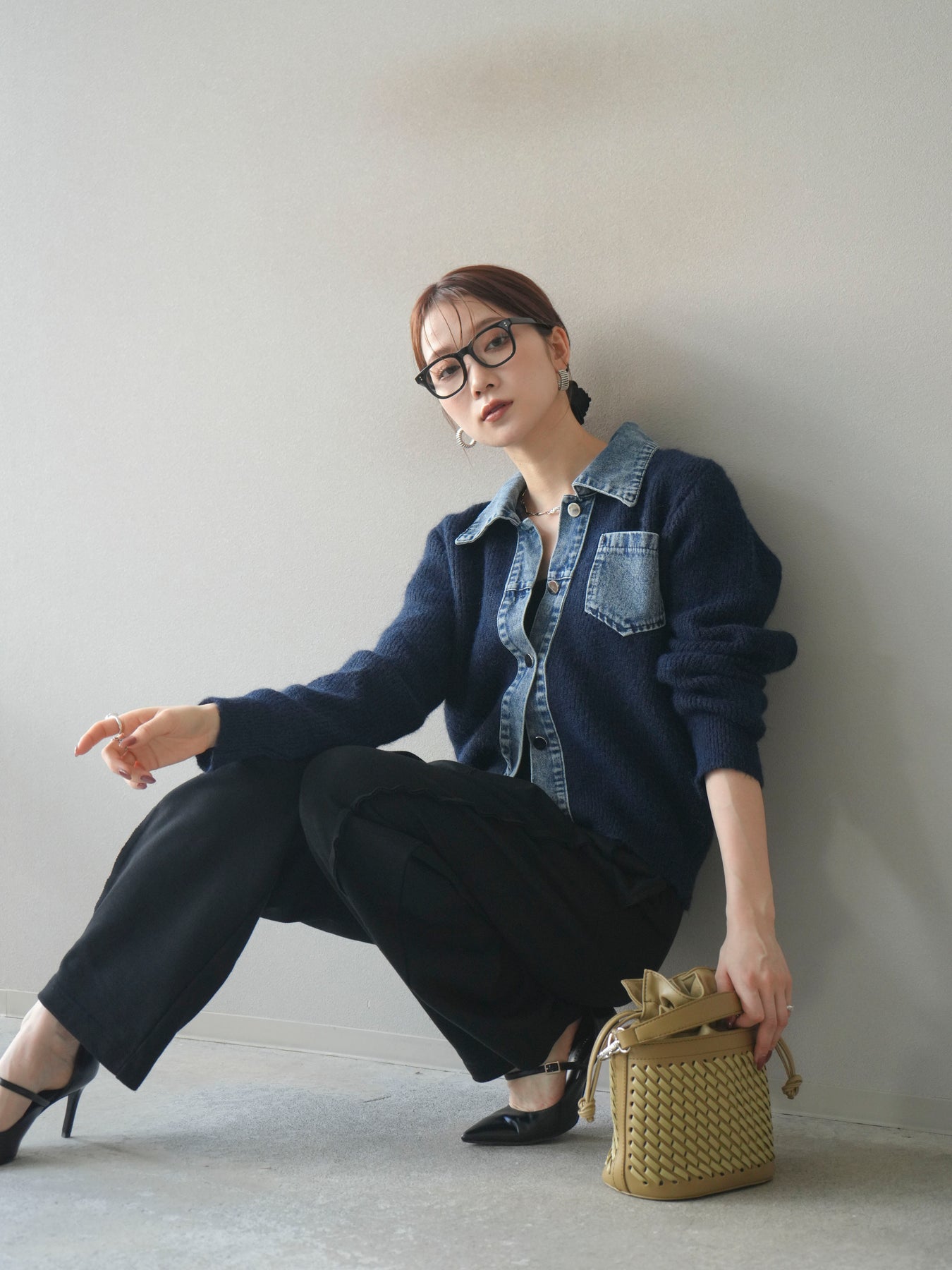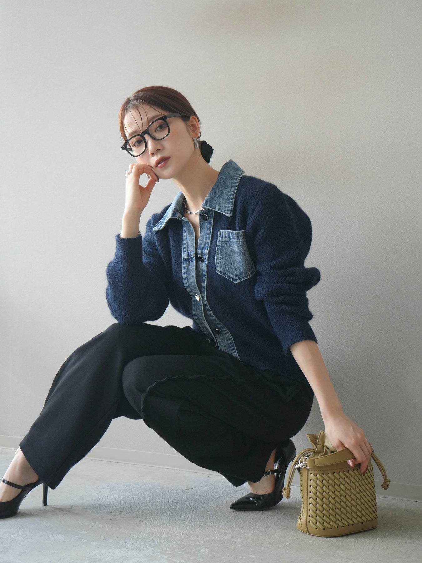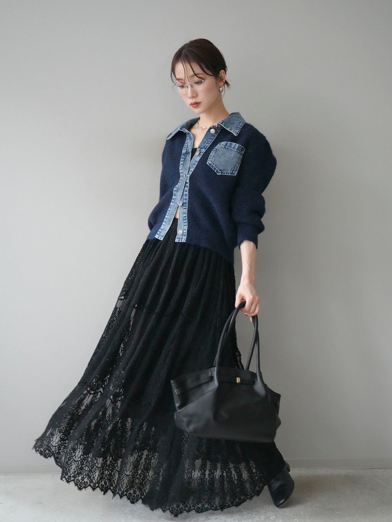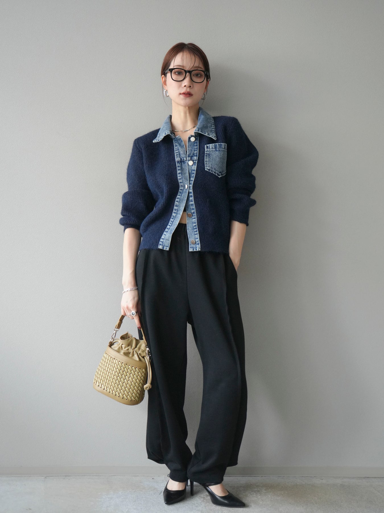 ふんわりとしたニットの優しい風合いに、デニム素材を組み合わせた異素材デザインカーディガン。 襟・前立て・ポケット部分に施されたデニムが、柔らかさの中に程よいカジュアルさをプラスします。 ゆとりのあるシルエットと長めの袖が抜け感を演出し、羽織るだけでスタイリングを今っぽく仕上げてくれる一枚。 シンプルなインナーやスカート・パンツなど、さまざまなボトムとも相性抜群で、デイリー使いにもおすすめです。 軽やかな着心地で、季節の変わり目にも活躍してくれる万能アイテムです。 ※ボトムス、キャミソール(インナー)以外の商品は一律でインナーは付属していません。