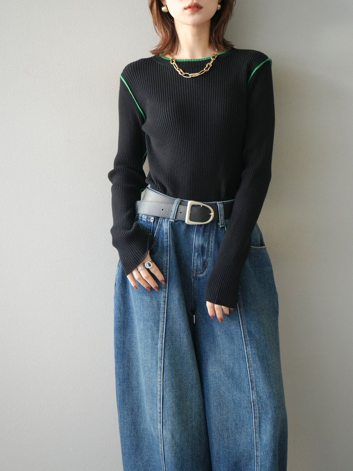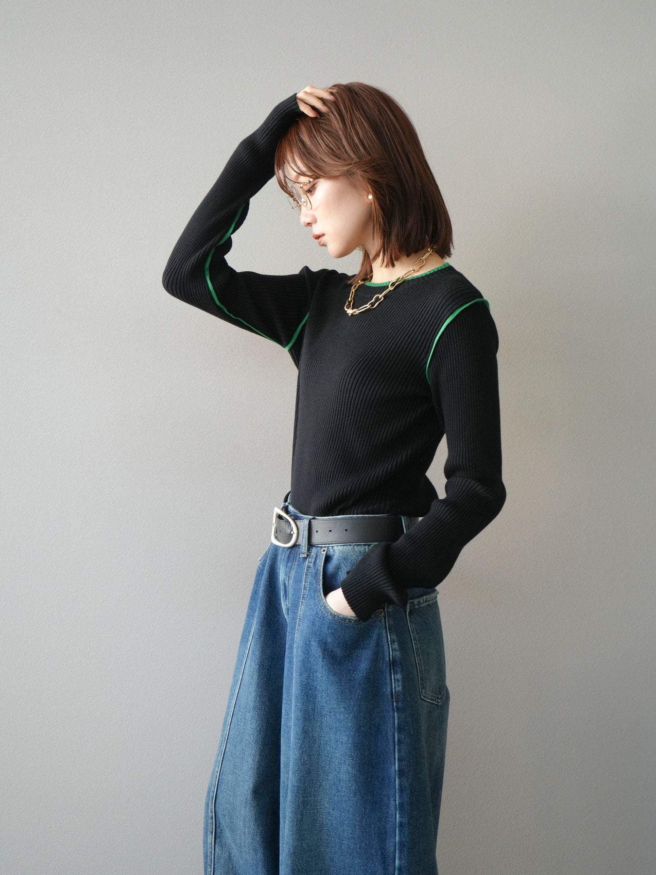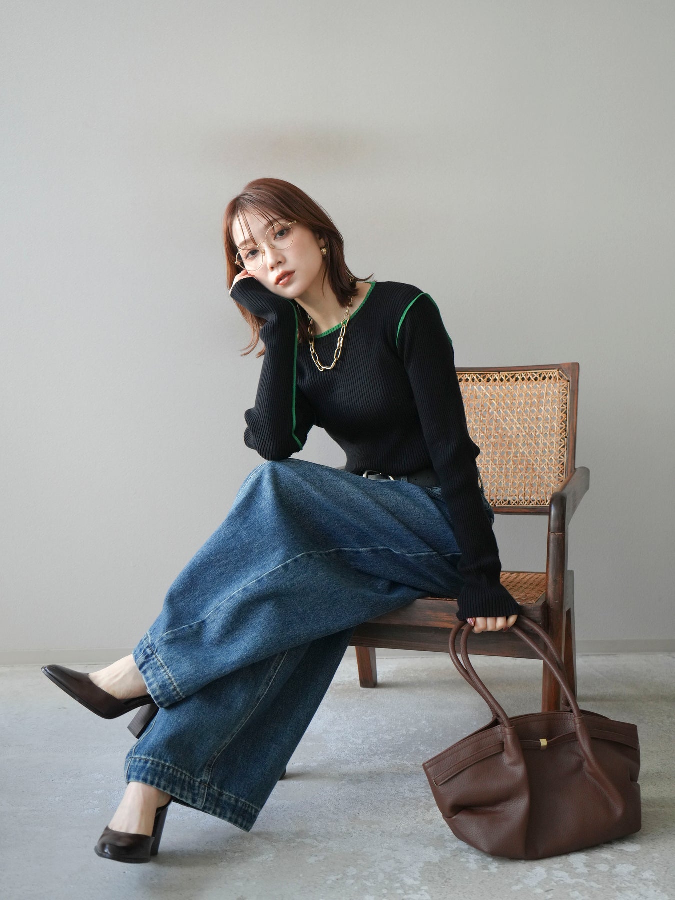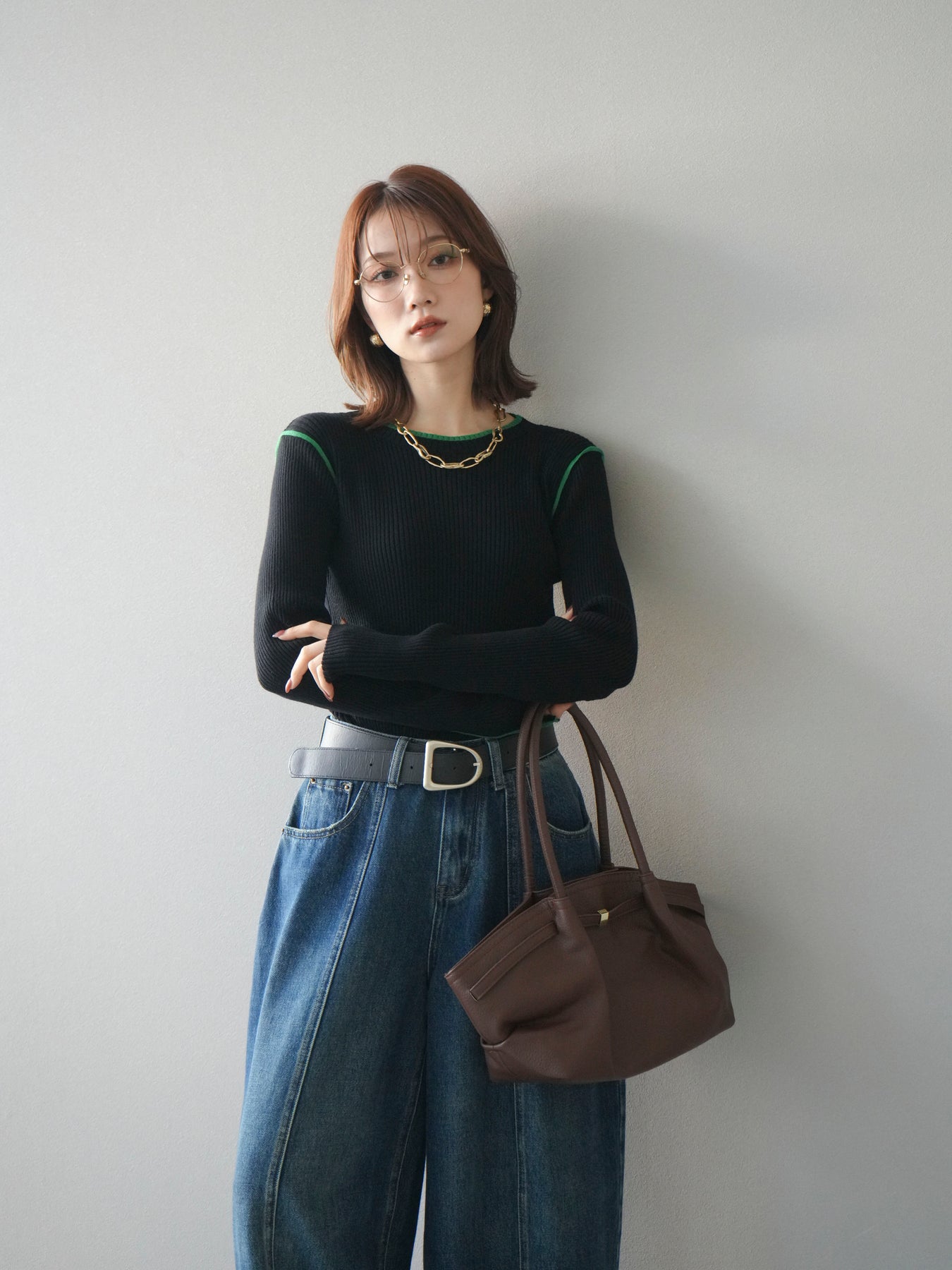 程よいフィット感と配色ラインがポイントのリブニットトップス。 シンプルなシルエットにさりげないバイカラーデザインを加えることで、1枚で着ても存在感のあるスタイルに仕上がります。 伸縮性のあるリブ編み素材で着心地が良く、ボディラインをすっきり見せてくれるのも嬉しいポイント。 ジャケットやカーディガンのインナーとしても使いやすく、ロングシーズン活躍する万能アイテムです。 デイリー使いからきれいめスタイルまで、幅広くコーディネートを楽しめます。 ※ボトムス、キャミソール(インナー)以外の商品は一律でインナーは付属していません。