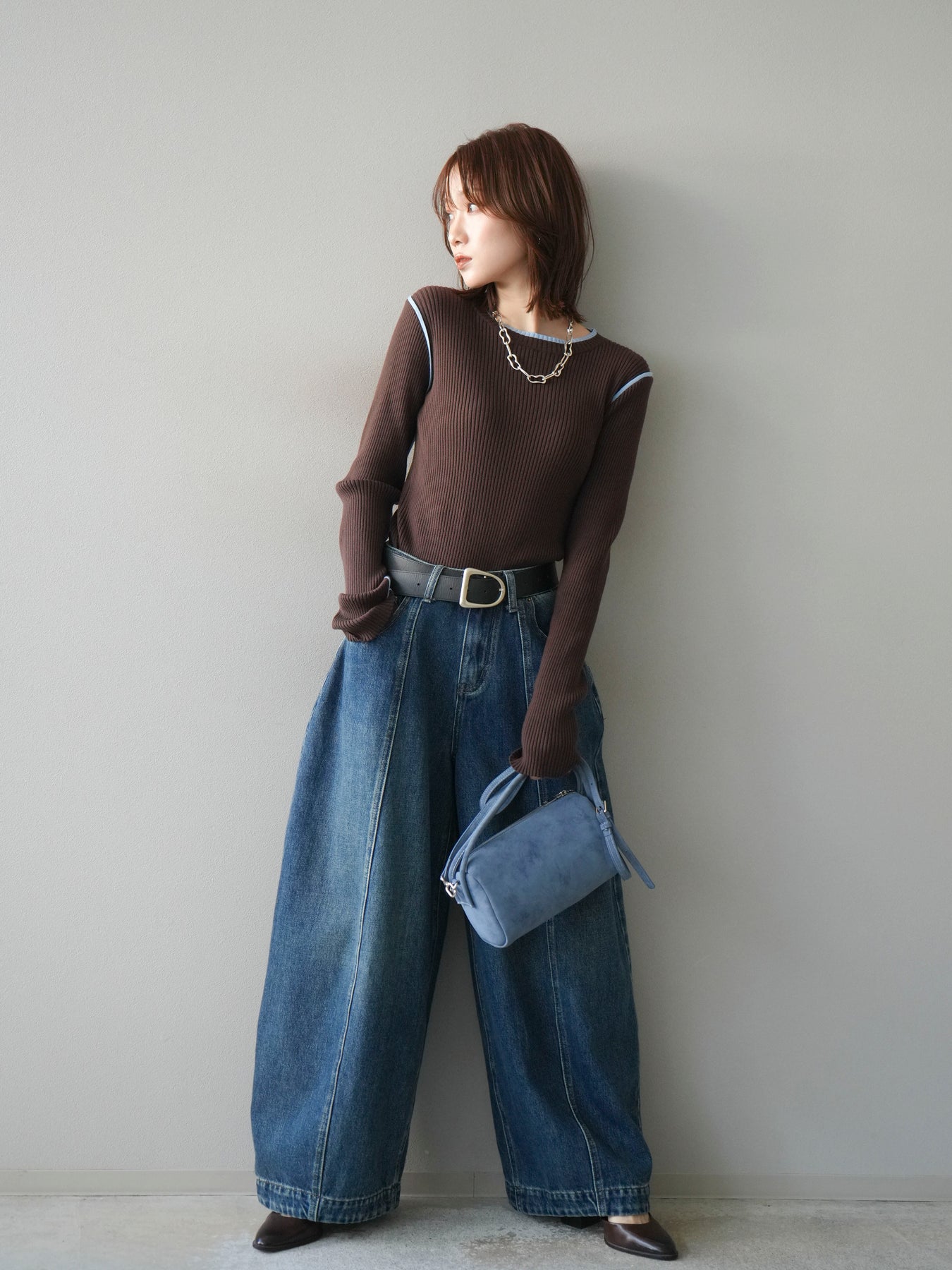 [予約]バイカラークルーネックリブニットトップスに関連する商品を探す↓